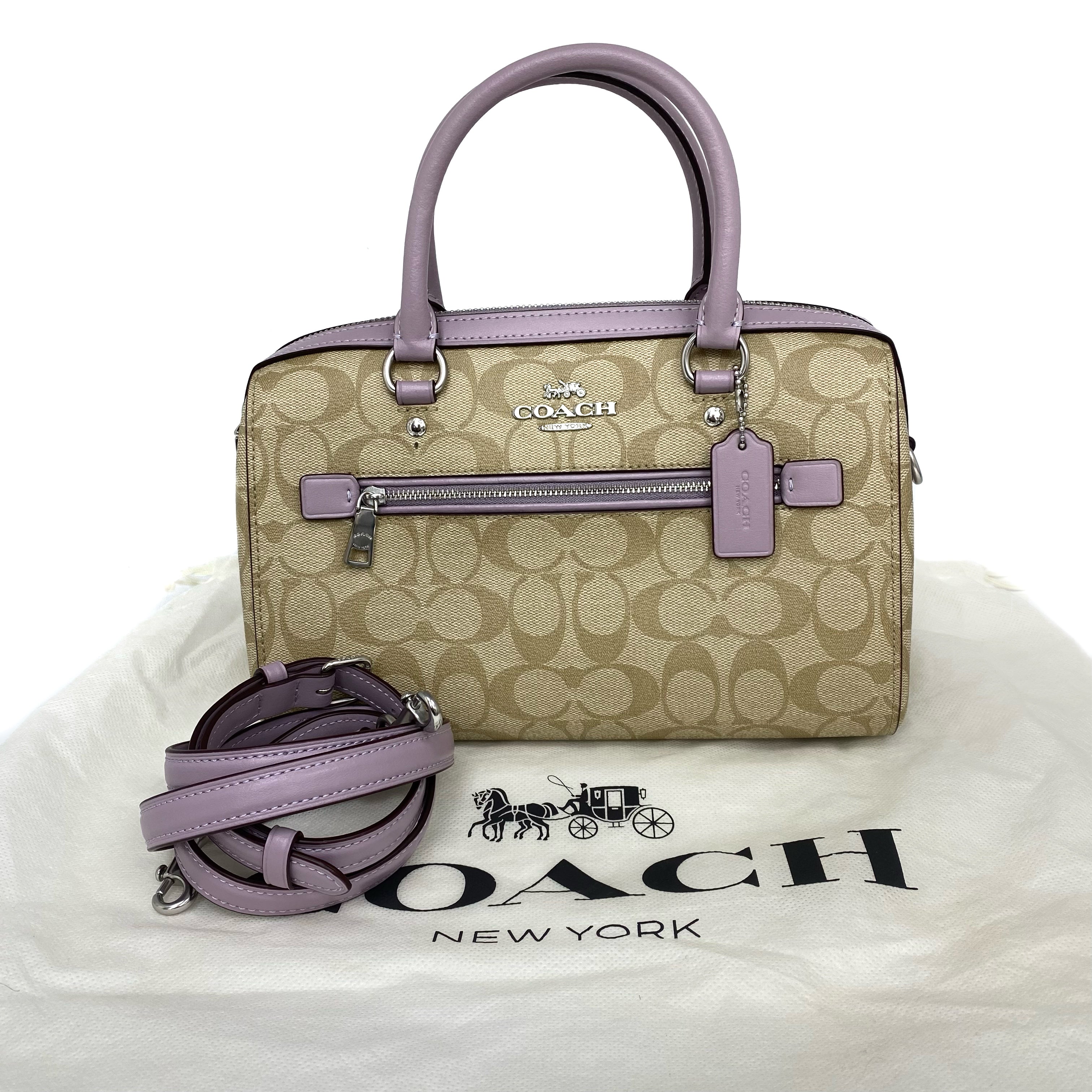 ☆ Coach 蔻馳 Beige & Light Purple Coated Canvas 2Way Bag 米色和淺紫色塗層帆布兩用袋 - 257022333