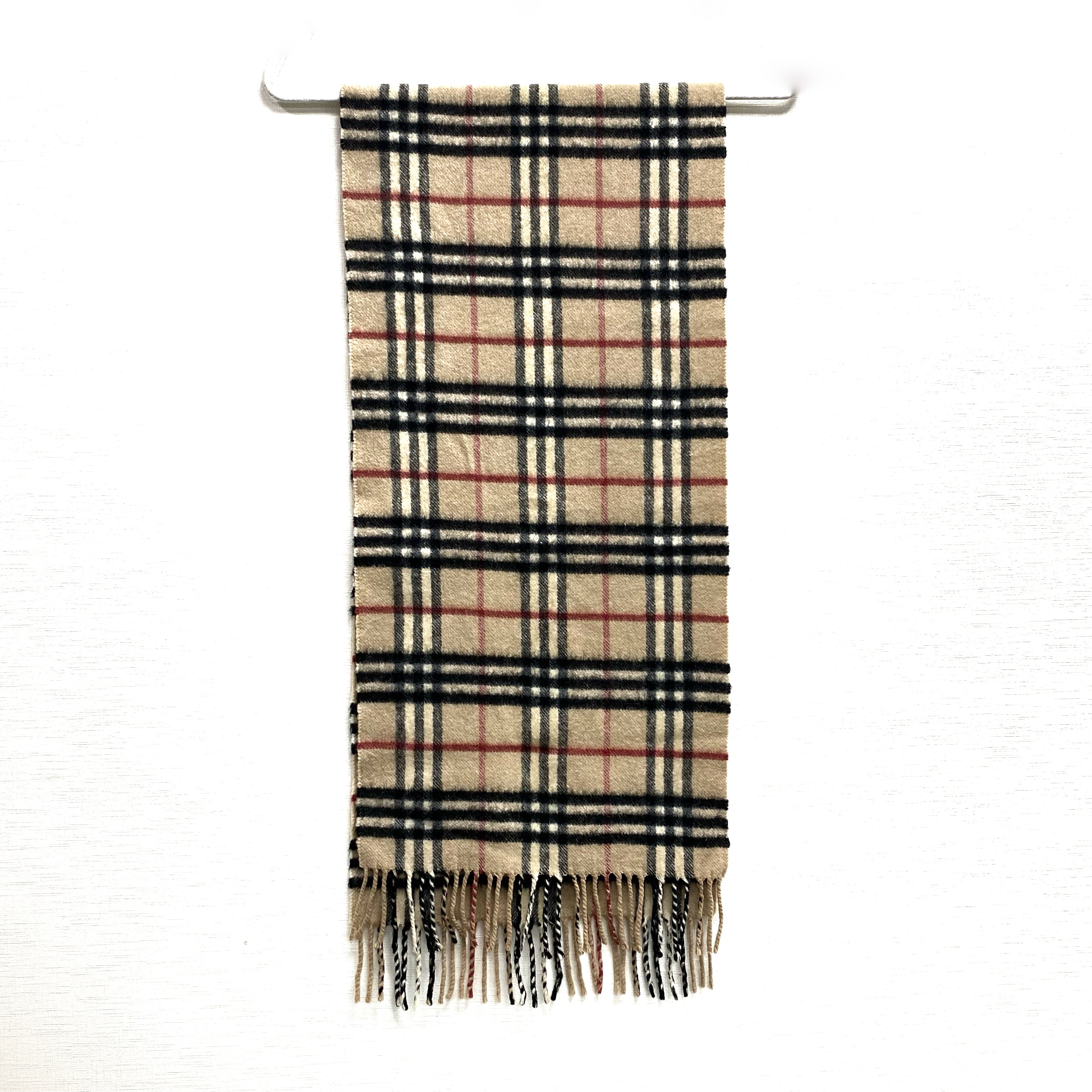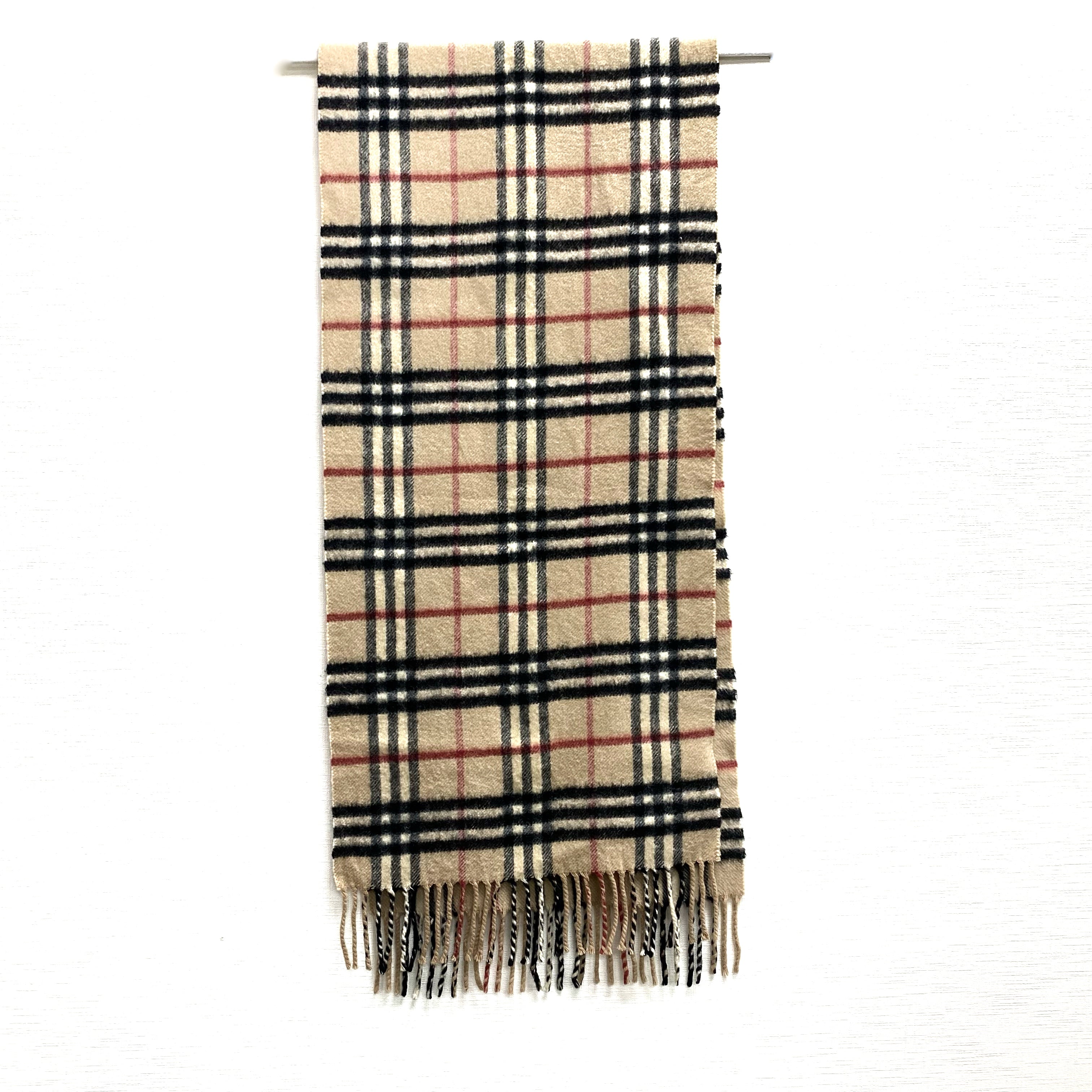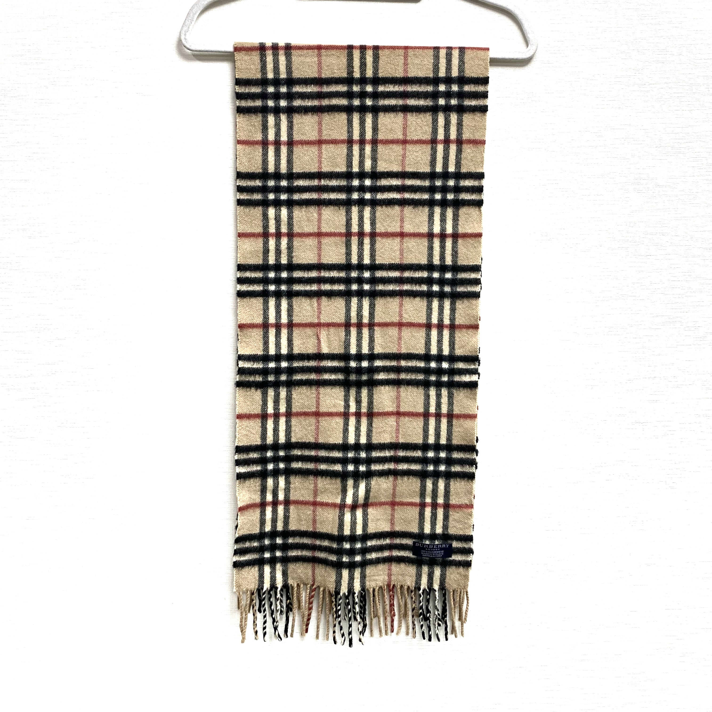 ☆Burberry博柏利 Beige 100% Cashmere Checkered Scarf 淺褐色100% 羊絨格紋圍巾 -257022378