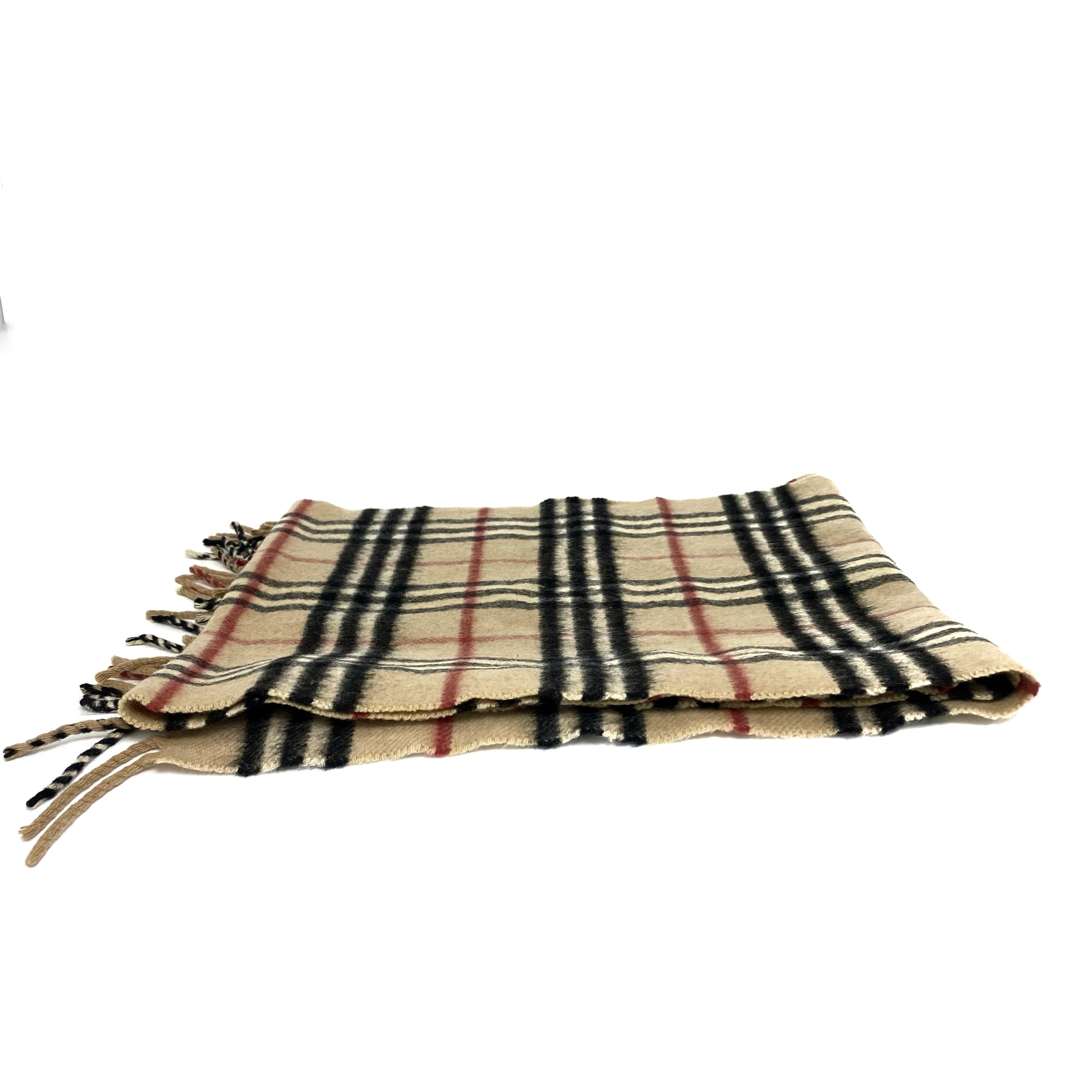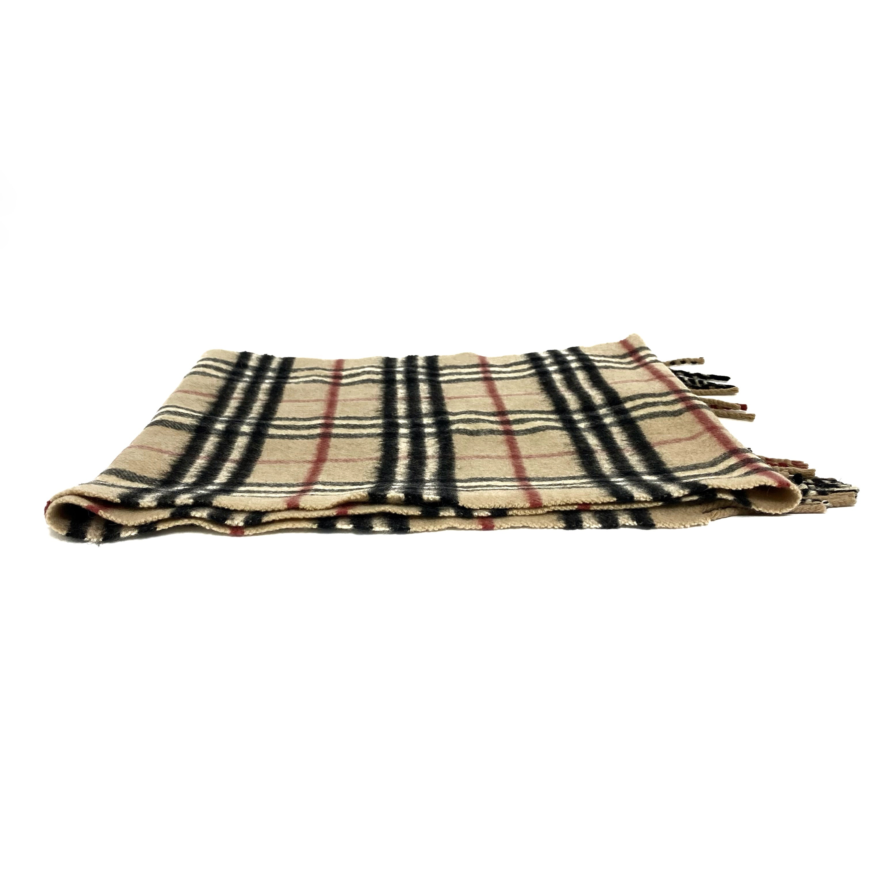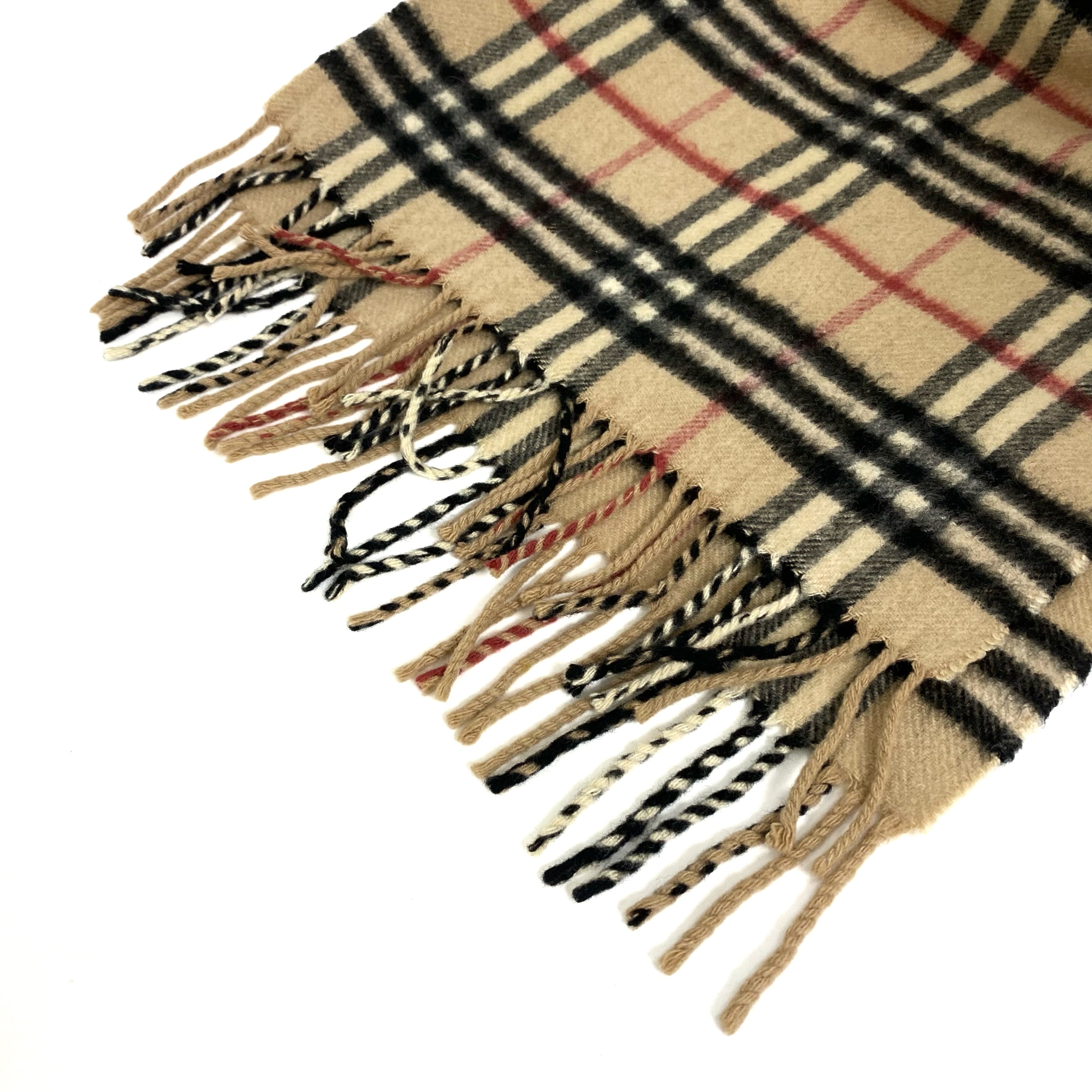 ☆Burberry博柏利 Beige 100% Cashmere Checkered Scarf 淺褐色100% 羊絨格紋圍巾 -257022378