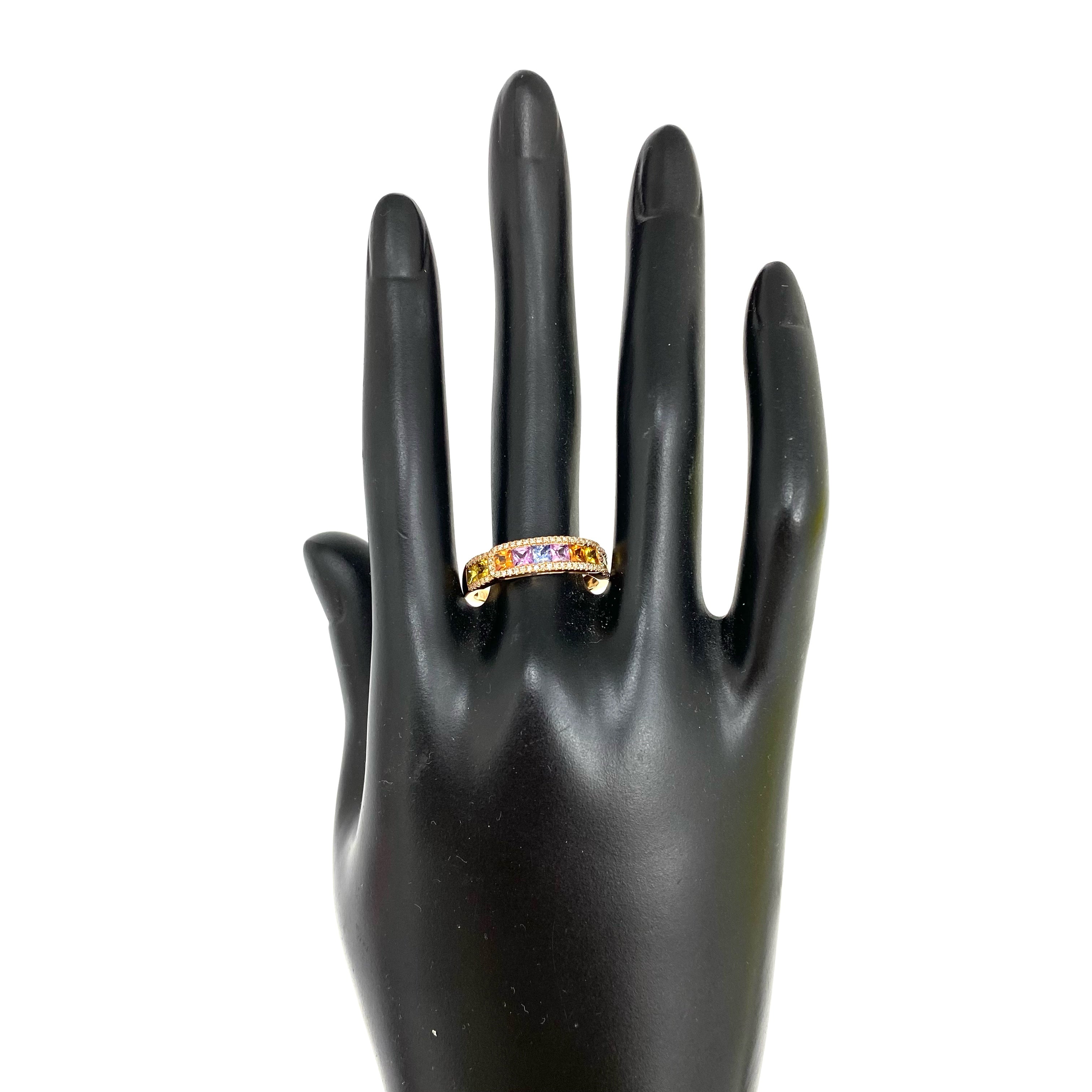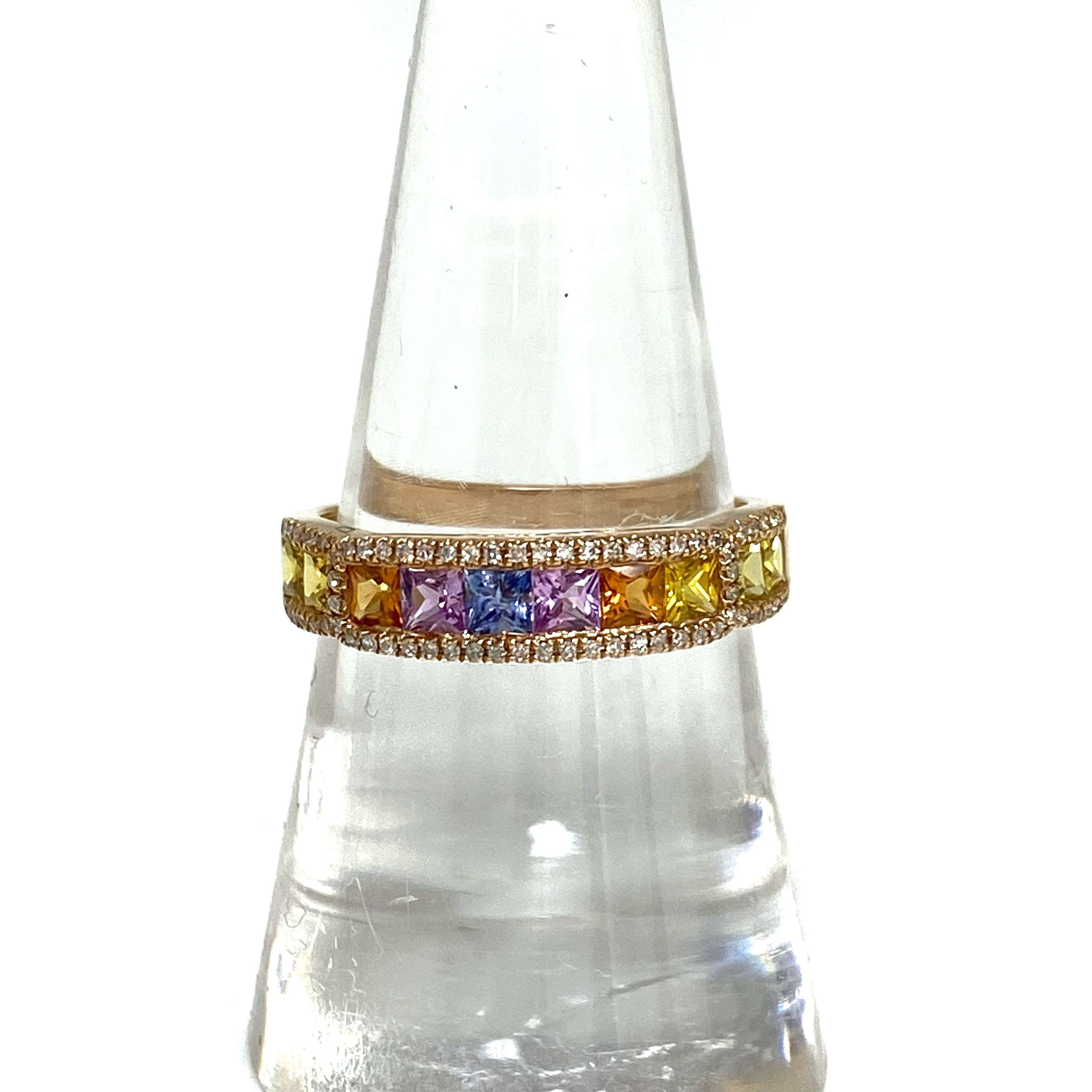 ☆ 18K Rose Gold Melee Diamond, Multi-color Sapphire Ring 3.27g 18K玫瑰金碎鑽, 多色藍寶石戒指 3.27g - 257022586