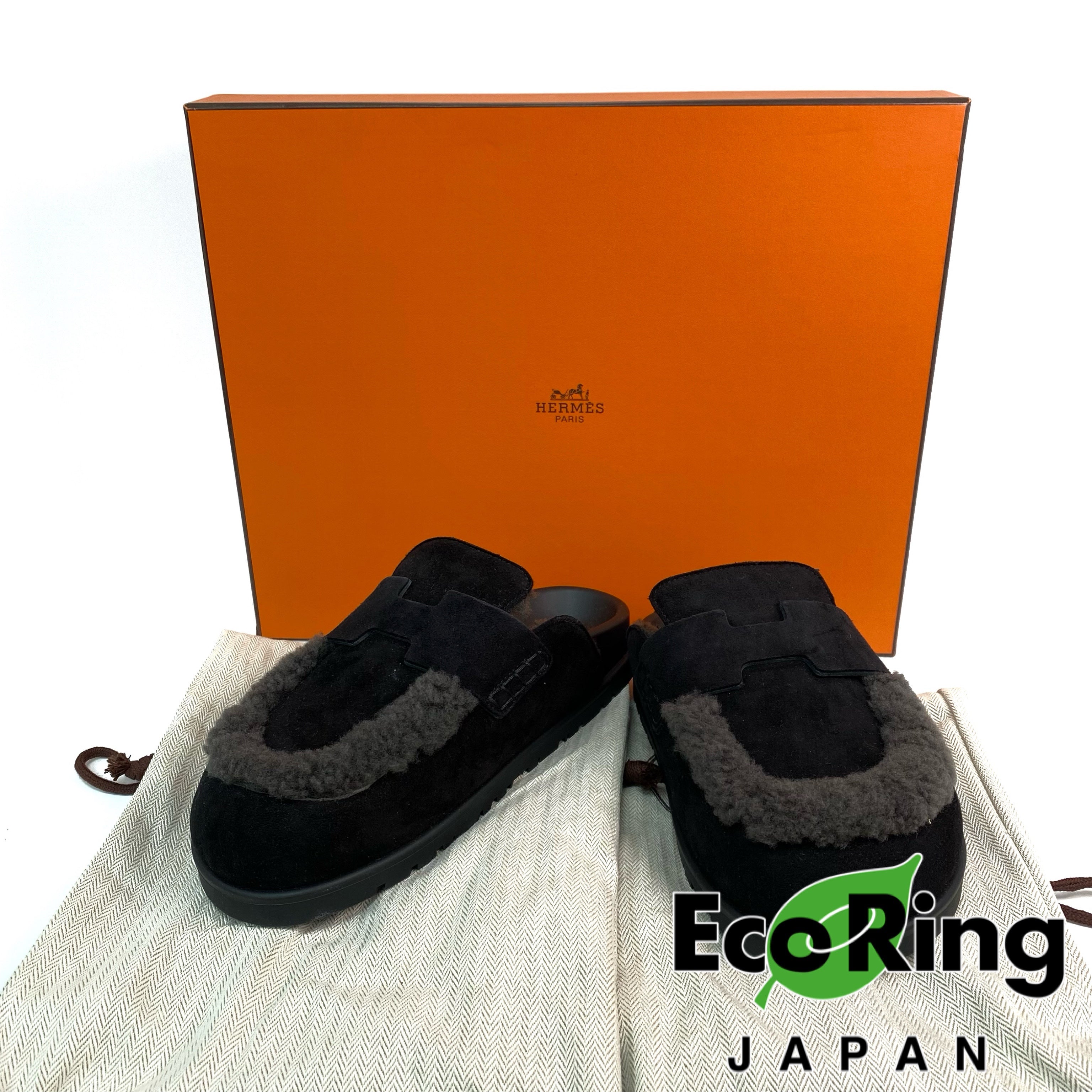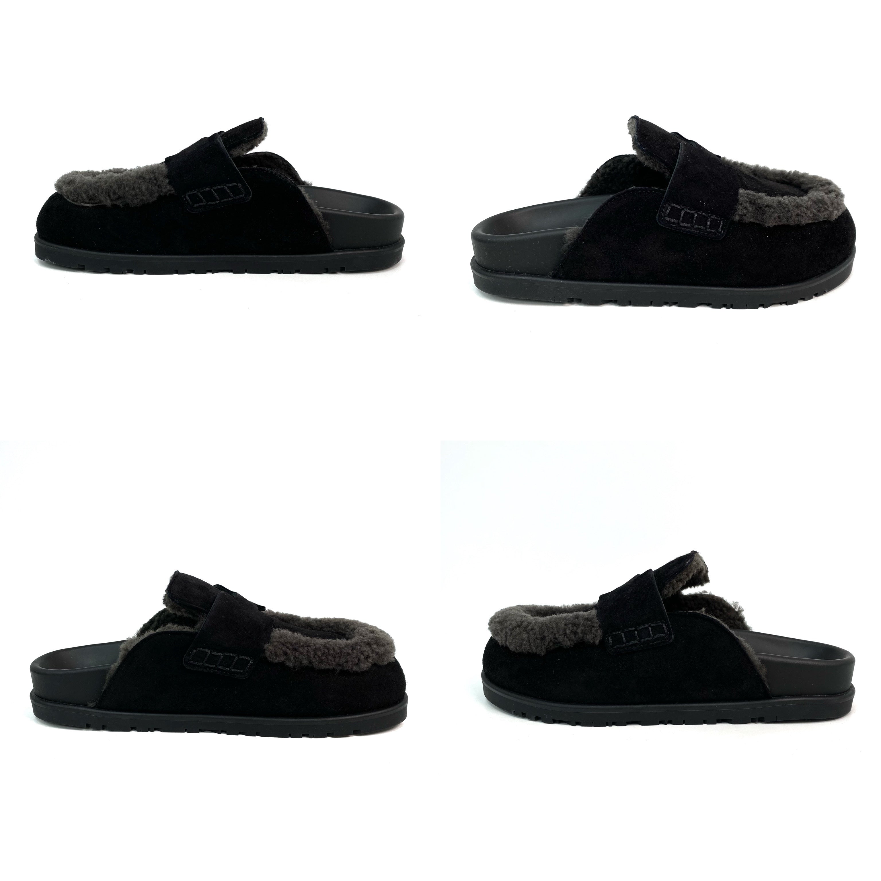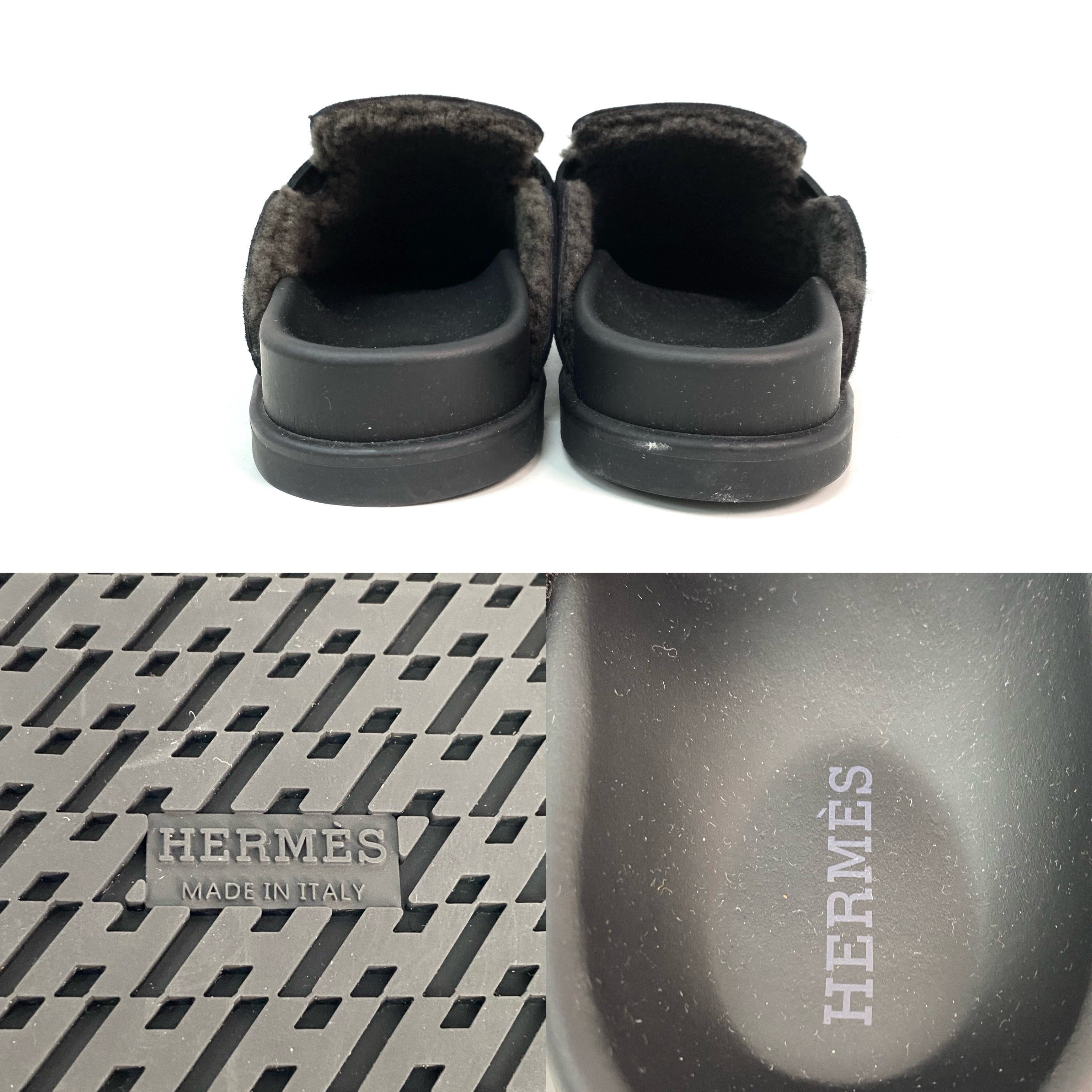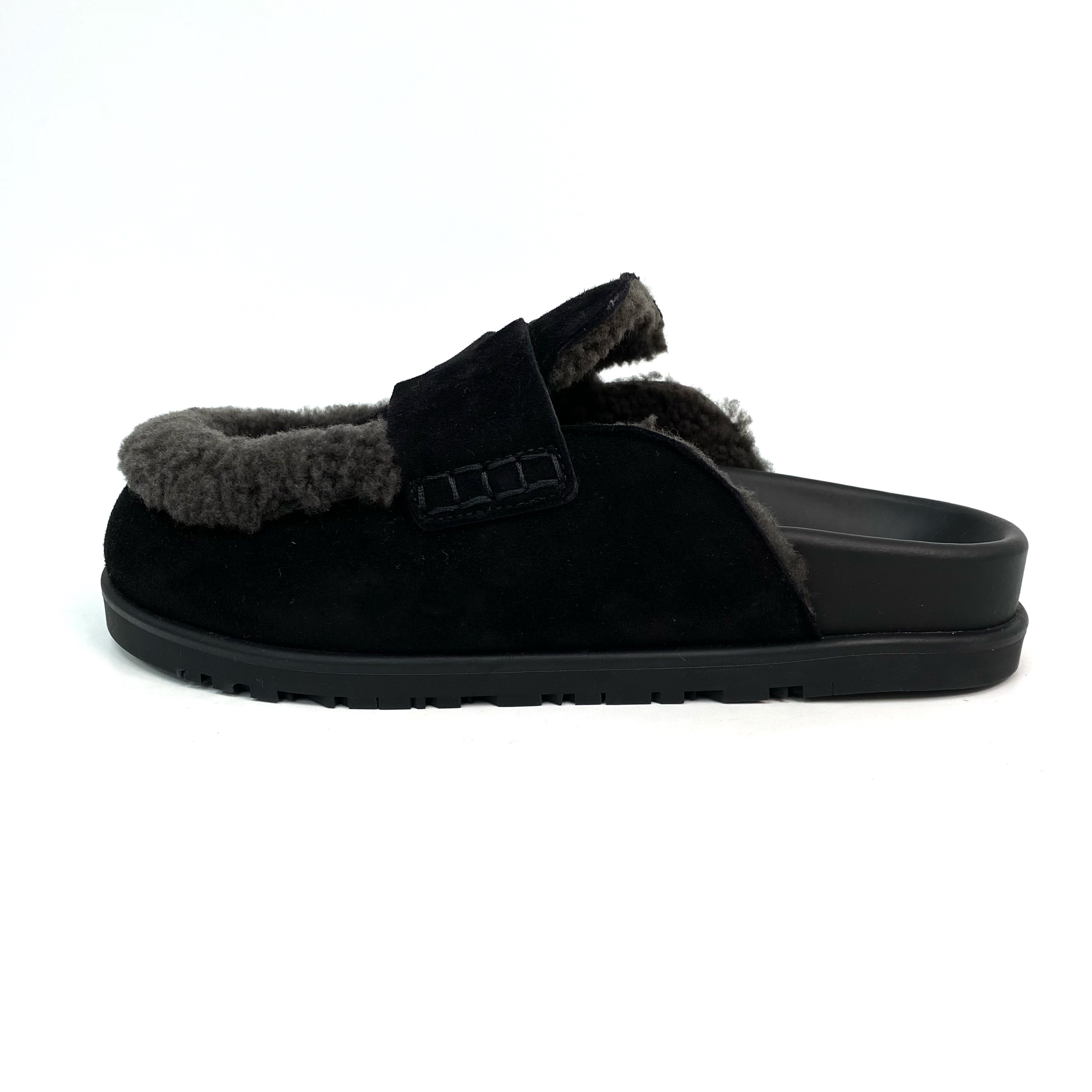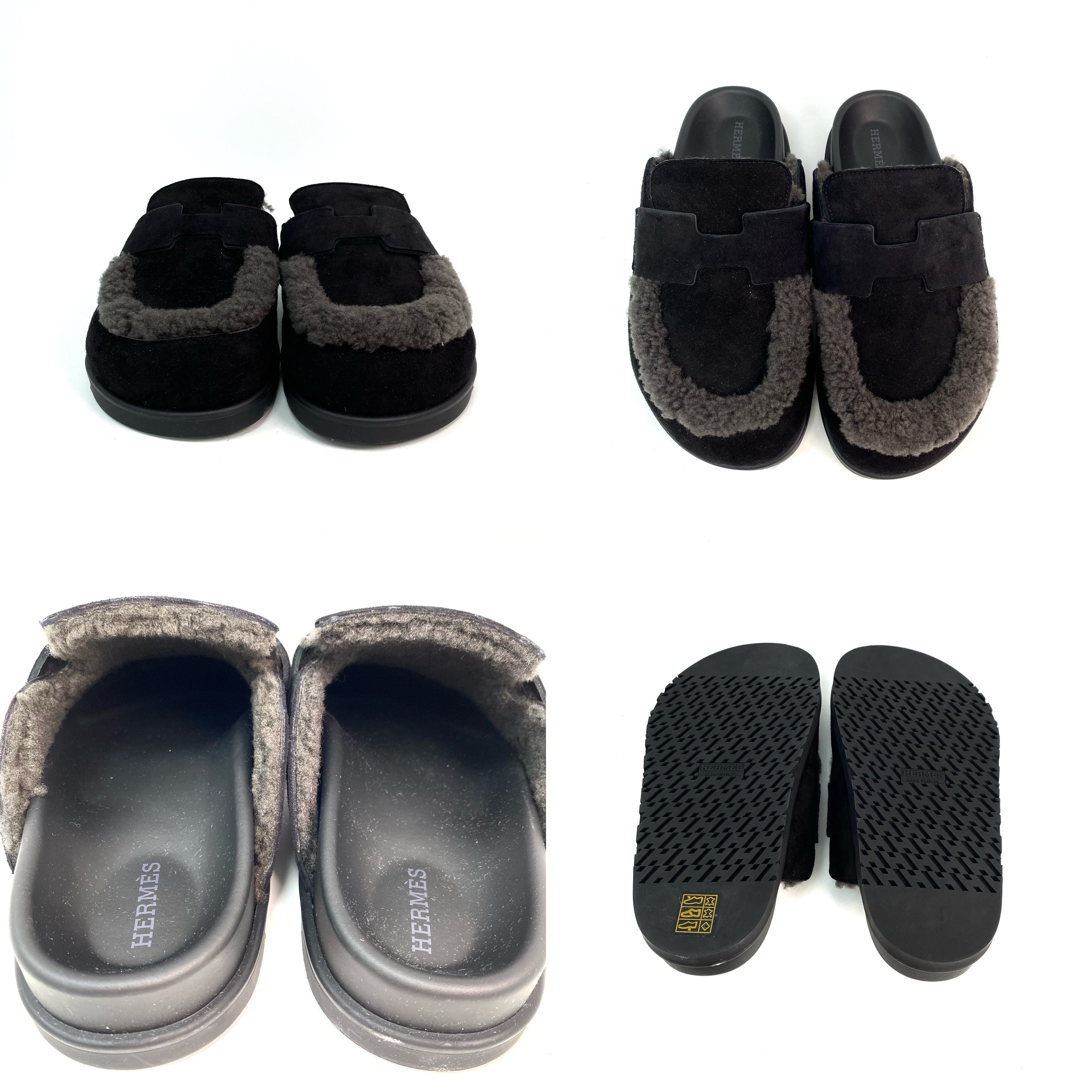 ☆ Hermes 愛馬仕 Noir Gris Foncé Suede Goatskin Shearling Go Mules #35 黑灰色山羊麂皮剪羊毛穆勒鞋 #35 - 257023547