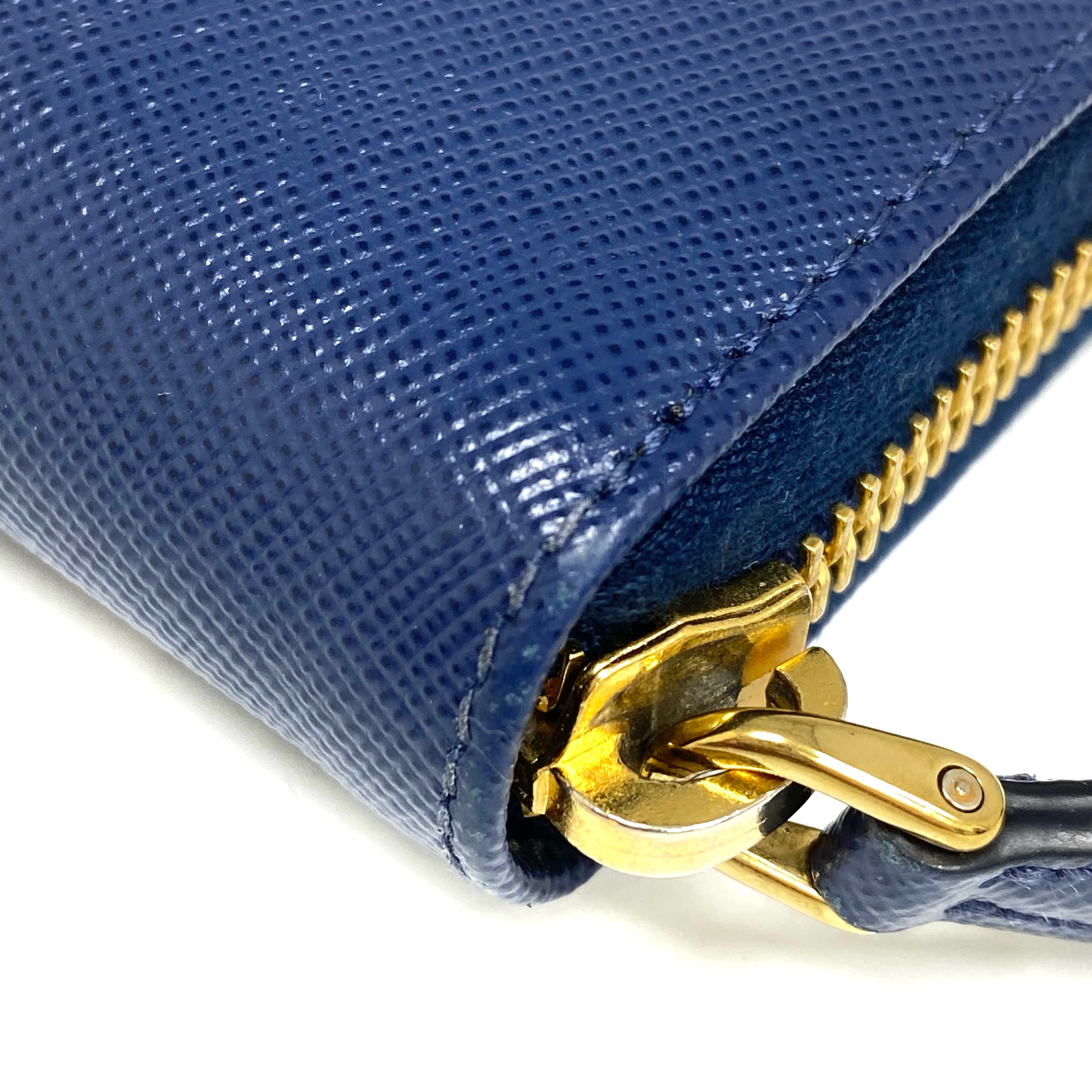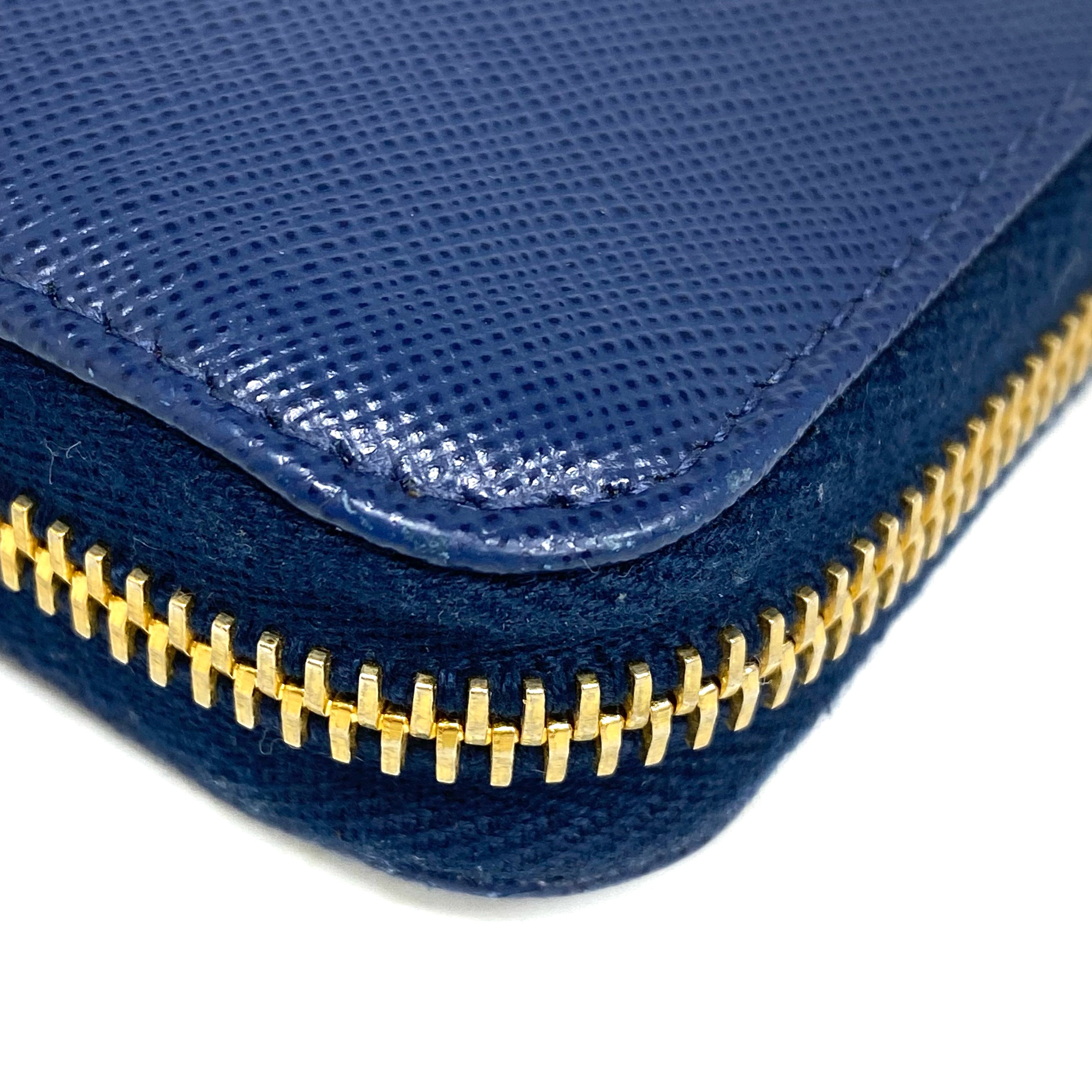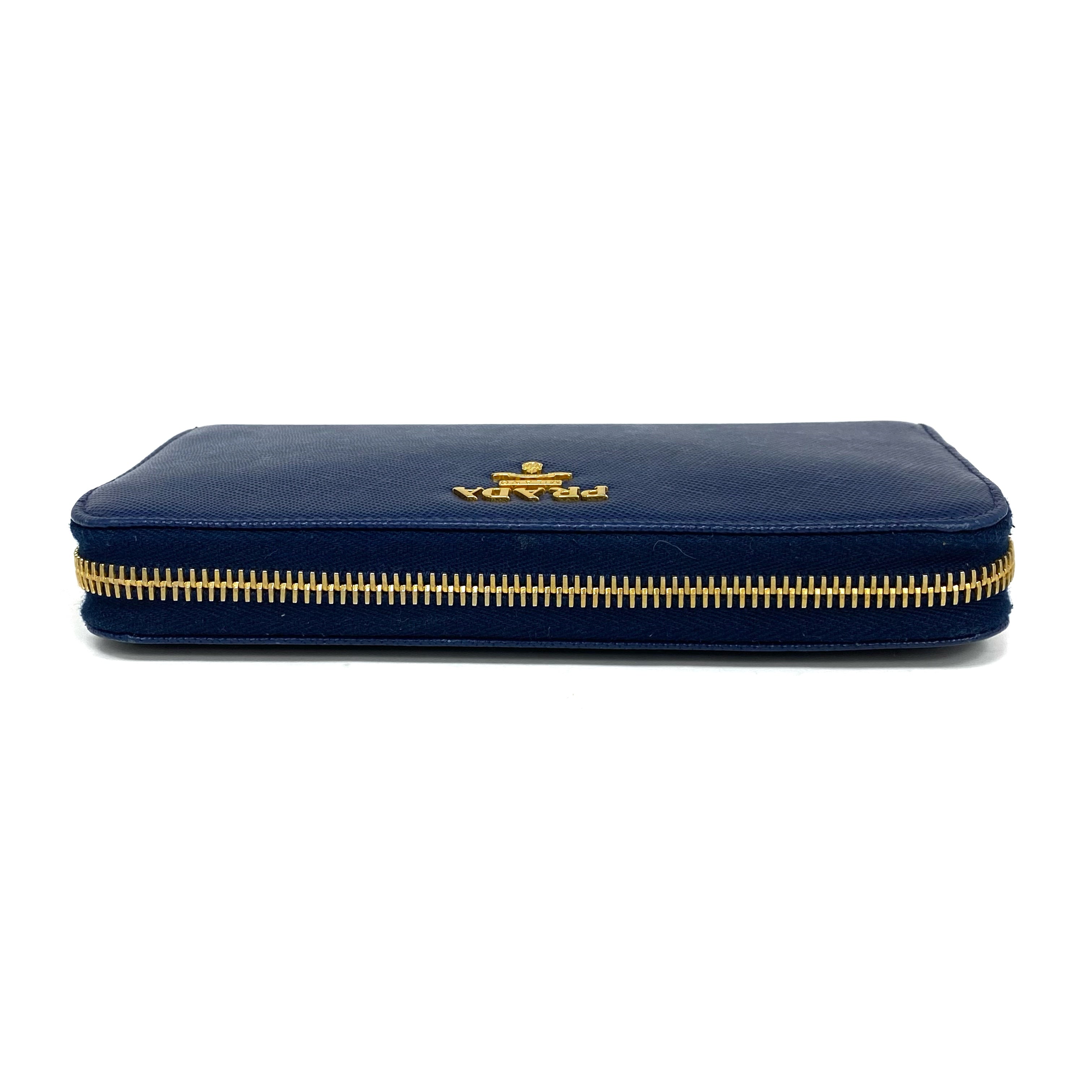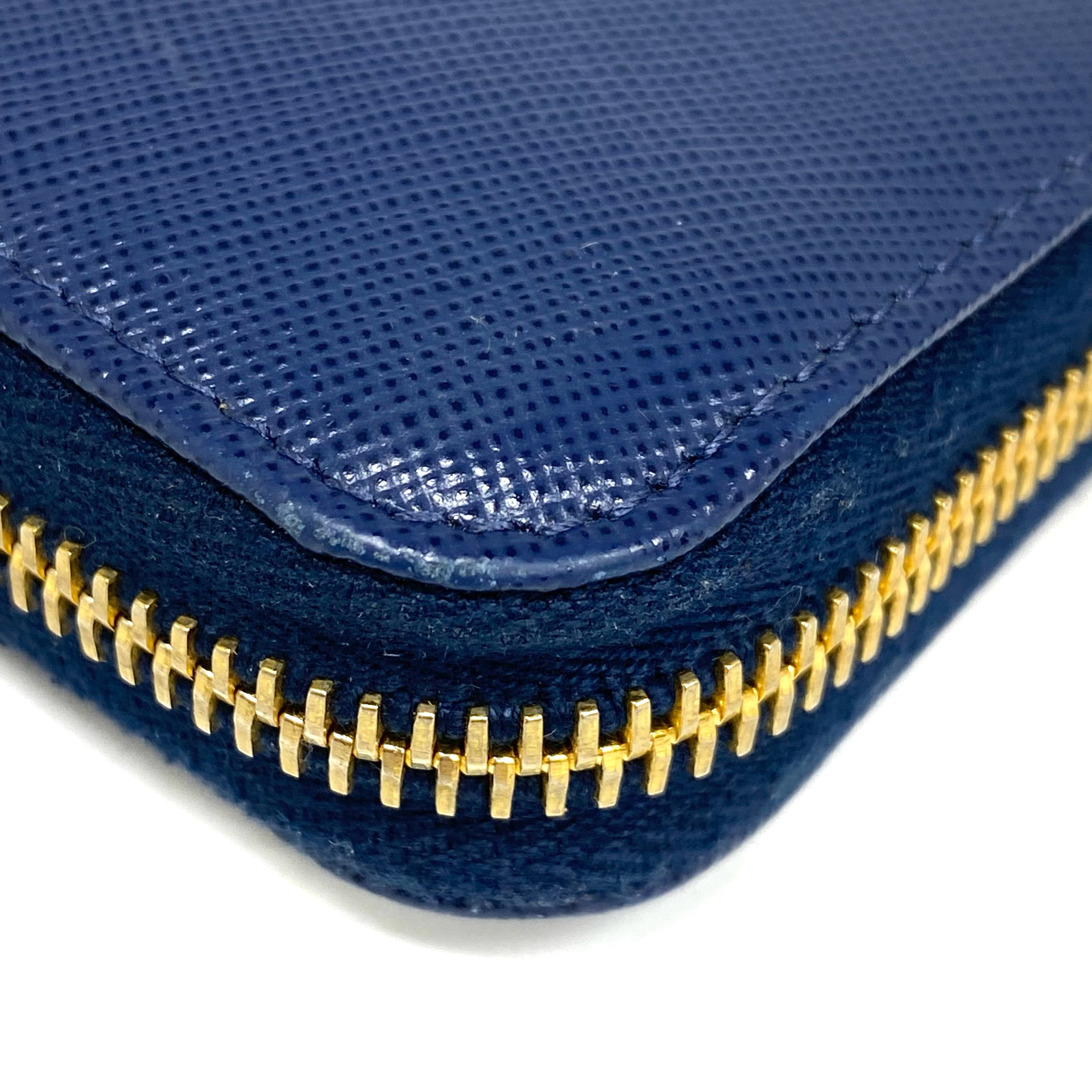 ☆ Prada 普拉達 Navy Saffiano Leather Long Wallet 深藍色十字紋皮革長銀包 - 257023486
