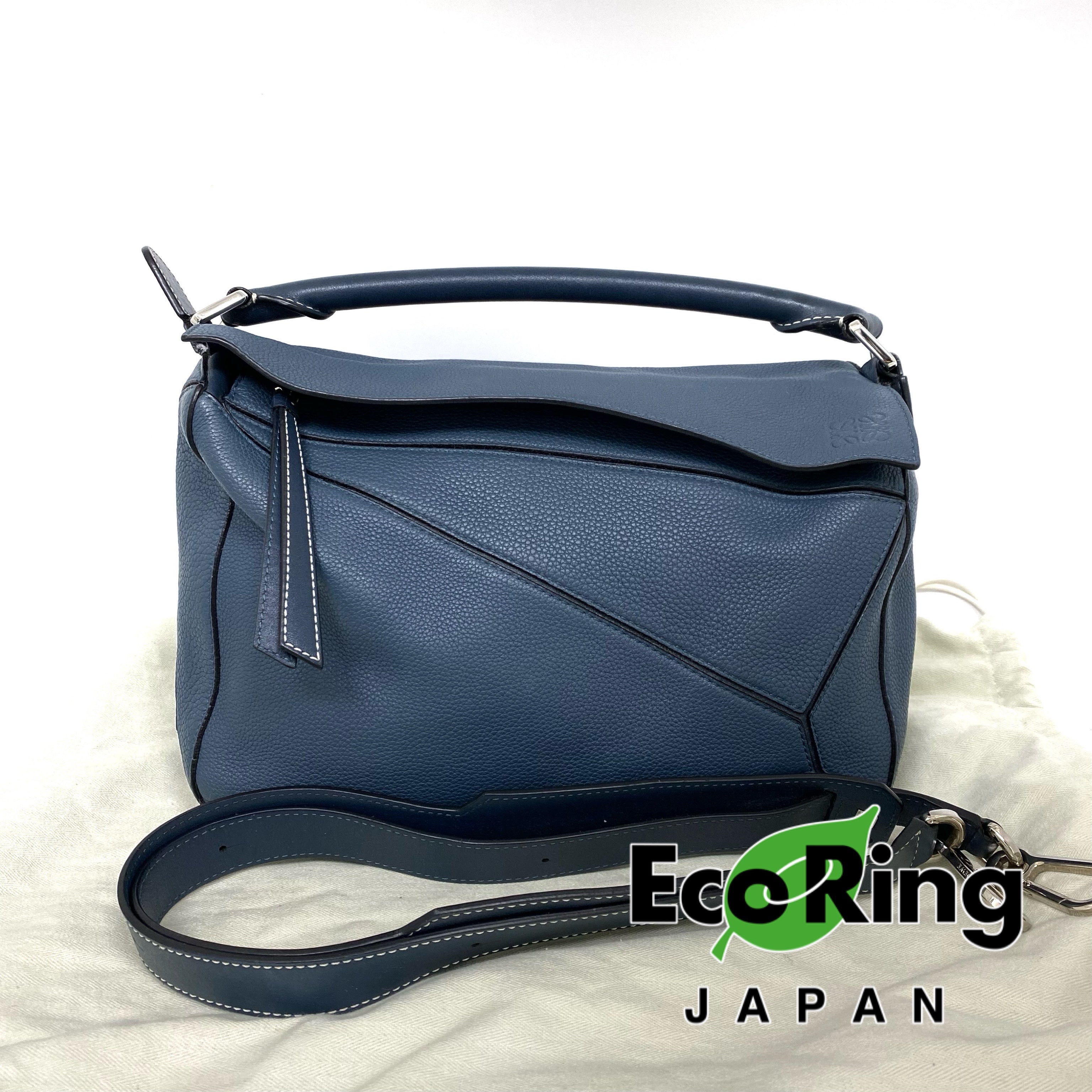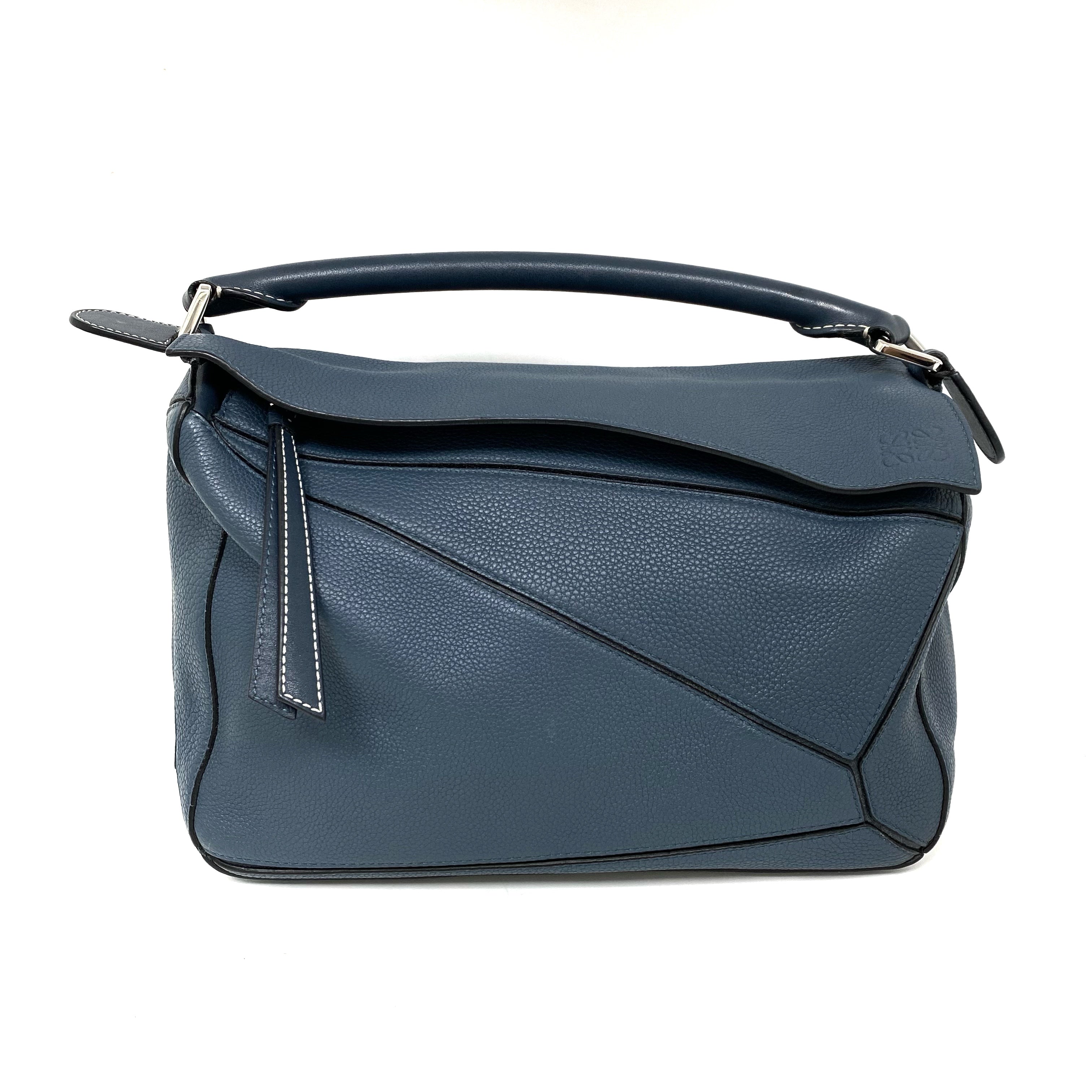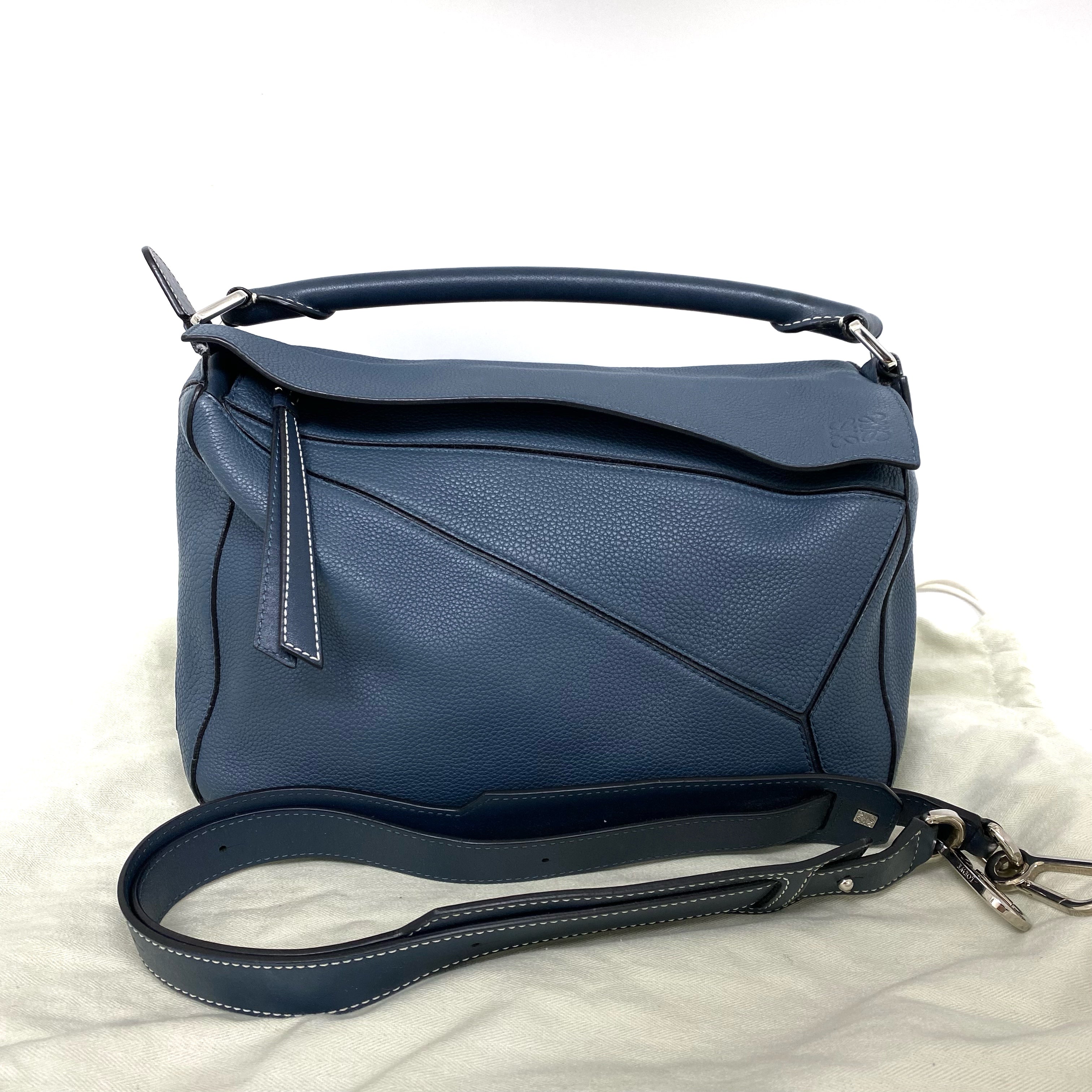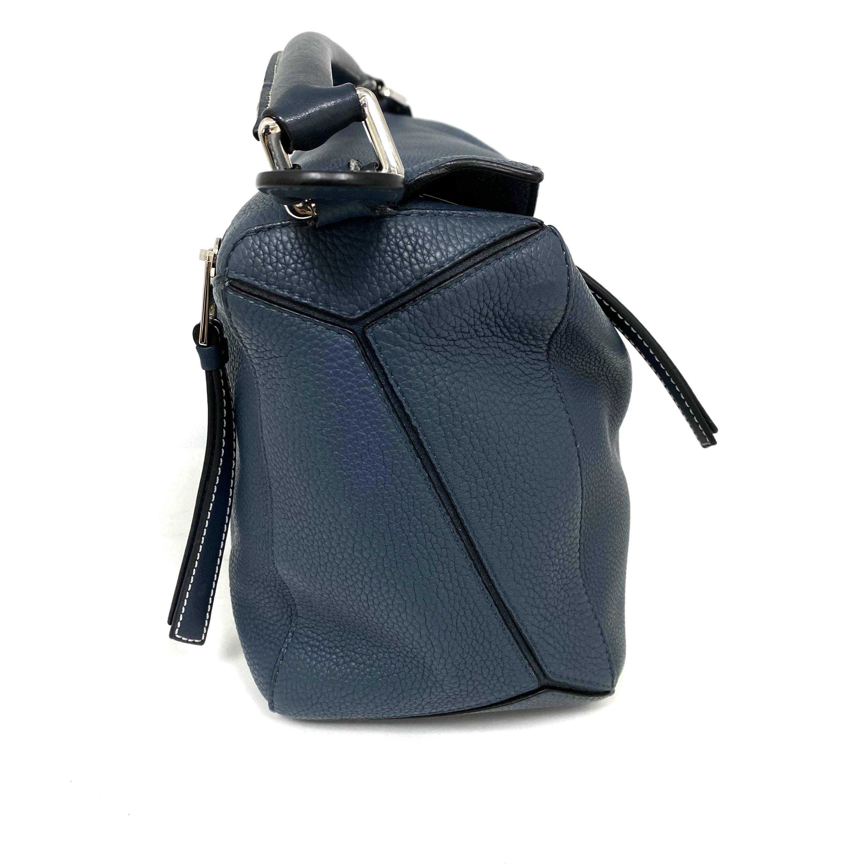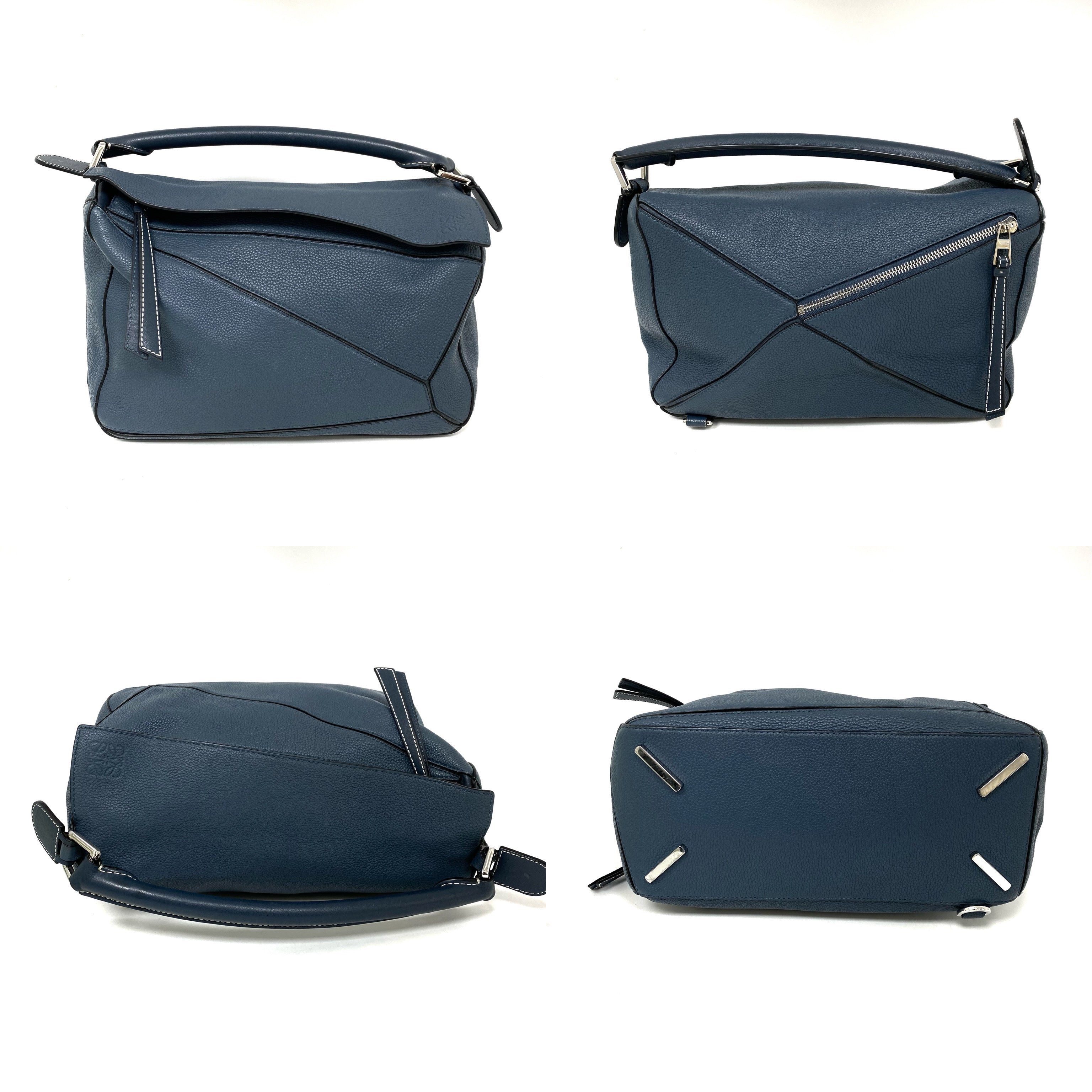 △ Loewe 羅意威 Puzzle M Size Navy Calfskin 2Way Bag 深藍色小牛皮兩用袋 -257023616