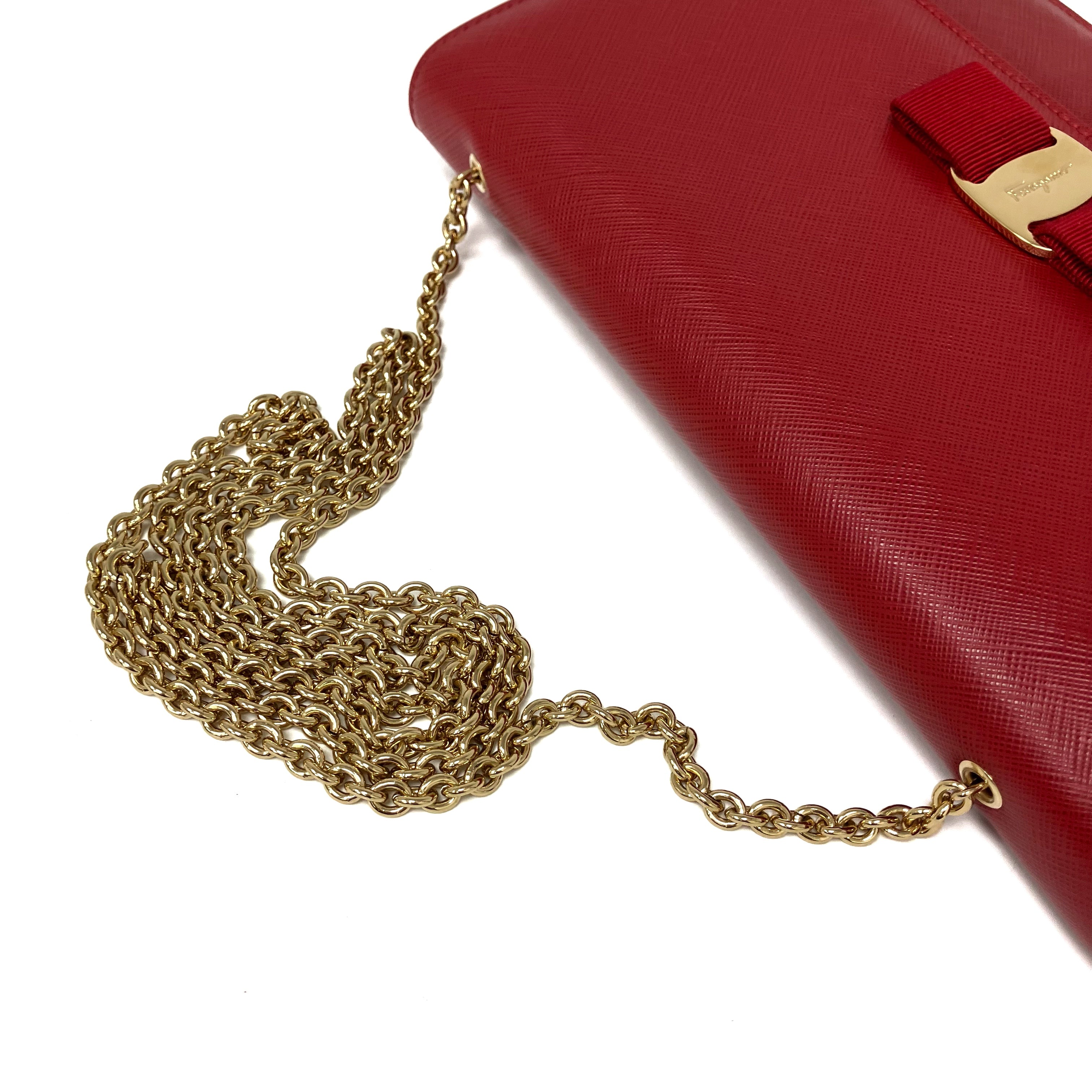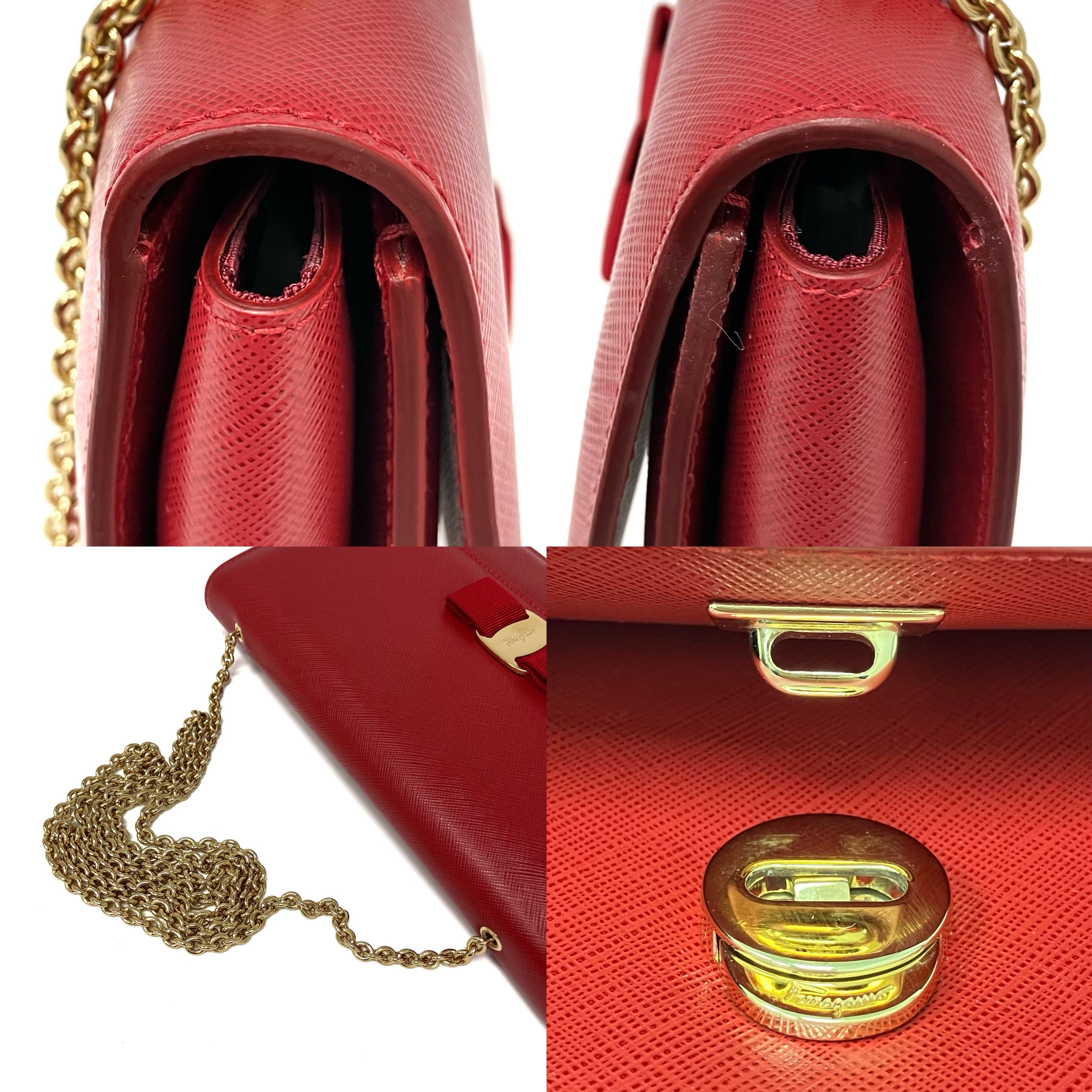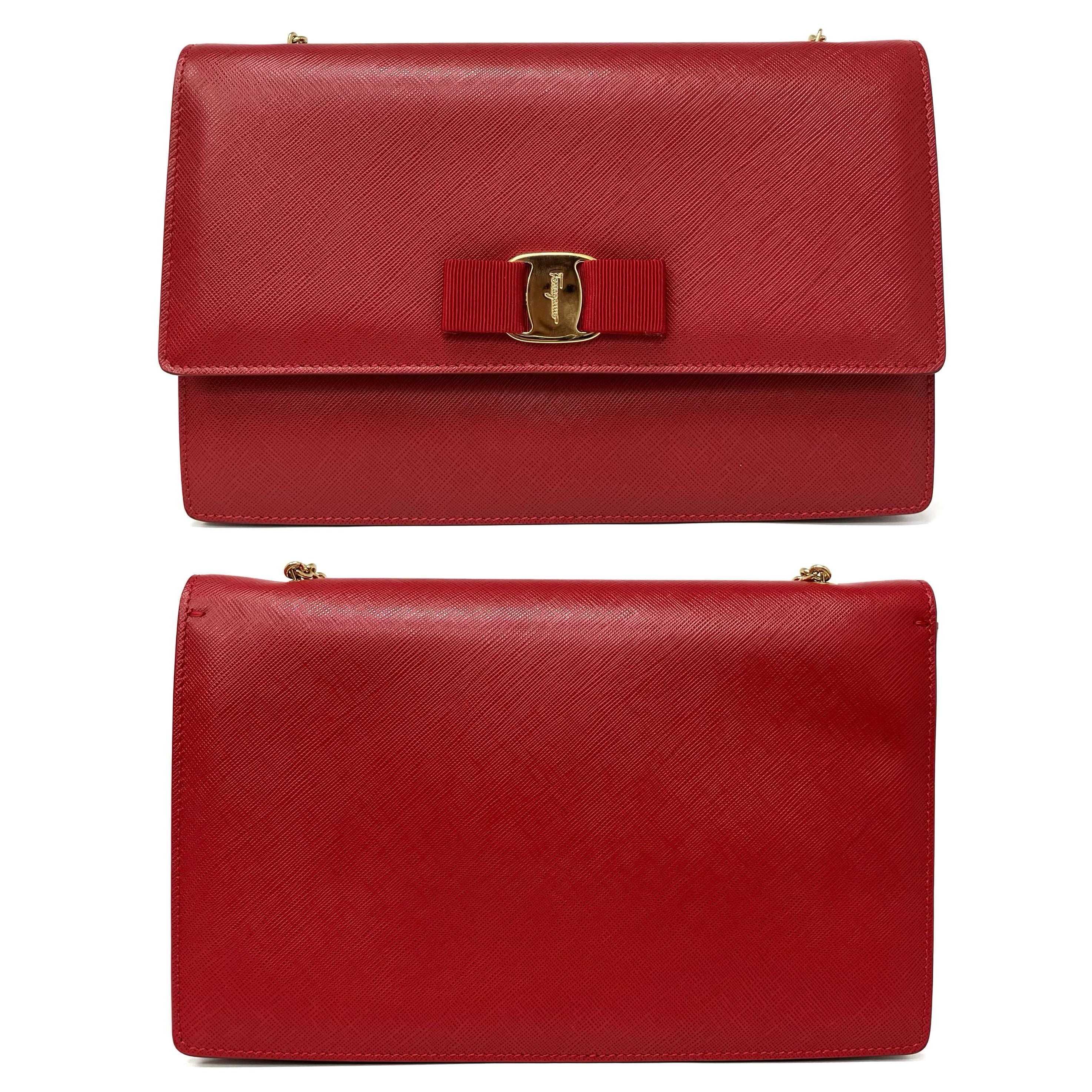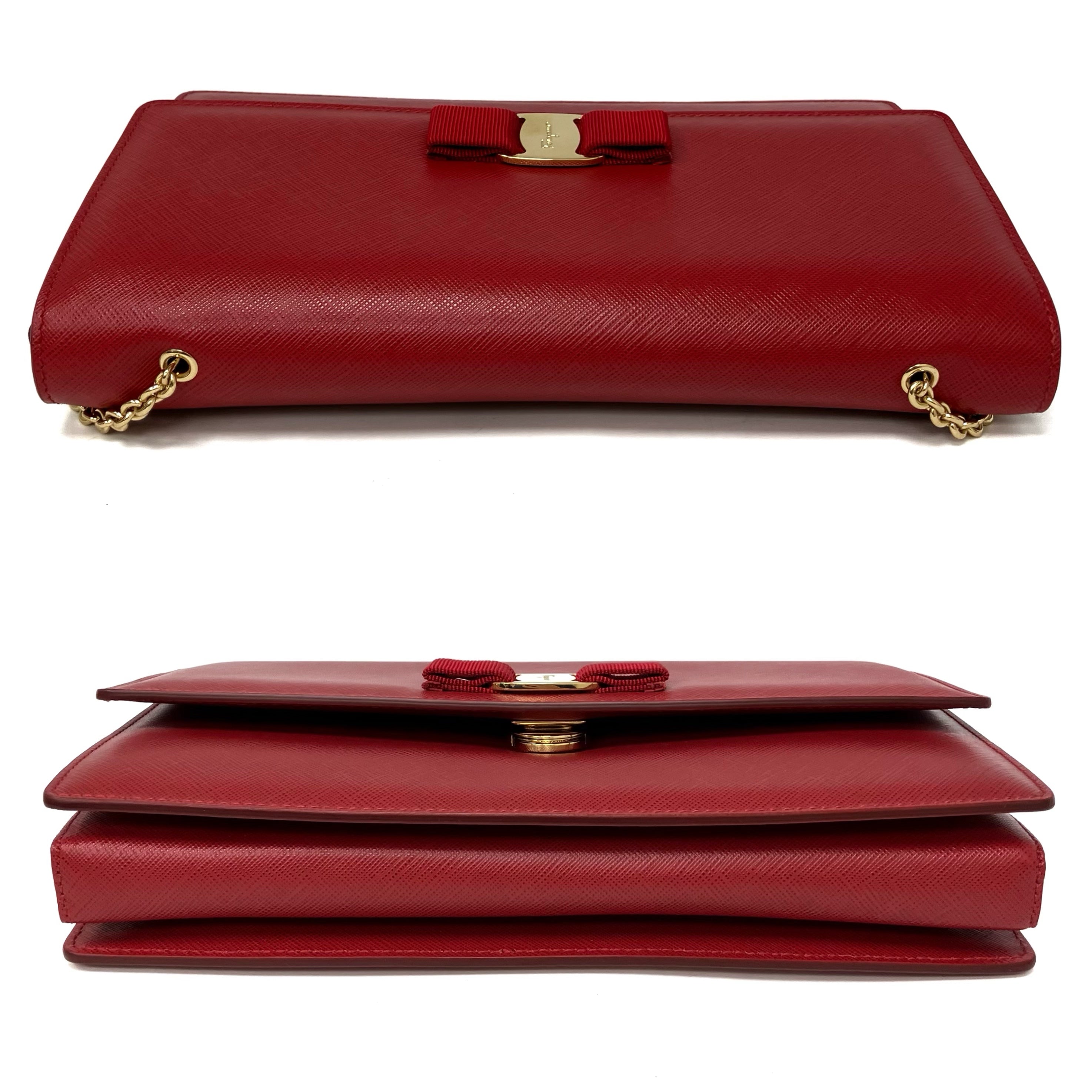 ☆ Salvatore Ferragamo 菲拉格慕 Red Saffiano Leather Chain Shoulder Bag 紅色十字紋皮革鏈條肩揹袋 - 257023639