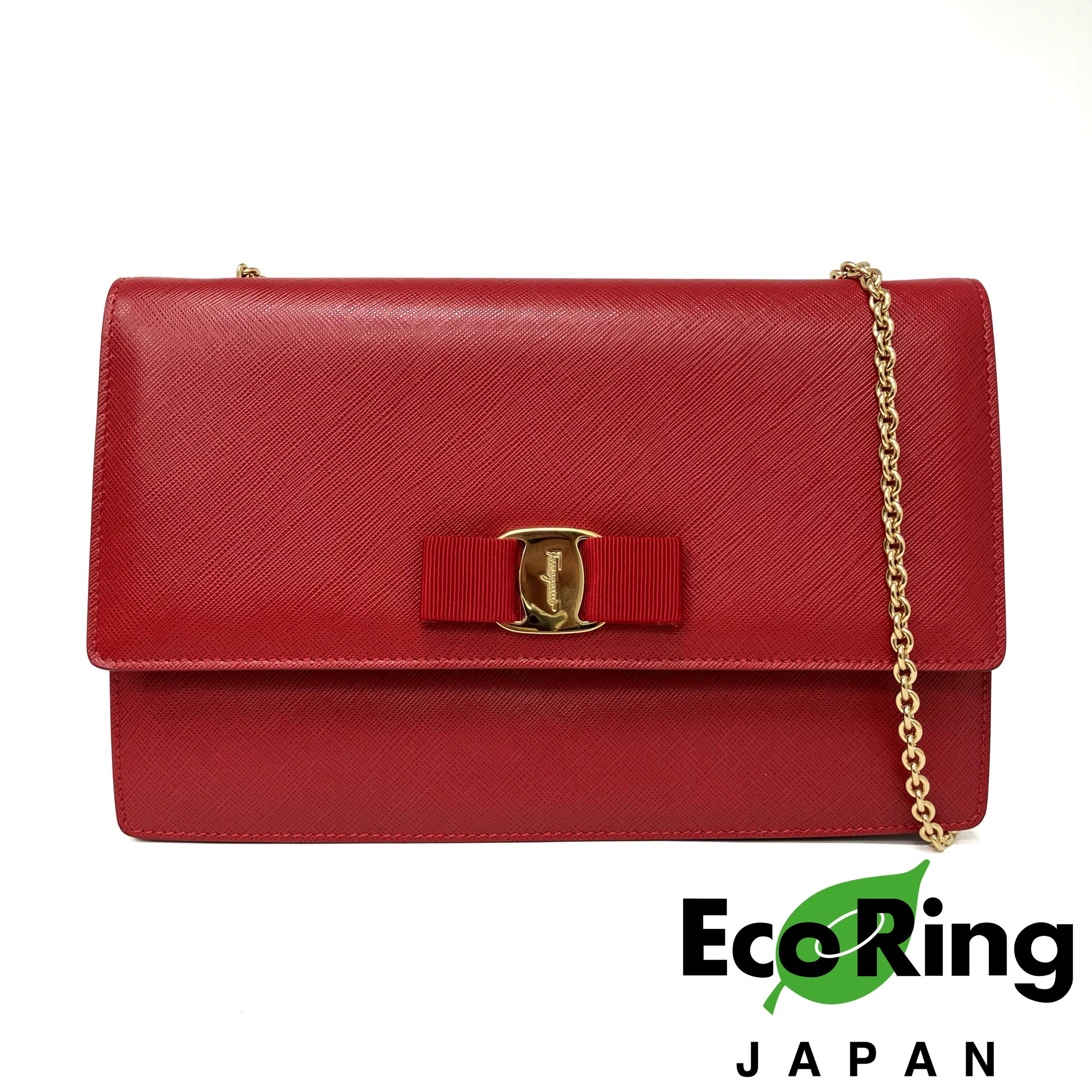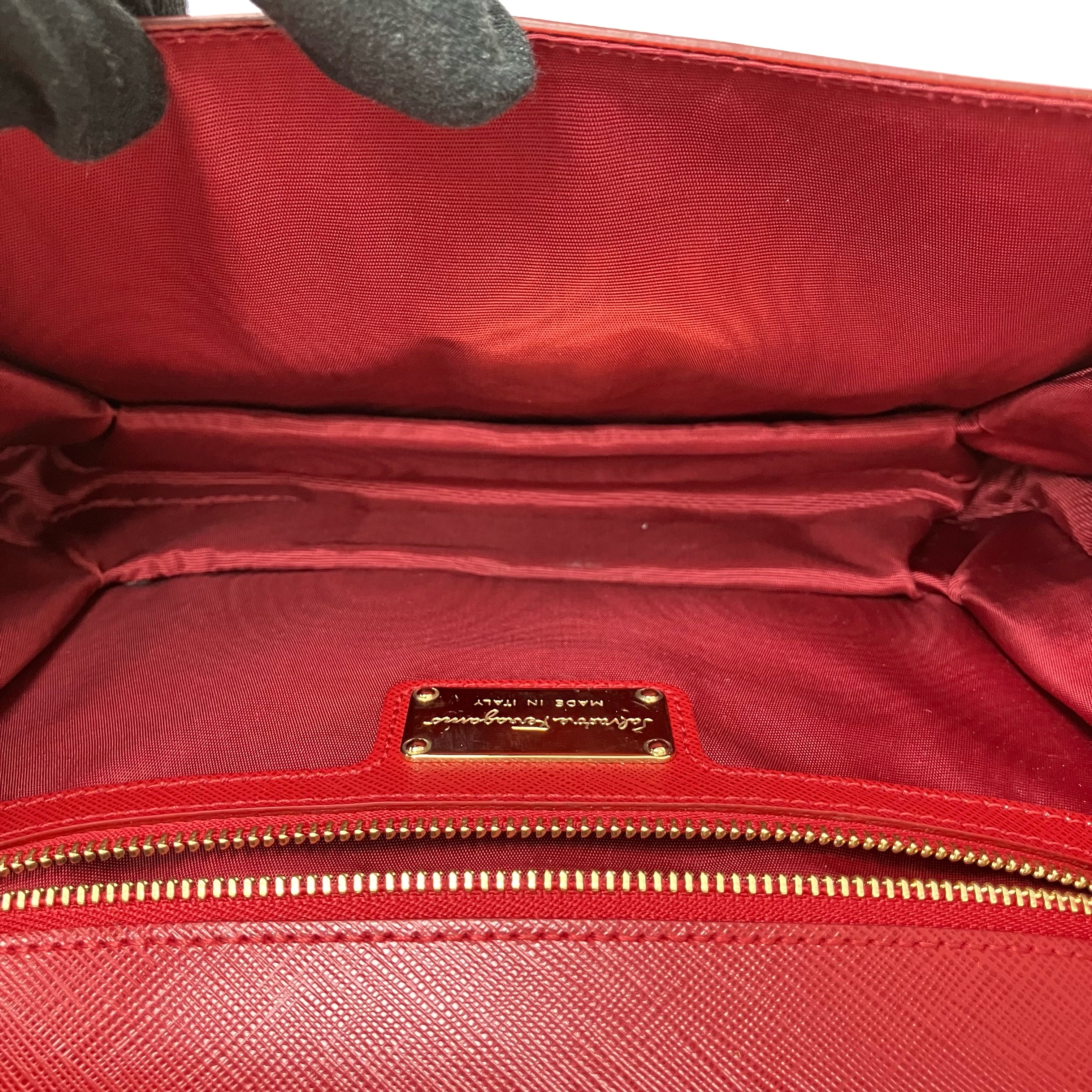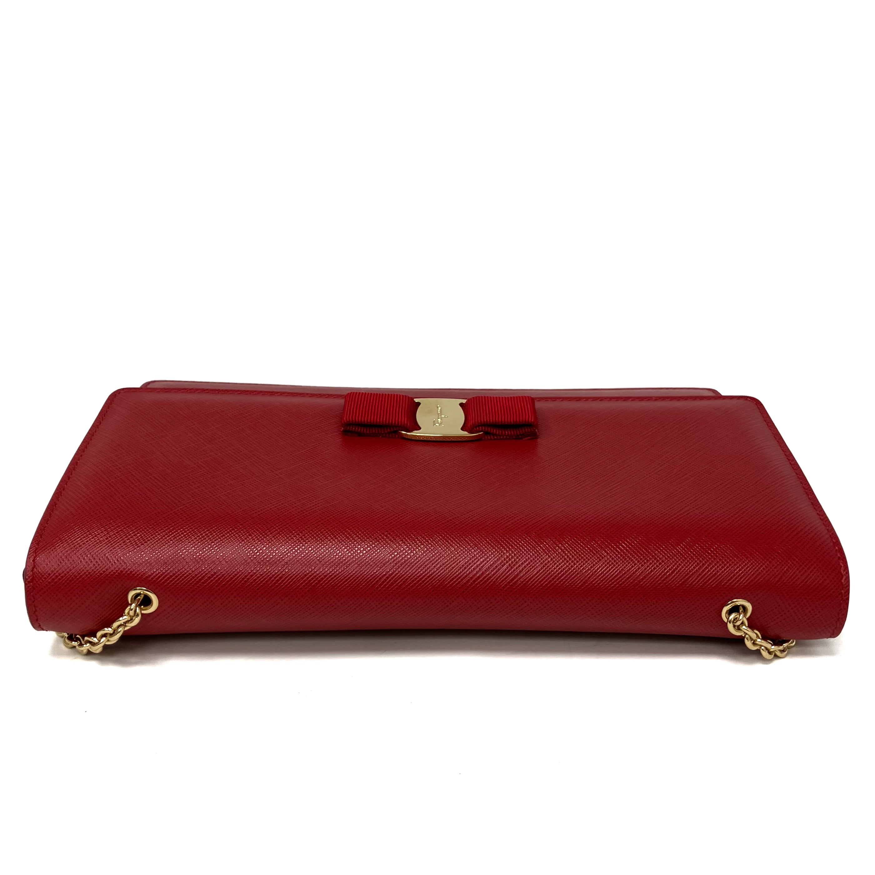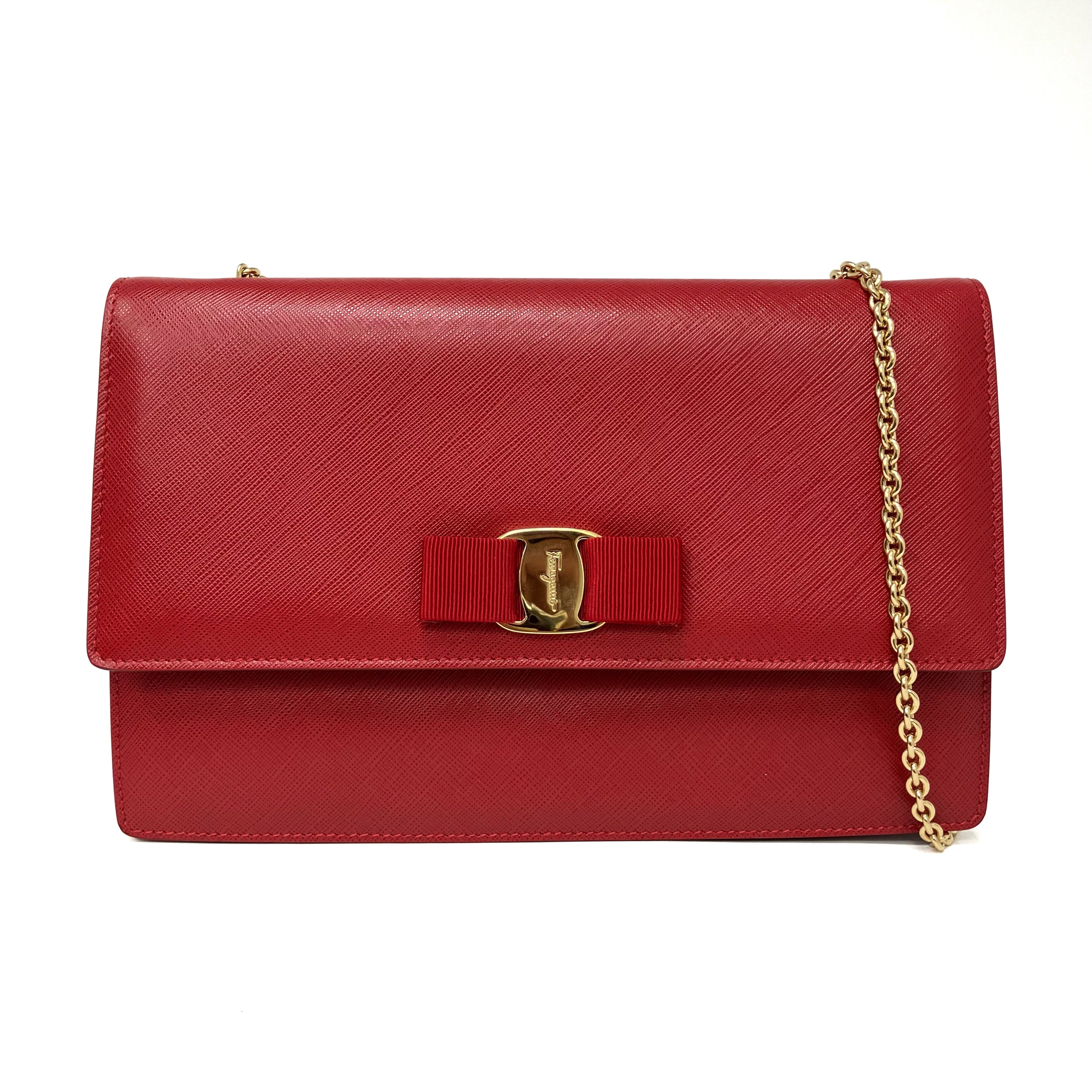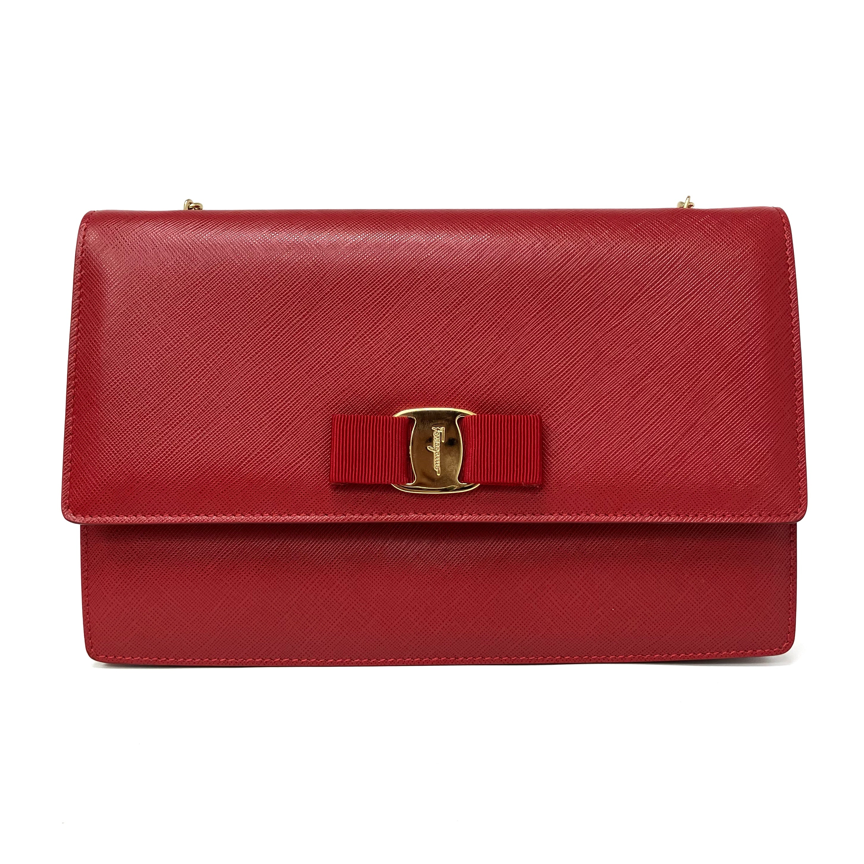 ☆ Salvatore Ferragamo 菲拉格慕 Red Saffiano Leather Chain Shoulder Bag 紅色十字紋皮革鏈條肩揹袋 - 257023639