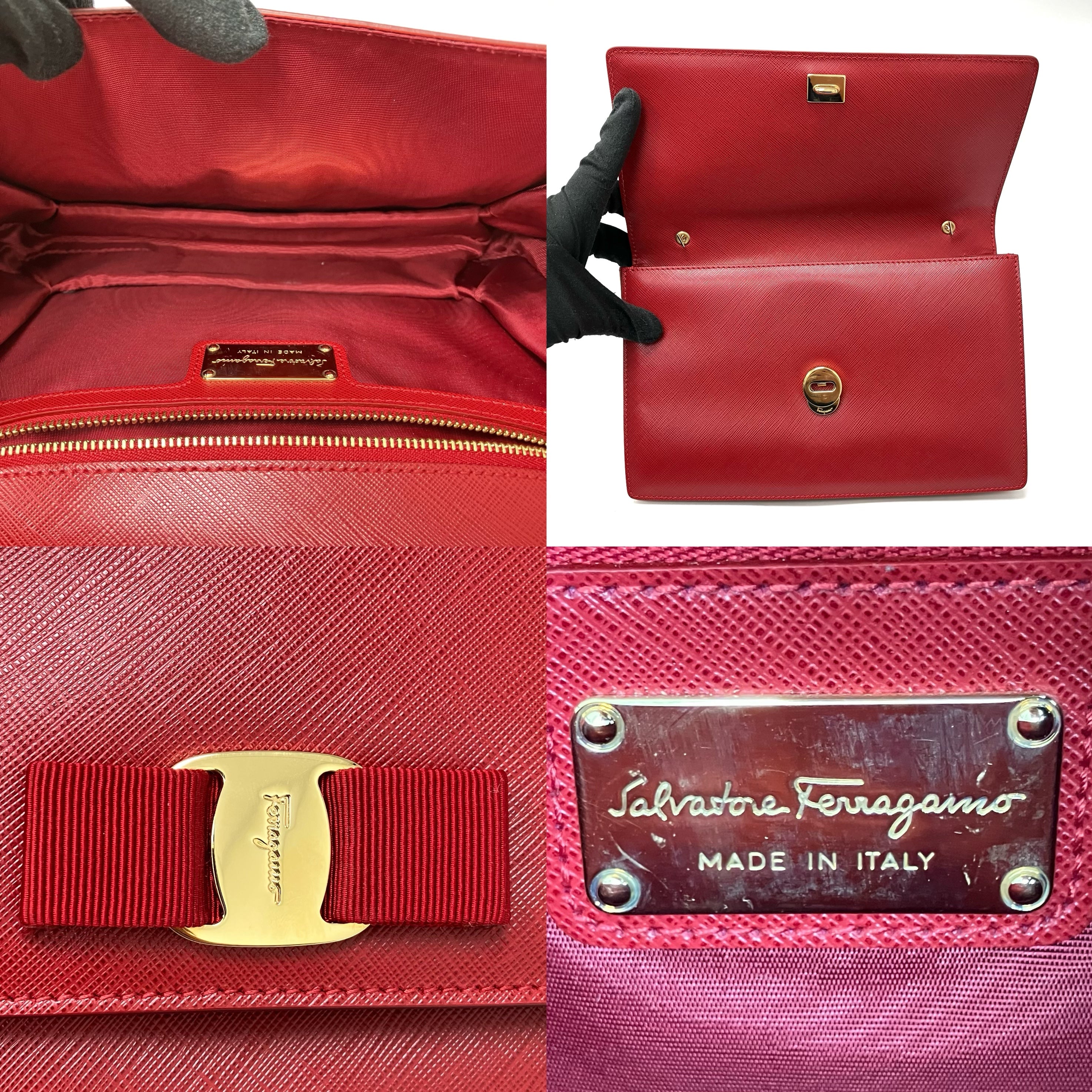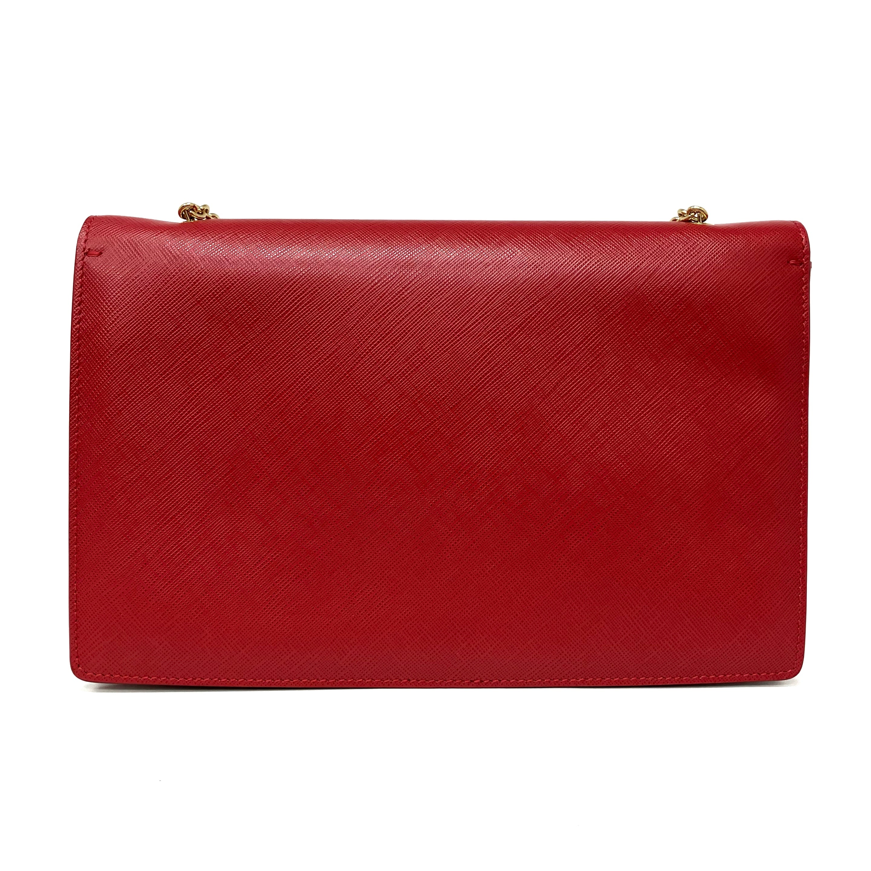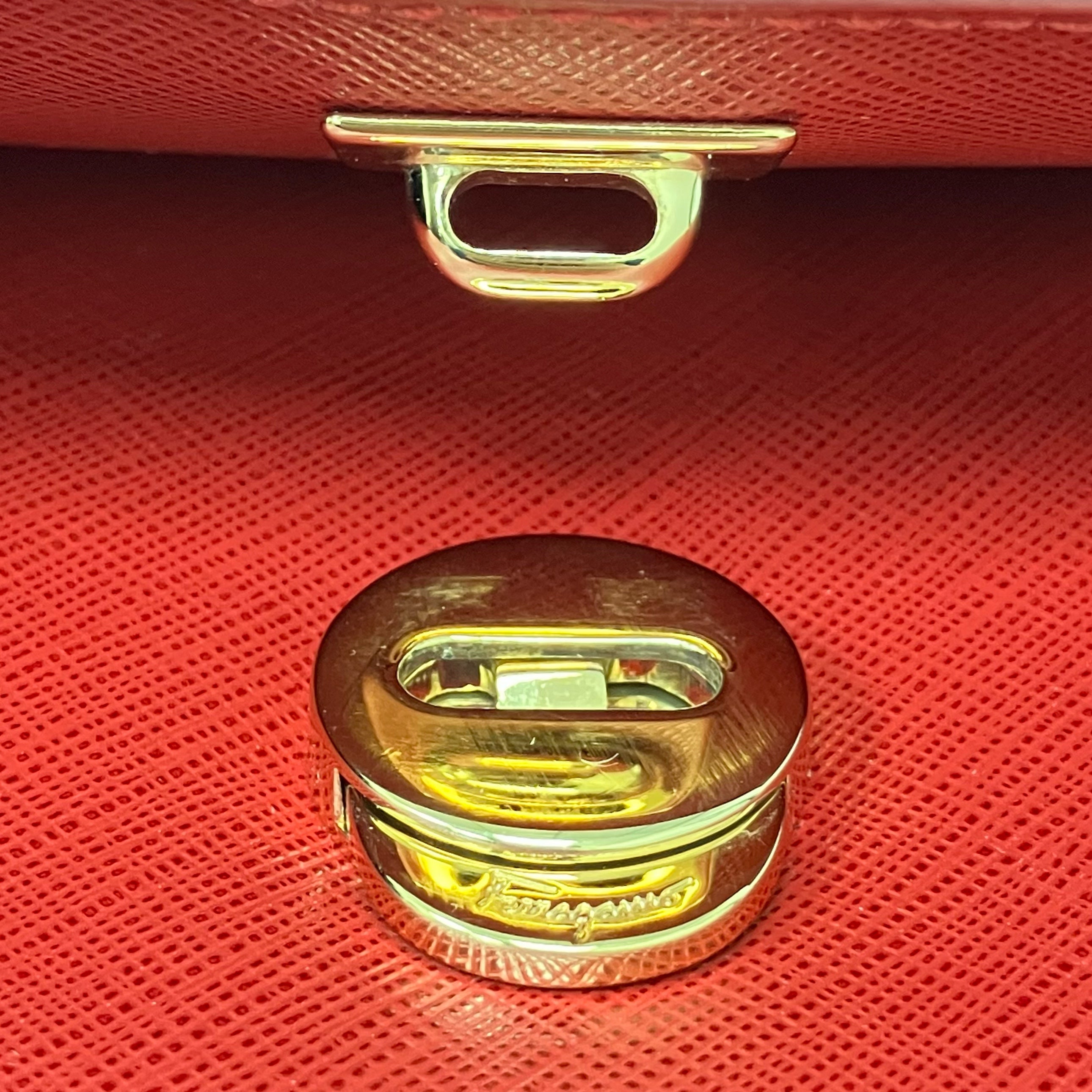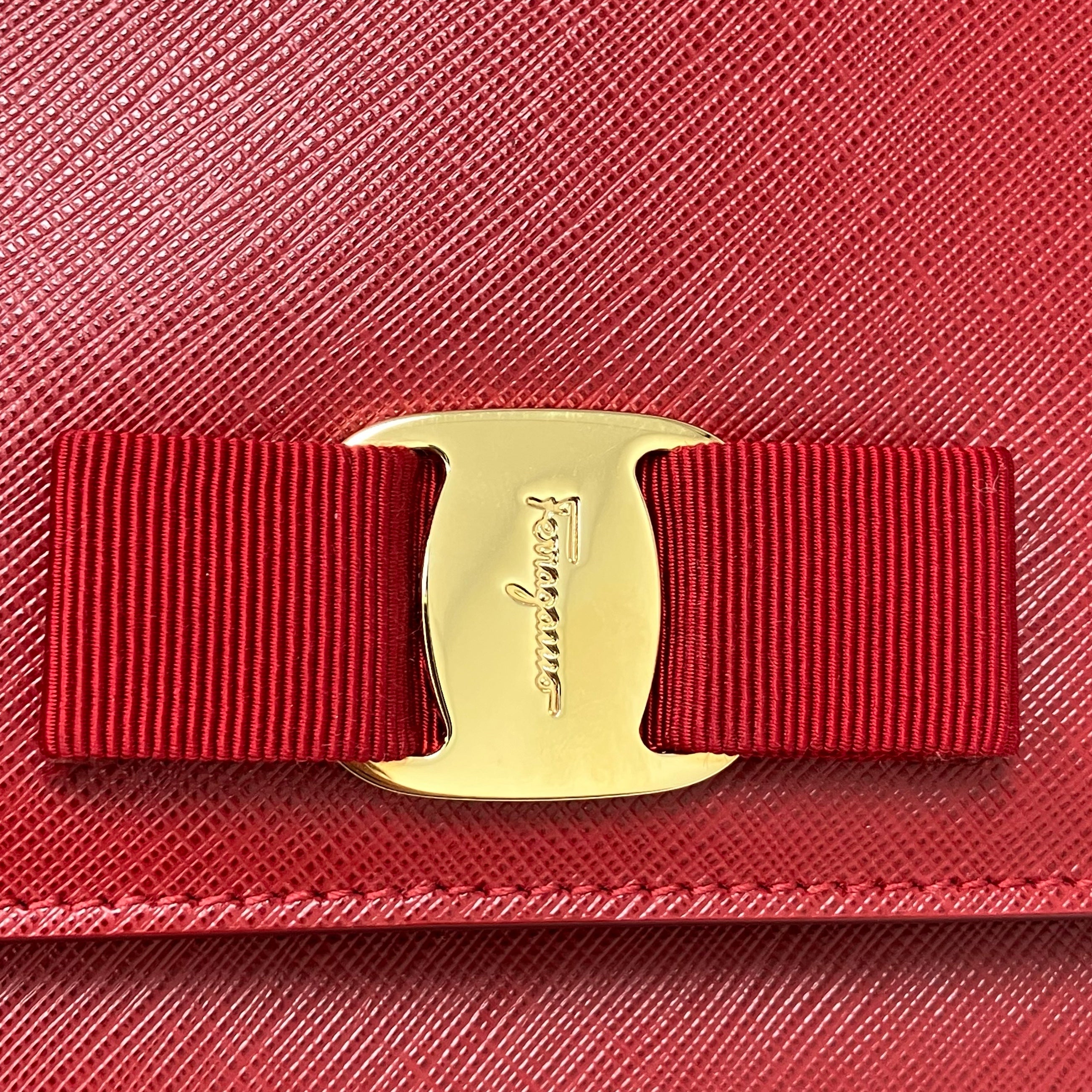 ☆ Salvatore Ferragamo 菲拉格慕 Red Saffiano Leather Chain Shoulder Bag 紅色十字紋皮革鏈條肩揹袋 - 257023639