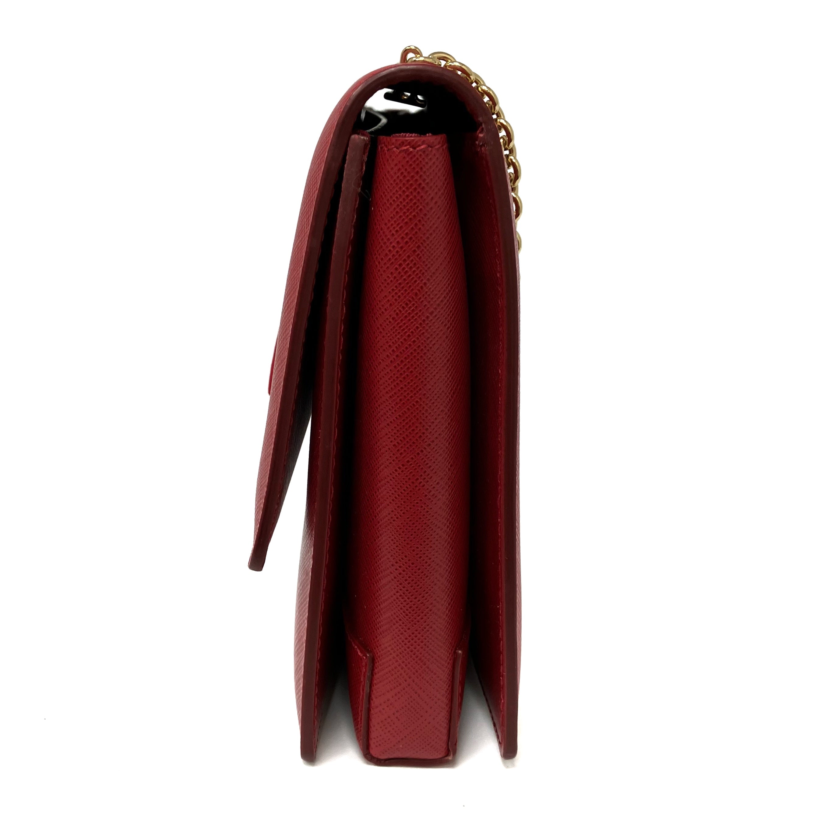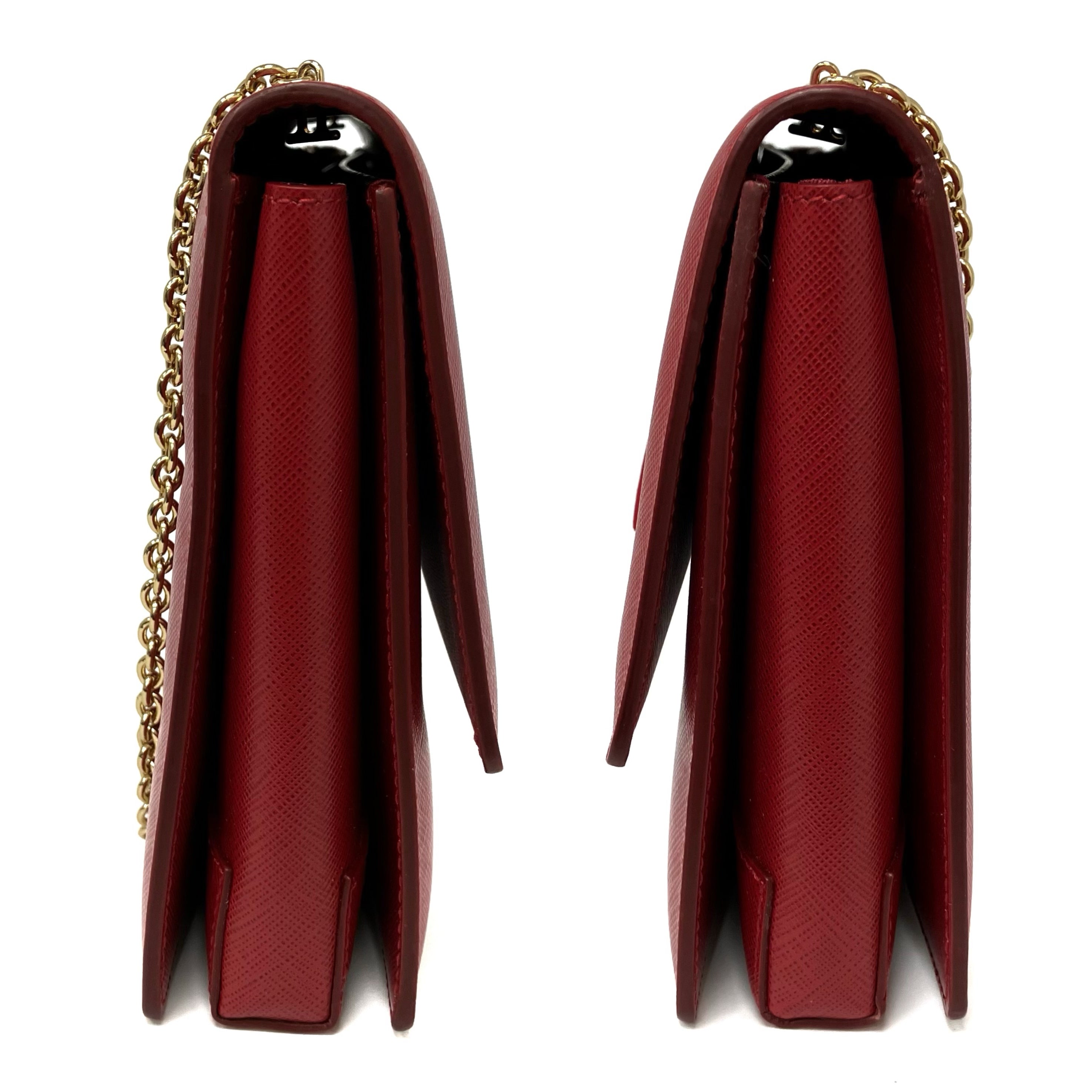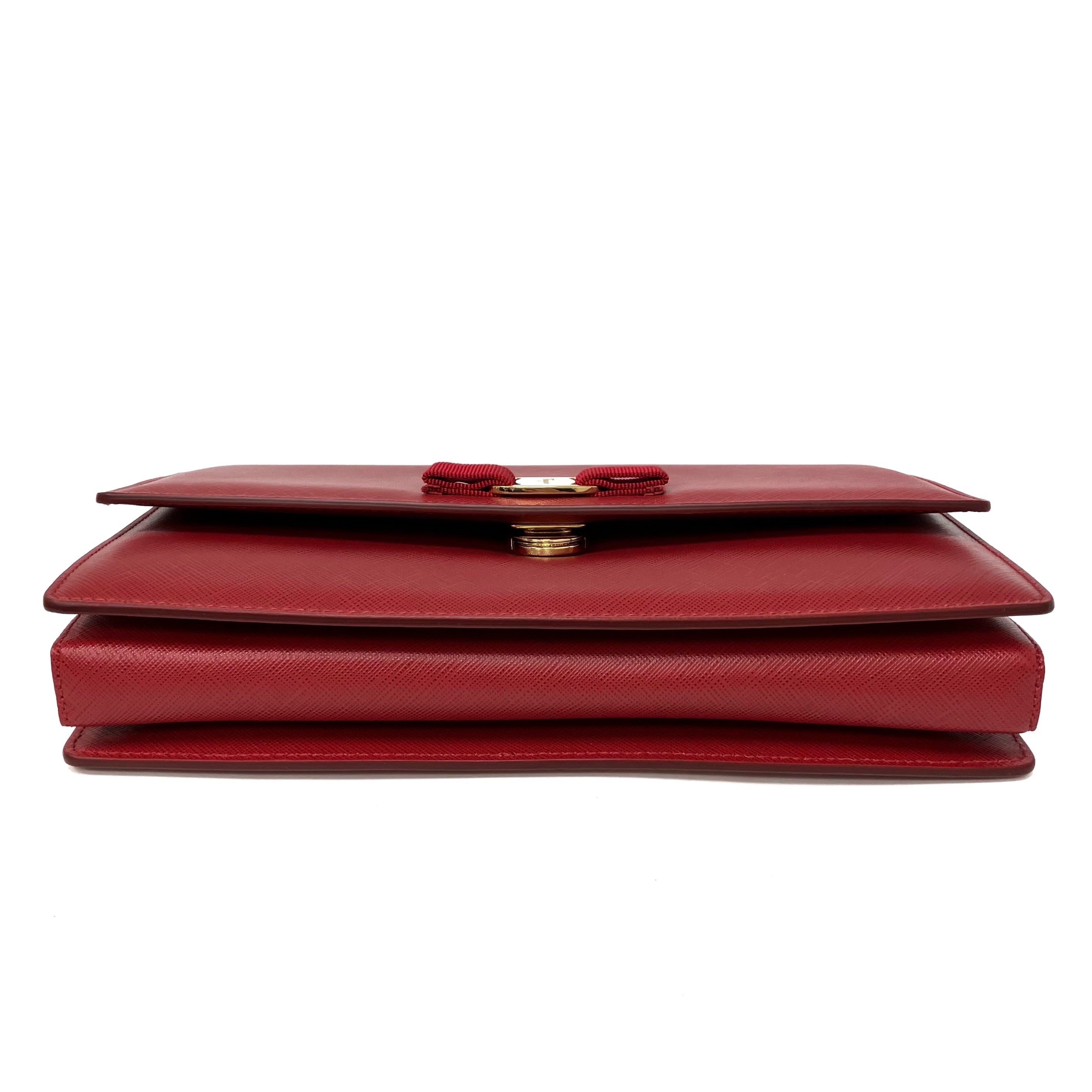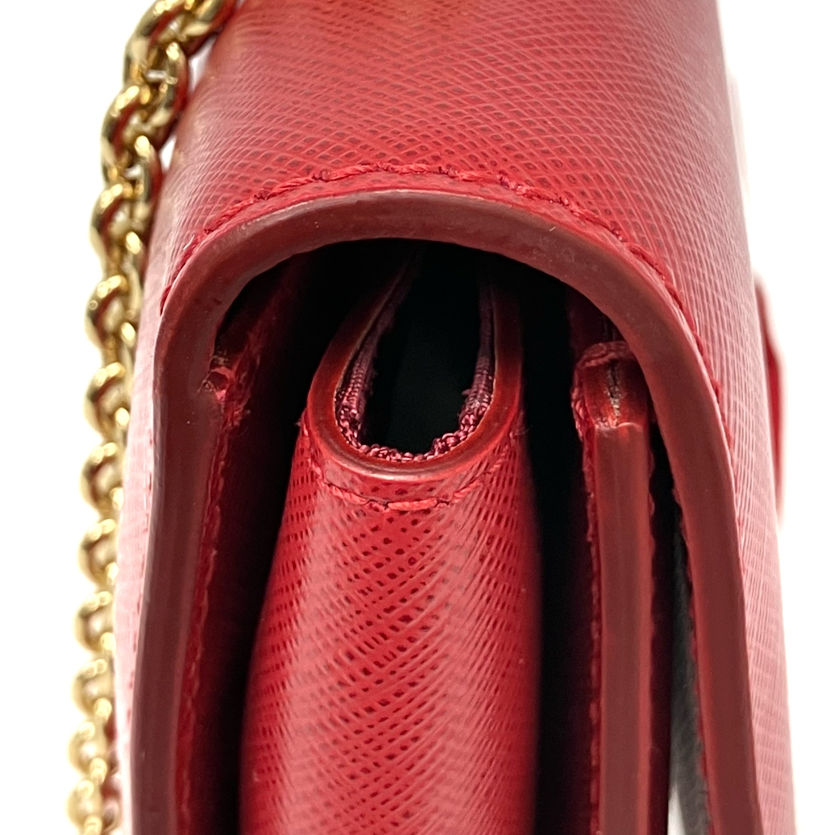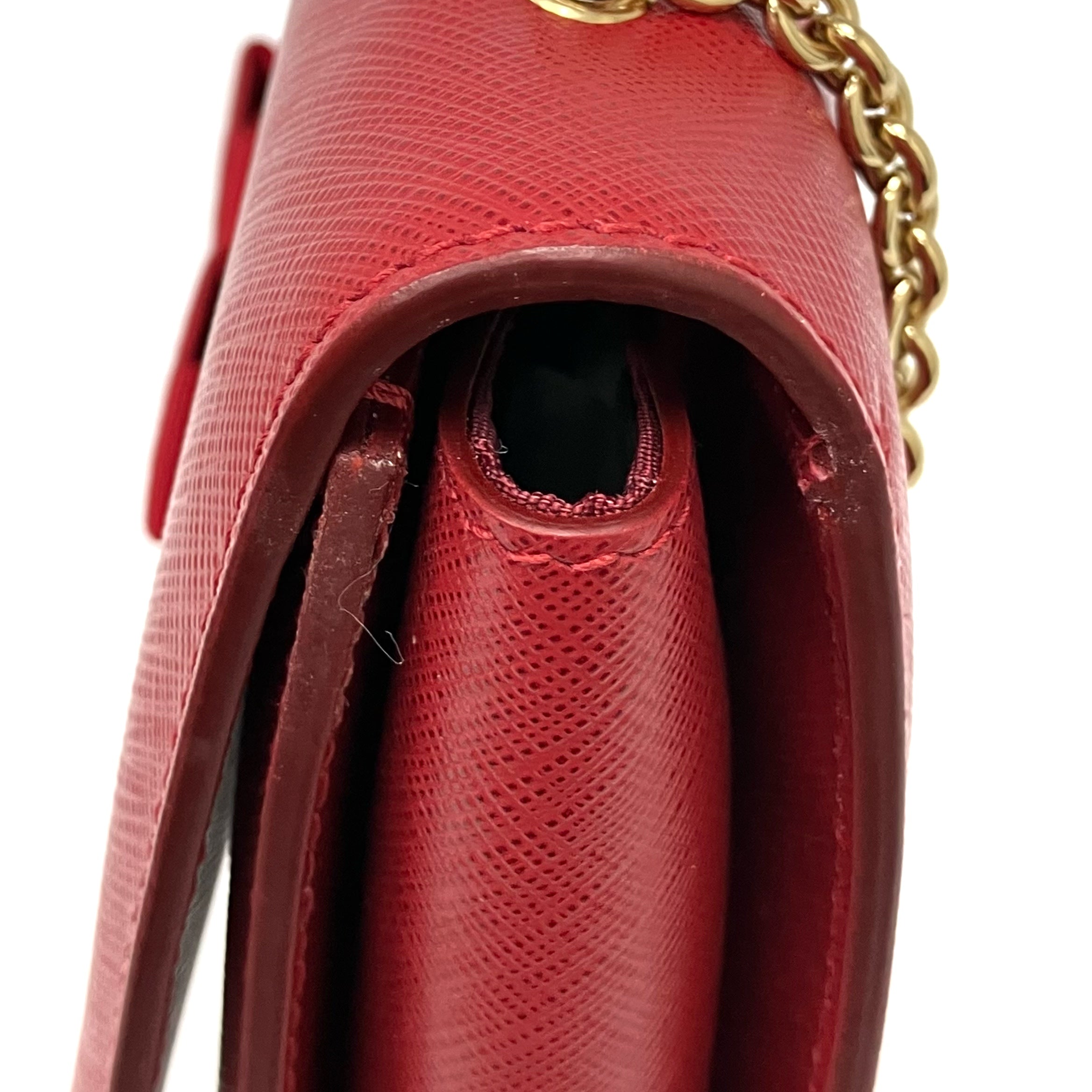 ☆ Salvatore Ferragamo 菲拉格慕 Red Saffiano Leather Chain Shoulder Bag 紅色十字紋皮革鏈條肩揹袋 - 257023639