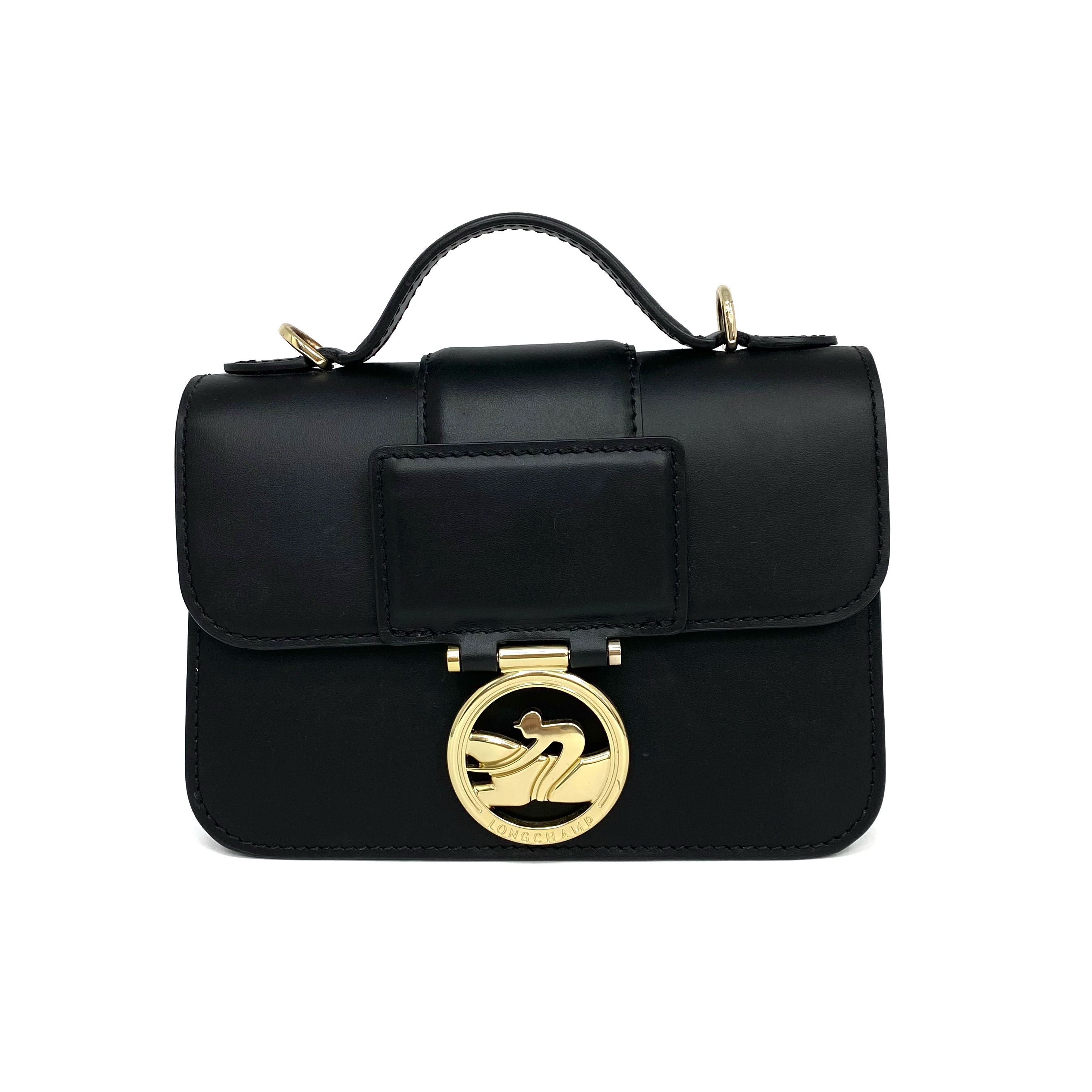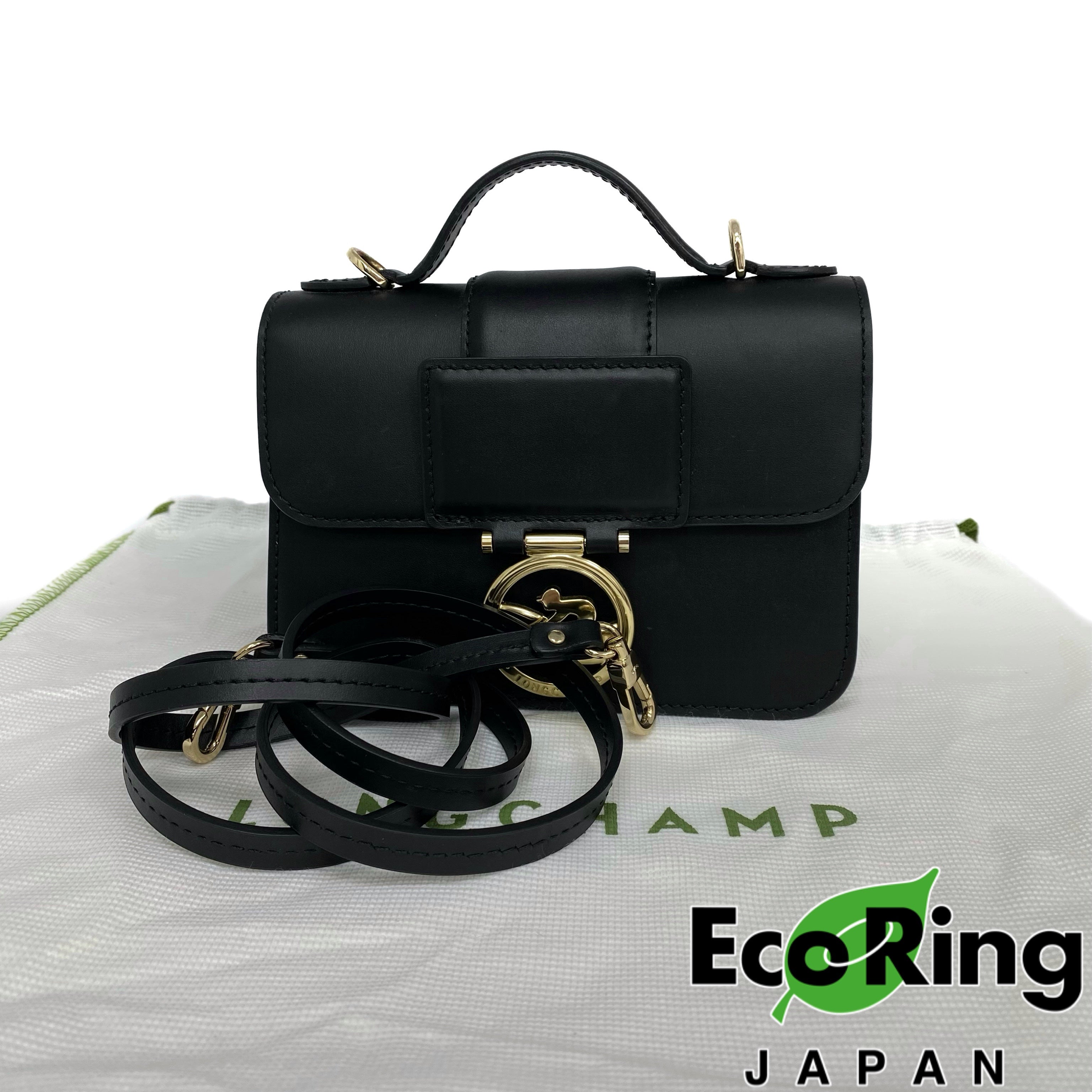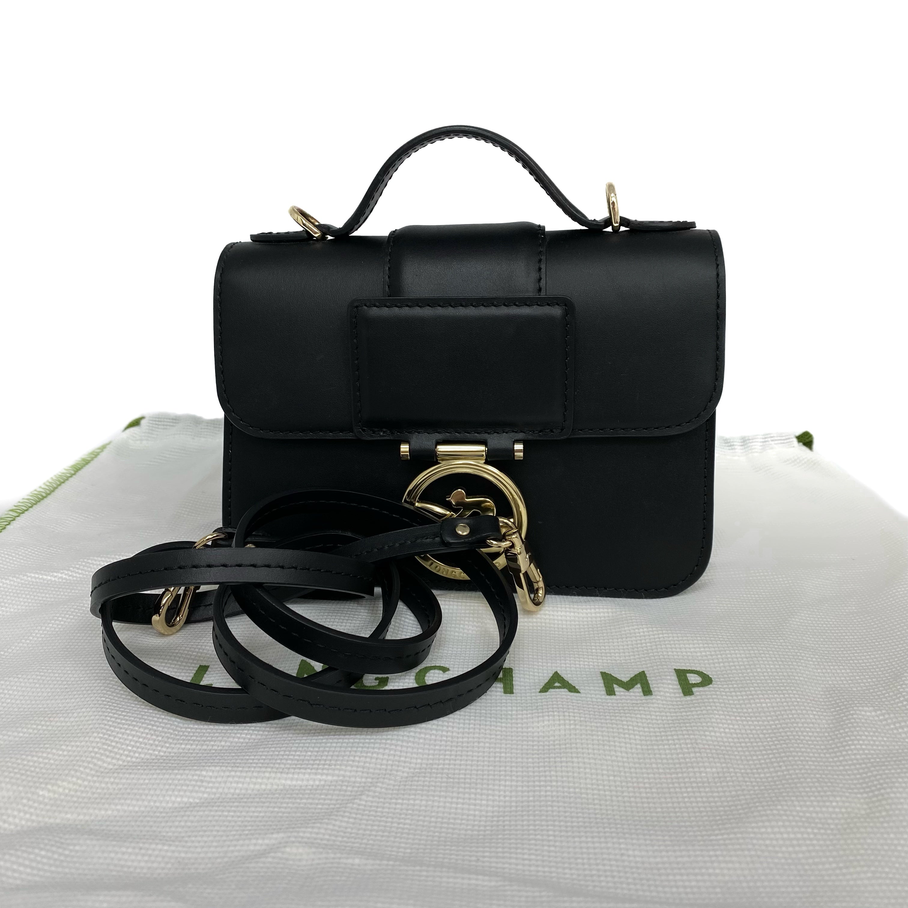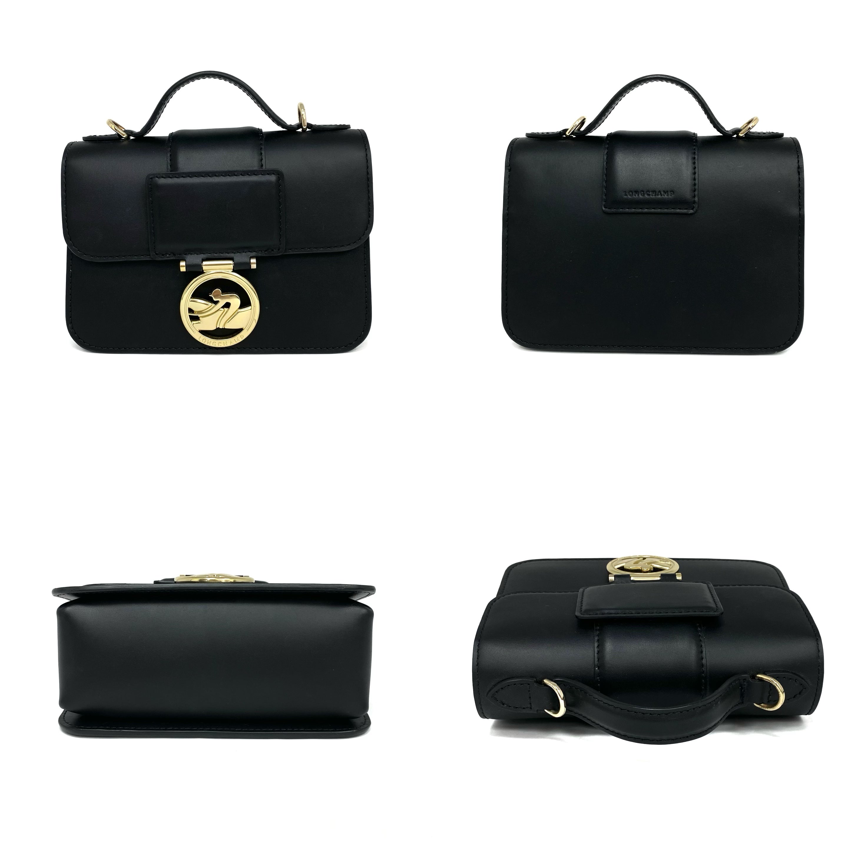 ☆ Longchamp 瓏驤 Black Calfskin 2Way Bag 黑色小牛皮兩用袋 - 257023697