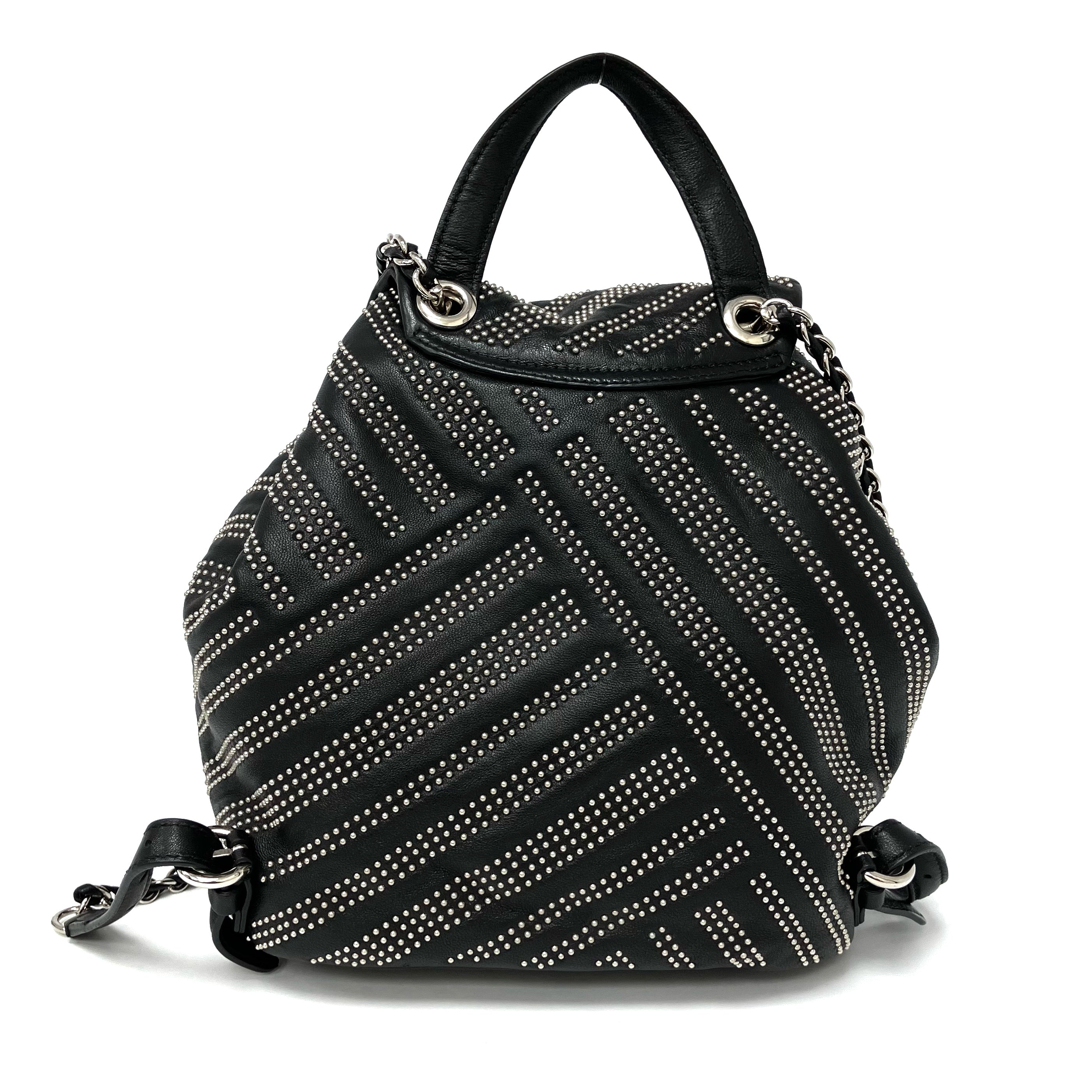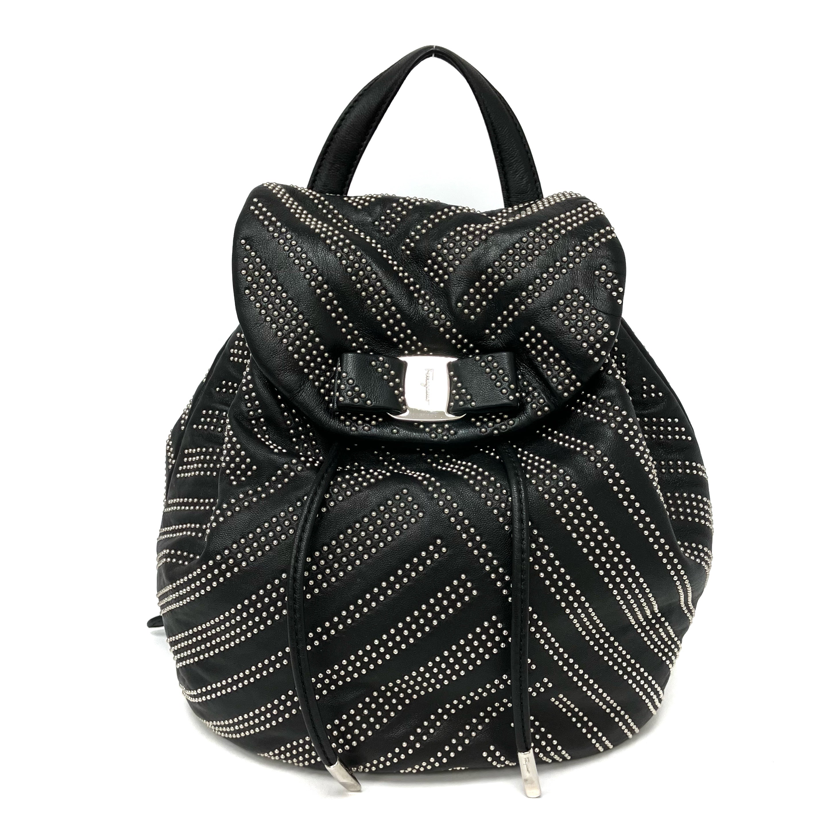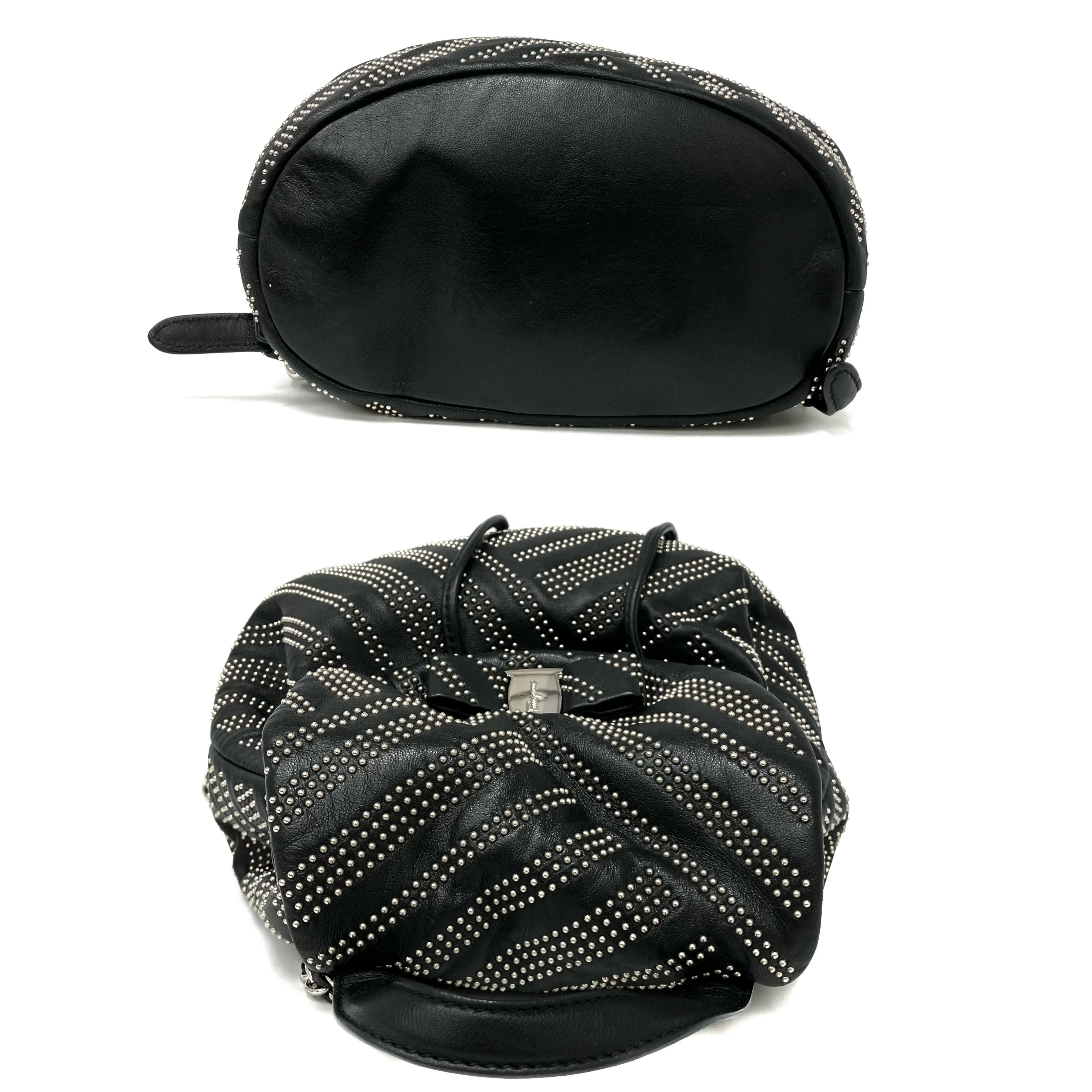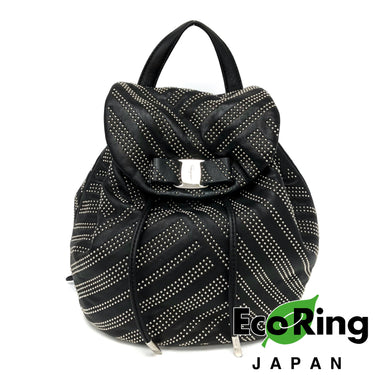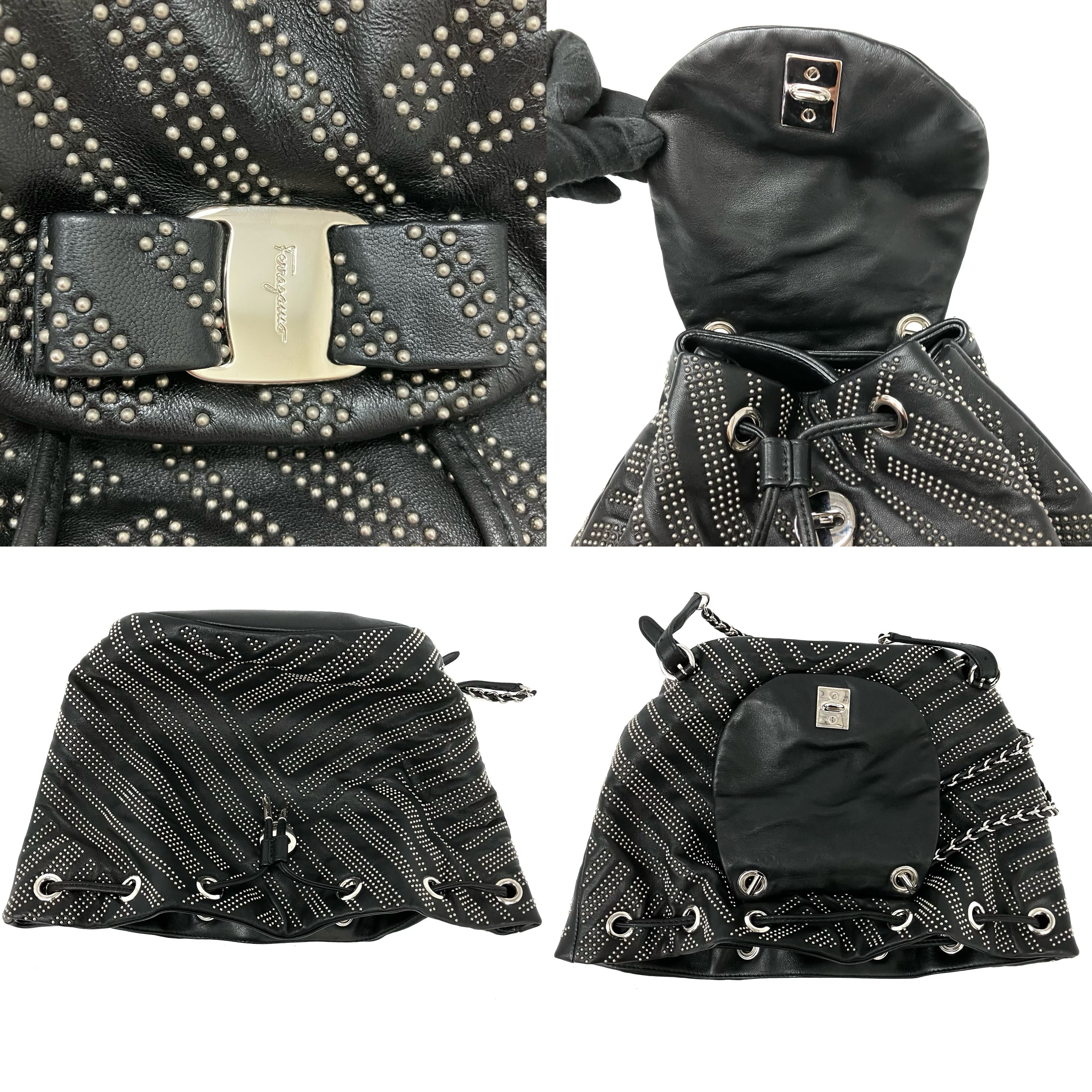 ☆ Salvatore Ferragamo 菲拉格慕 Black Lambskin Studs Chain Backpack 黑色小羊皮飾釘鏈條背包 - 257023900