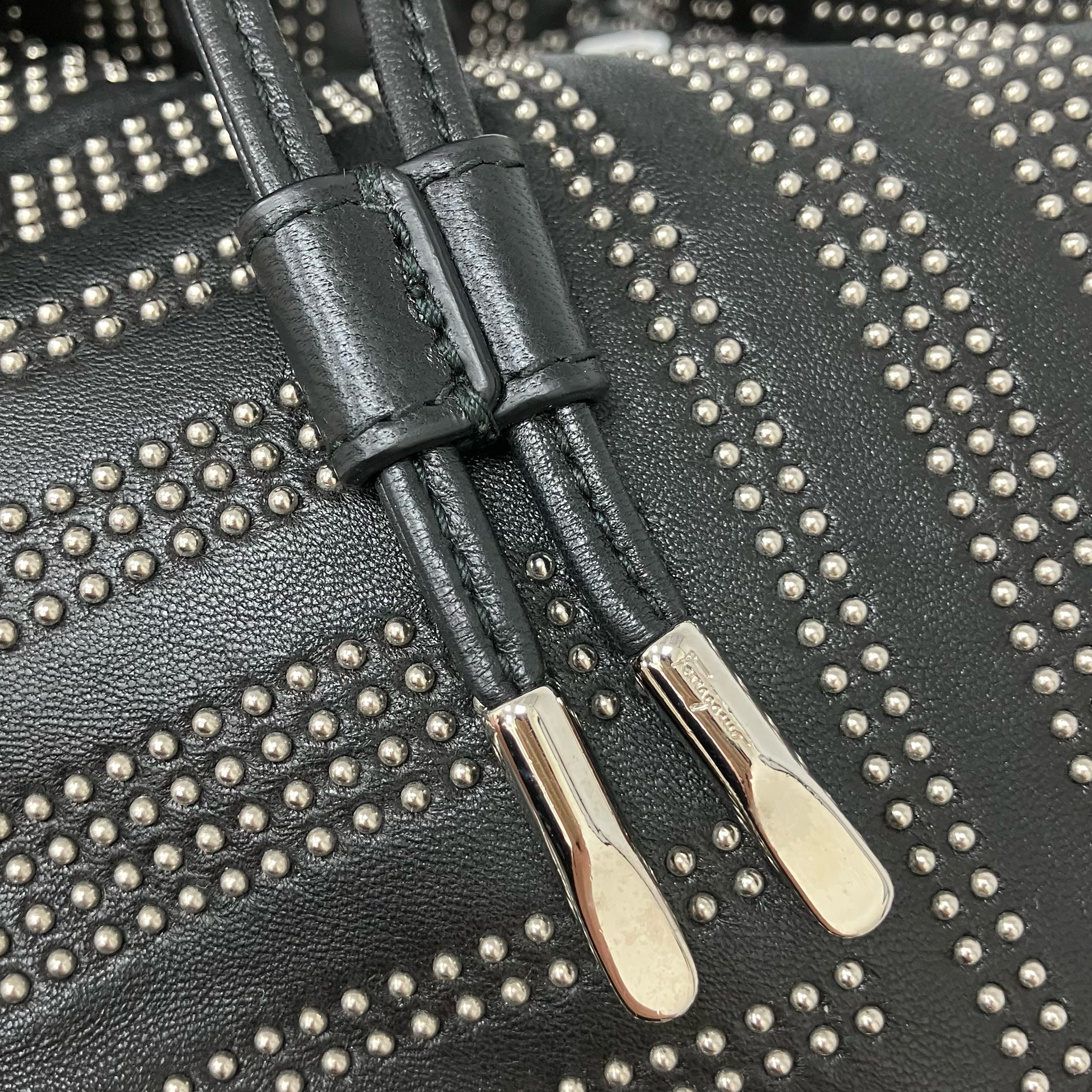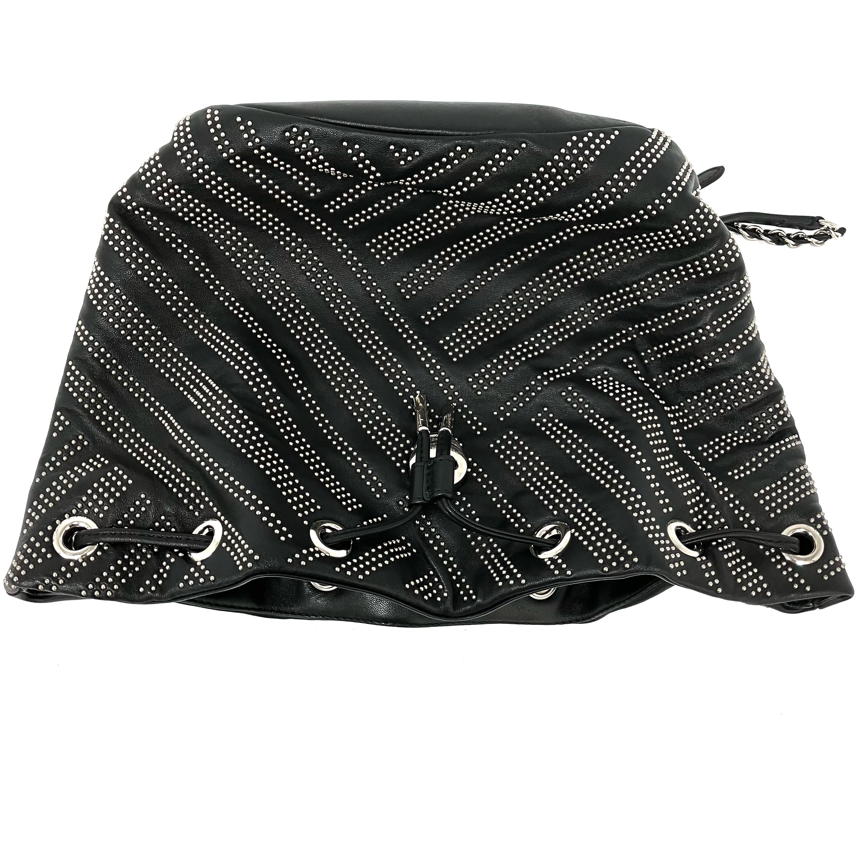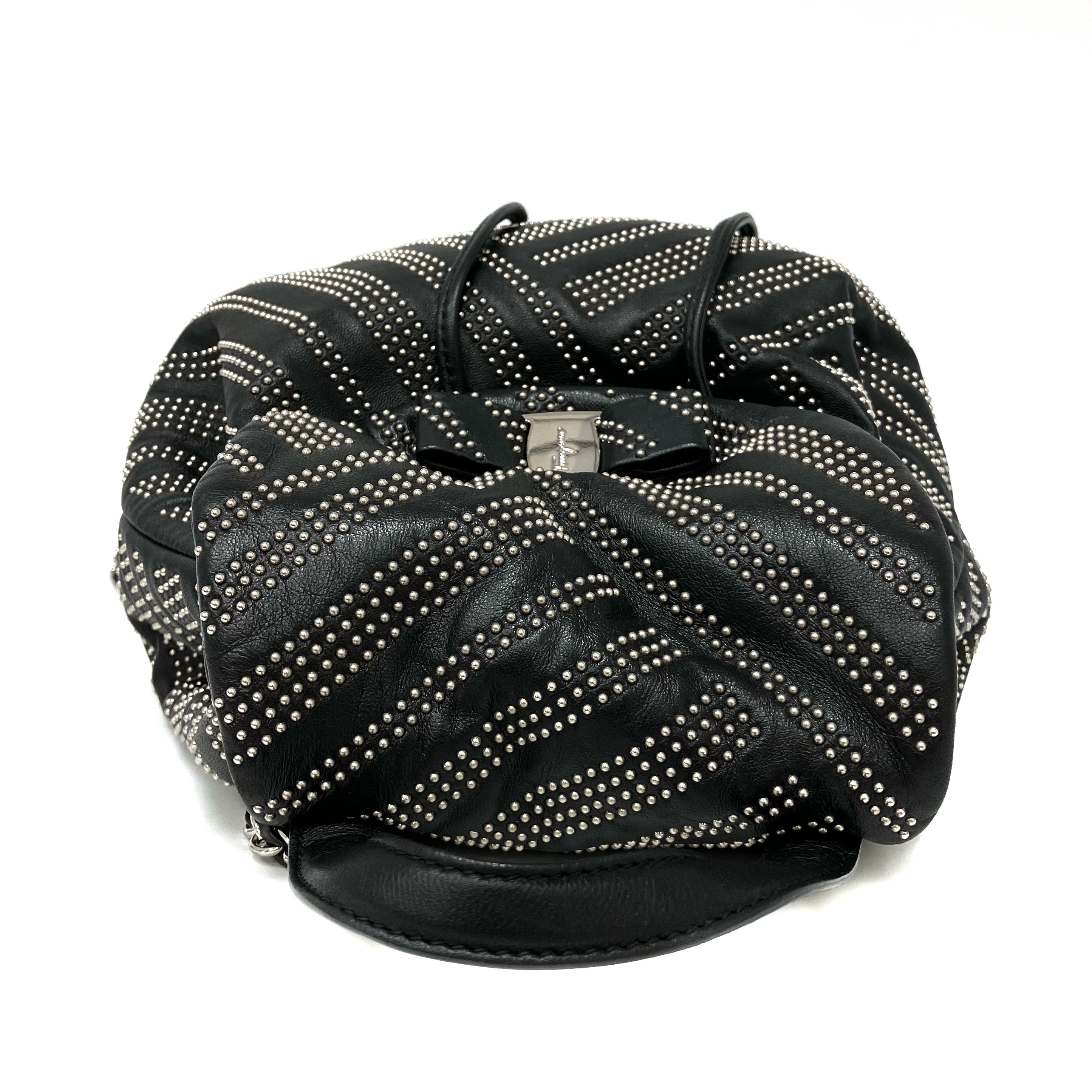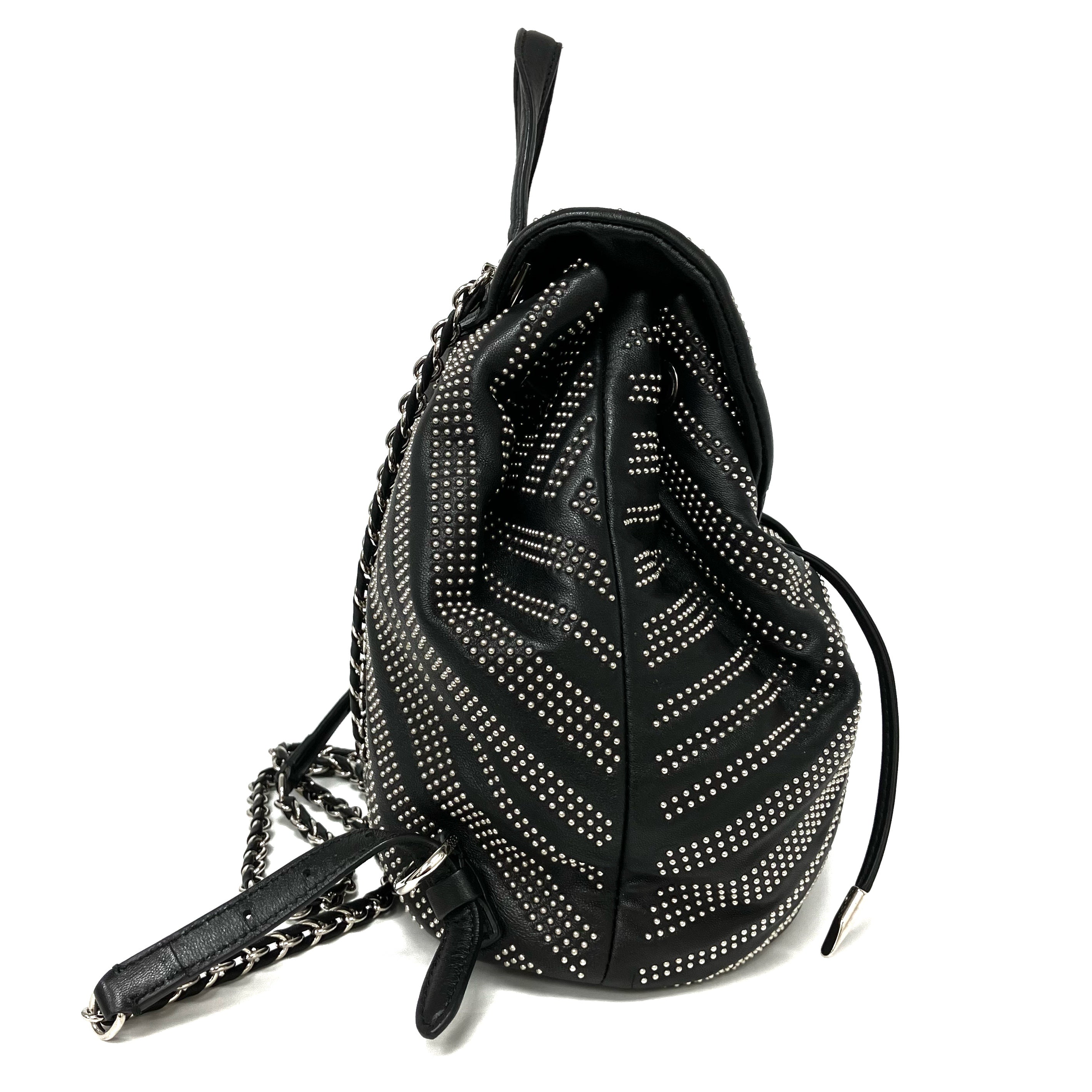 ☆ Salvatore Ferragamo 菲拉格慕 Black Lambskin Studs Chain Backpack 黑色小羊皮飾釘鏈條背包 - 257023900