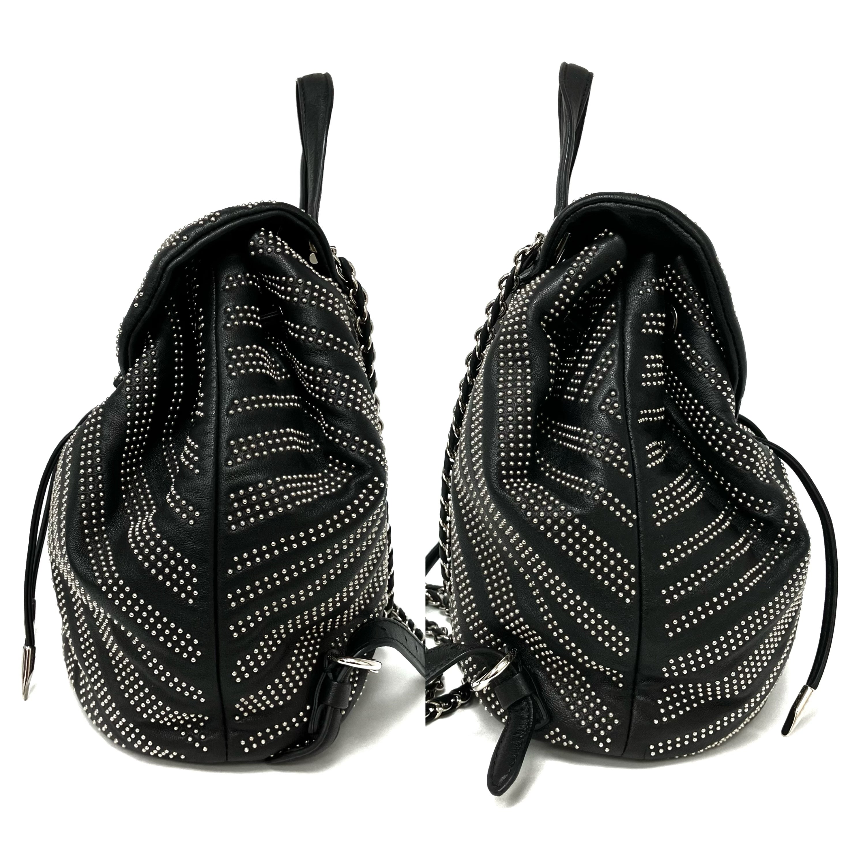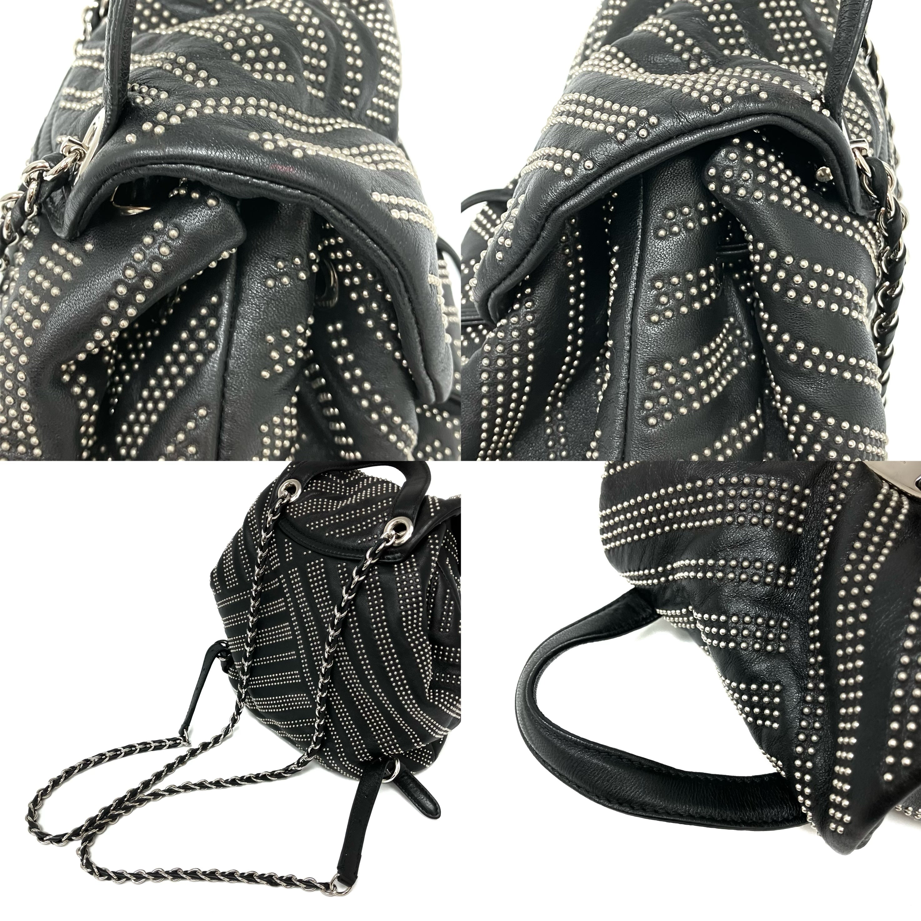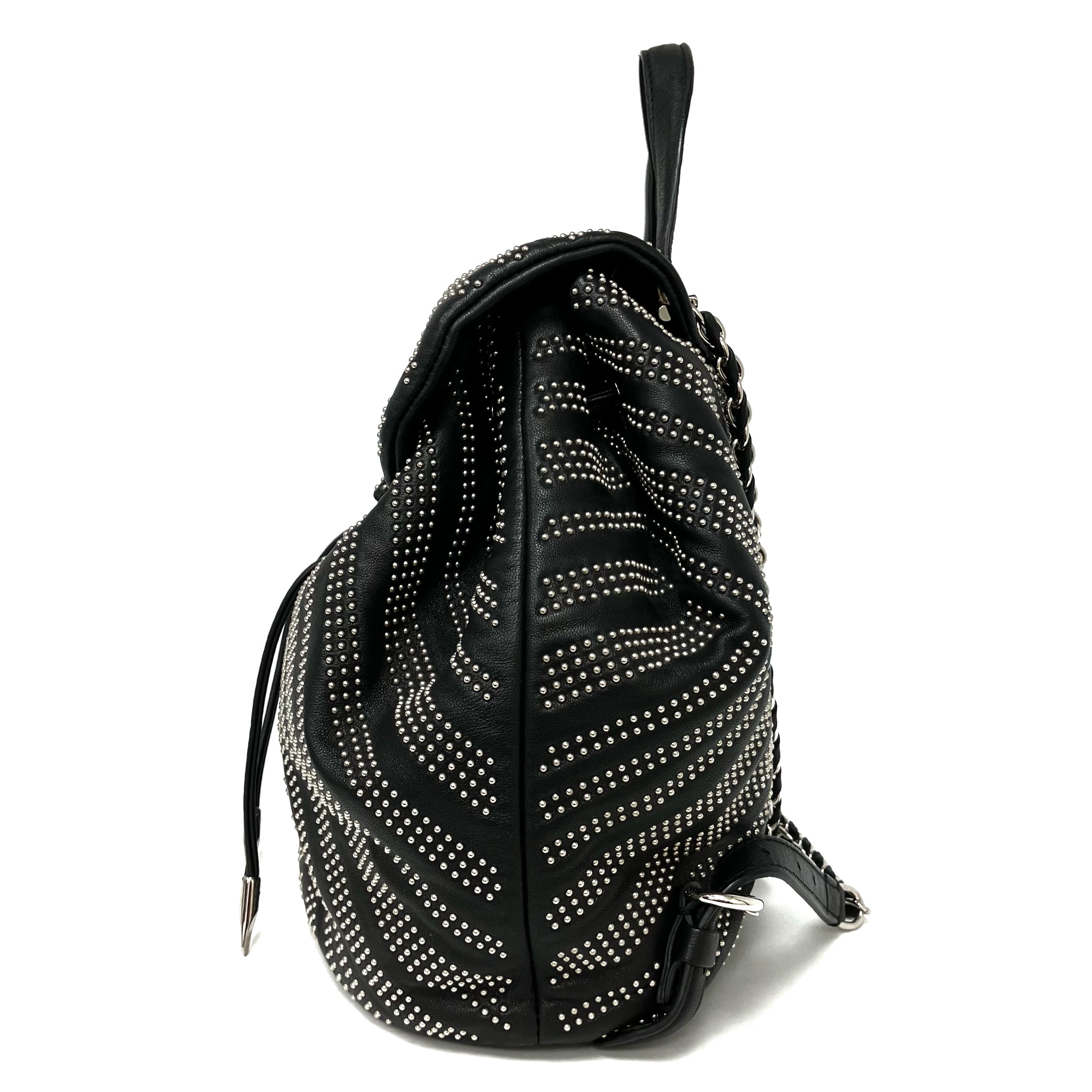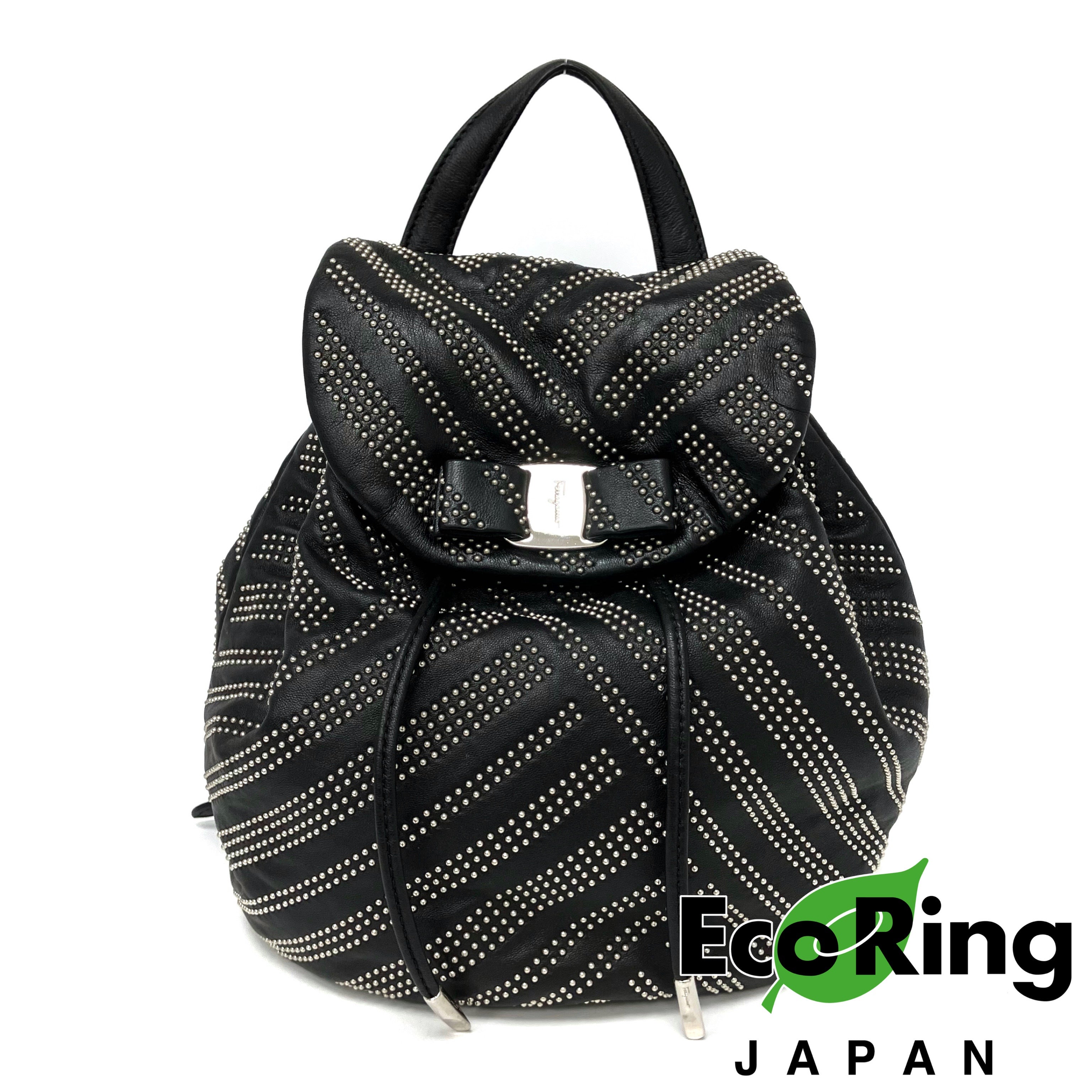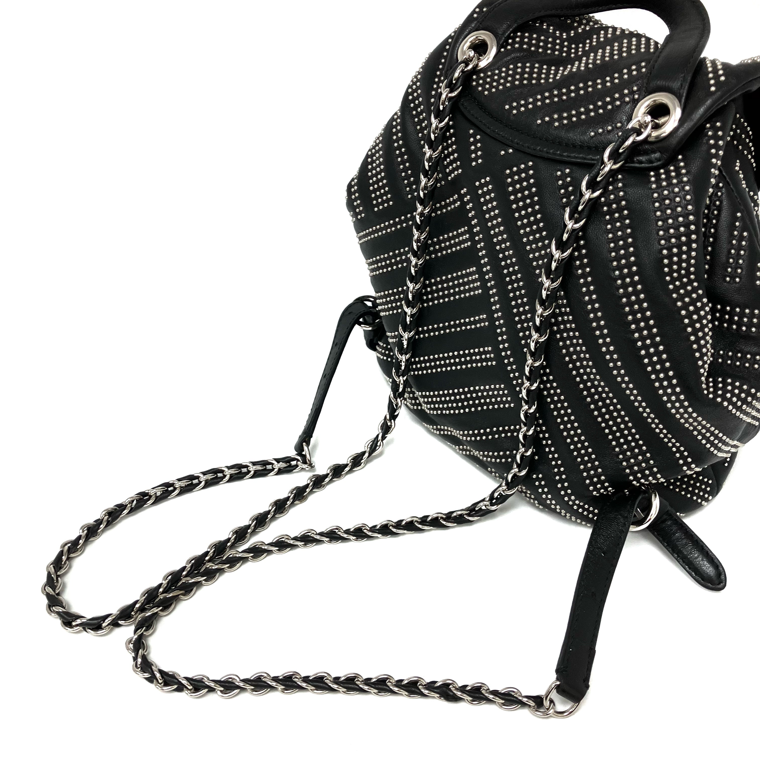 ☆ Salvatore Ferragamo 菲拉格慕 Black Lambskin Studs Chain Backpack 黑色小羊皮飾釘鏈條背包 - 257023900