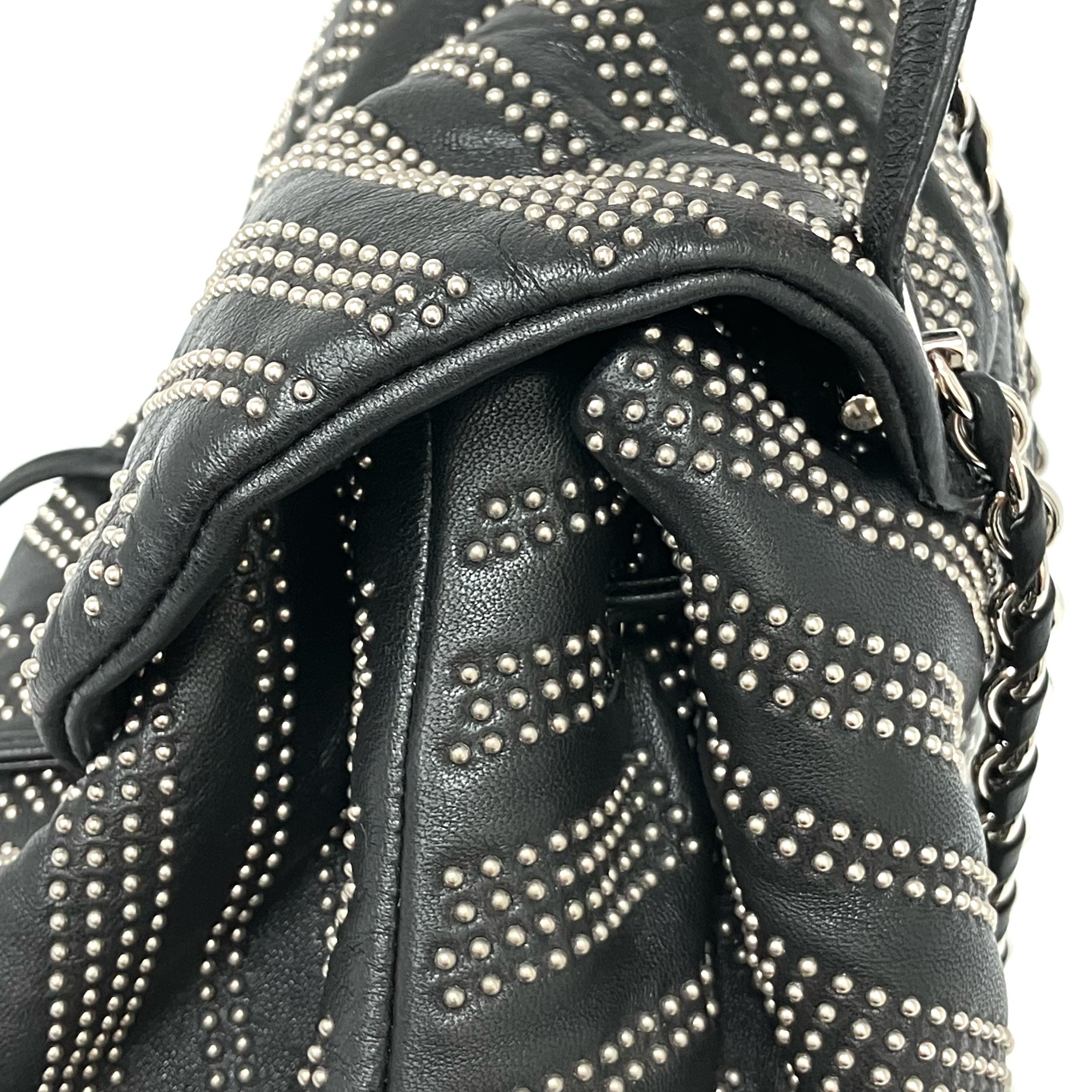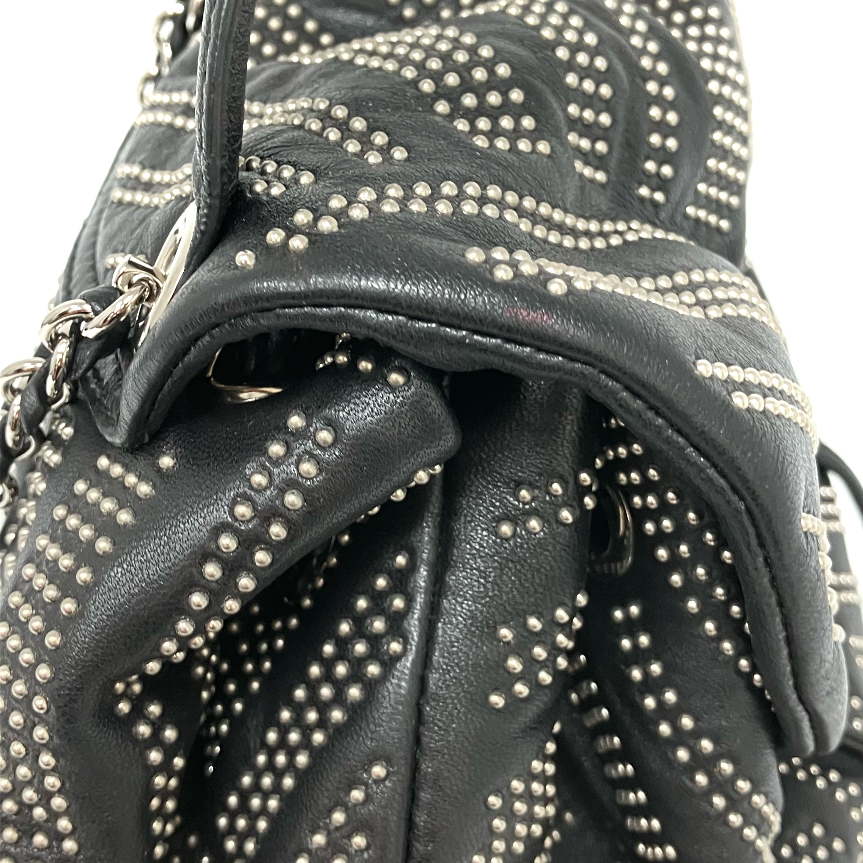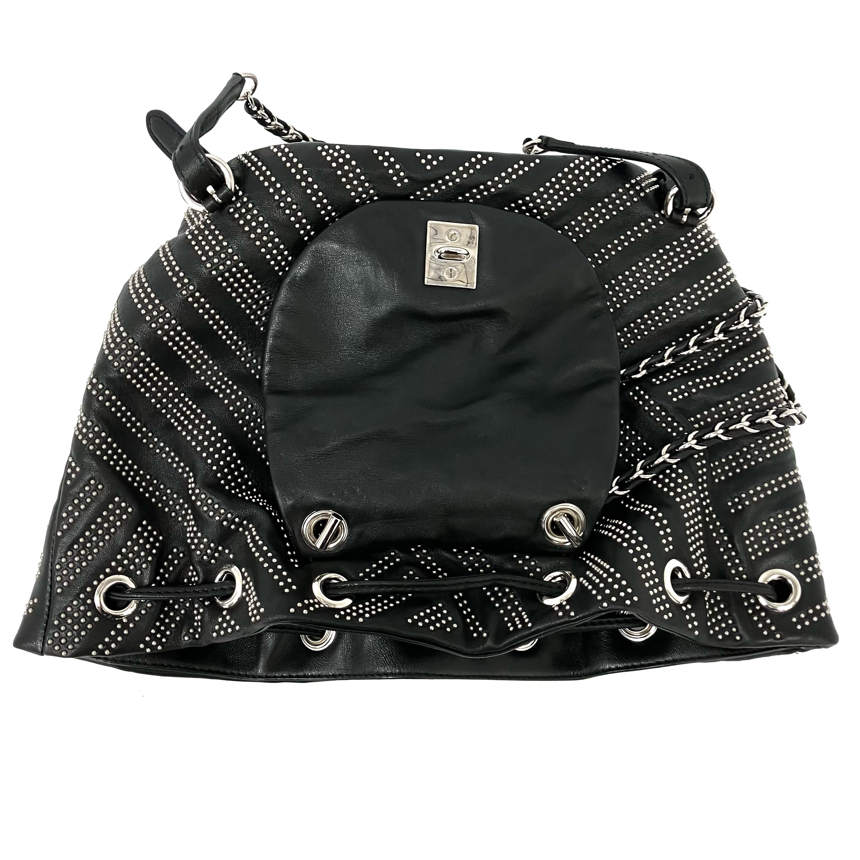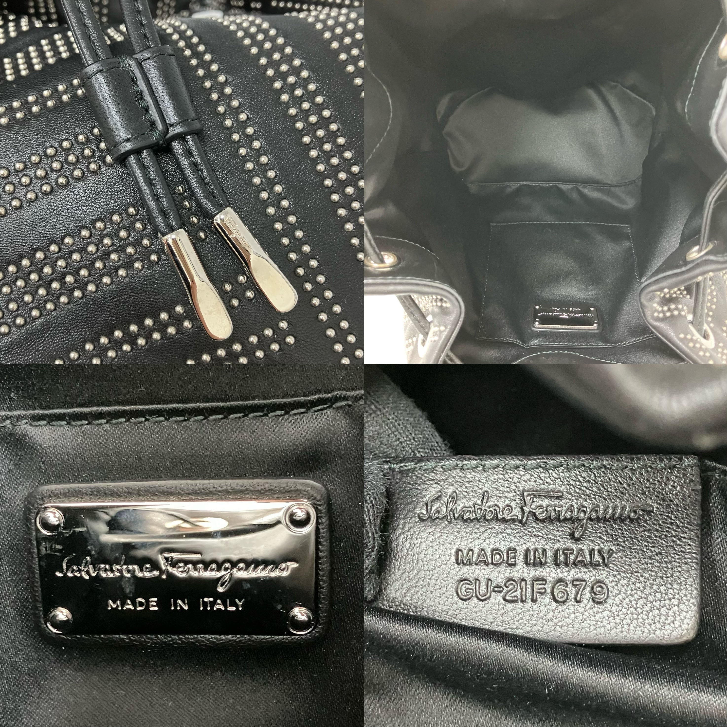 ☆ Salvatore Ferragamo 菲拉格慕 Black Lambskin Studs Chain Backpack 黑色小羊皮飾釘鏈條背包 - 257023900