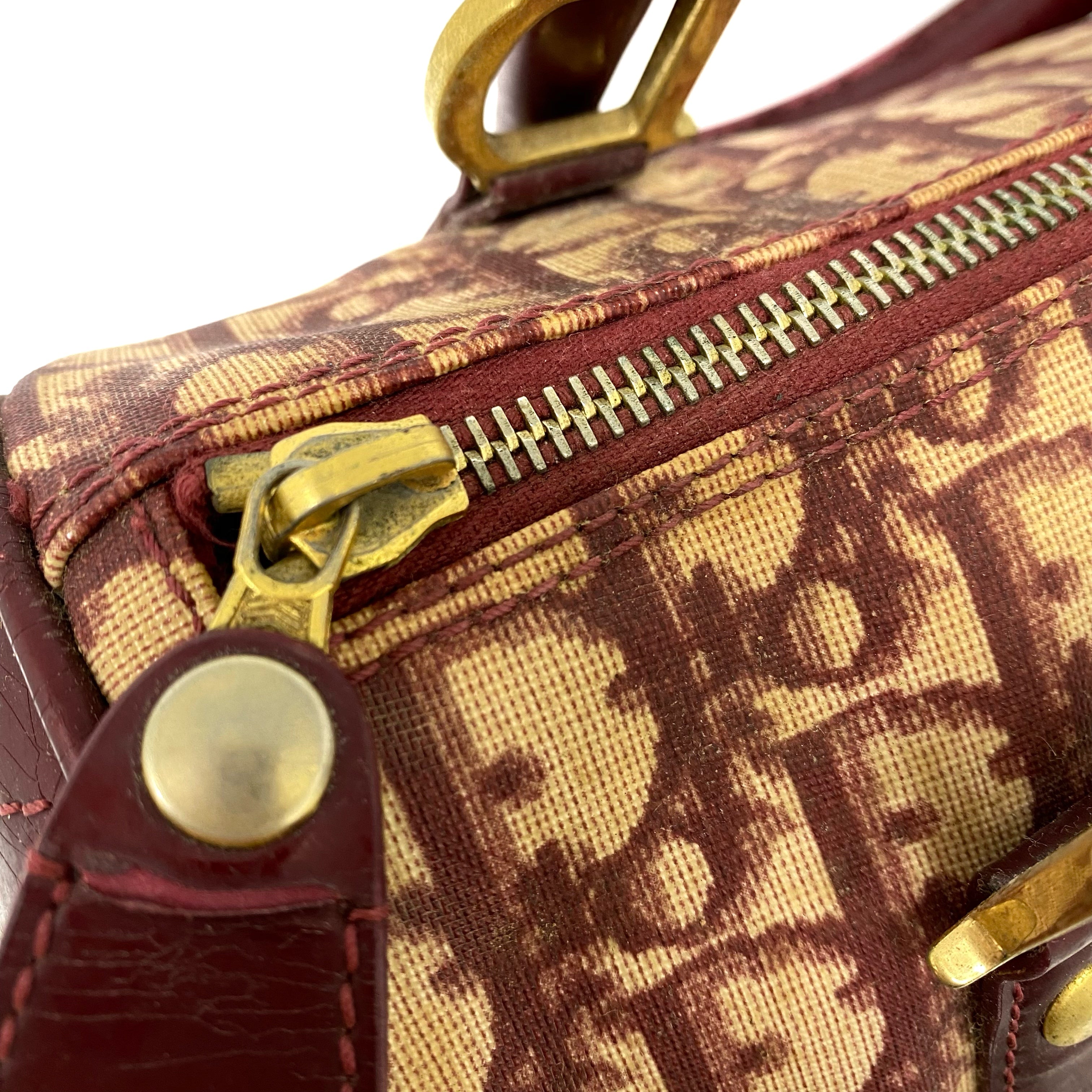 ☆ Christian Dior 迪奧 Red Coated Canvas Boston Bag 紅色塗層帆布波士頓袋 - 257024013