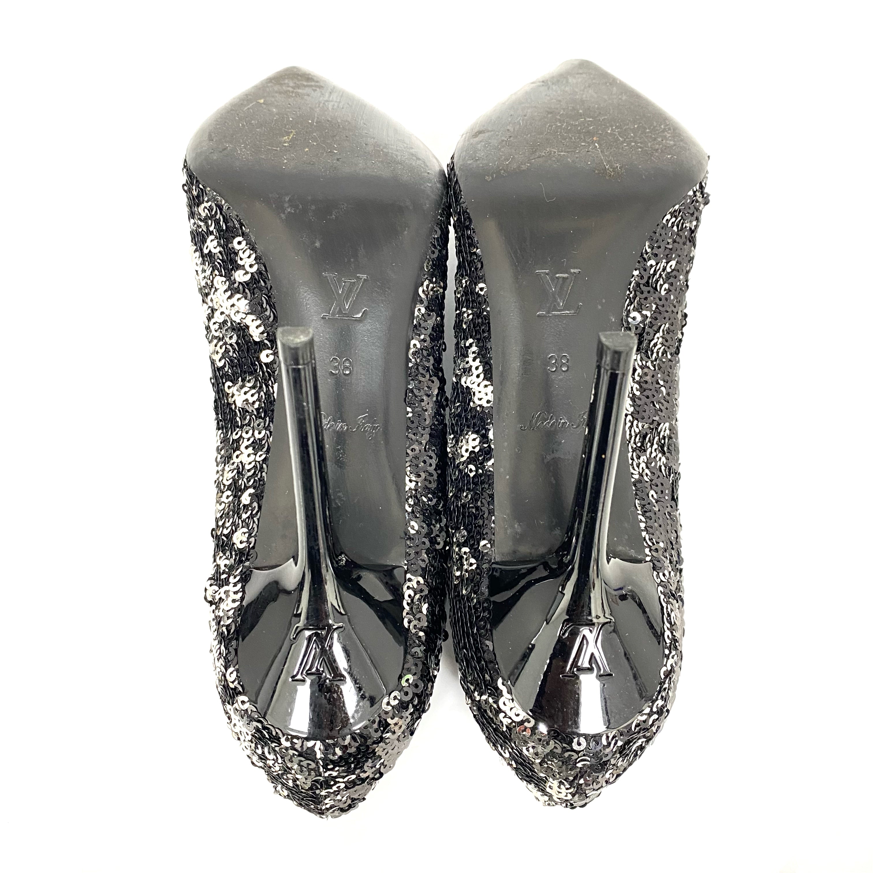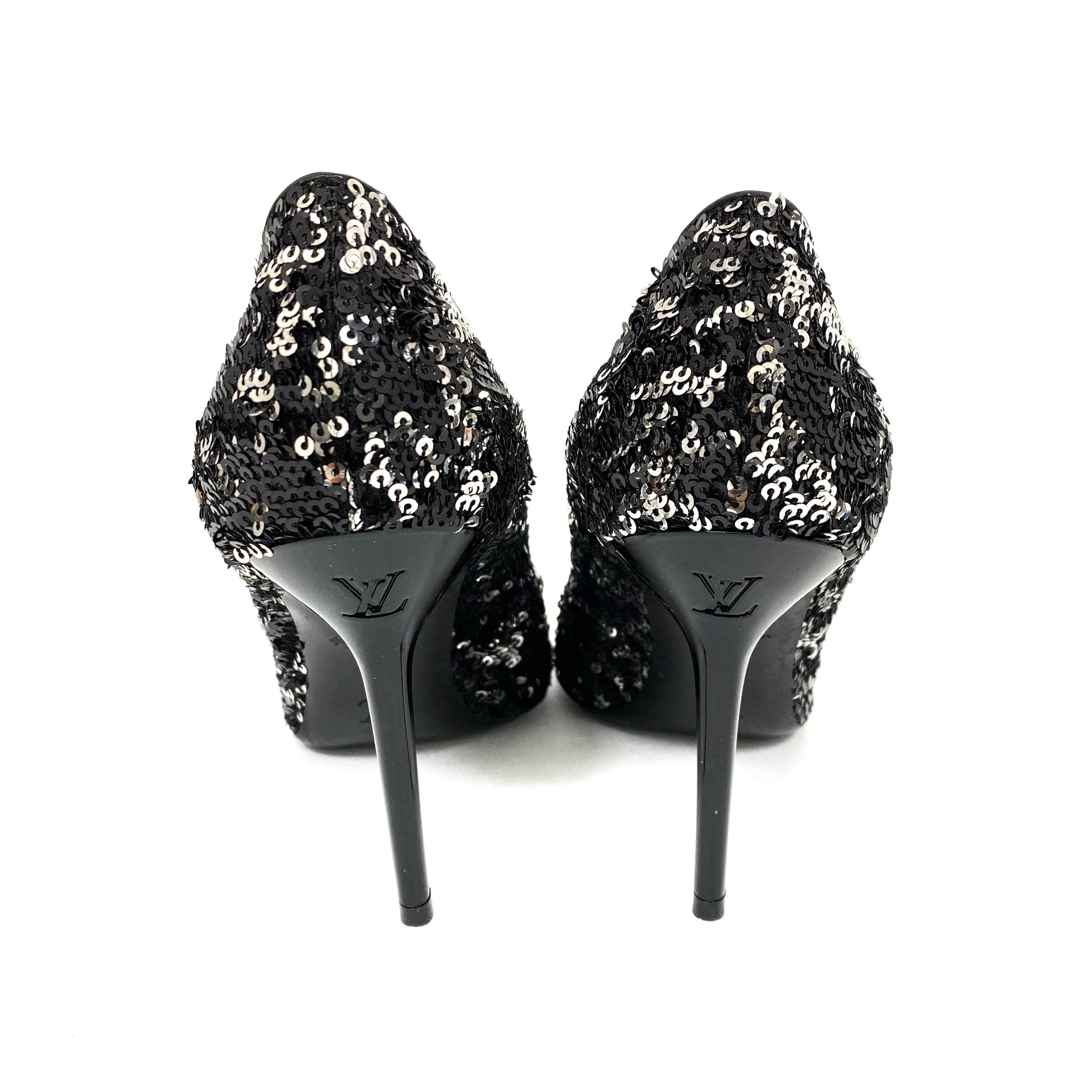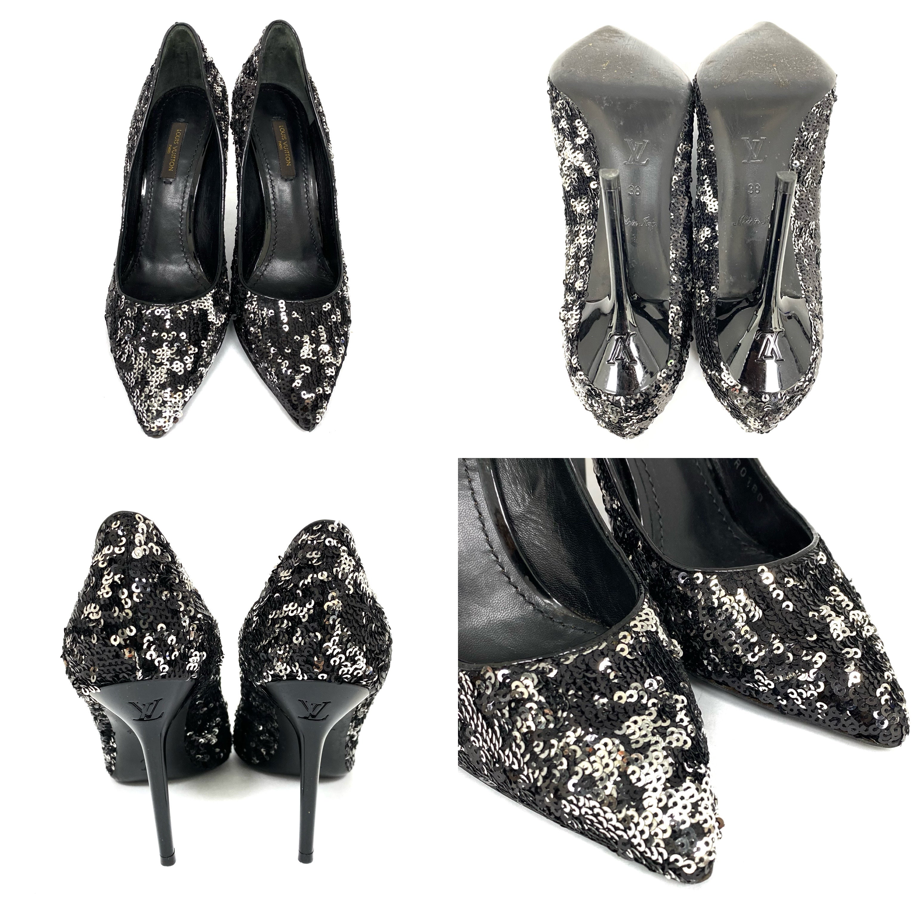 ☆Louis Vuitton路易威登 Black Silver Sequin Pumps #38 黑色銀色珠片高跟鞋 38 碼 - 257024342