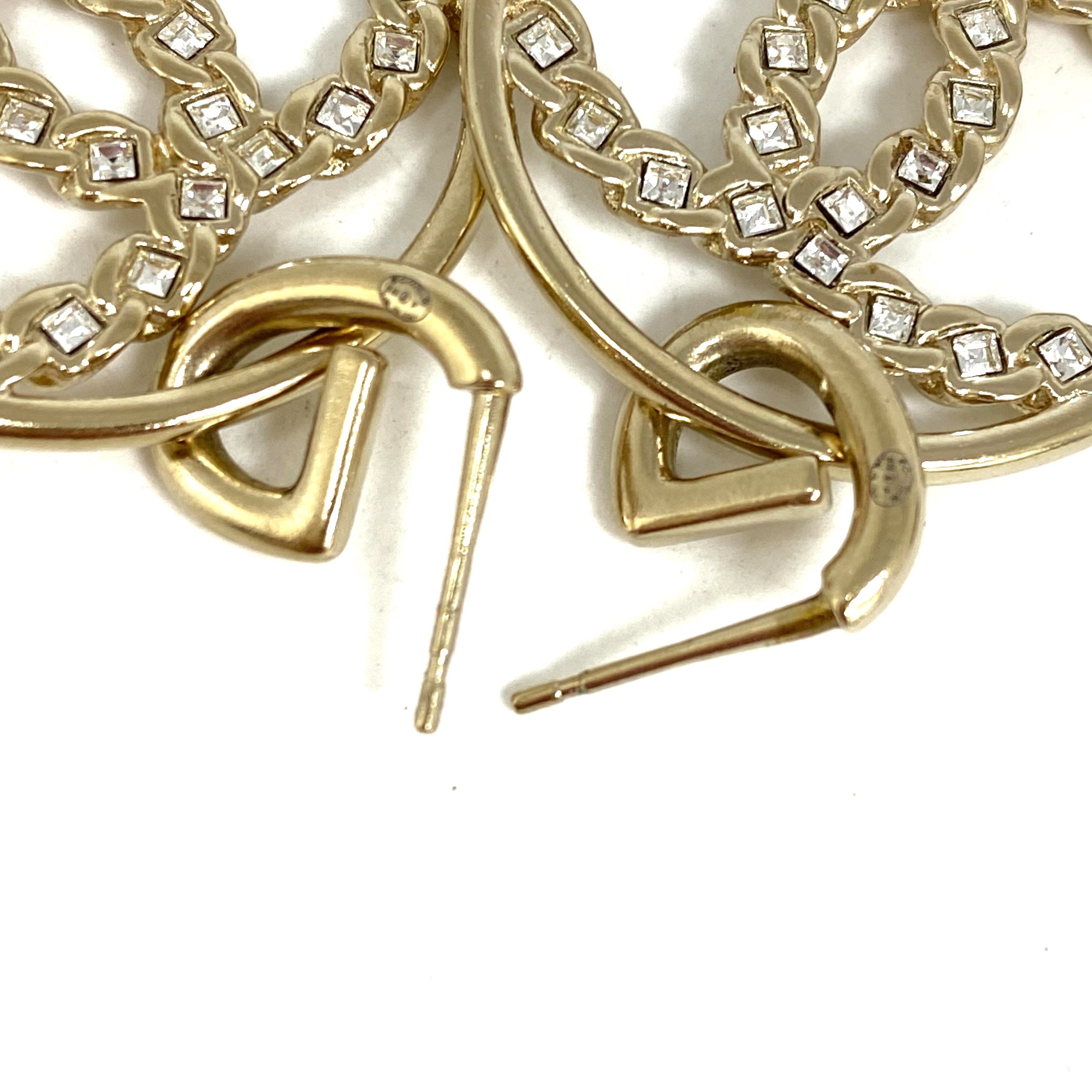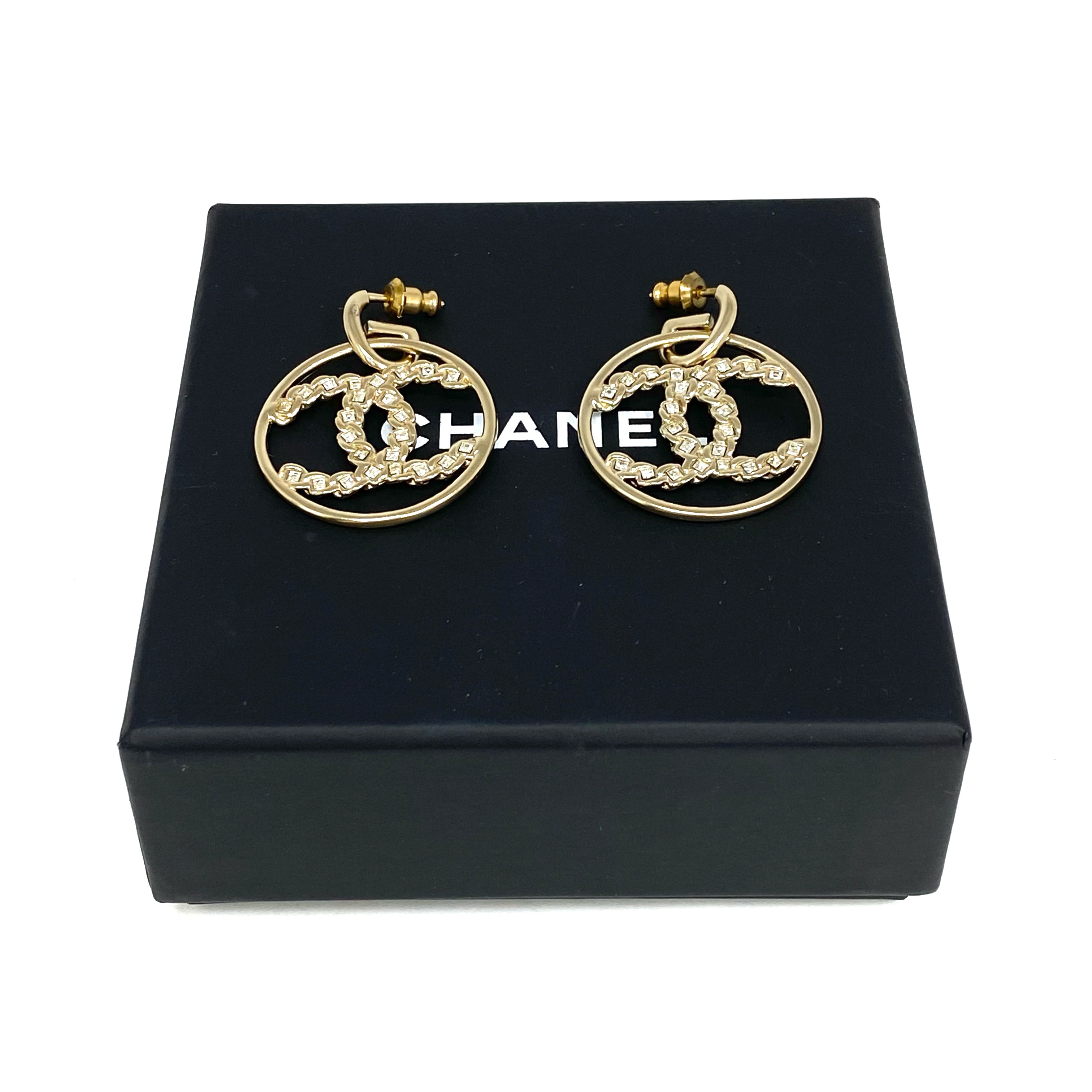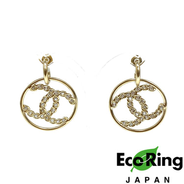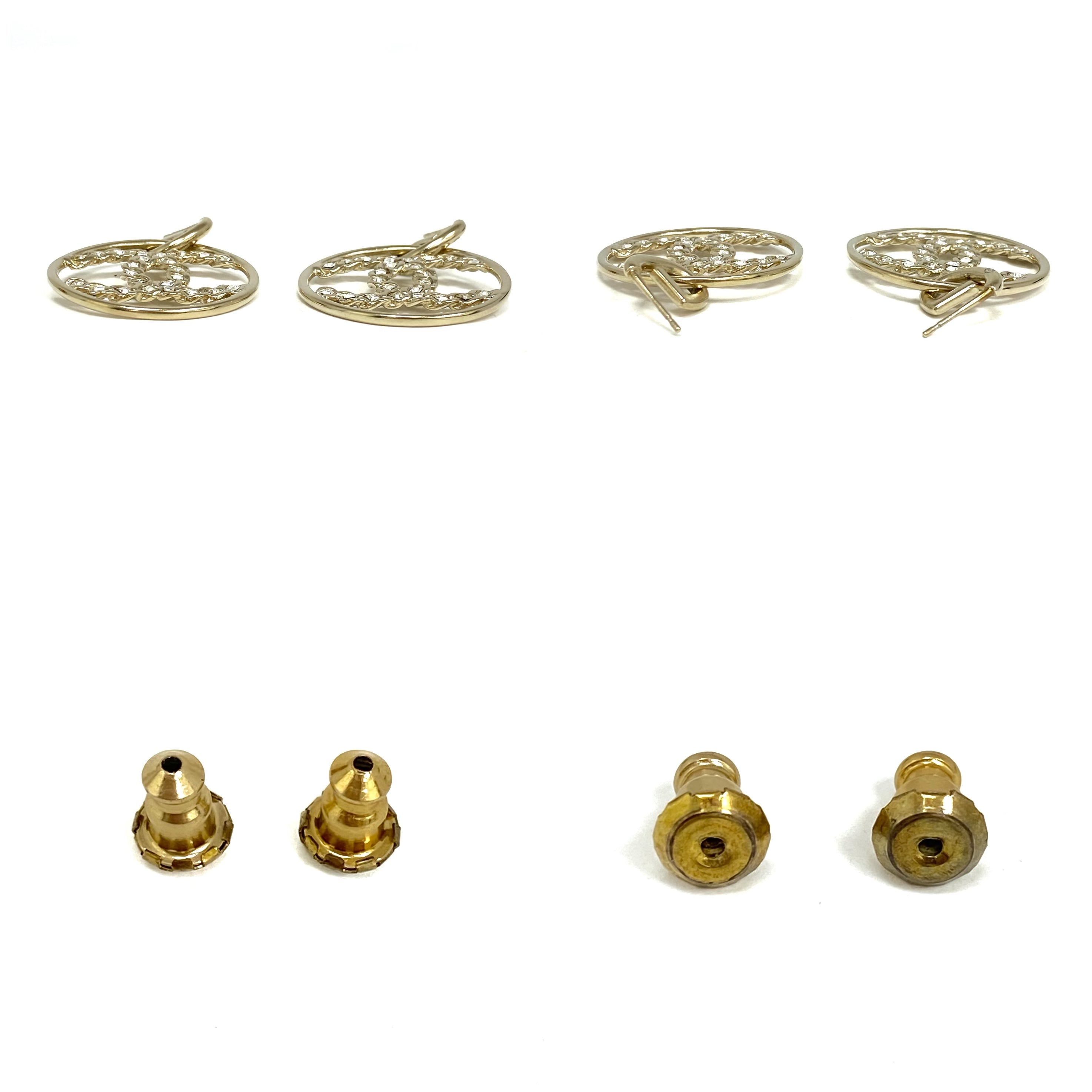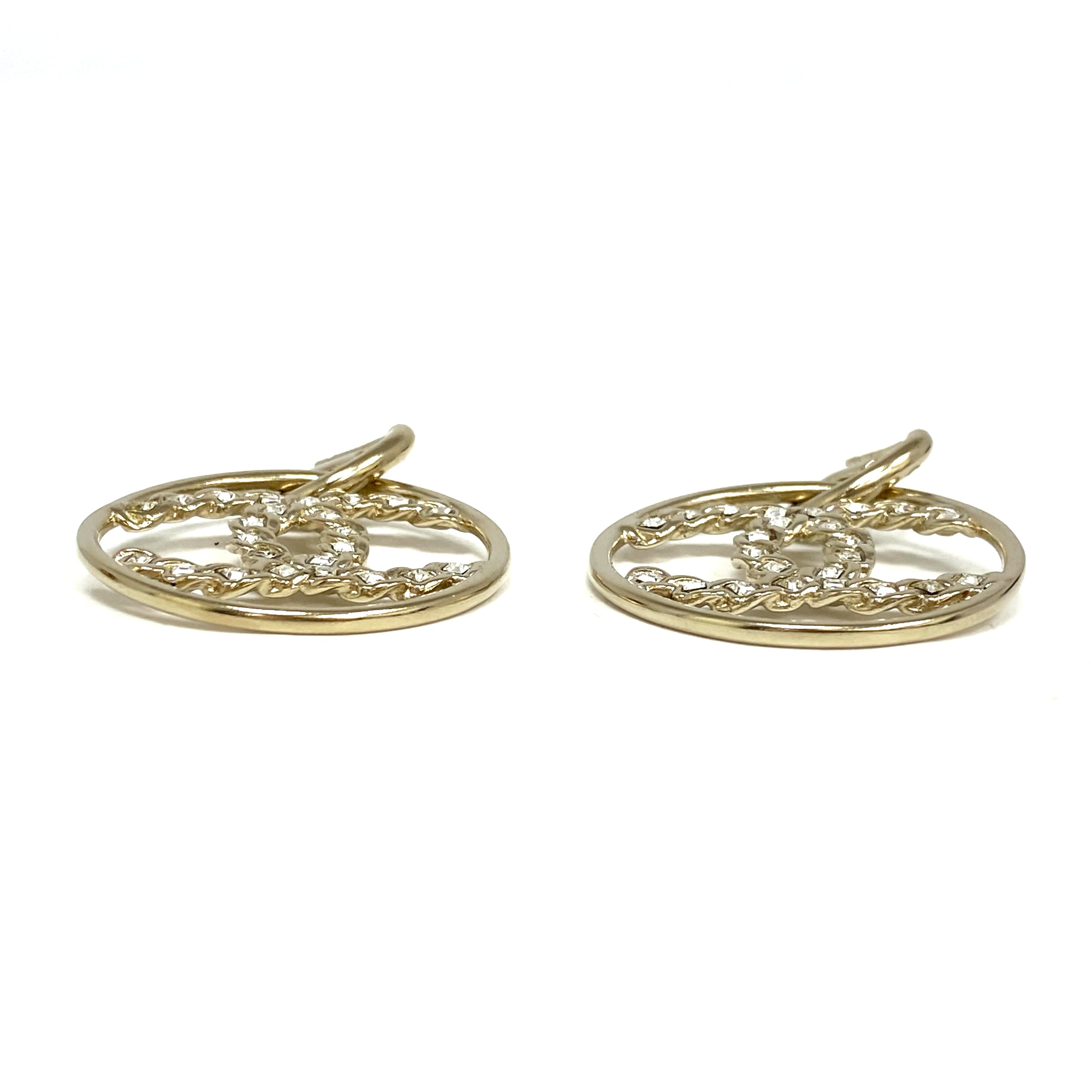 ☆ Chanel 香奈兒 Gold Tone Metal Rhinestones CC Round Earrings B19P 金色金屬水鑽CC圓環耳環 - 257024346