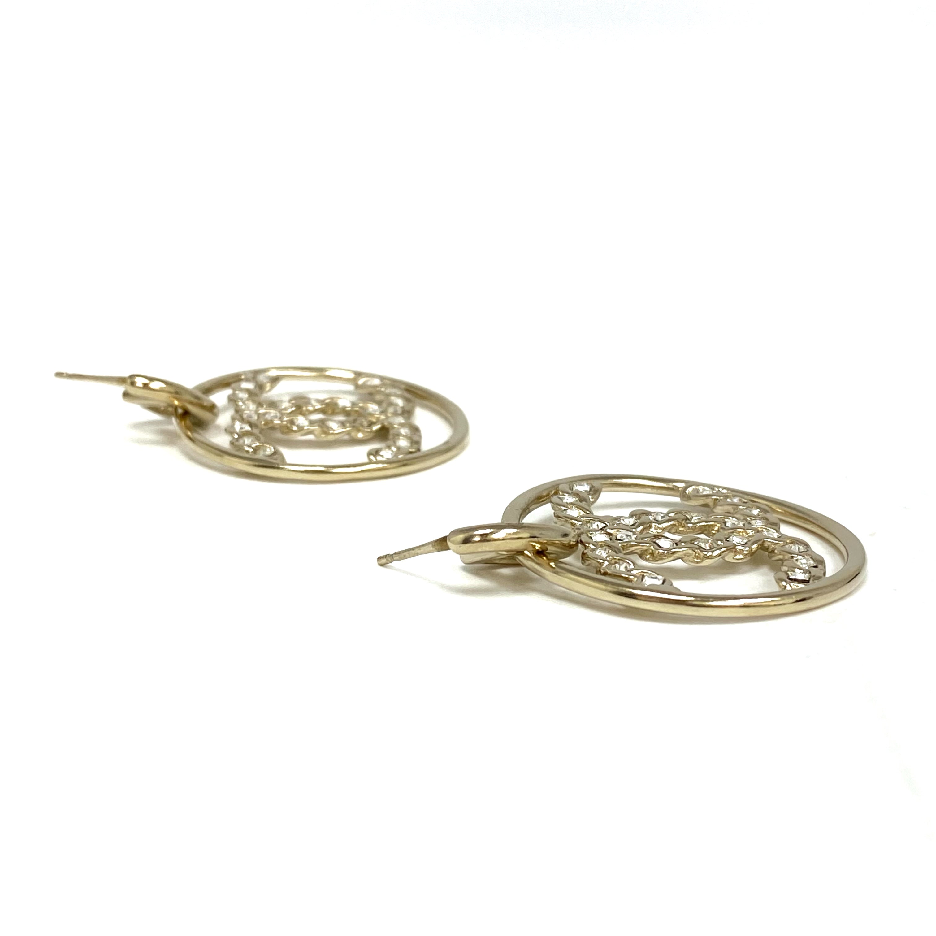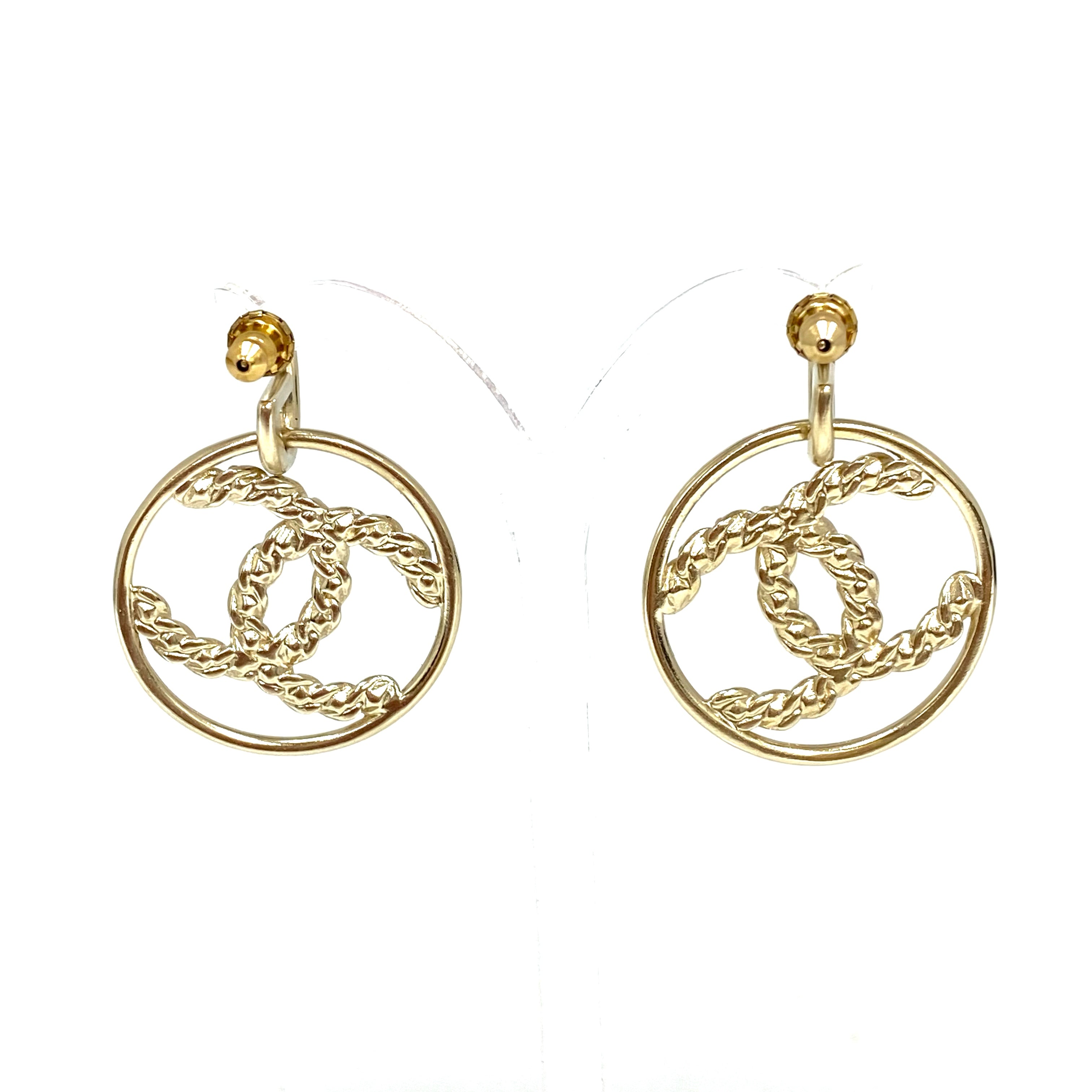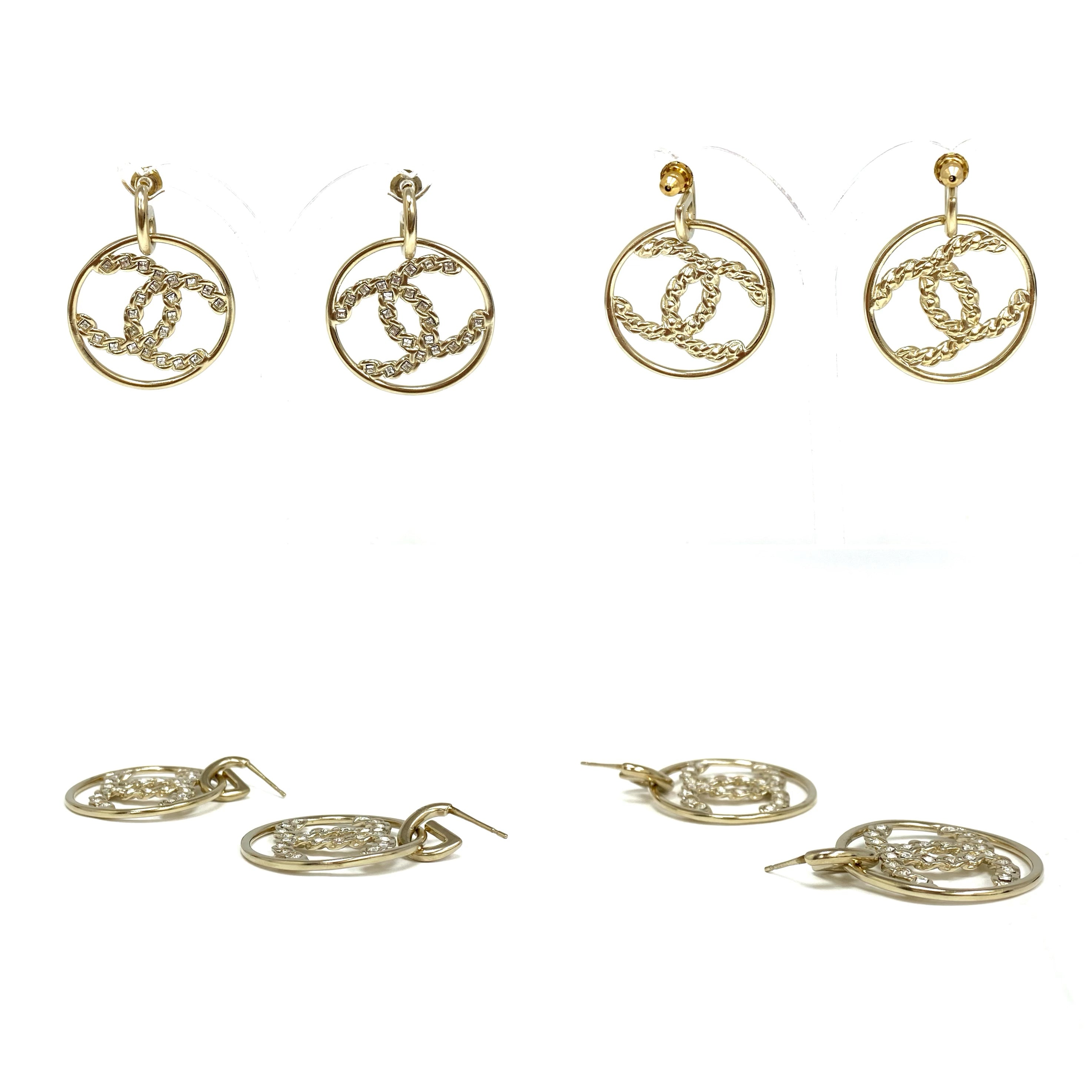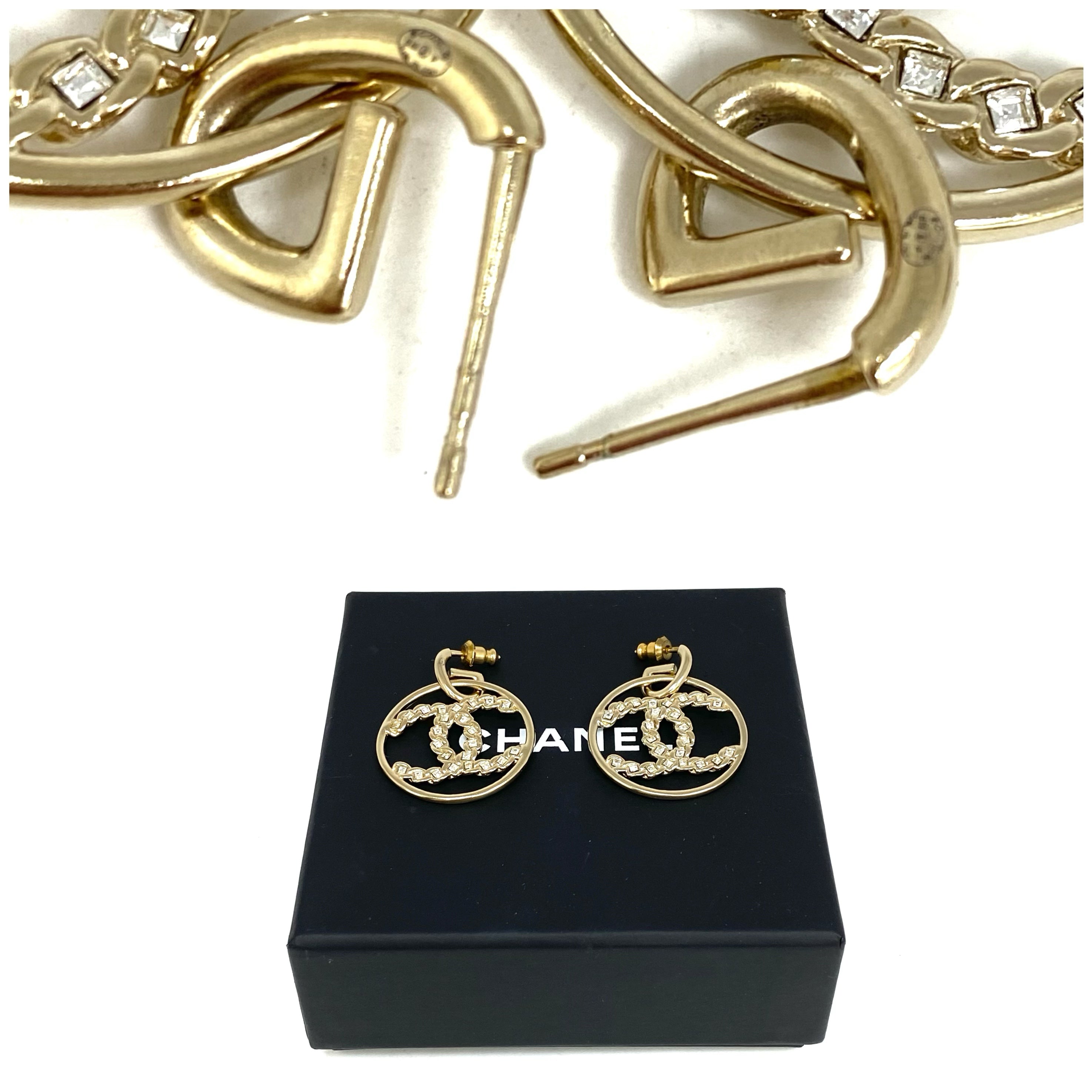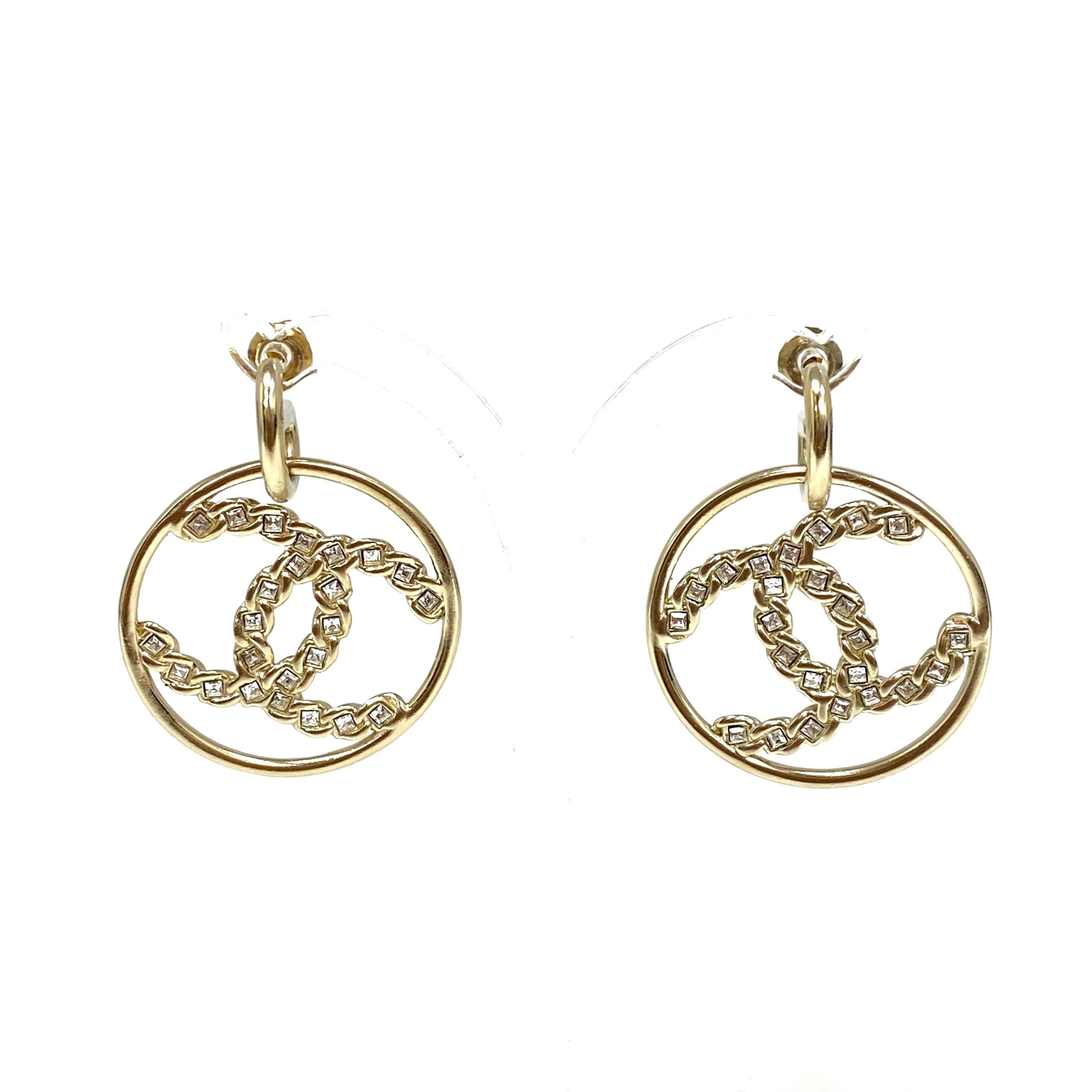☆ Chanel 香奈兒 Gold Tone Metal Rhinestones CC Round Earrings B19P 金色金屬水鑽CC圓環耳環 - 257024346