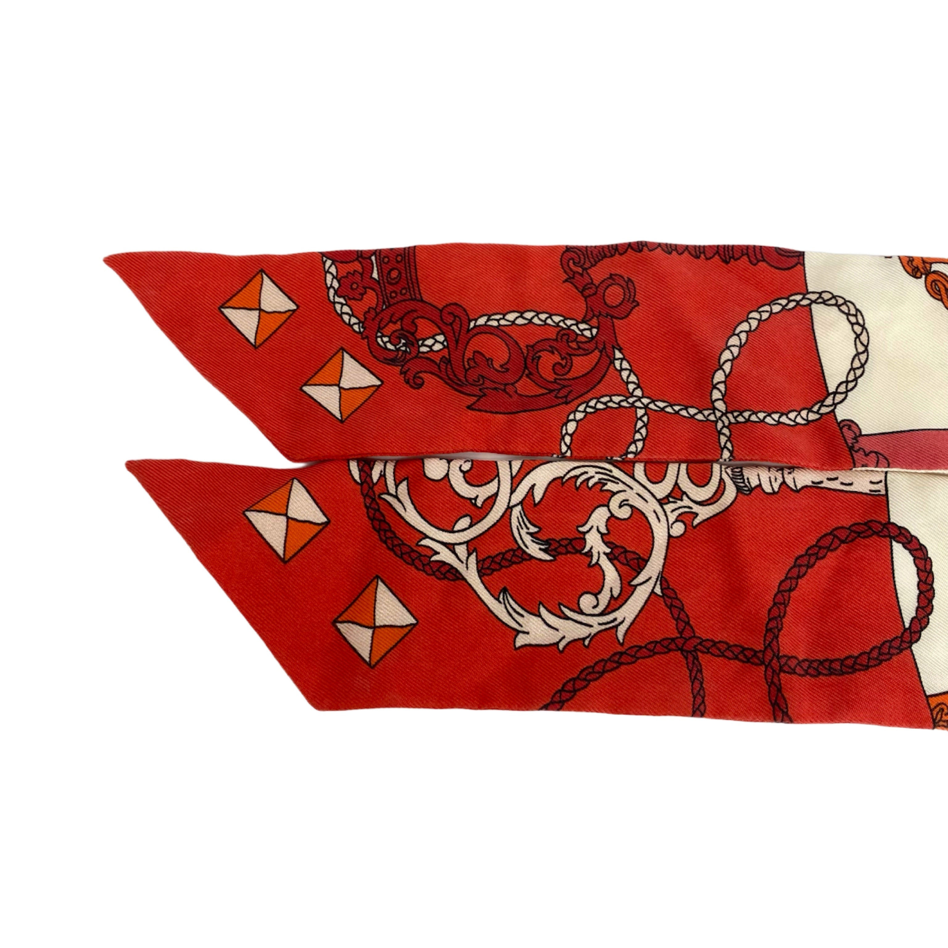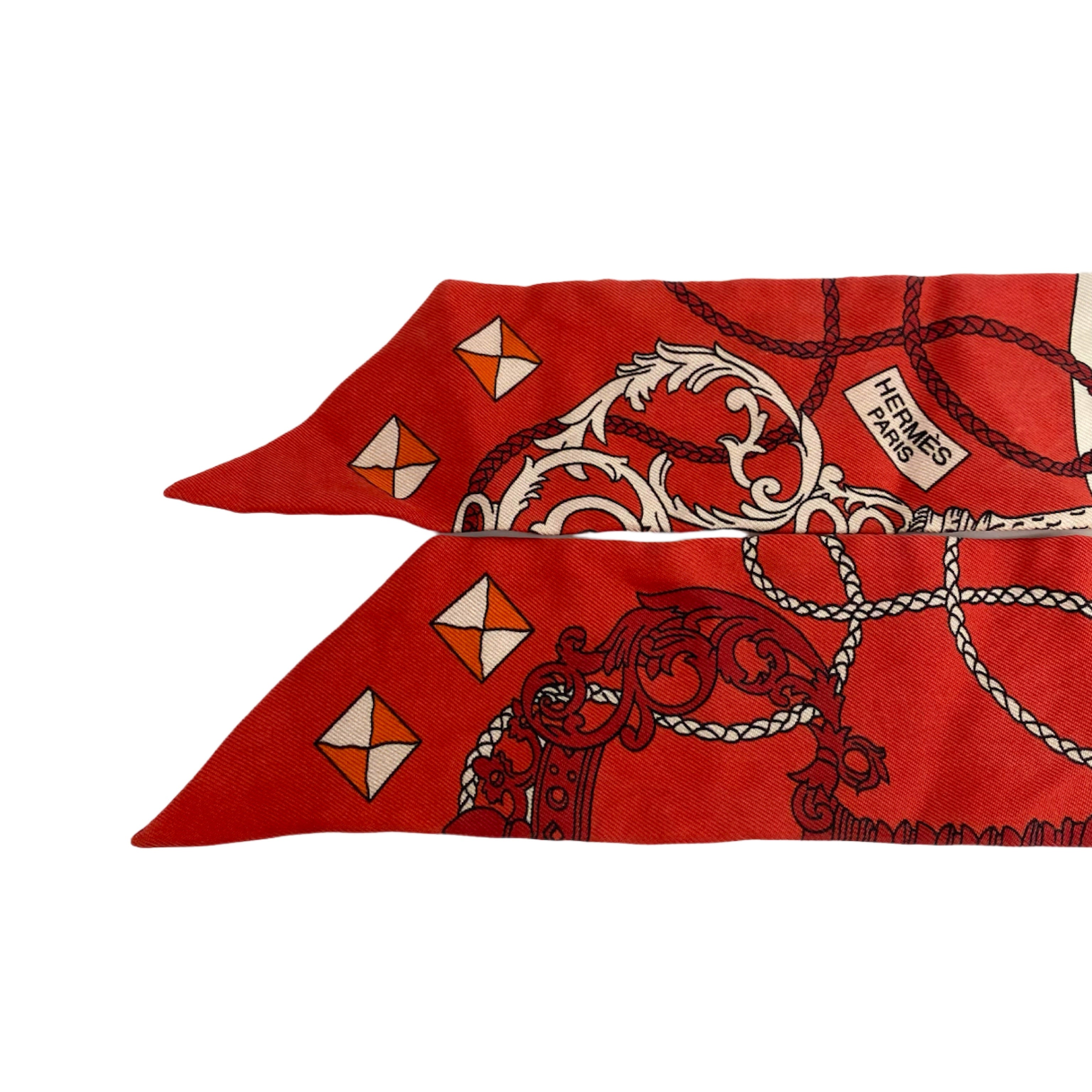 ☆ Hermes 愛馬仕 Red 100% Silk Twilly Scarf 紅色100%絲質斜紋巾 - 257028928