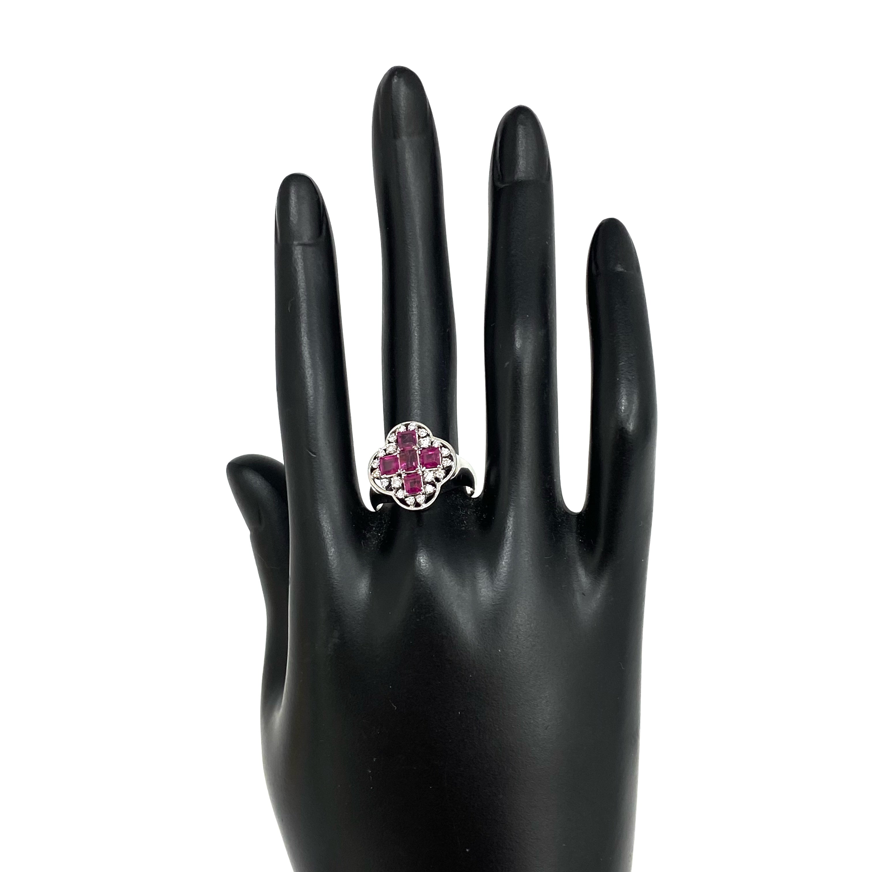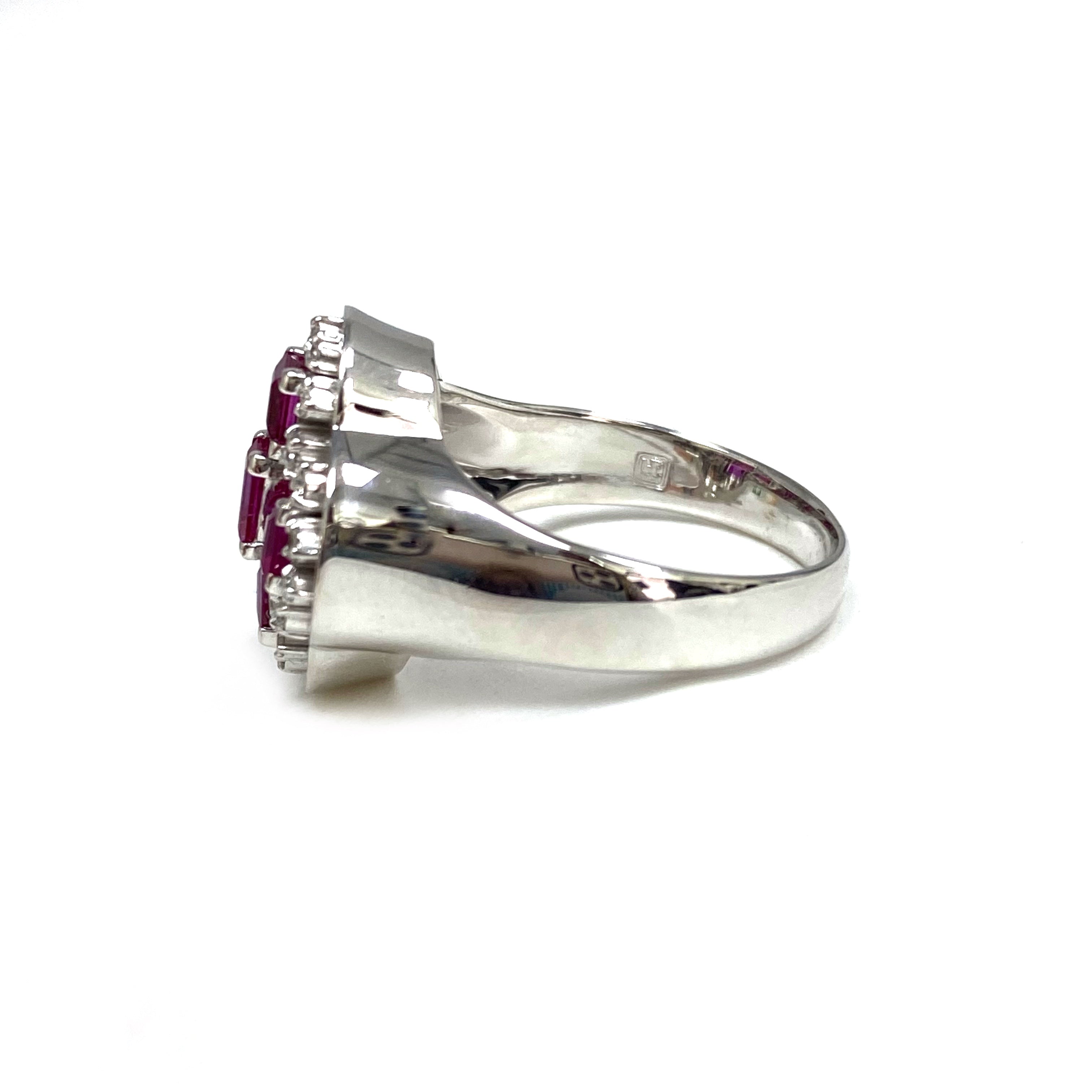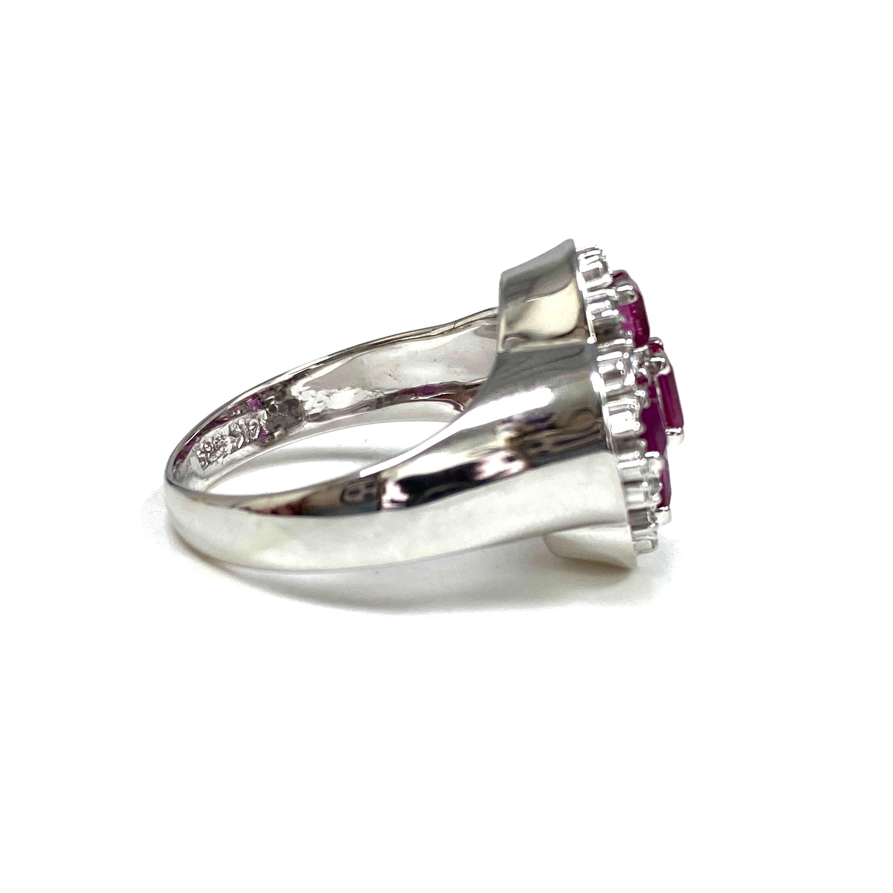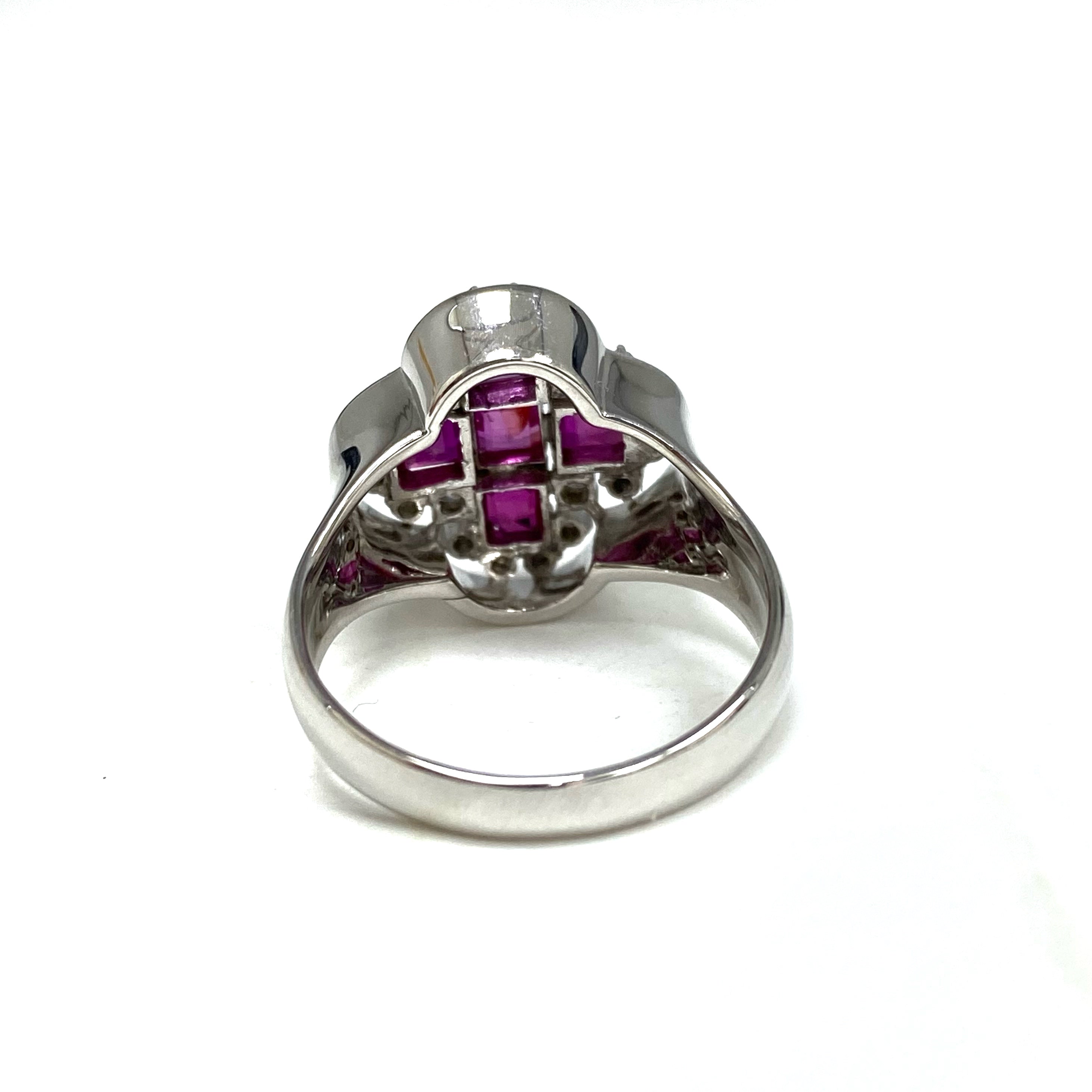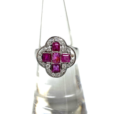 ☆ 14K White Gold Pink Sapphire Melee Diamonds Ring 5.81g 14K白金粉紅色藍寶石碎鑽戒指 - 267002649