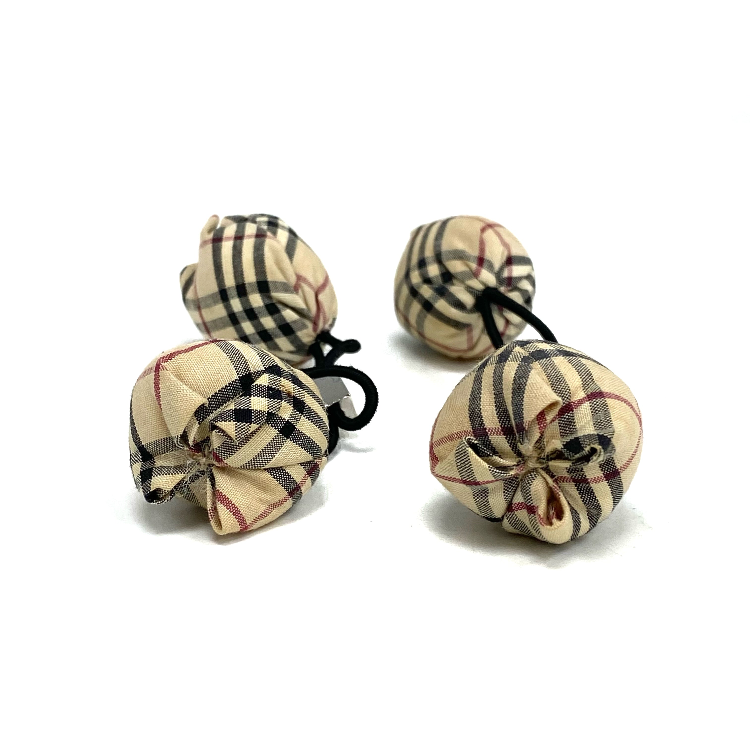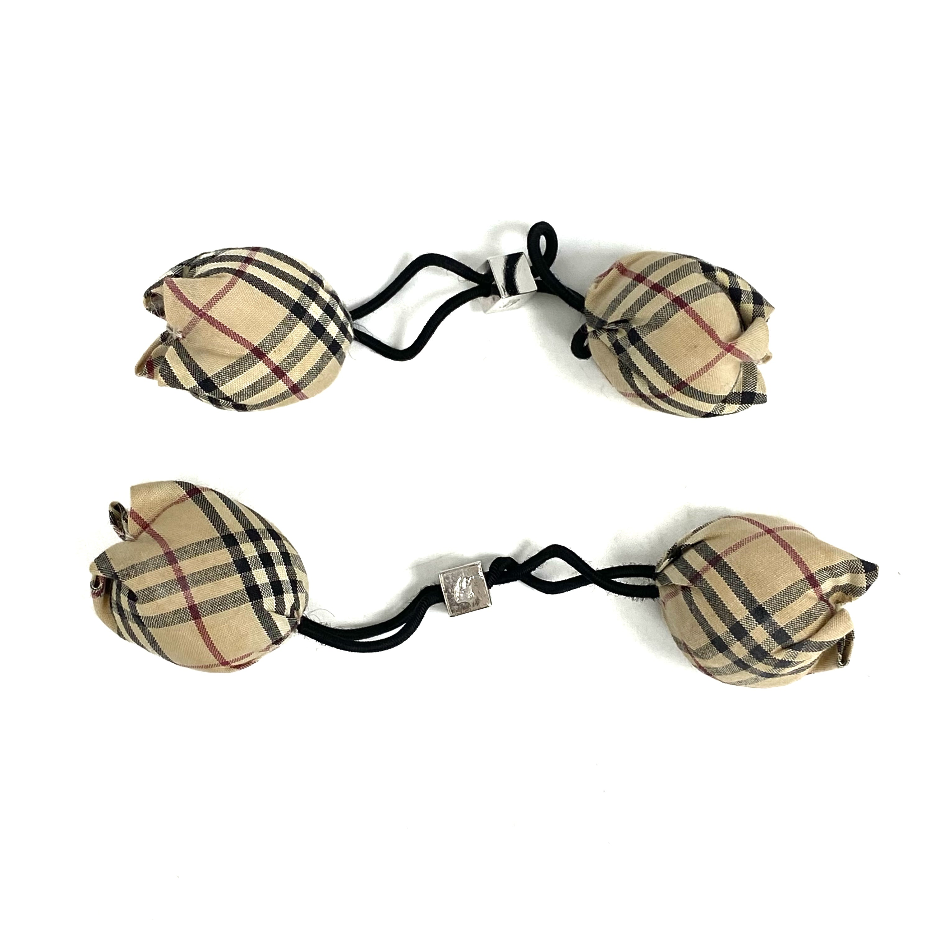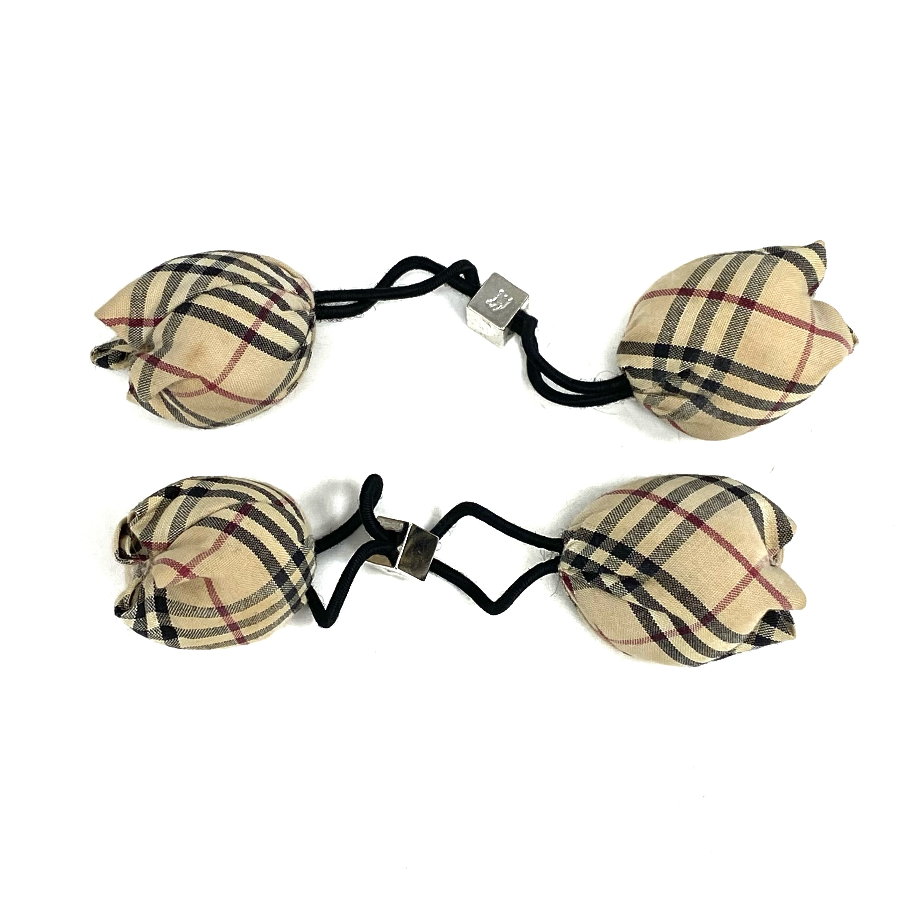 ☆ Burberry 博柏利 Beige Cotton Checked Hair Tie 2 pcs 米色棉質格紋髮圈2條 - 267003621