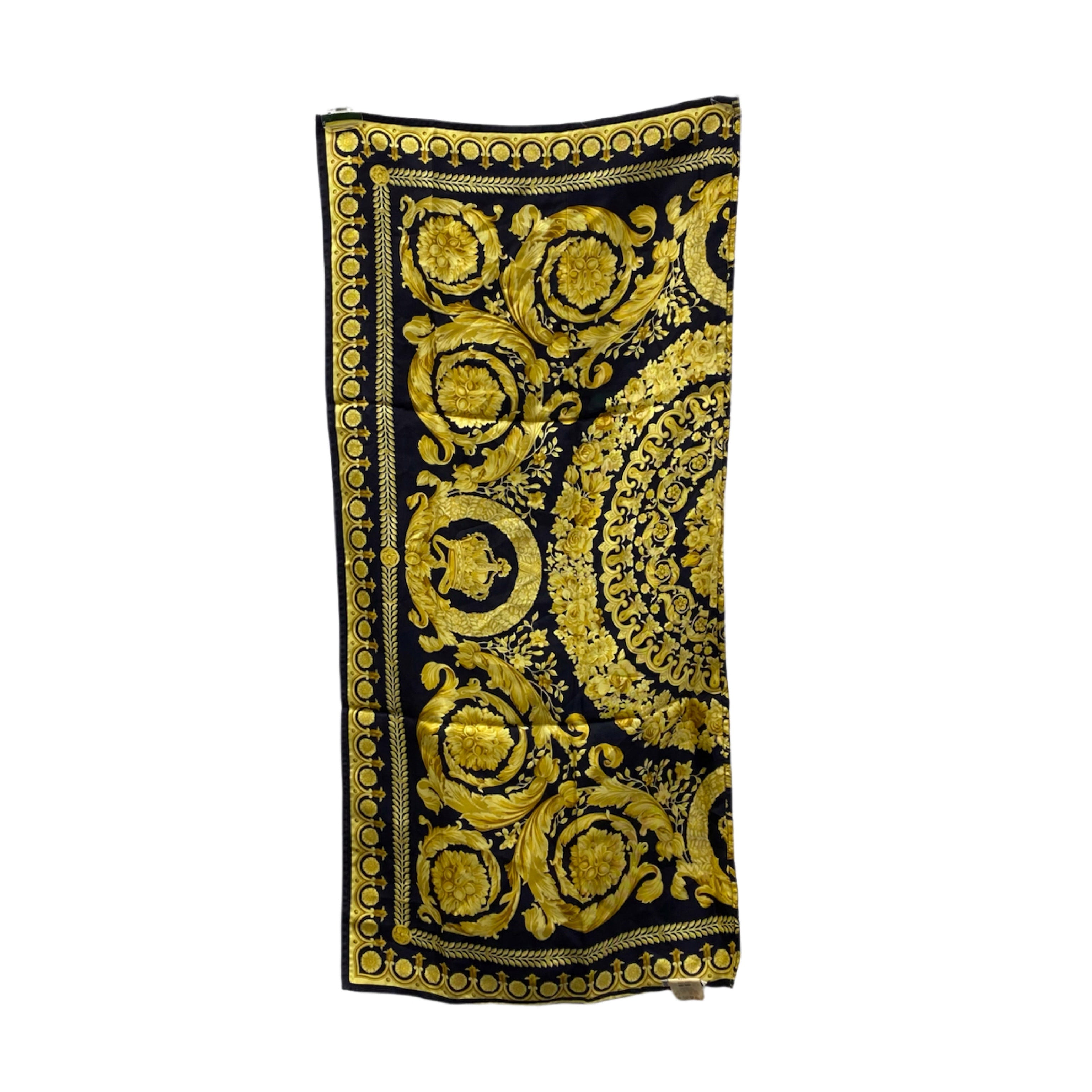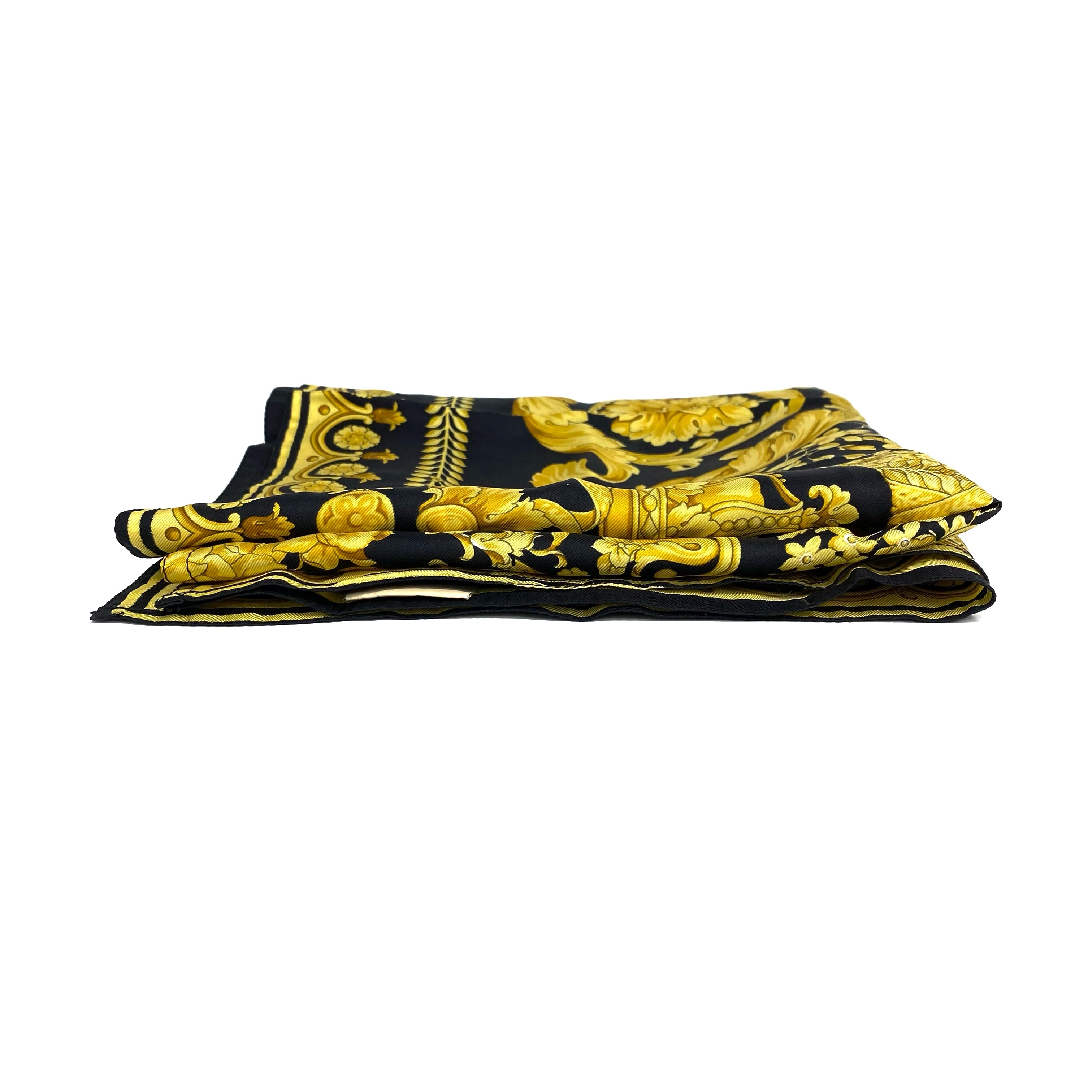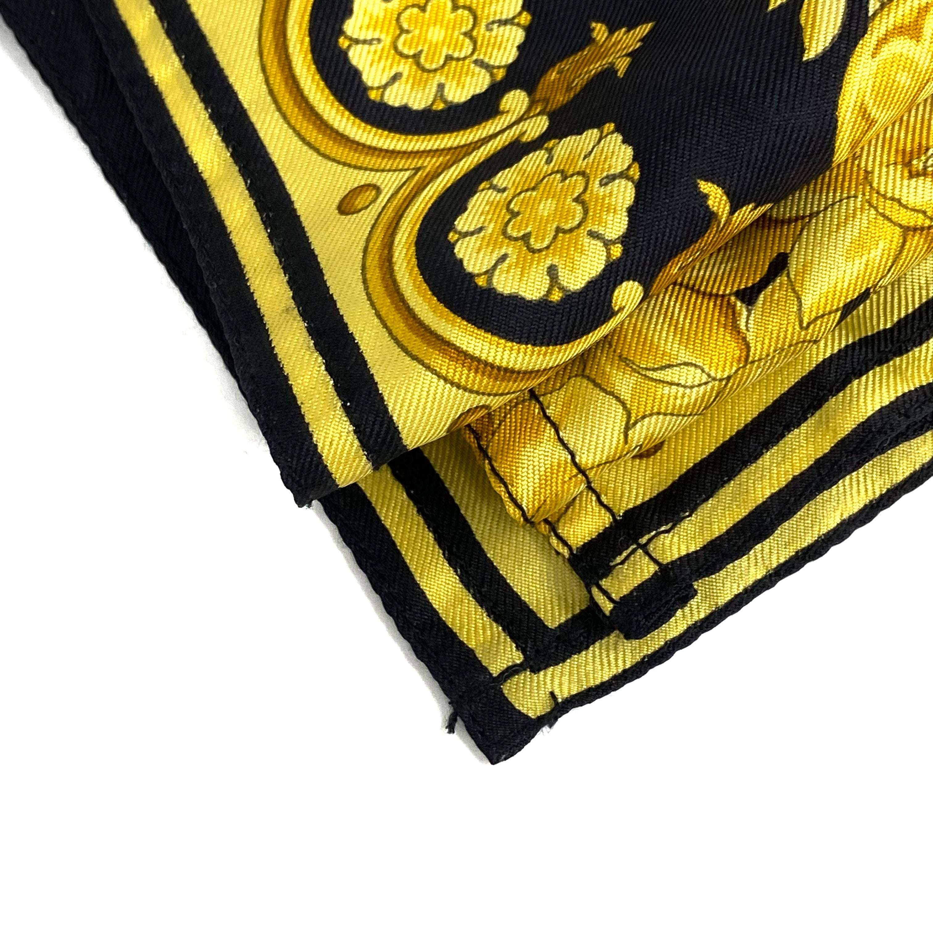 ☆ Versace 范思哲 Black Yellow 100% Silk Scarf 黑色黃色100%絲質絲巾 - 267006578