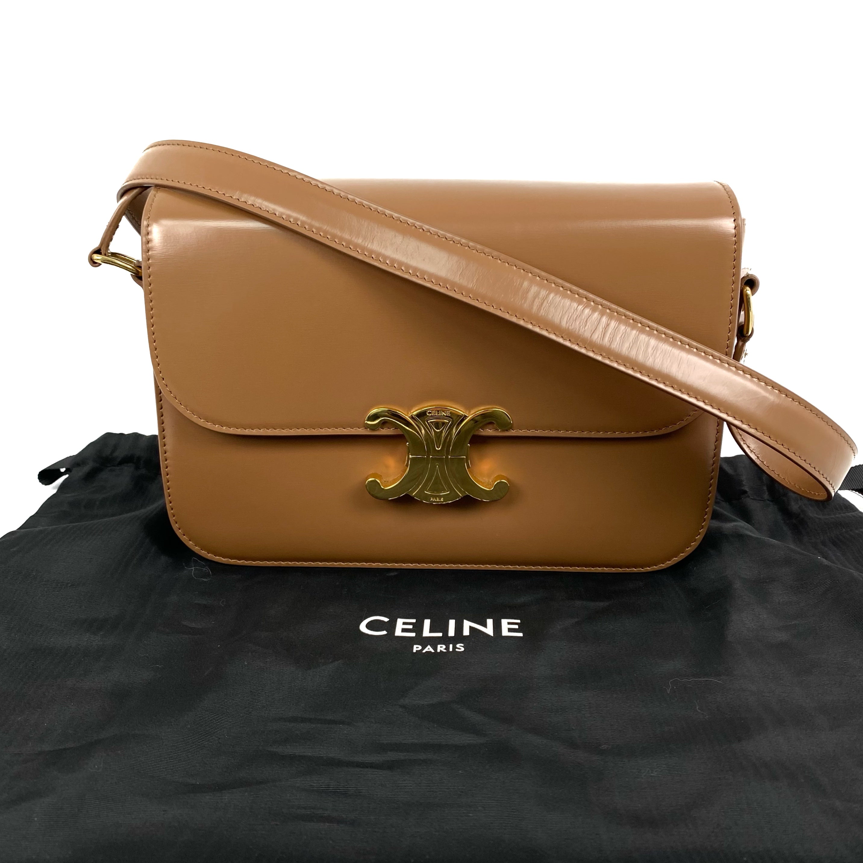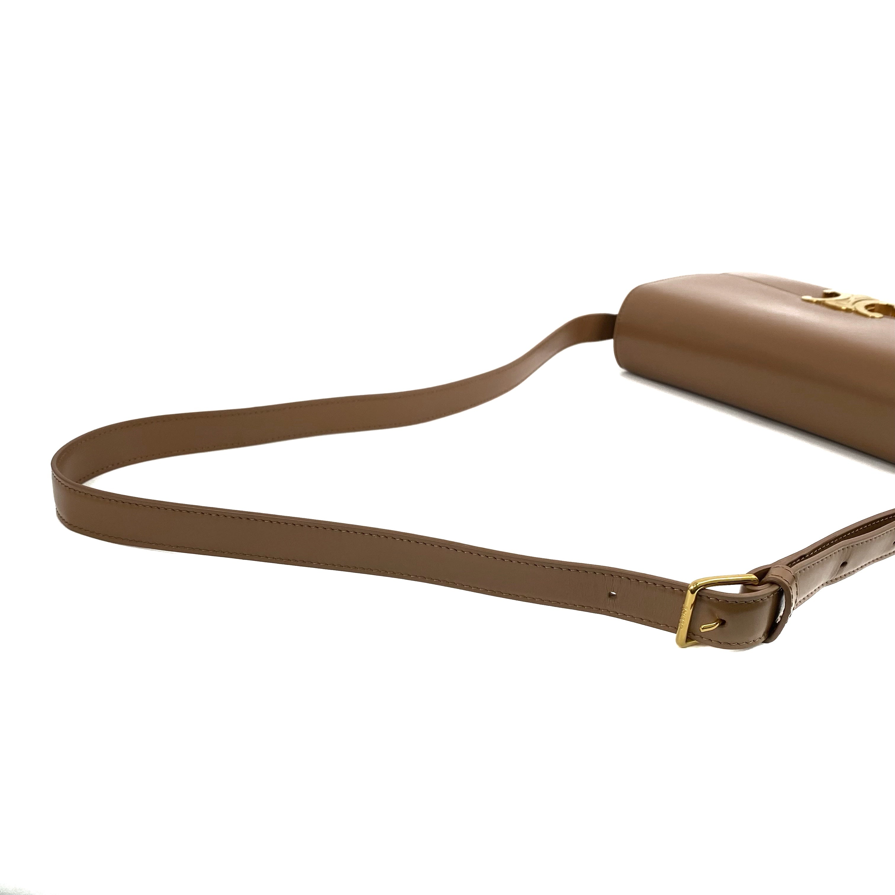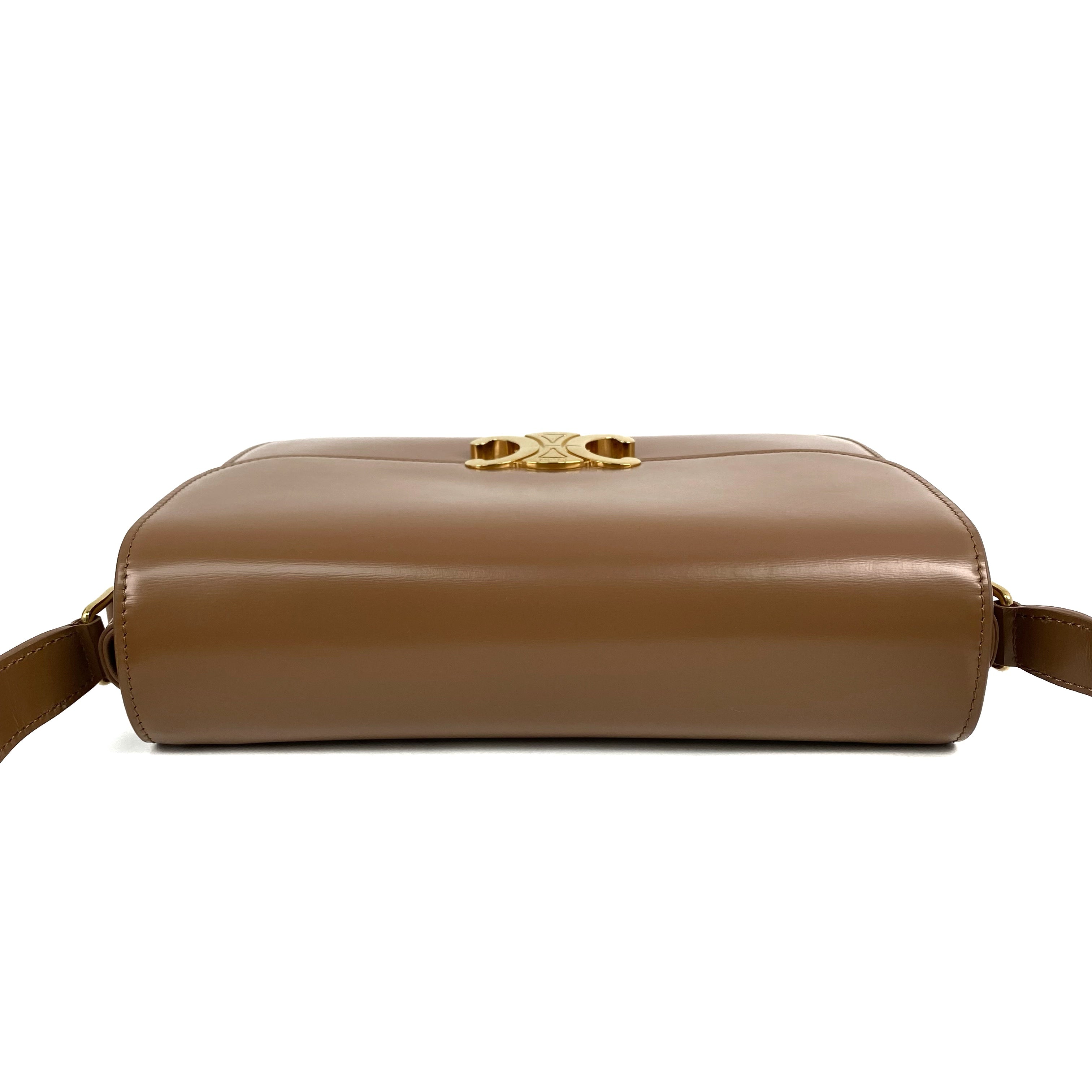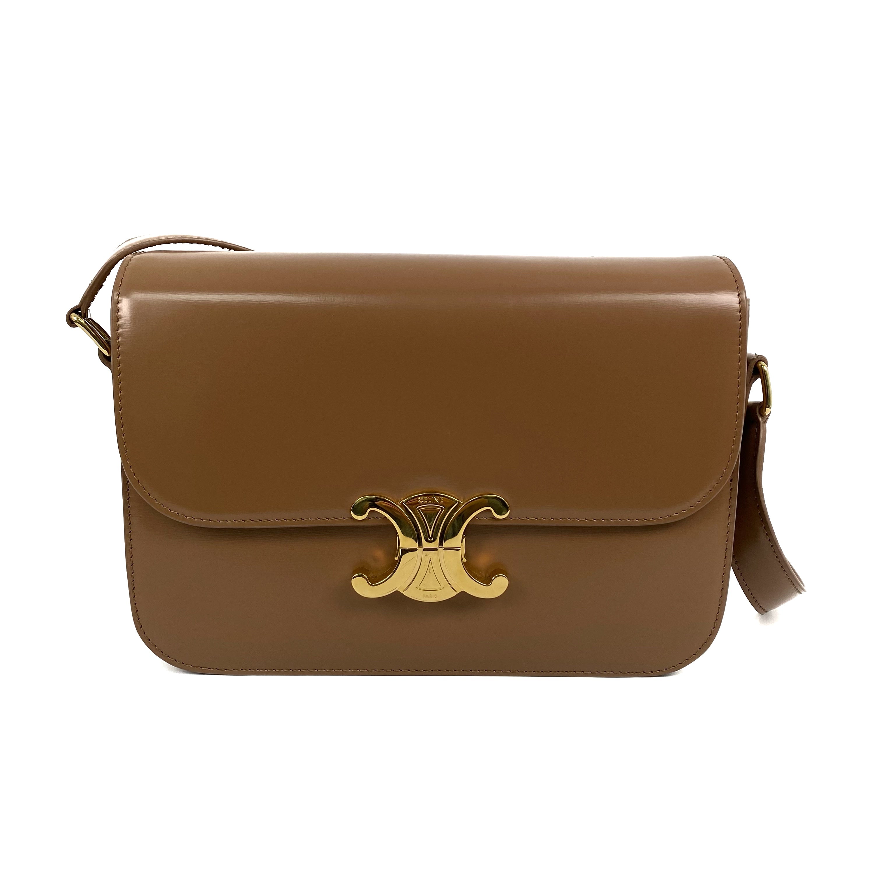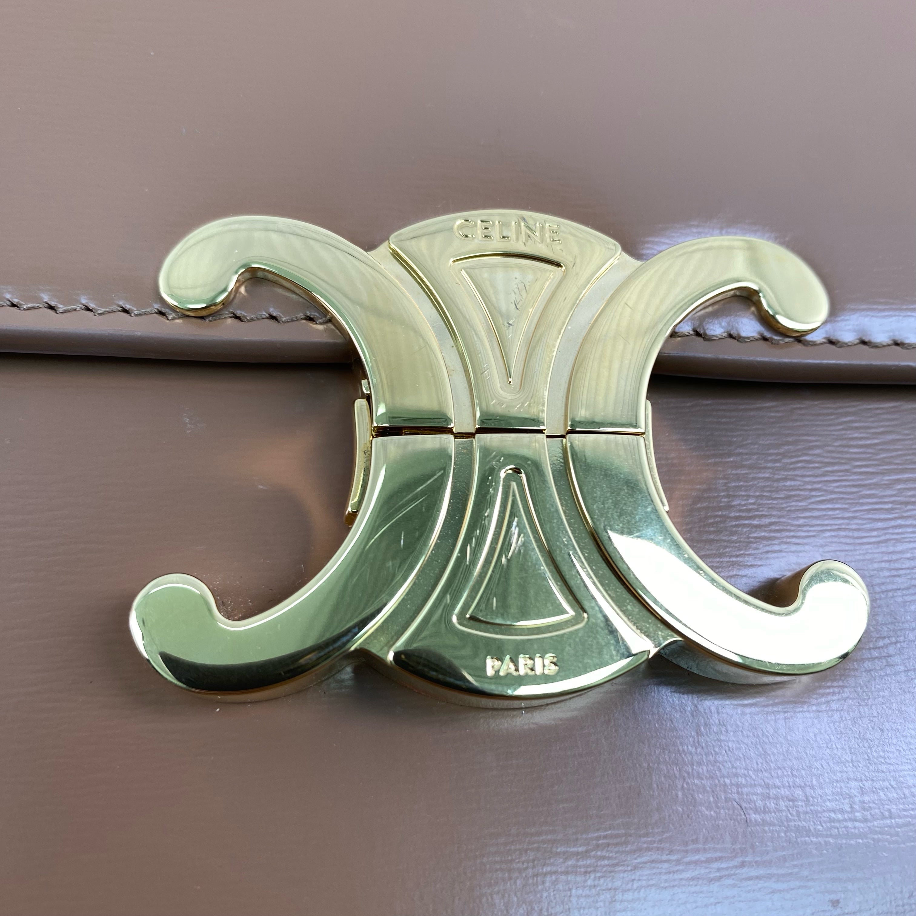 △ Celine 思琳 Brown Shiny Calfskin Teen Triomphe Shoulder Bag 啡色亮面小牛皮肩背袋 - 267003843