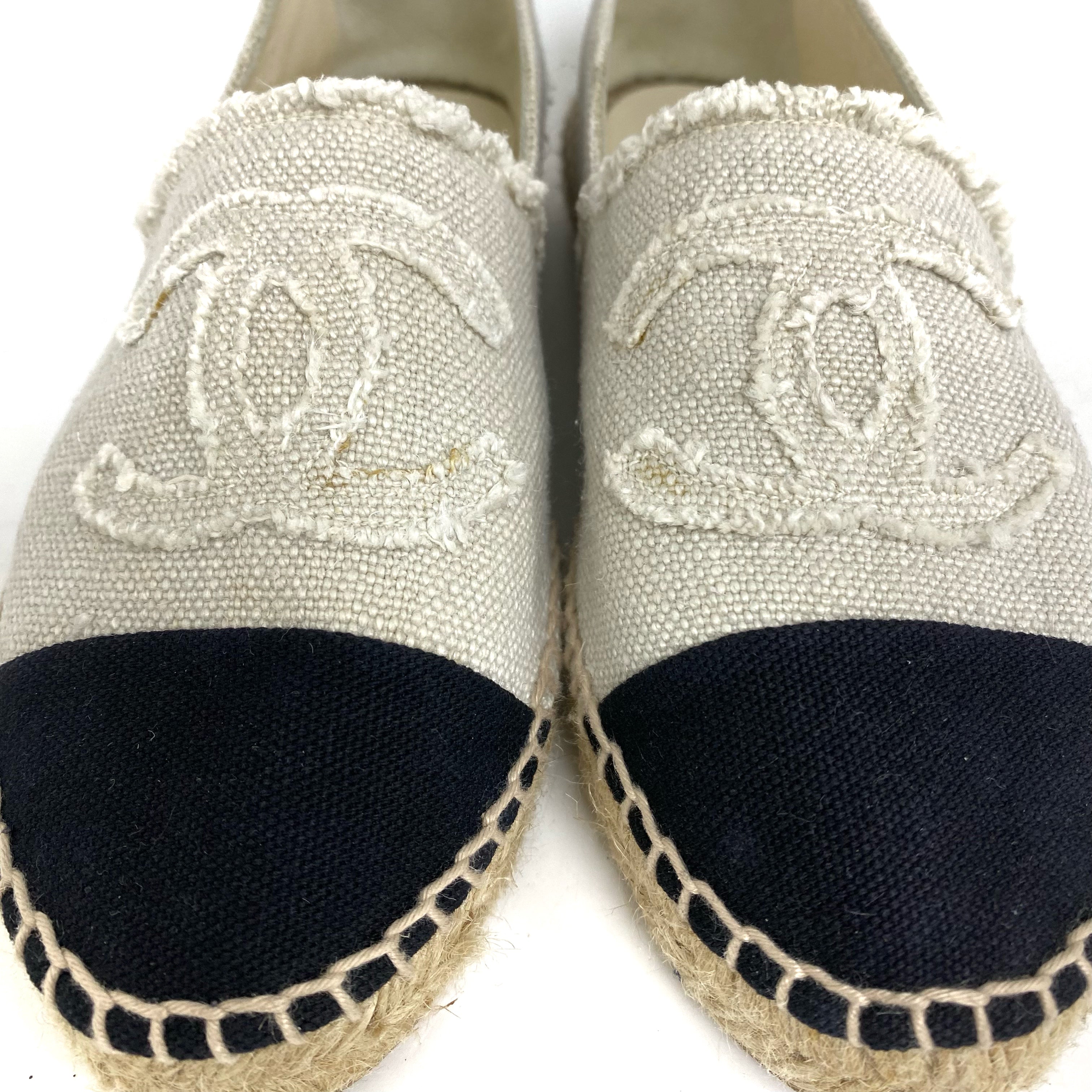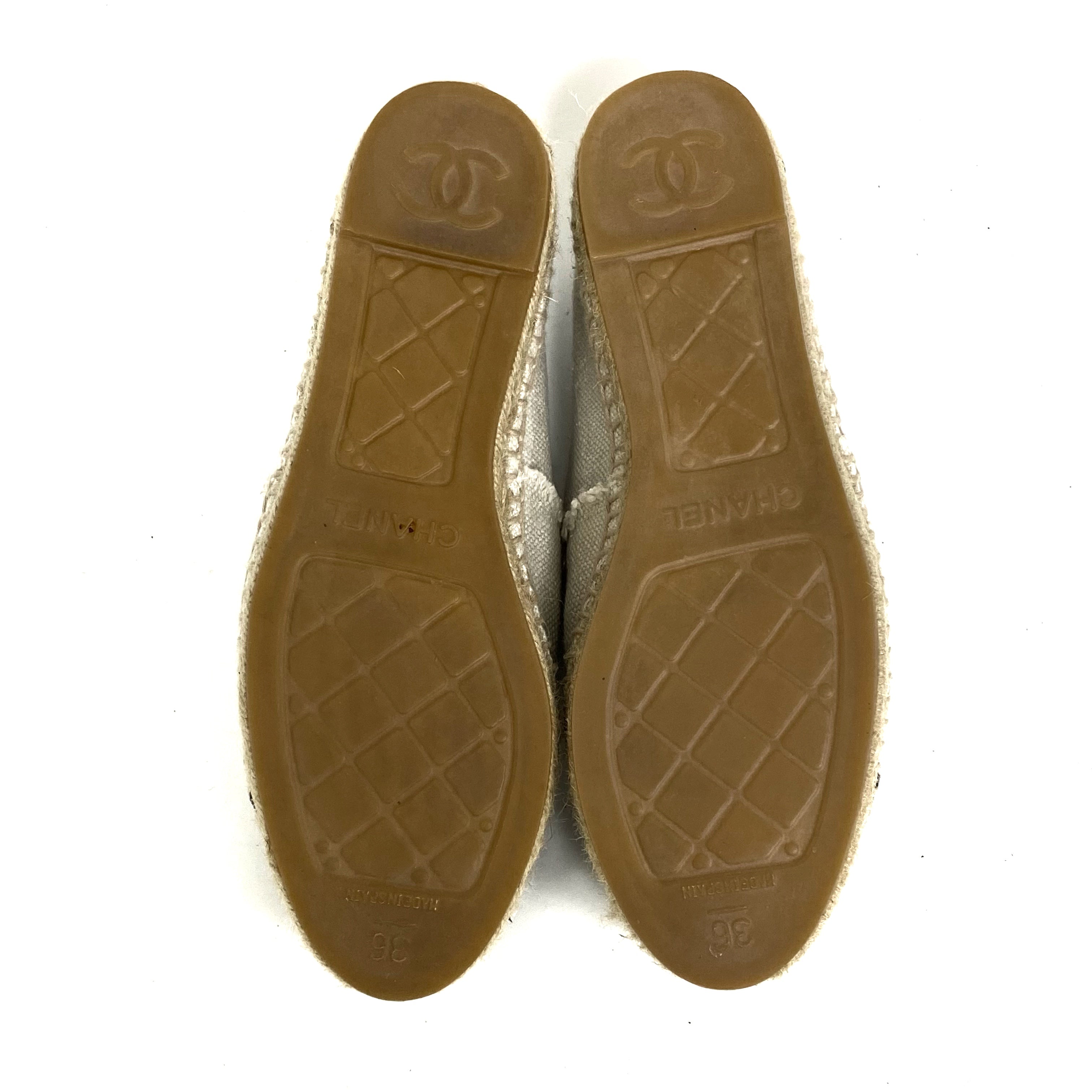 ☆Chanel 香奈兒 Beige Canvas Espadrilles Shoes 36 Size 米色帆布草編鞋 36 碼 - 257025268