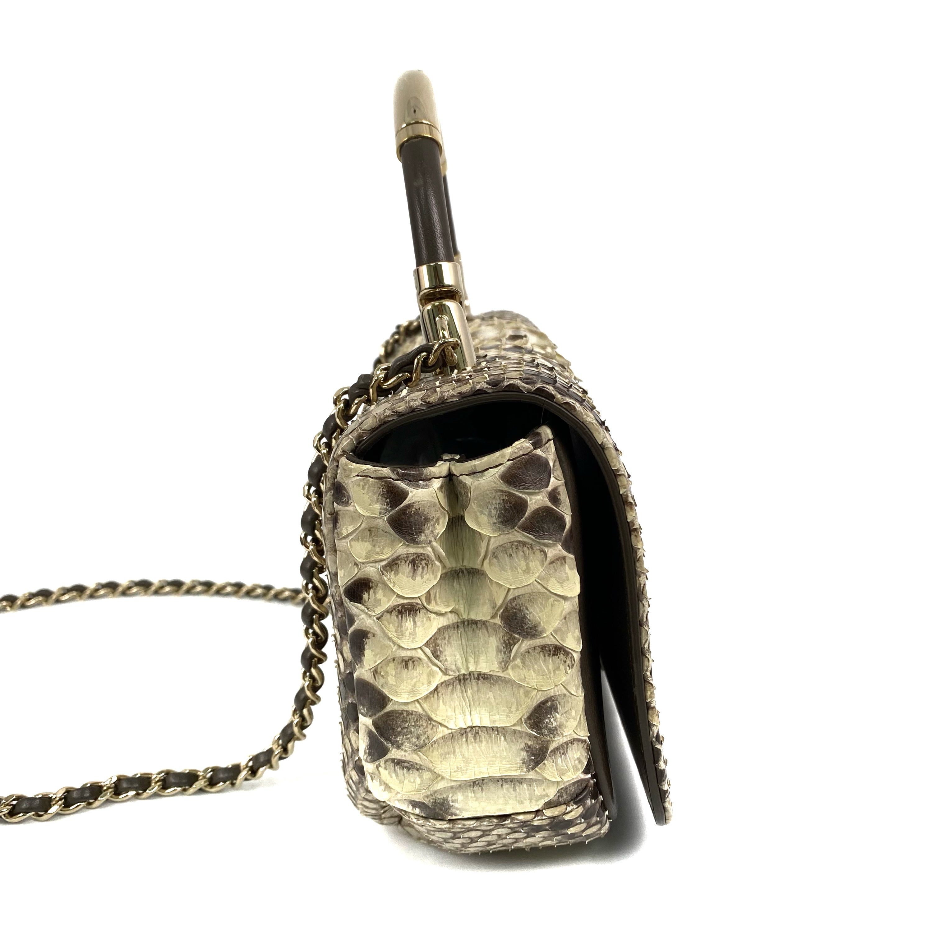 【只寄香港 Ship to Hong Kong Only】△ Chanel 香奈兒 Beige Python Gold Tone Metal Single Flap Chain 2 Way Bag No.23 米黃色蛇皮金色金屬鎖鏈肩背袋No.23 - 267002286
