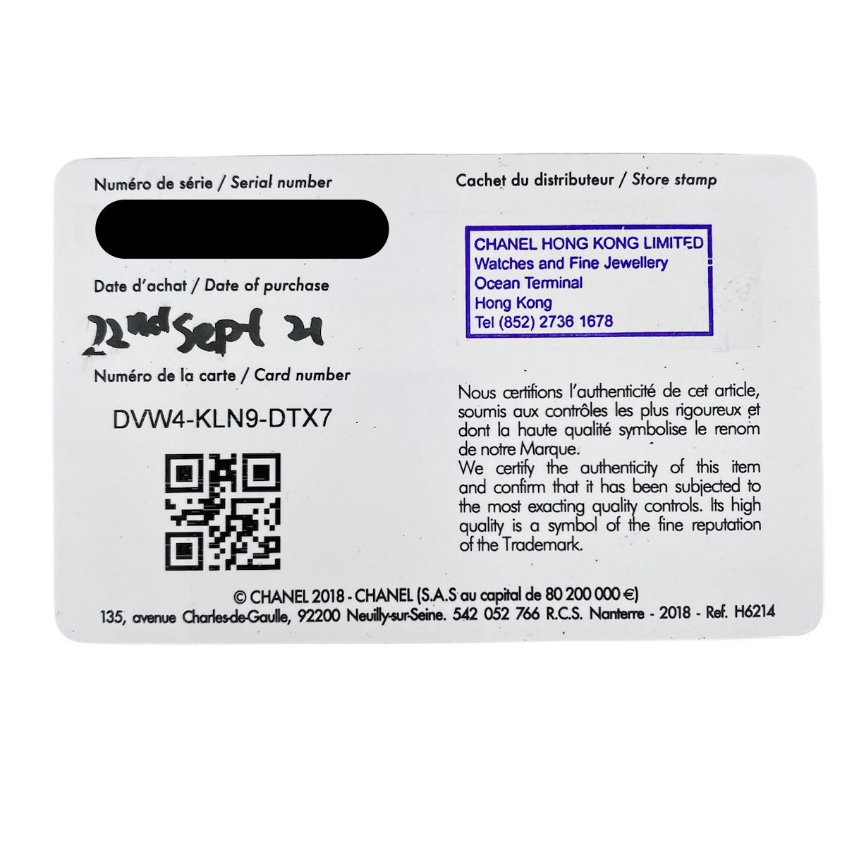 | 附件 Accessory | (不會列出欠缺的原裝配件 Missing original accessories will not be listed )只有 盒, 證書(沒有日期), 卡(9/2021), 額外錶格 Box, certificate(no date), card(9/2021) only |