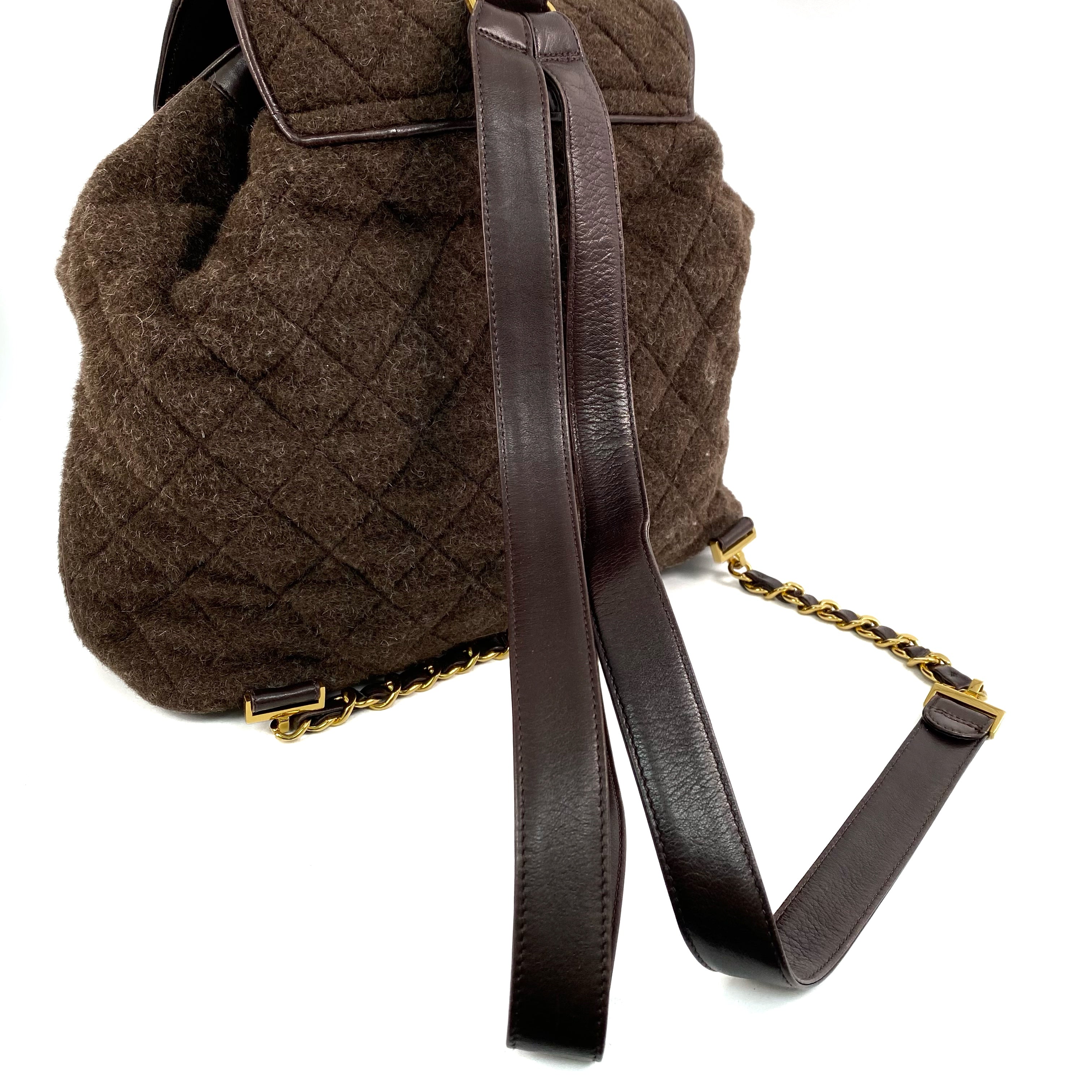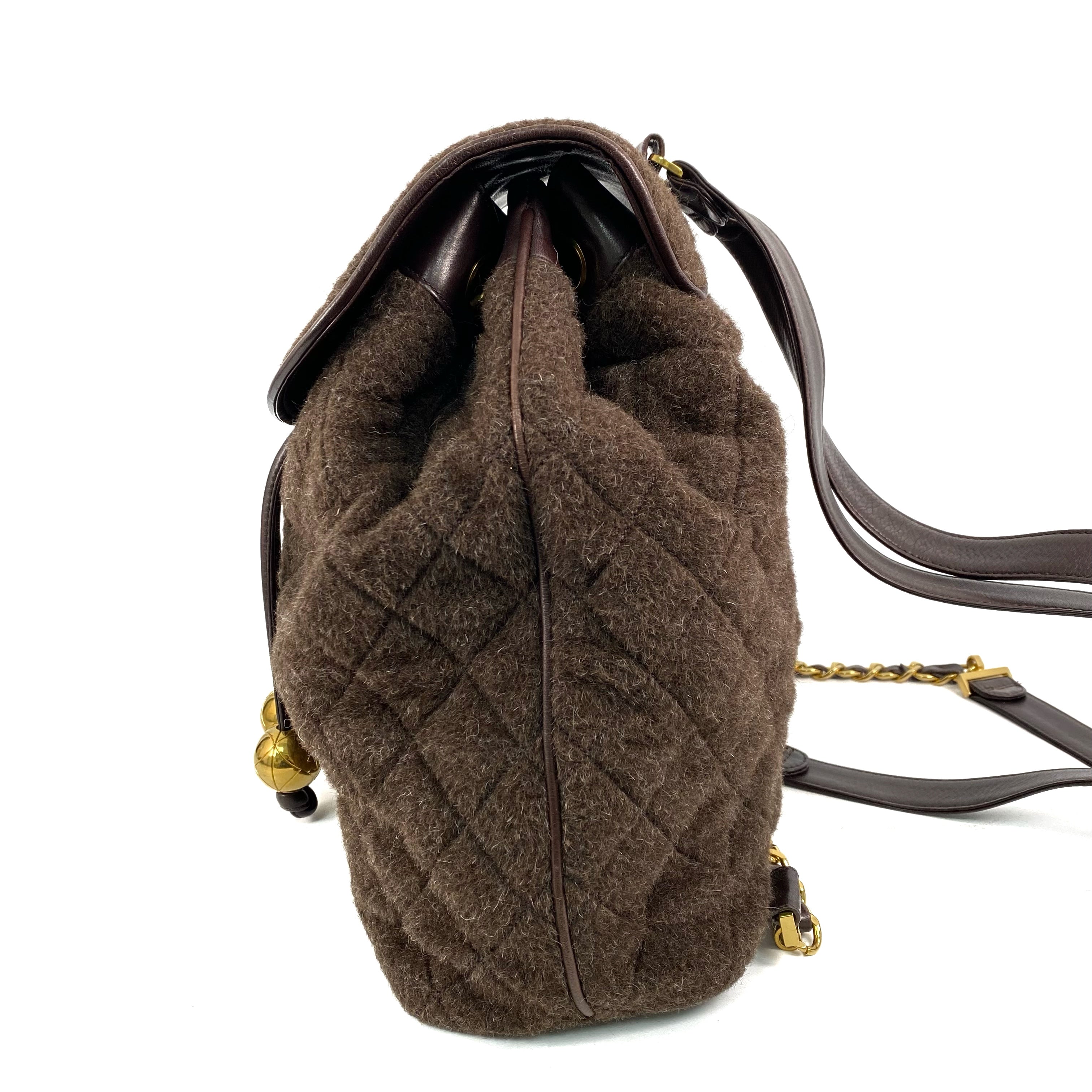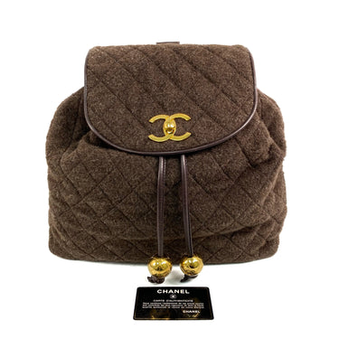 △ Chanel 香奈兒 Brown Cashmere Gold Tone Metal Back Pack No.3 啡色羊絨金色金屬背包 - 267006114