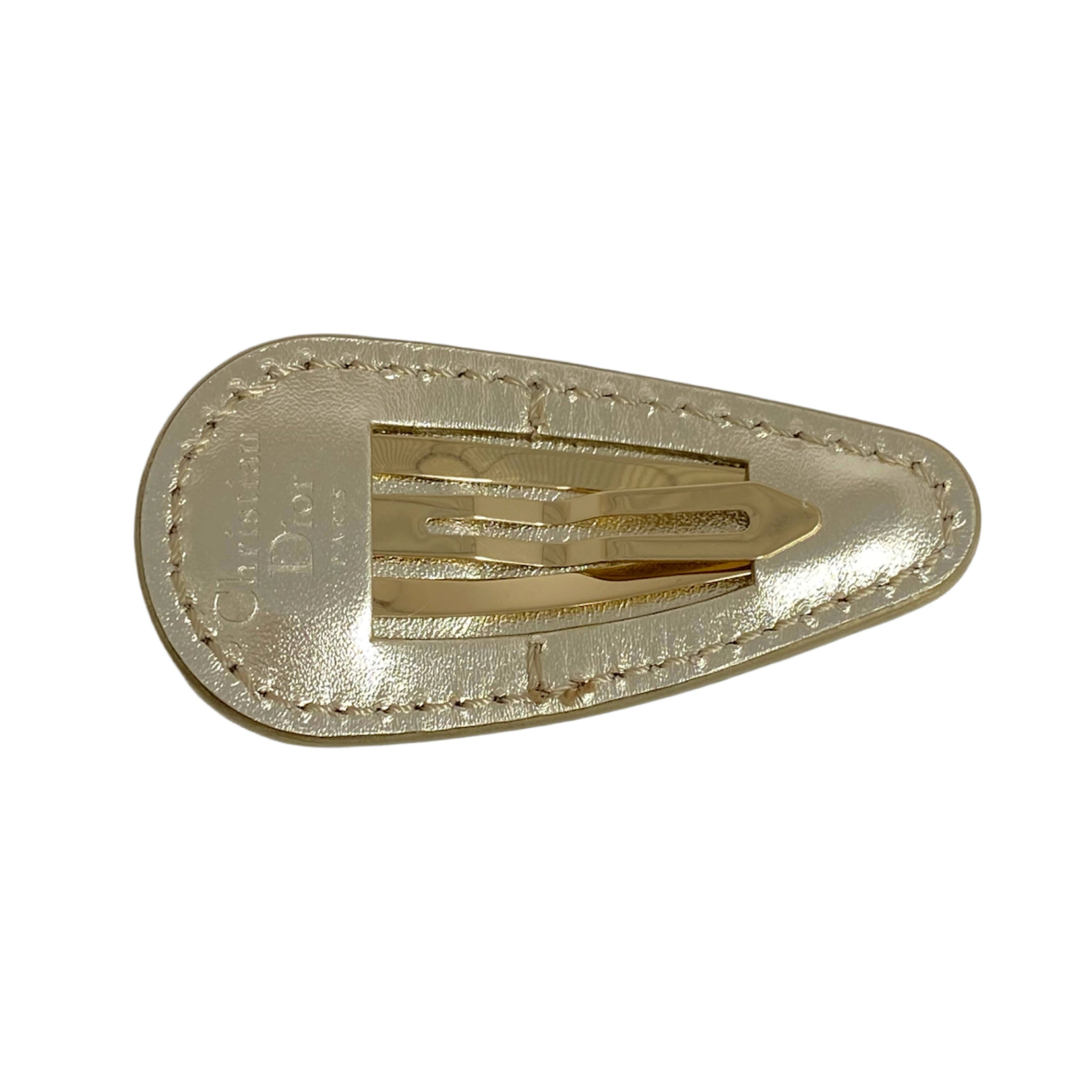 ☆ Christian Dior 迪奧 Gold Calfskin Hair Clip 金色小牛皮髮夾 - 267007119