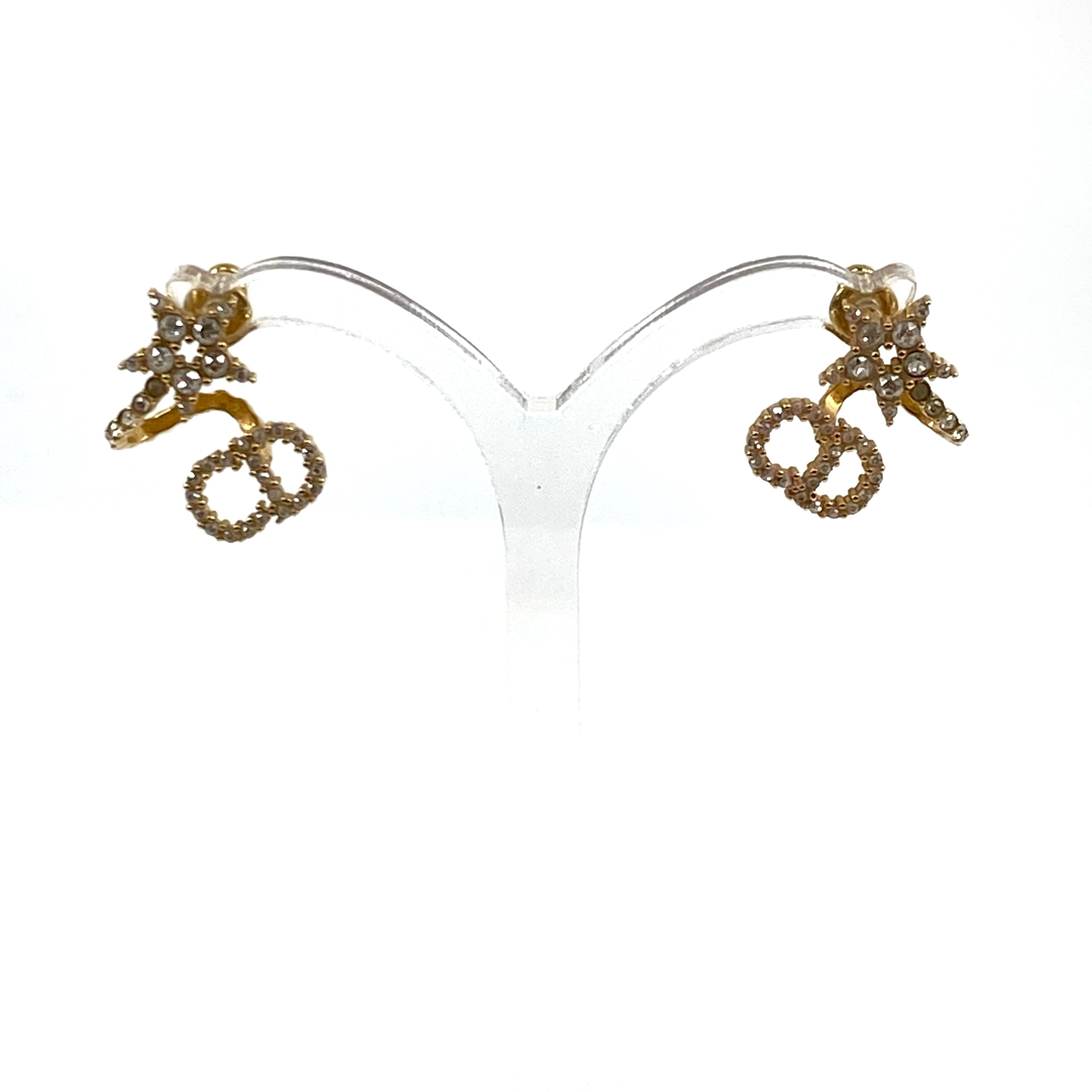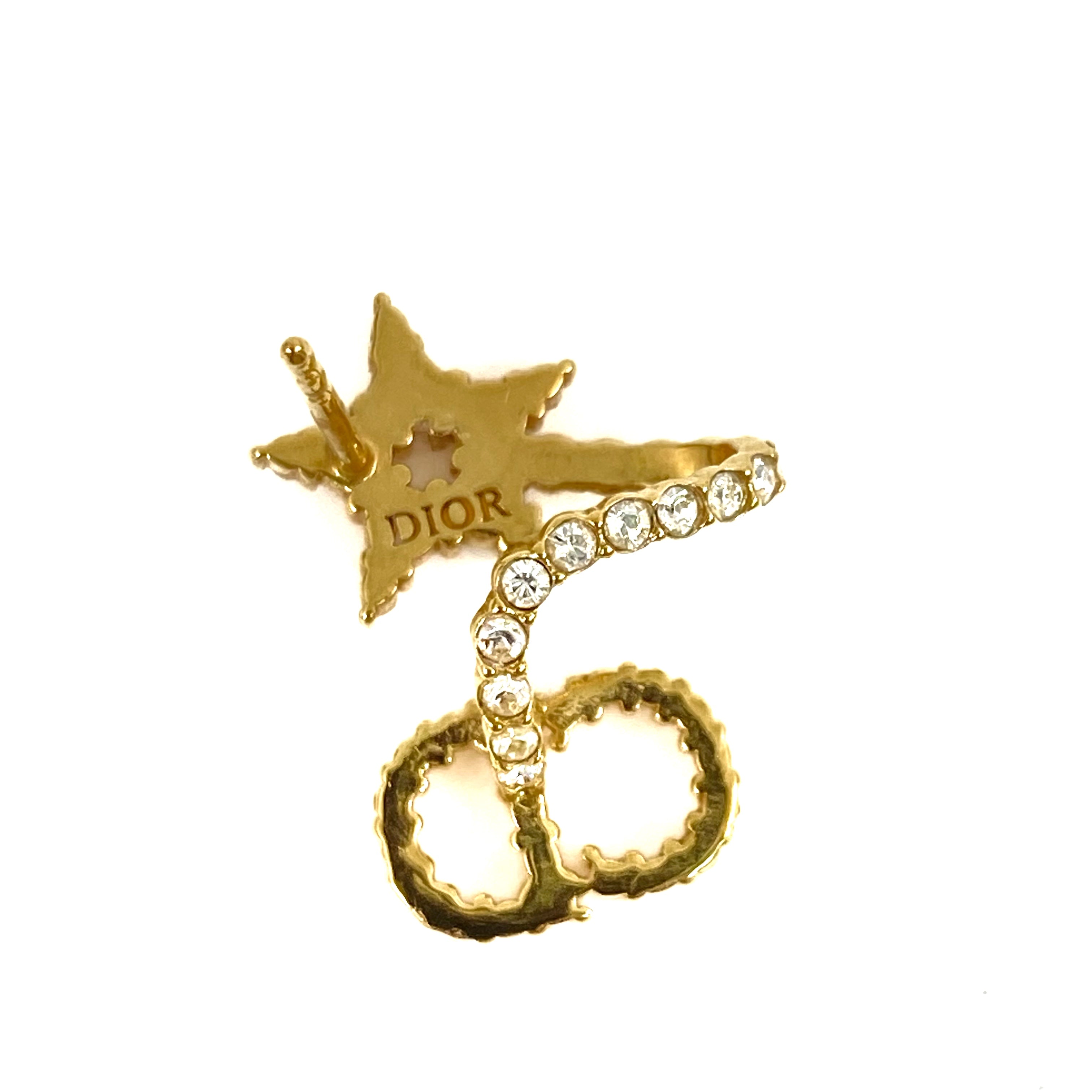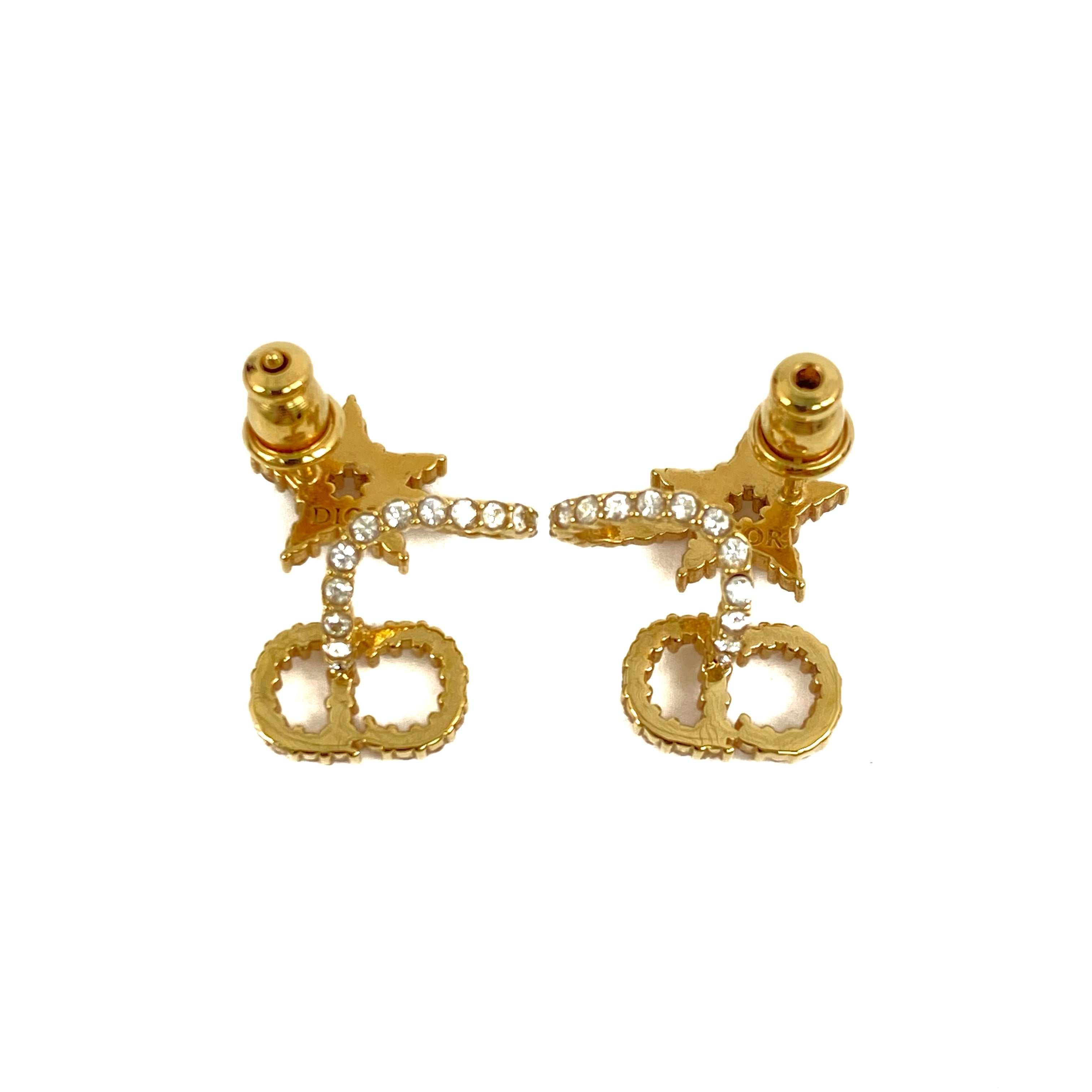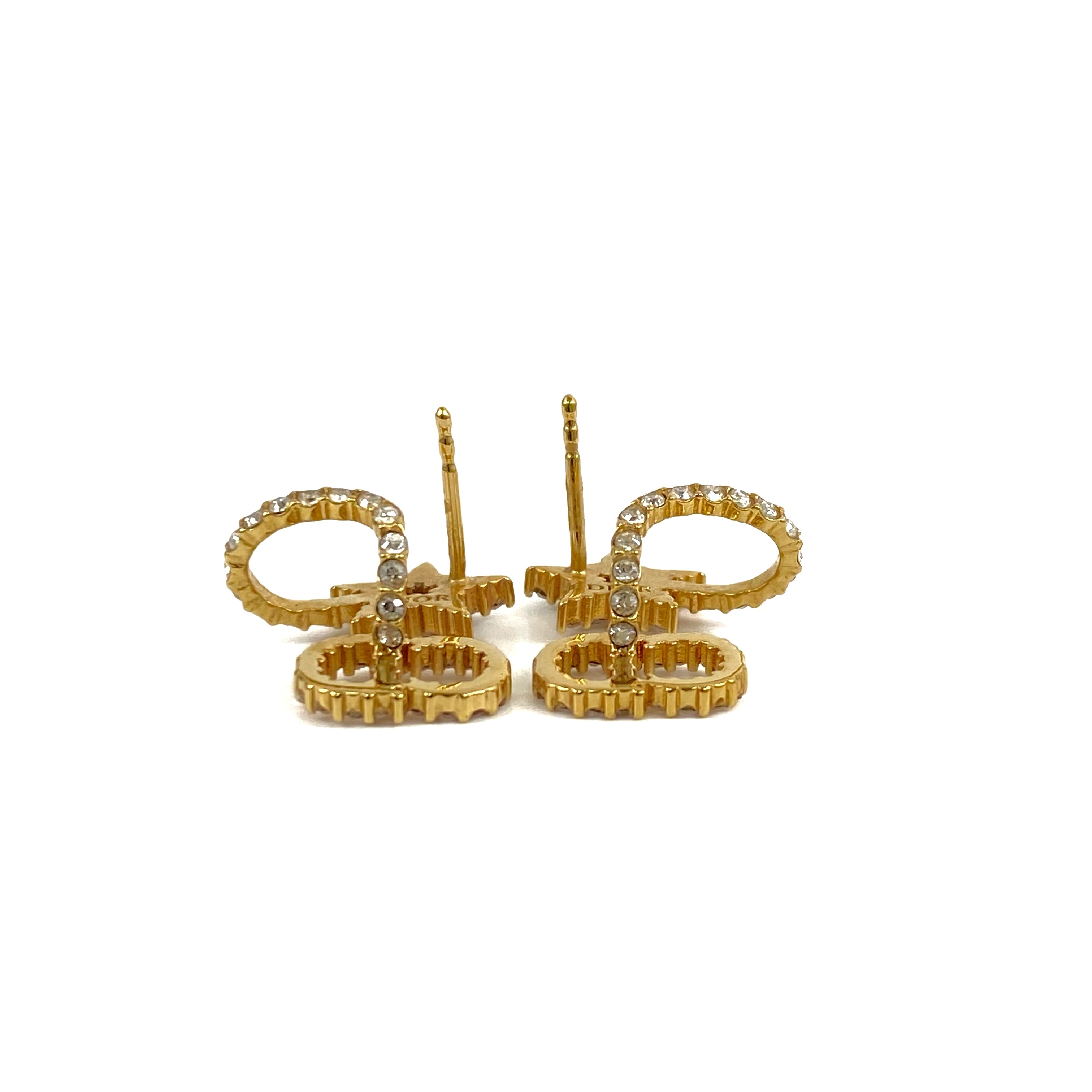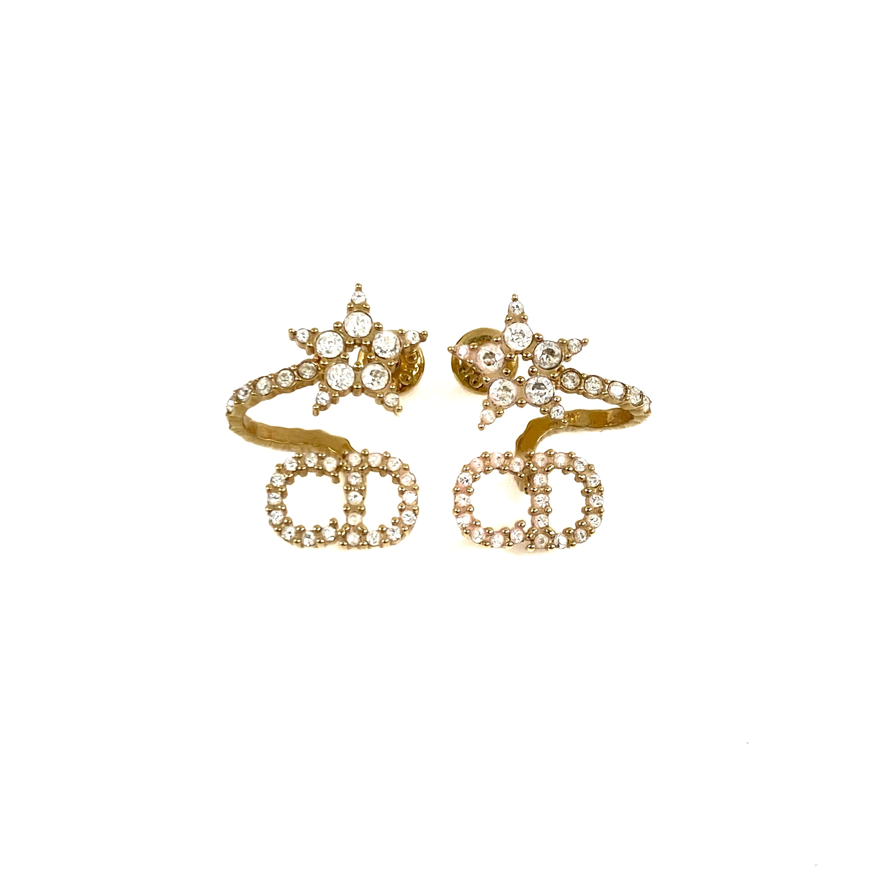 ☆Dior迪奧 Gold Tone Metal Rhinestone Earrings 金色金屬水鑽耳環 -267004933