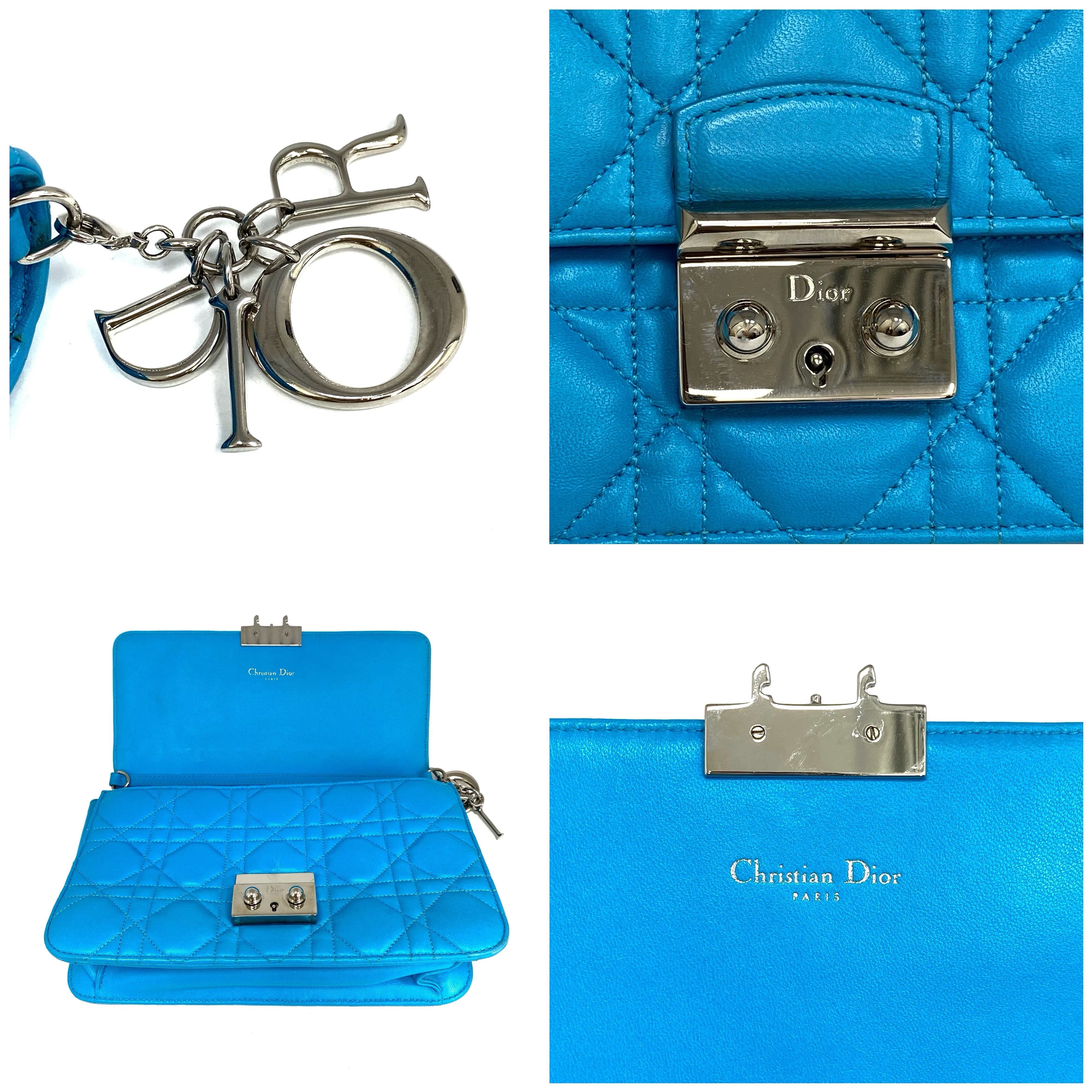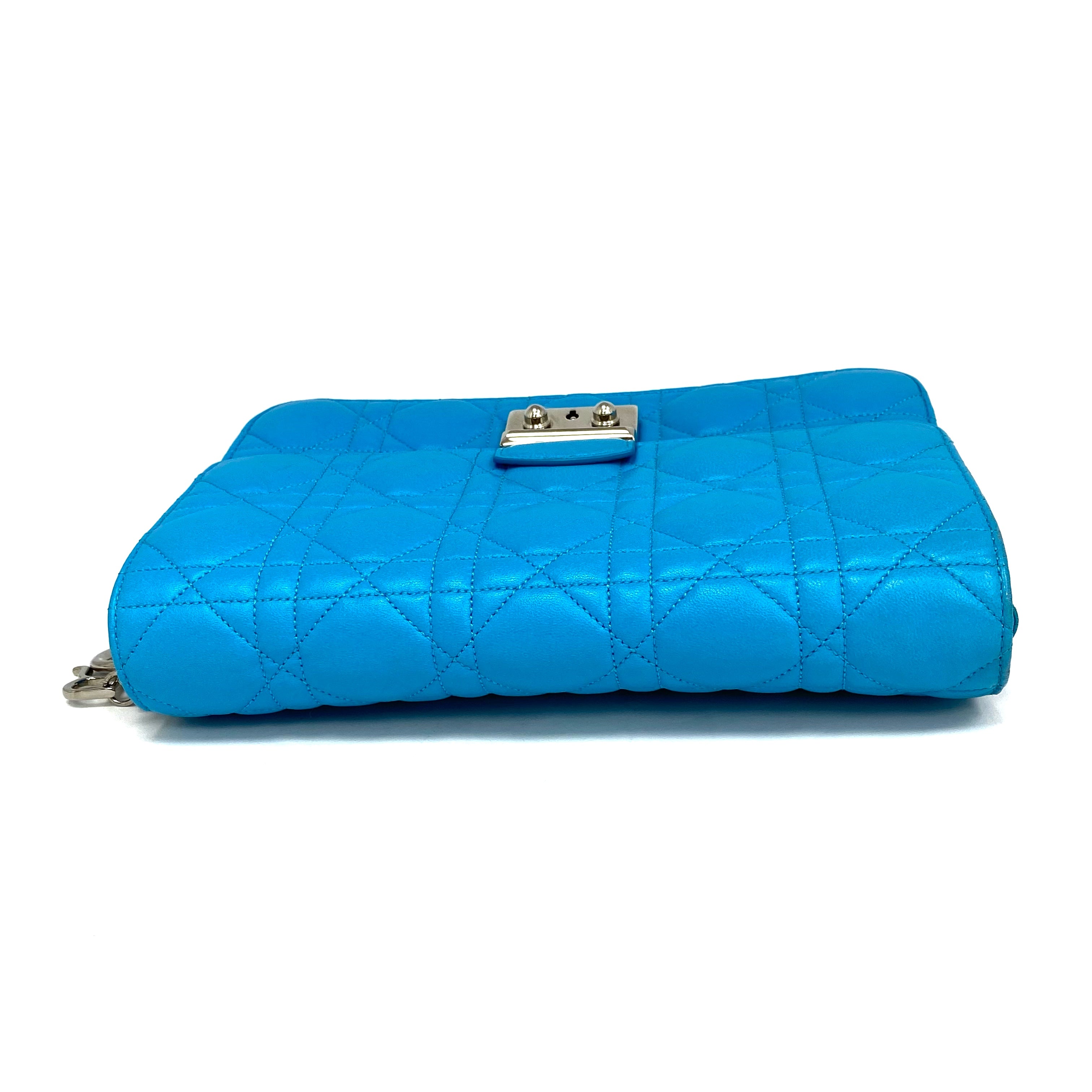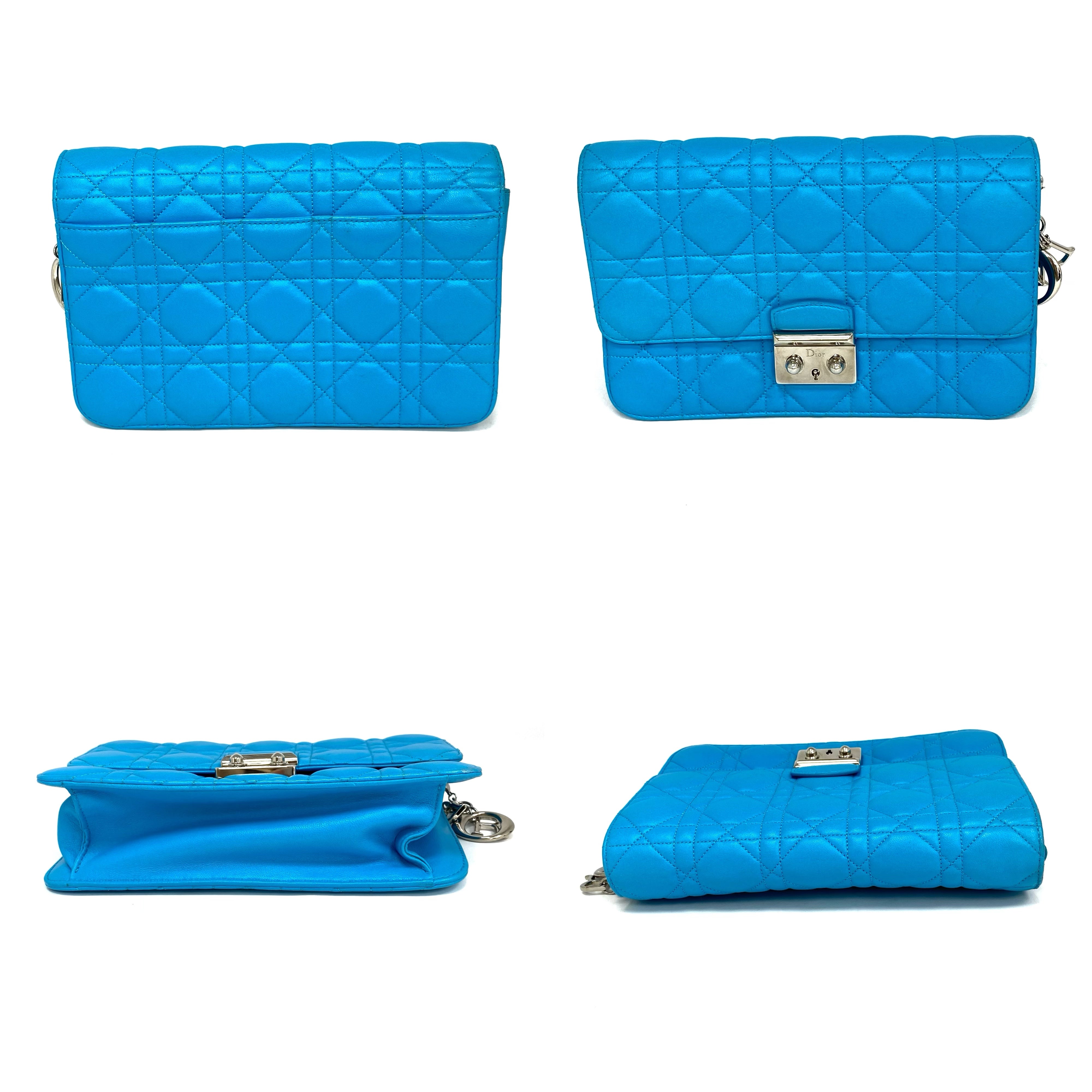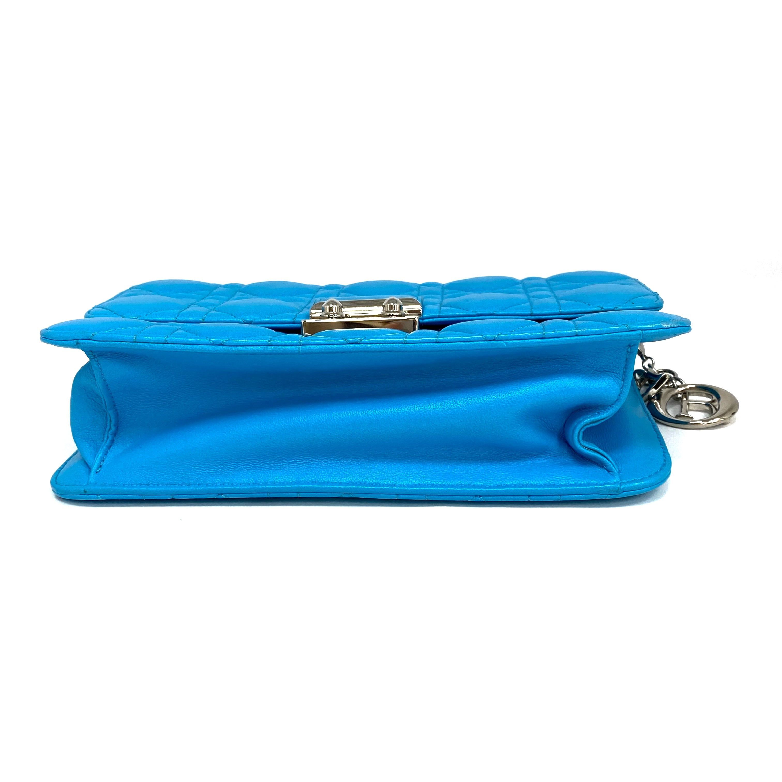 ☆Dior迪奧 Light Blue Lambskin Chain Cross-body Bag 淺藍色小羊皮鏈條斜背袋 -257027045