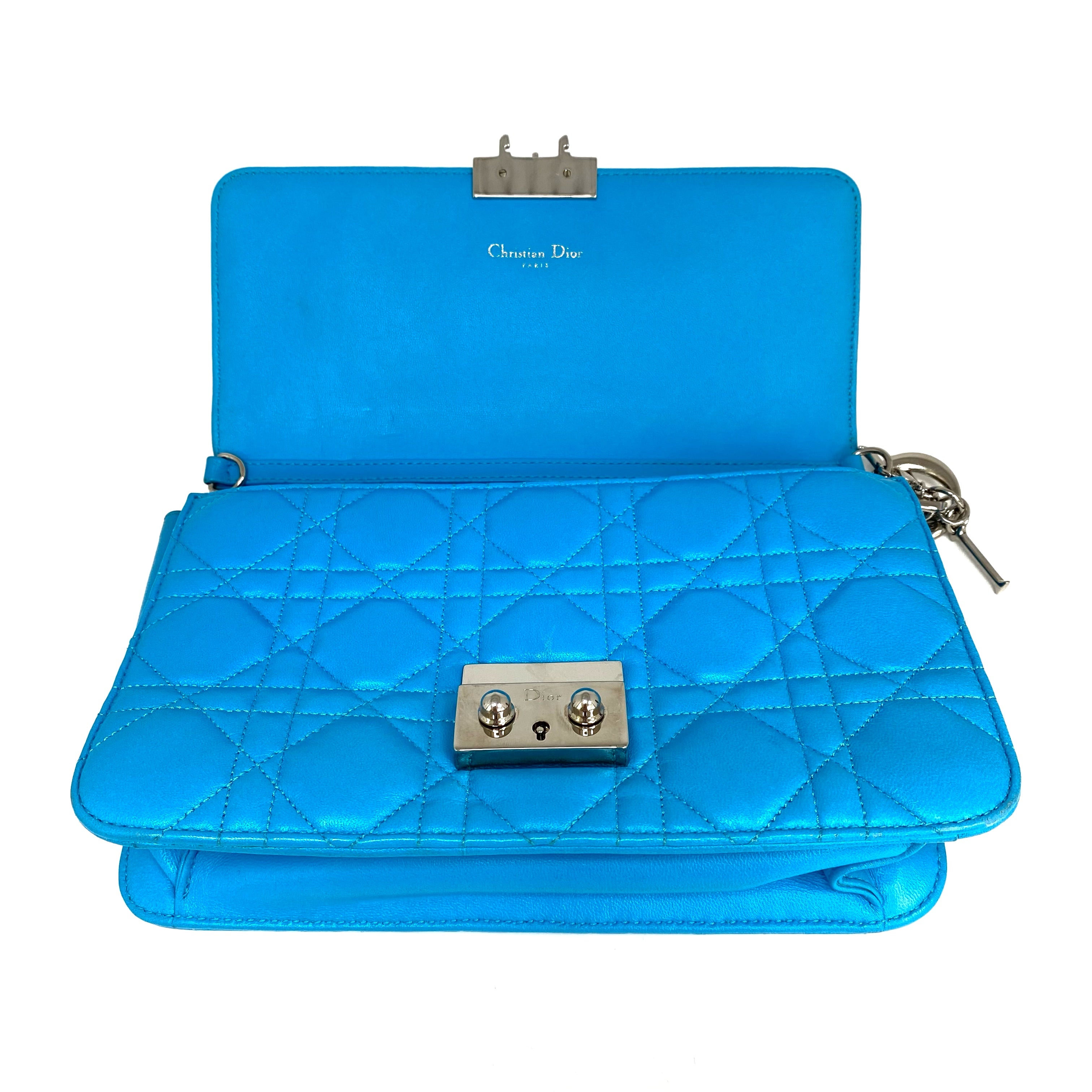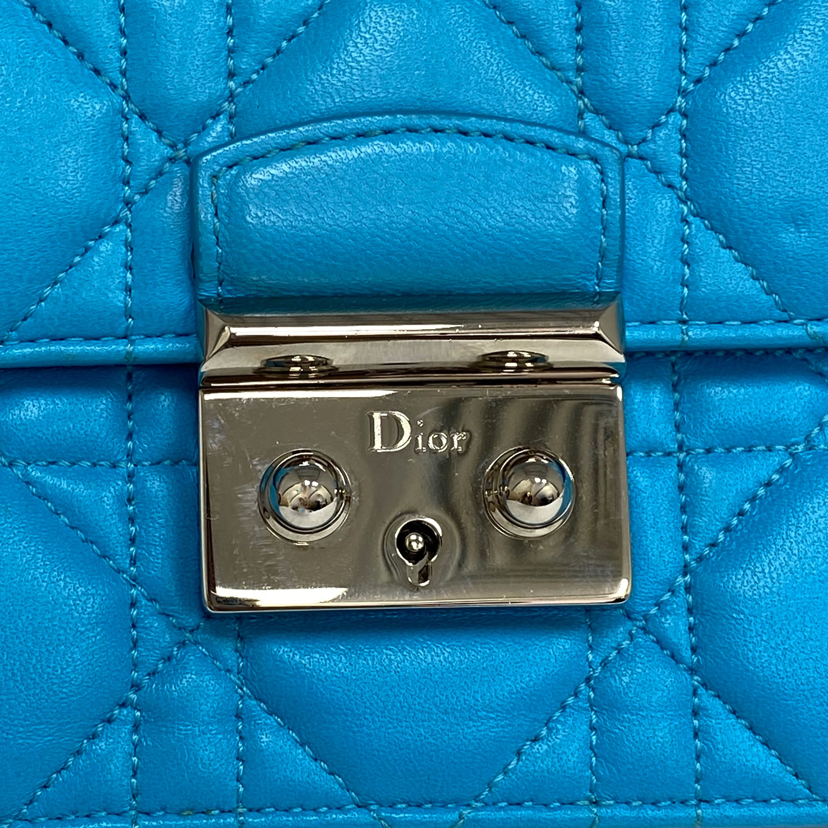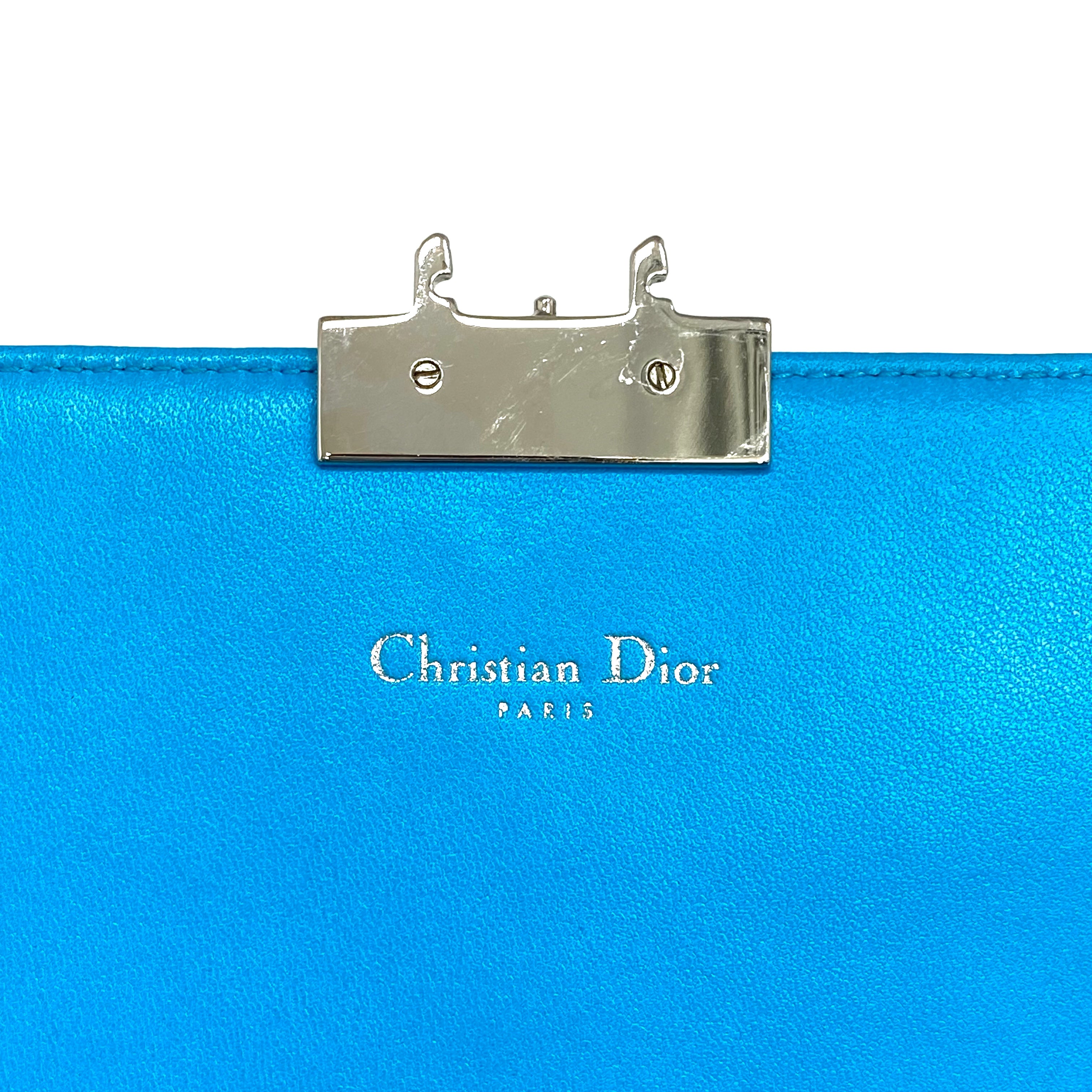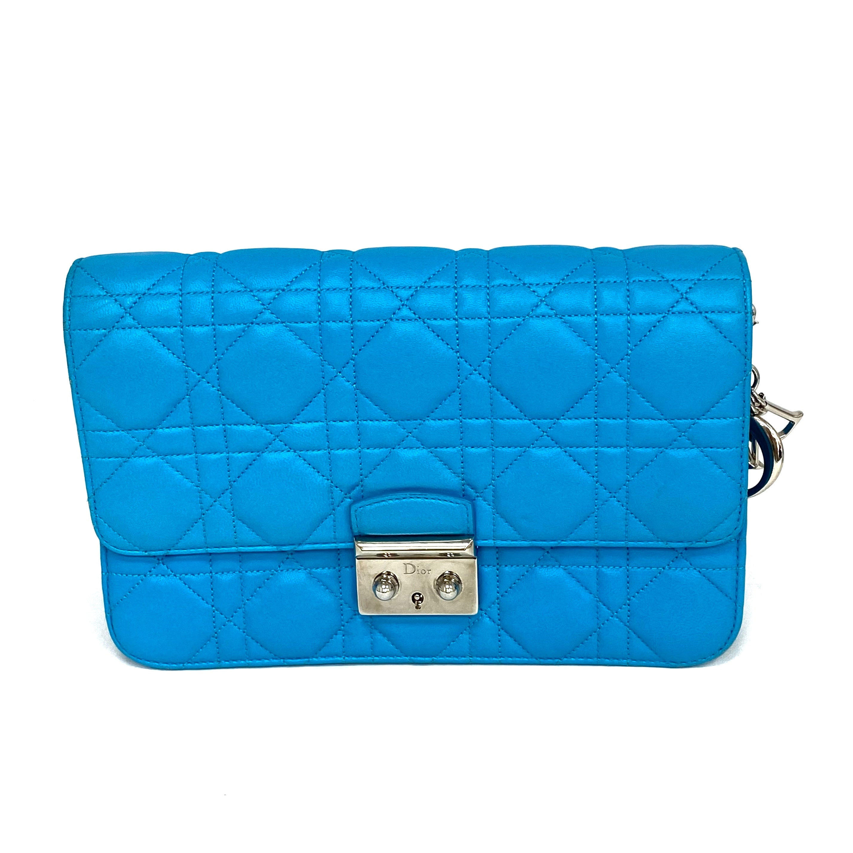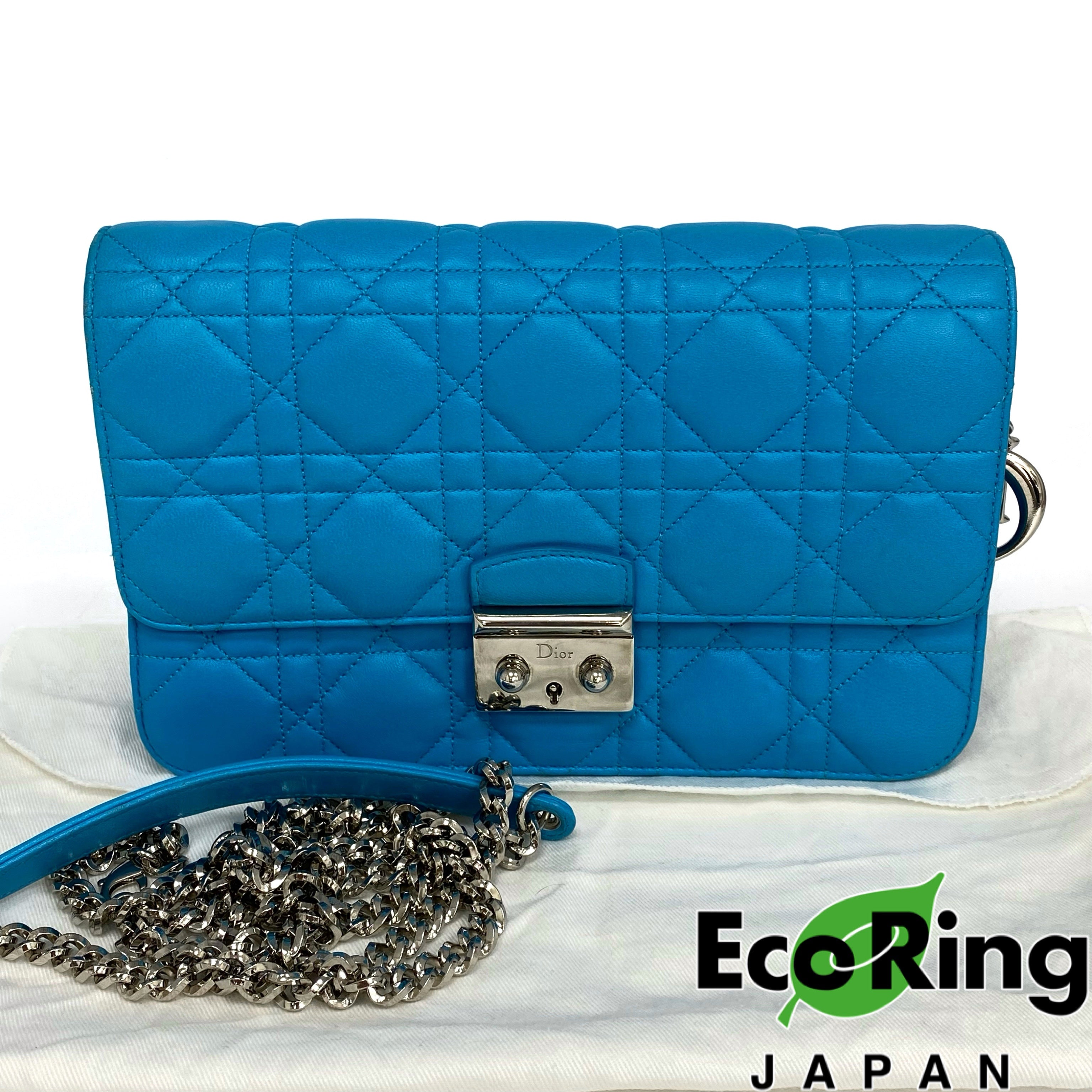 ☆Dior迪奧 Light Blue Lambskin Chain Cross-body Bag 淺藍色小羊皮鏈條斜背袋 -257027045