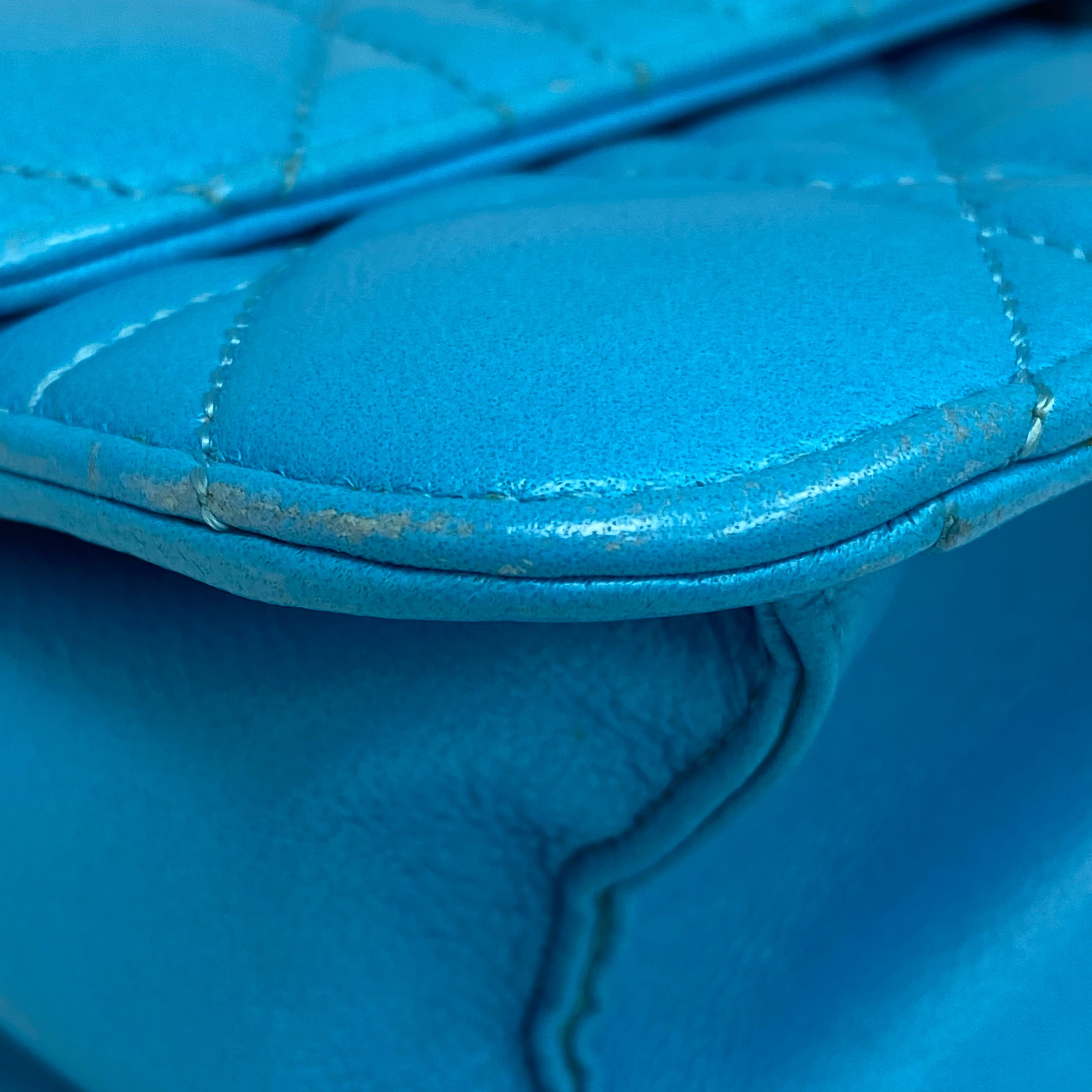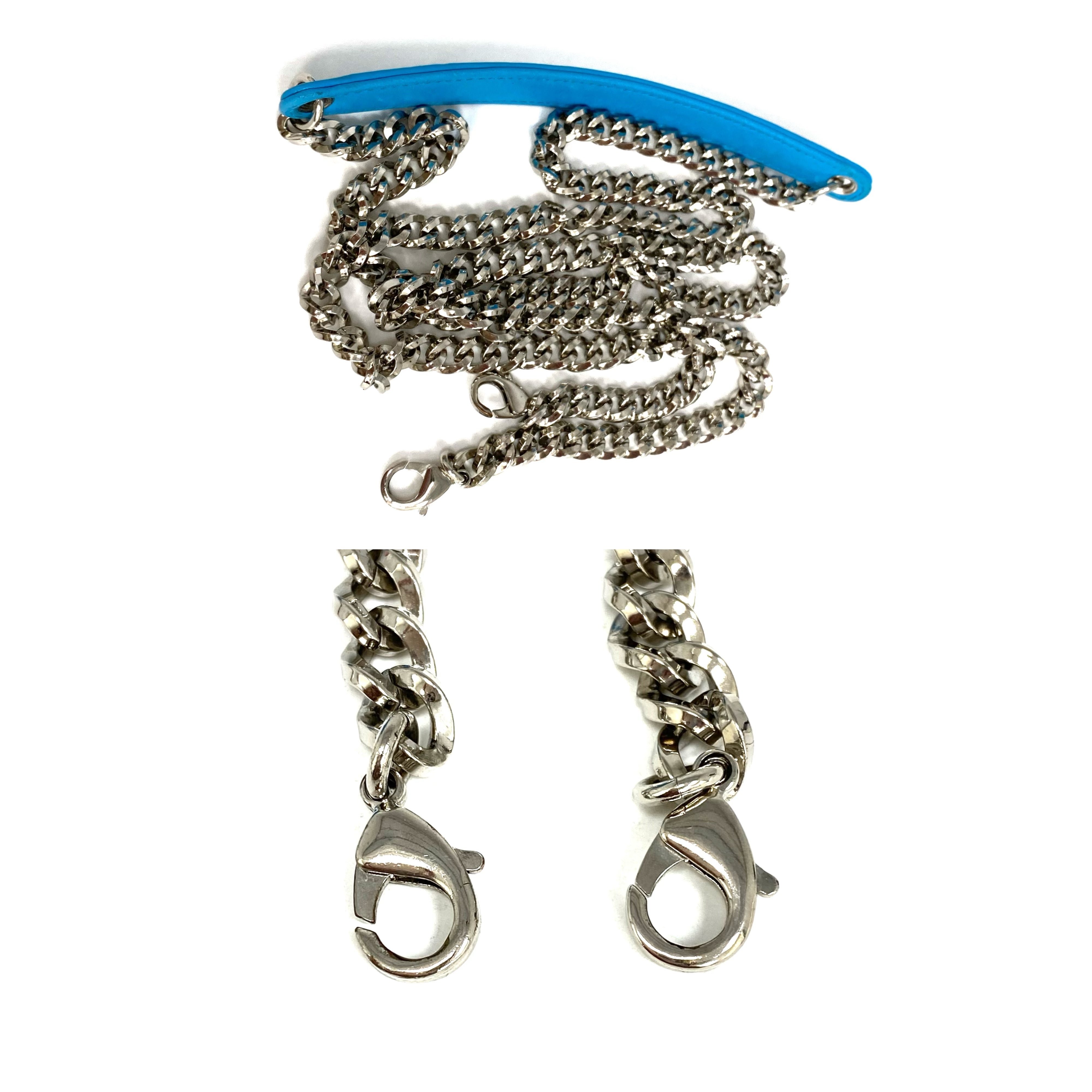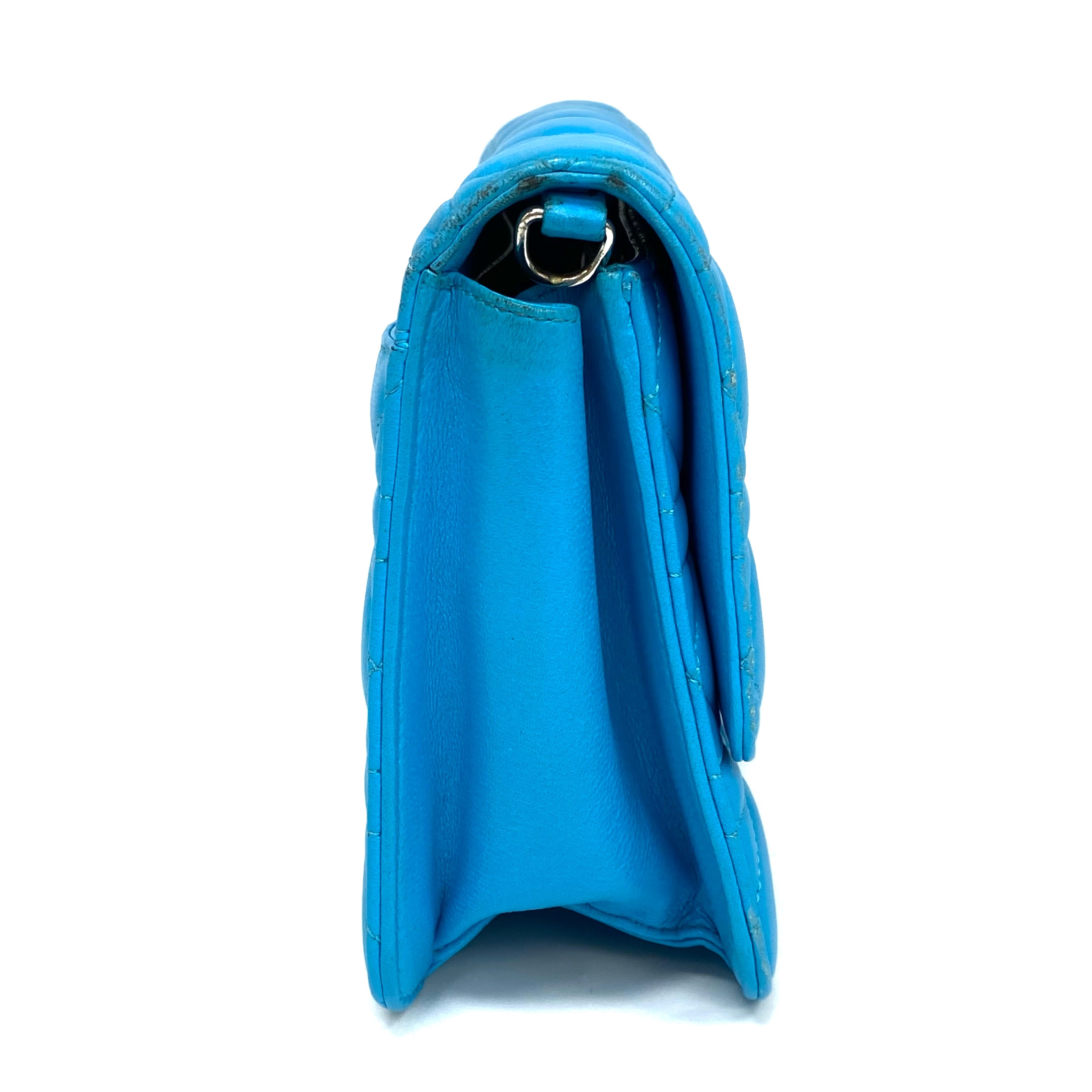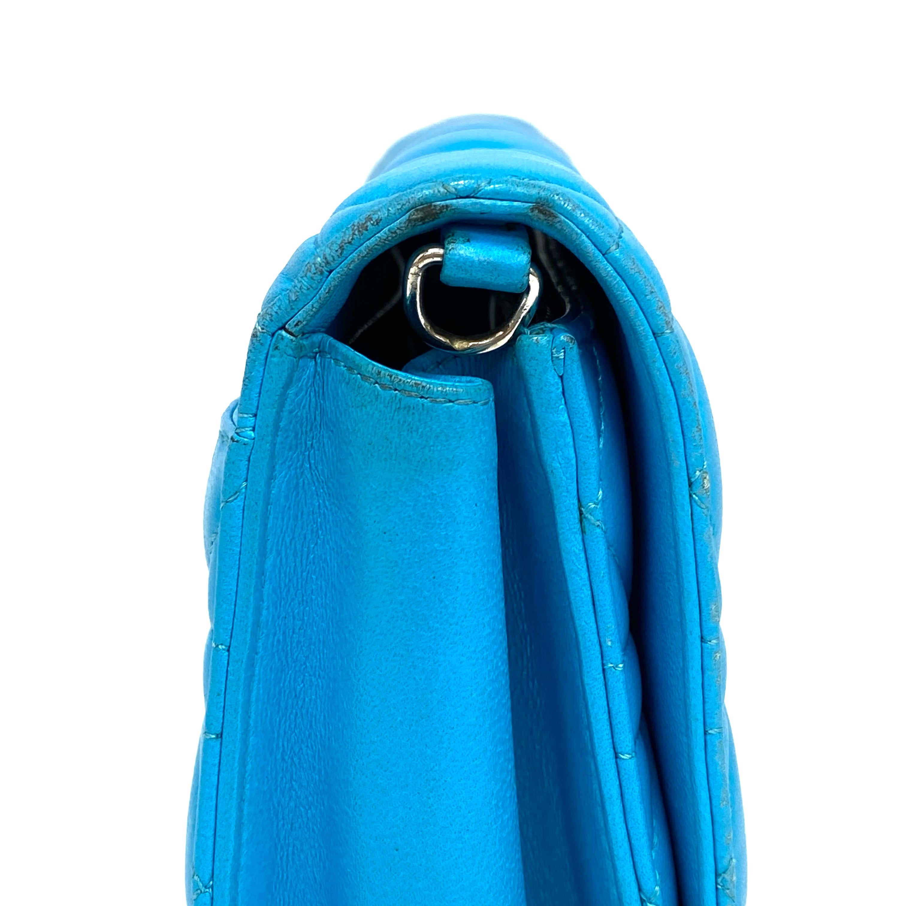 ☆Dior迪奧 Light Blue Lambskin Chain Cross-body Bag 淺藍色小羊皮鏈條斜背袋 -257027045