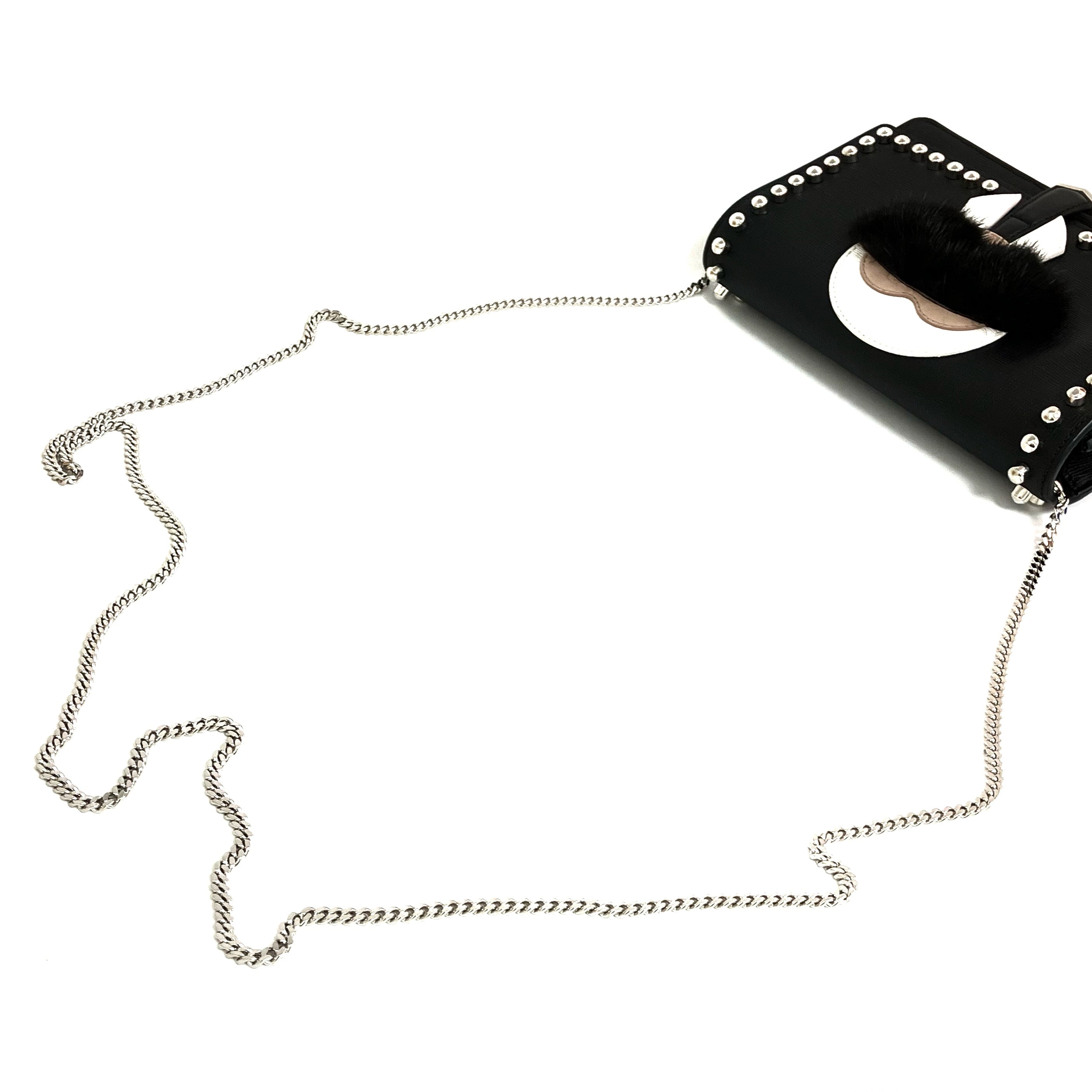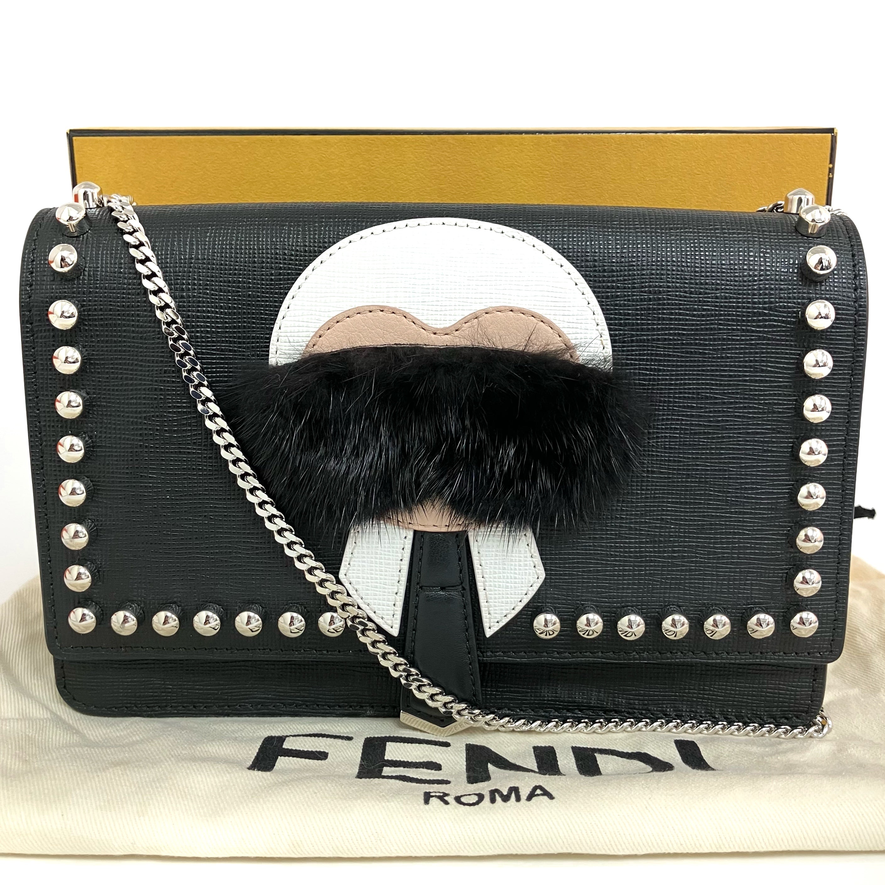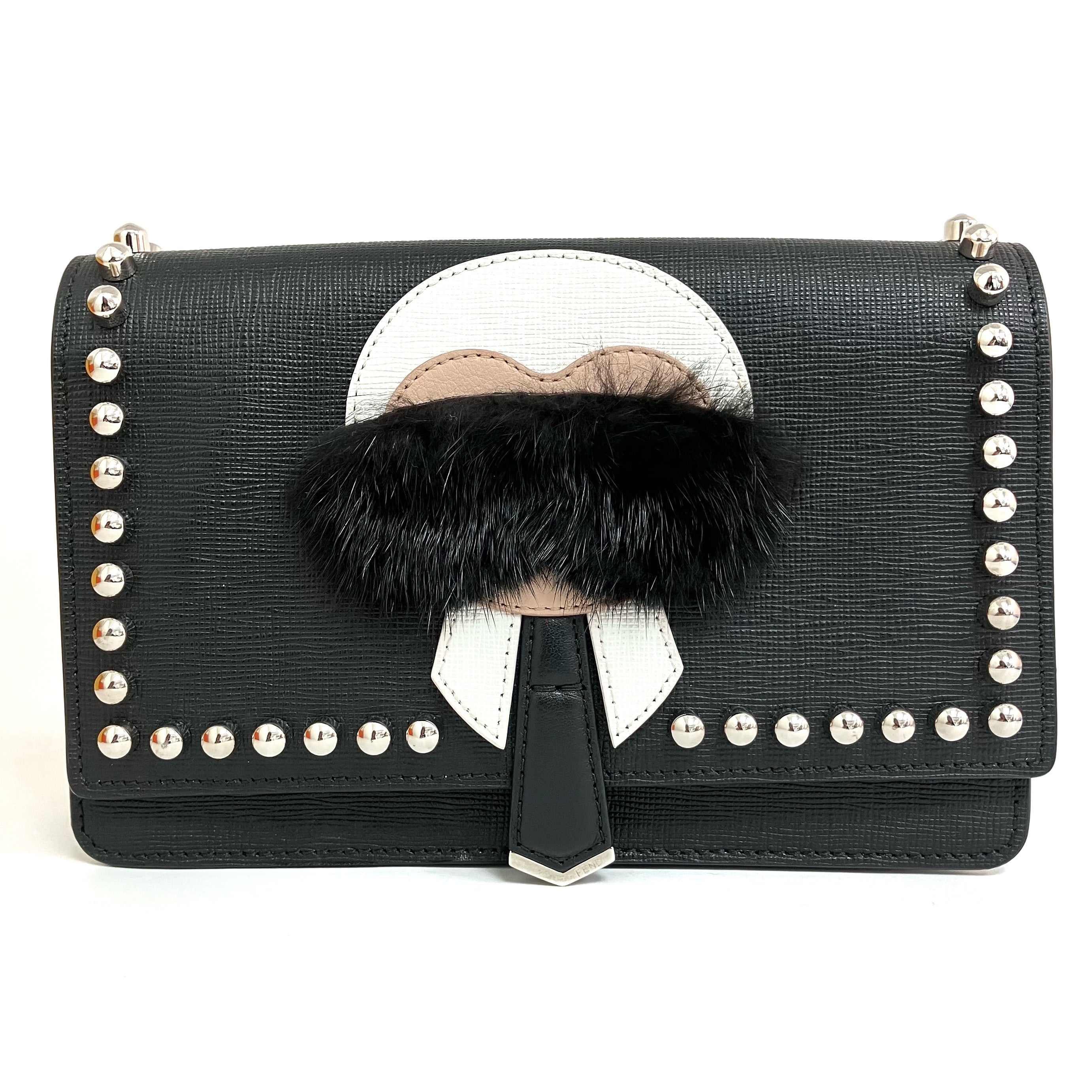 ☆ Fendi 芬迪 Black Saffiano Leather Karl Lagerfeld Chain Shoulder Bag 黑色十字壓紋牛皮老佛爺鏈條肩背袋 - 267004481