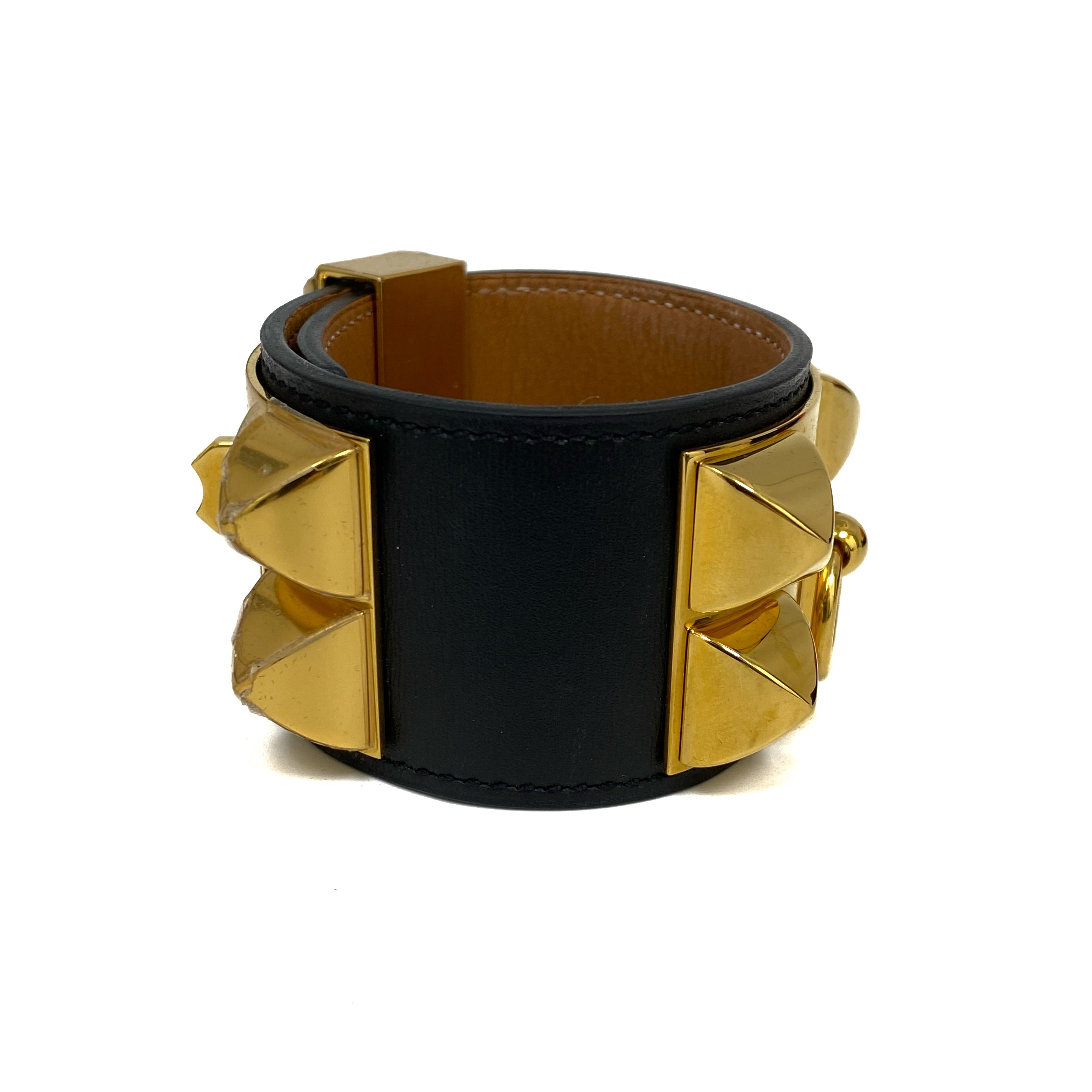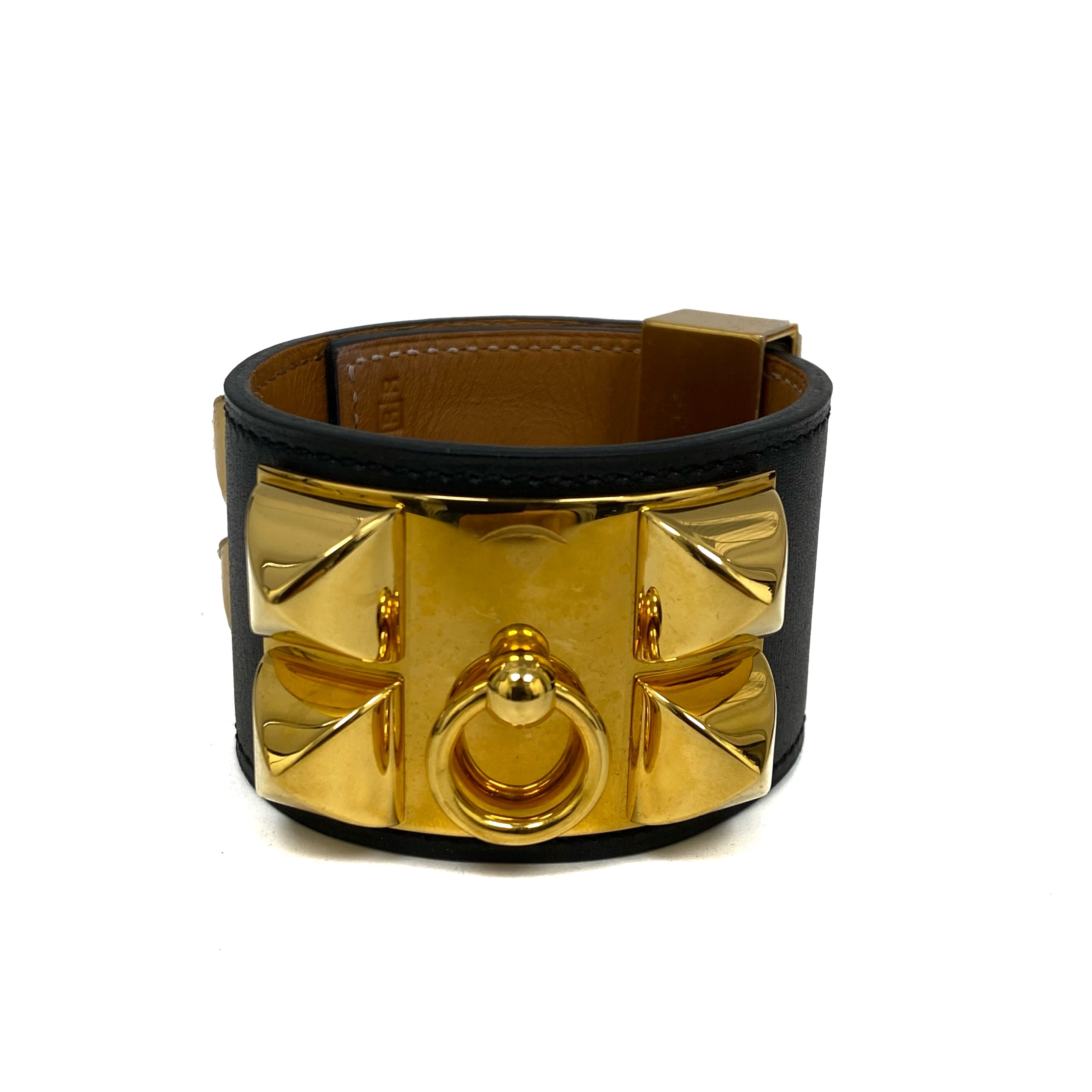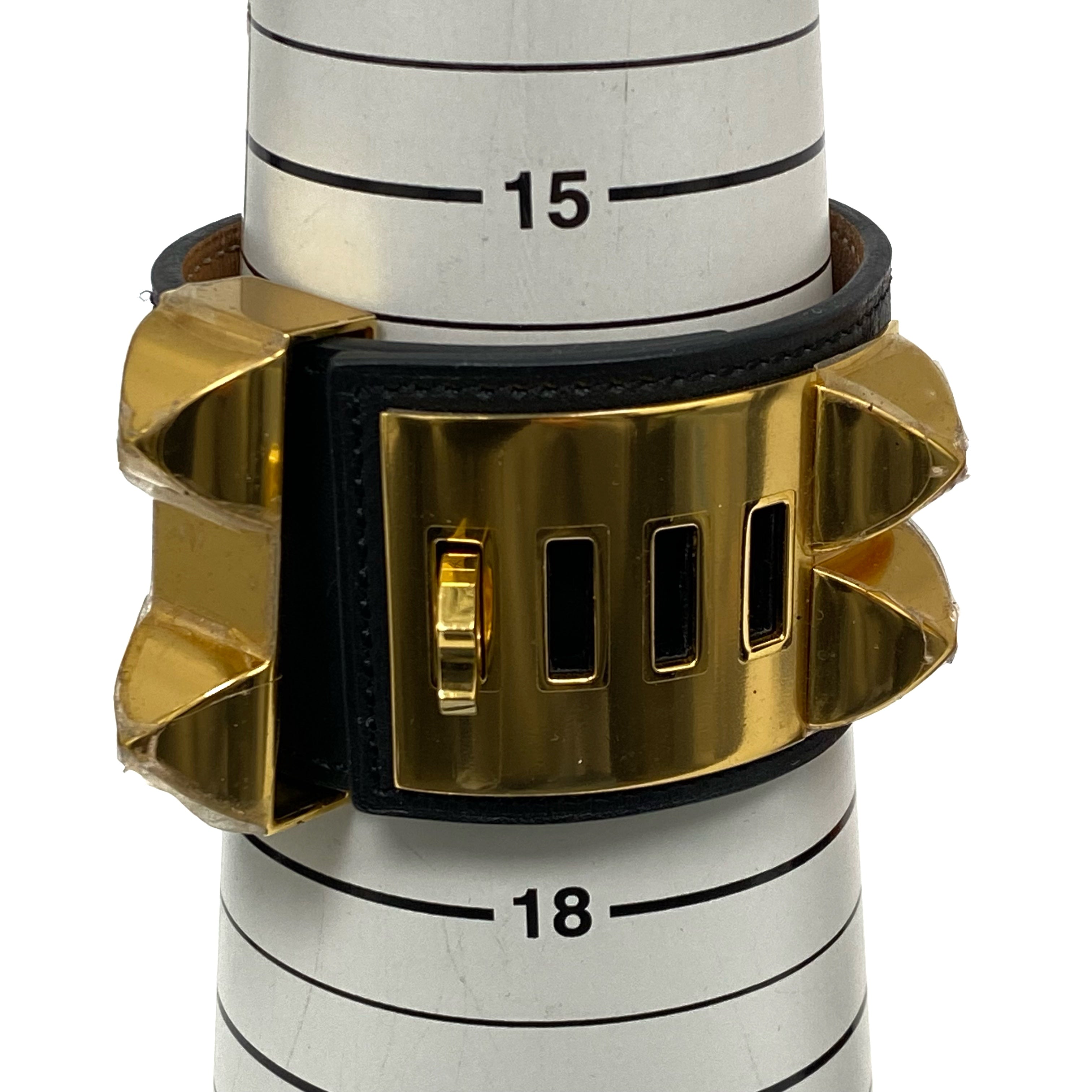 ☆ Hermes 愛馬仕 Black Gold-plated Metal Calfskin Colier De Chien Bangle [R] 黑色鍍金金屬小牛皮手鐲 [R] - 267006393