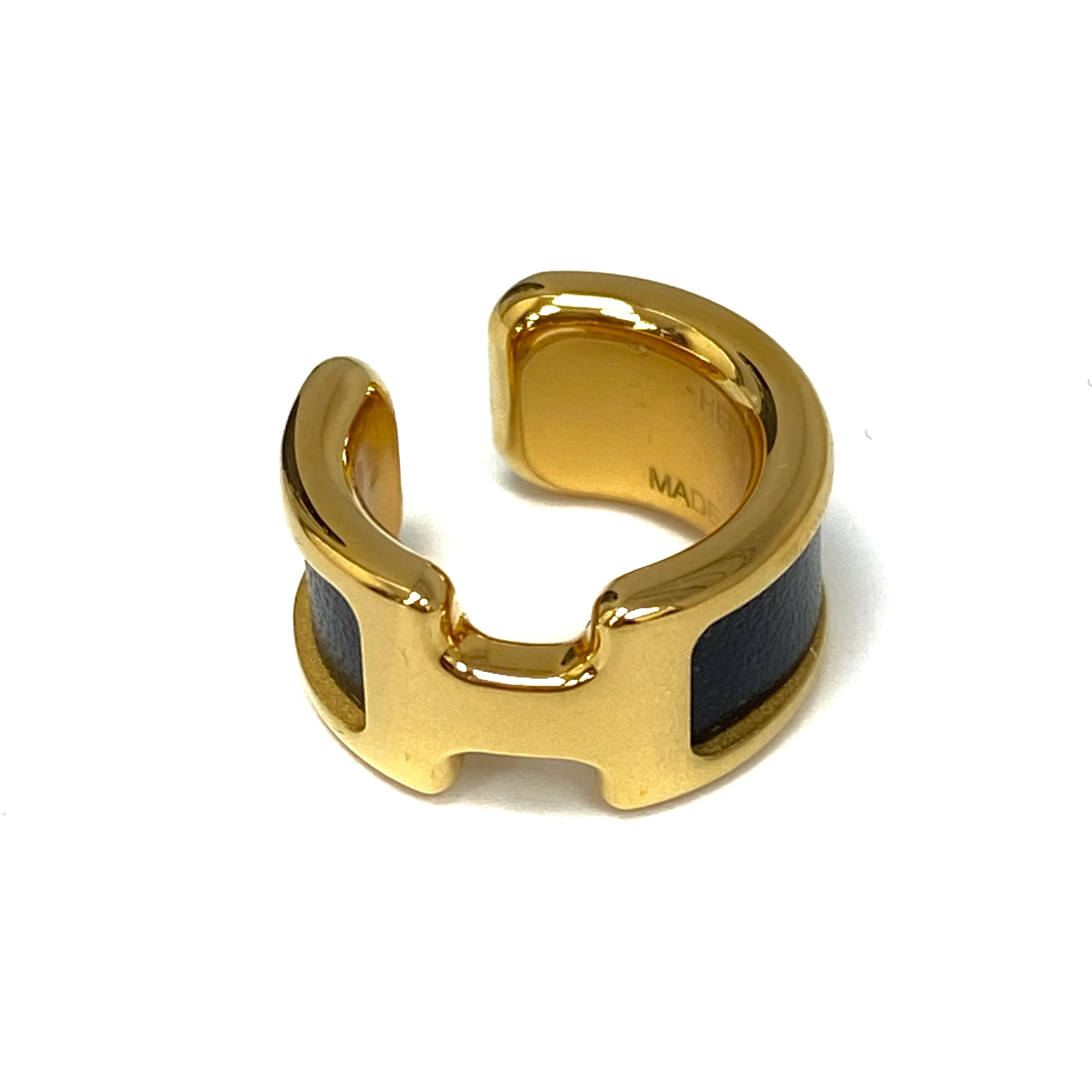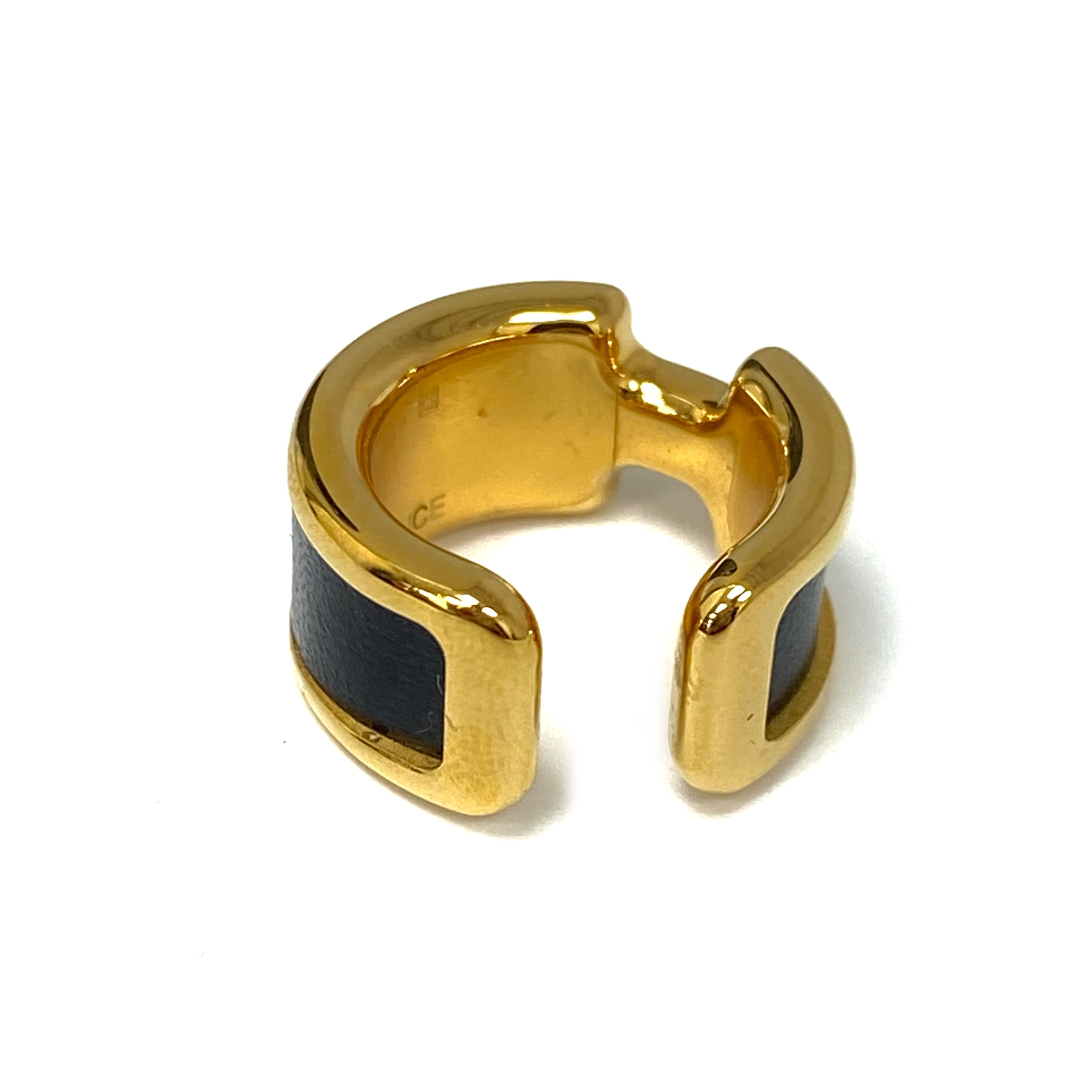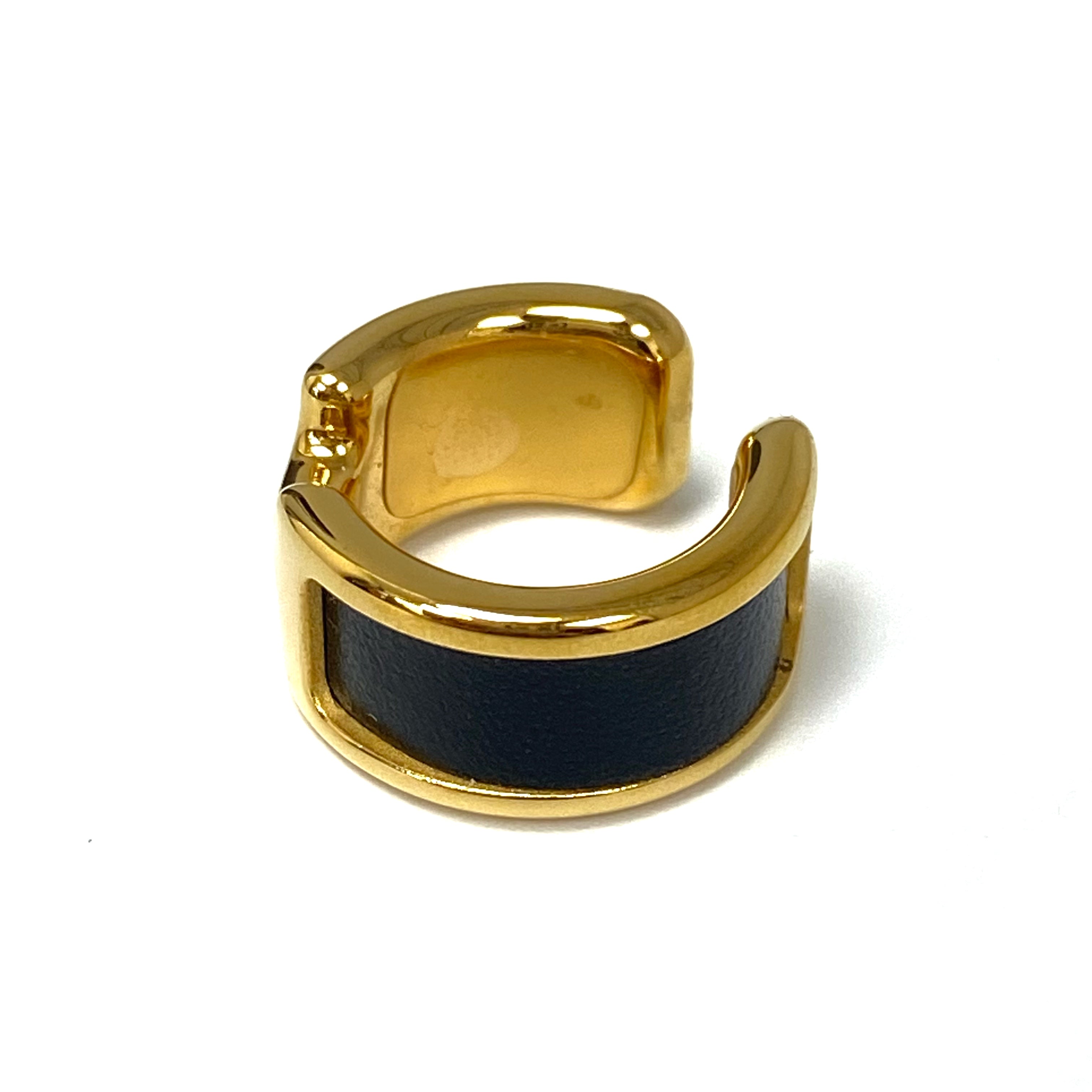 ☆Hermes愛馬仕 Gold Tone Metal Black Olympe Single Ear Cuff 金色金屬黑色單隻耳夾 -257027903