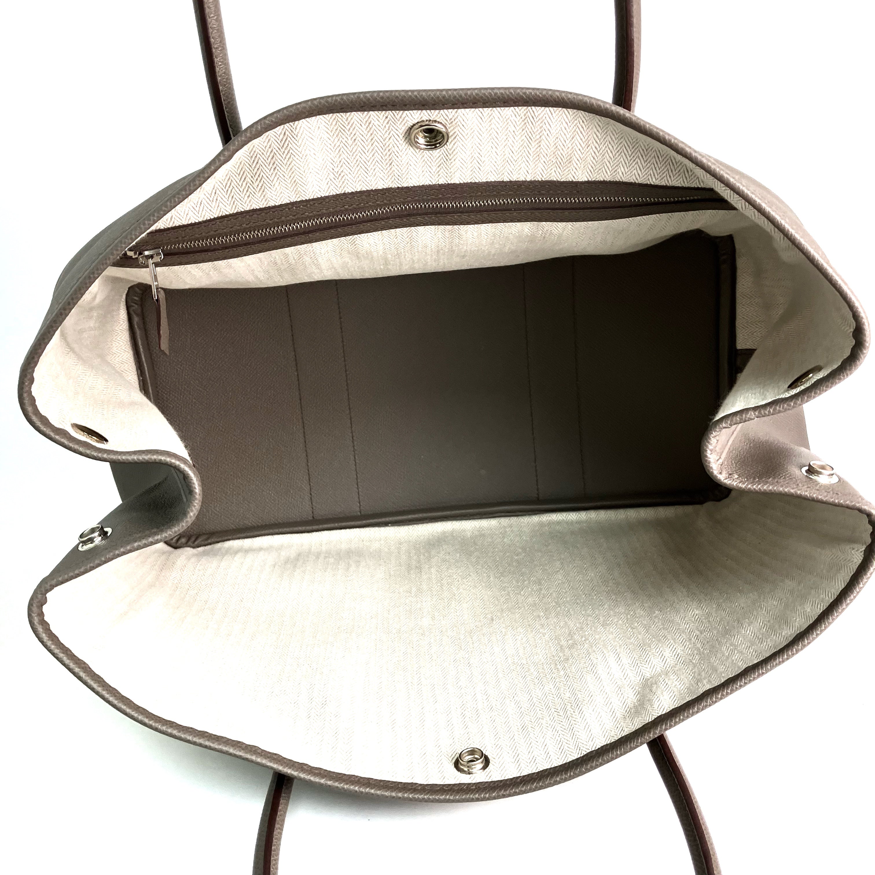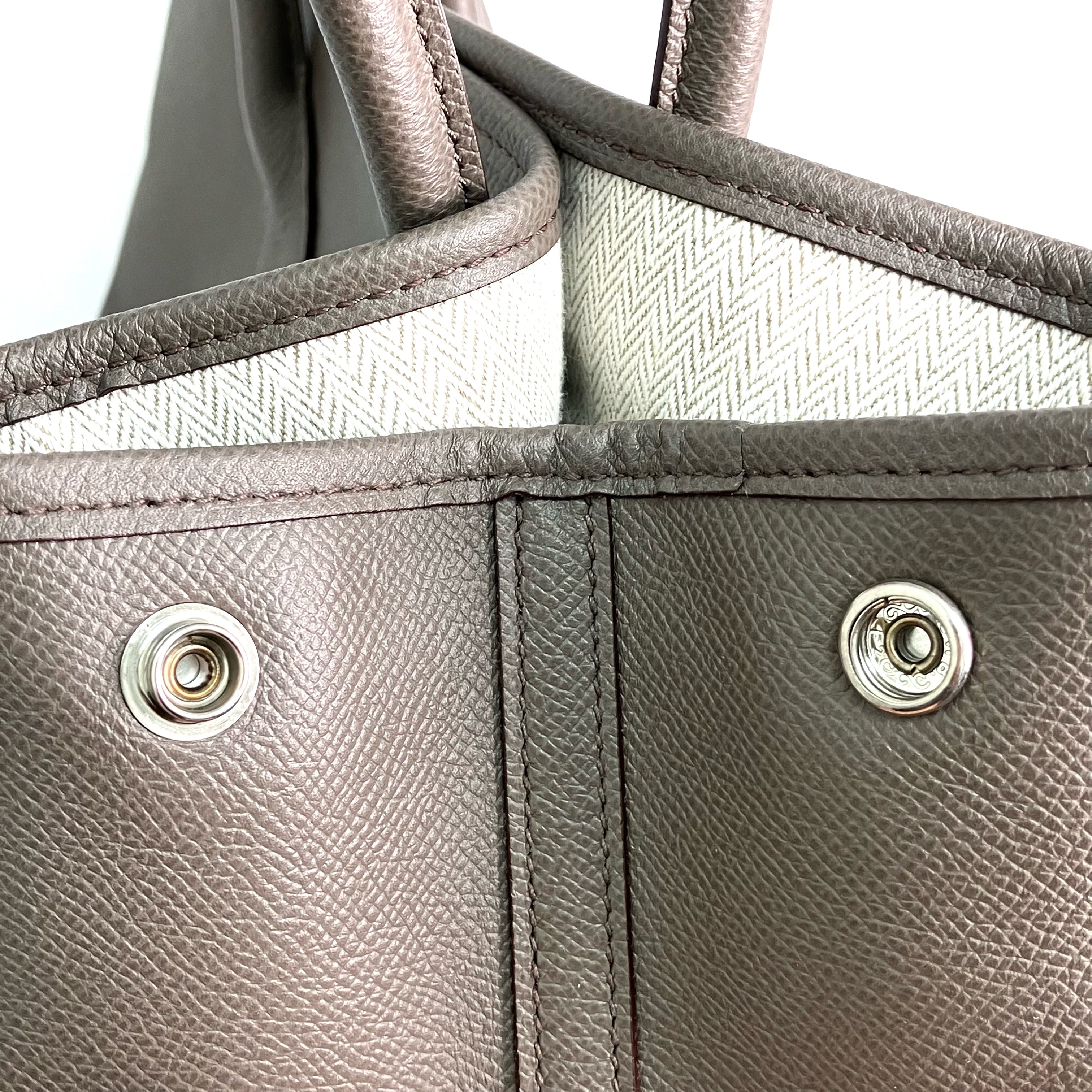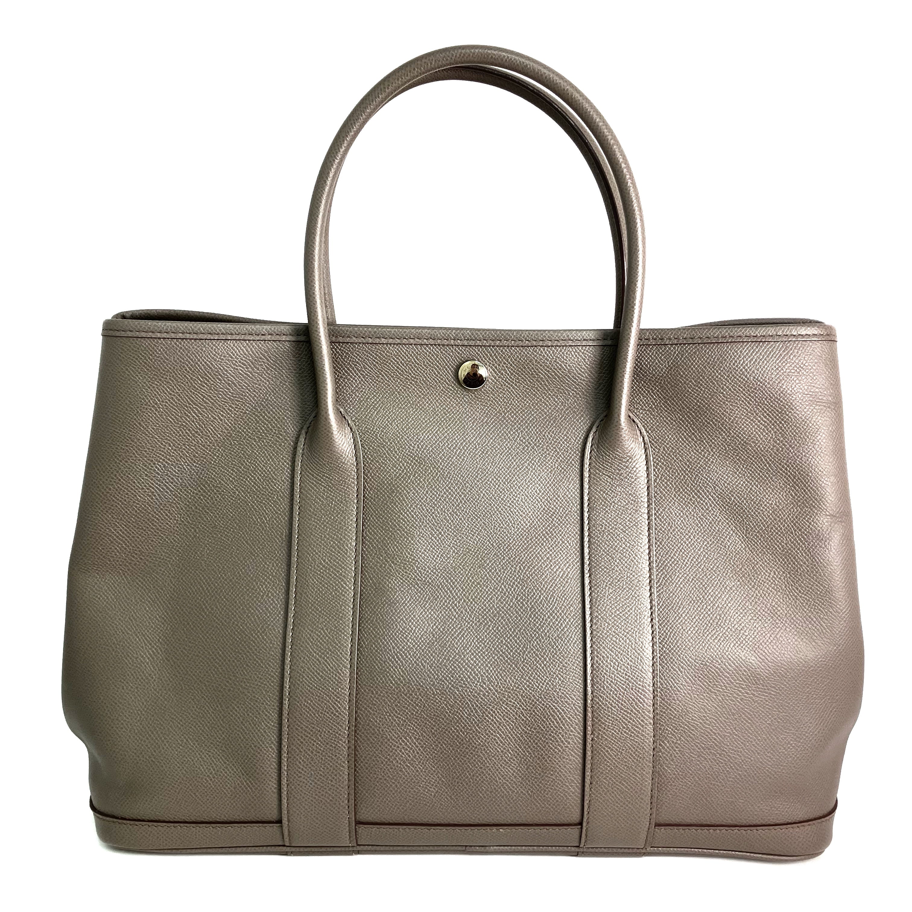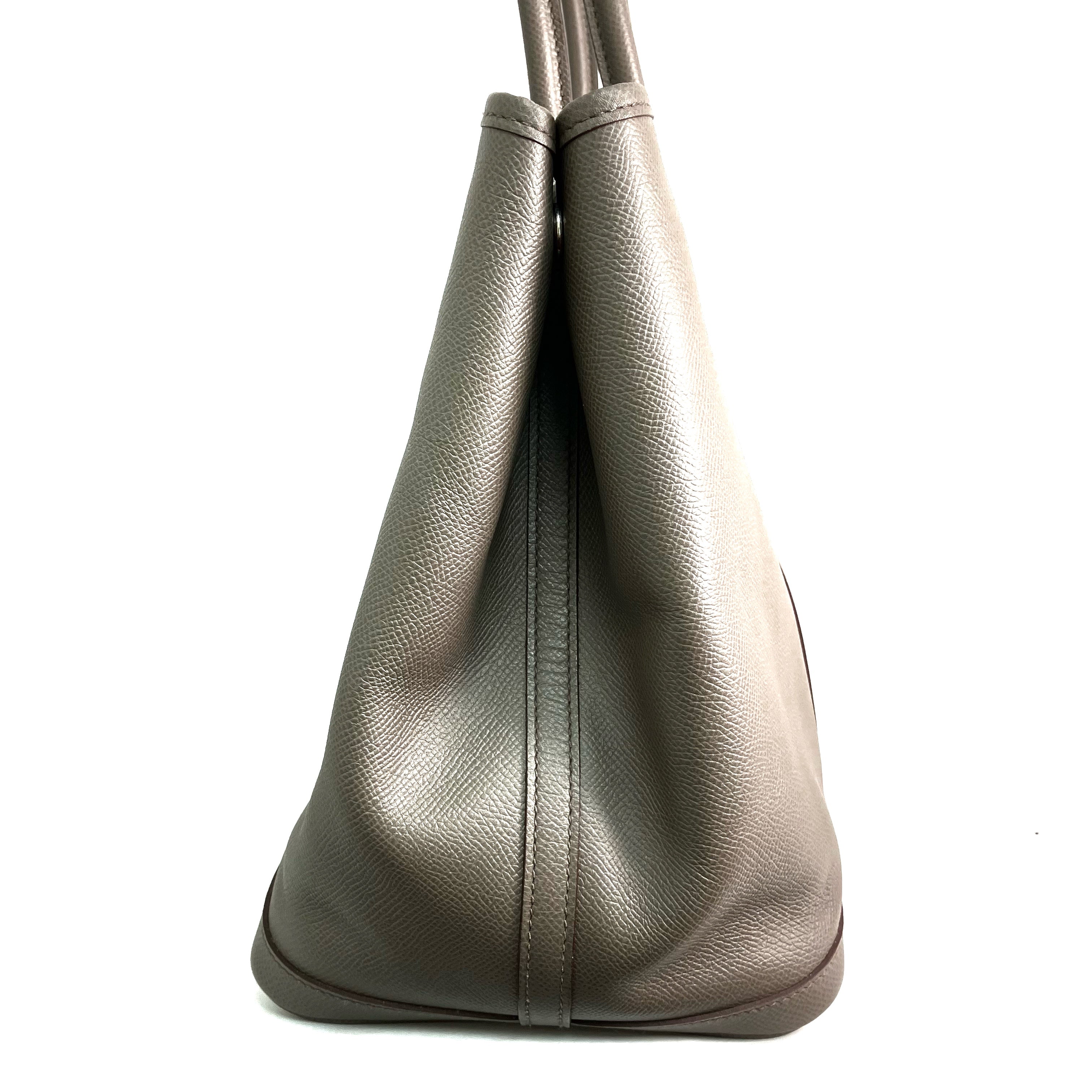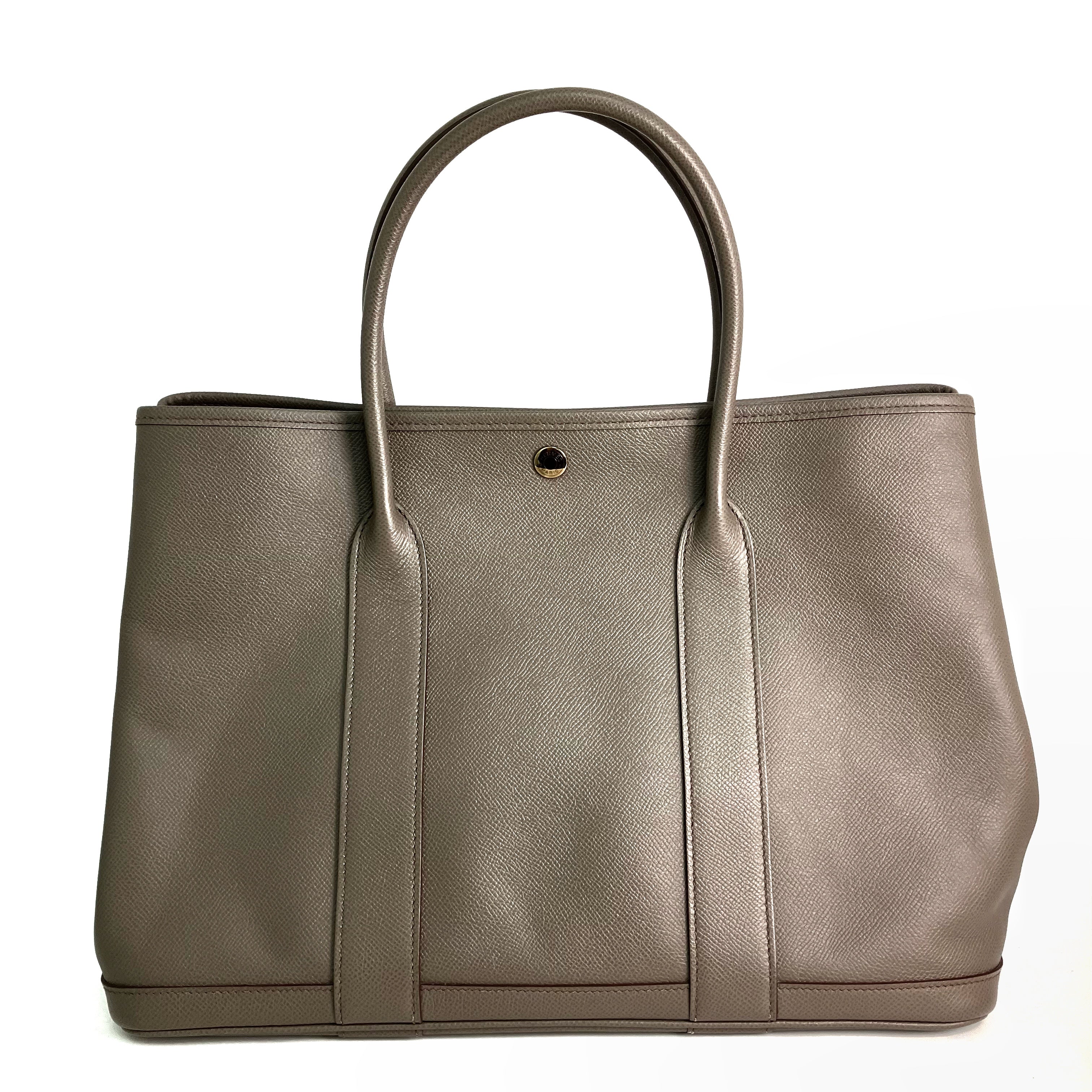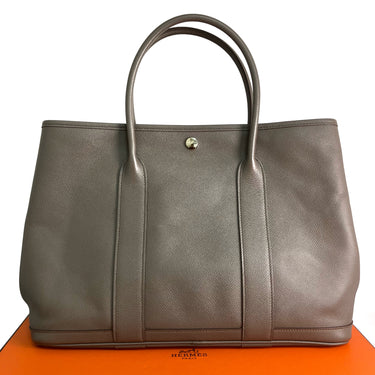 【只限自取 Pick Up Only】△ Hermes 愛馬仕 Grey Brown Epsom Calfskin Palladium Plated Metal Garden Party 36 Hand Bag Stamp A 灰啡色壓紋小牛皮鍍鈀金屬手袋A刻 - 257028306