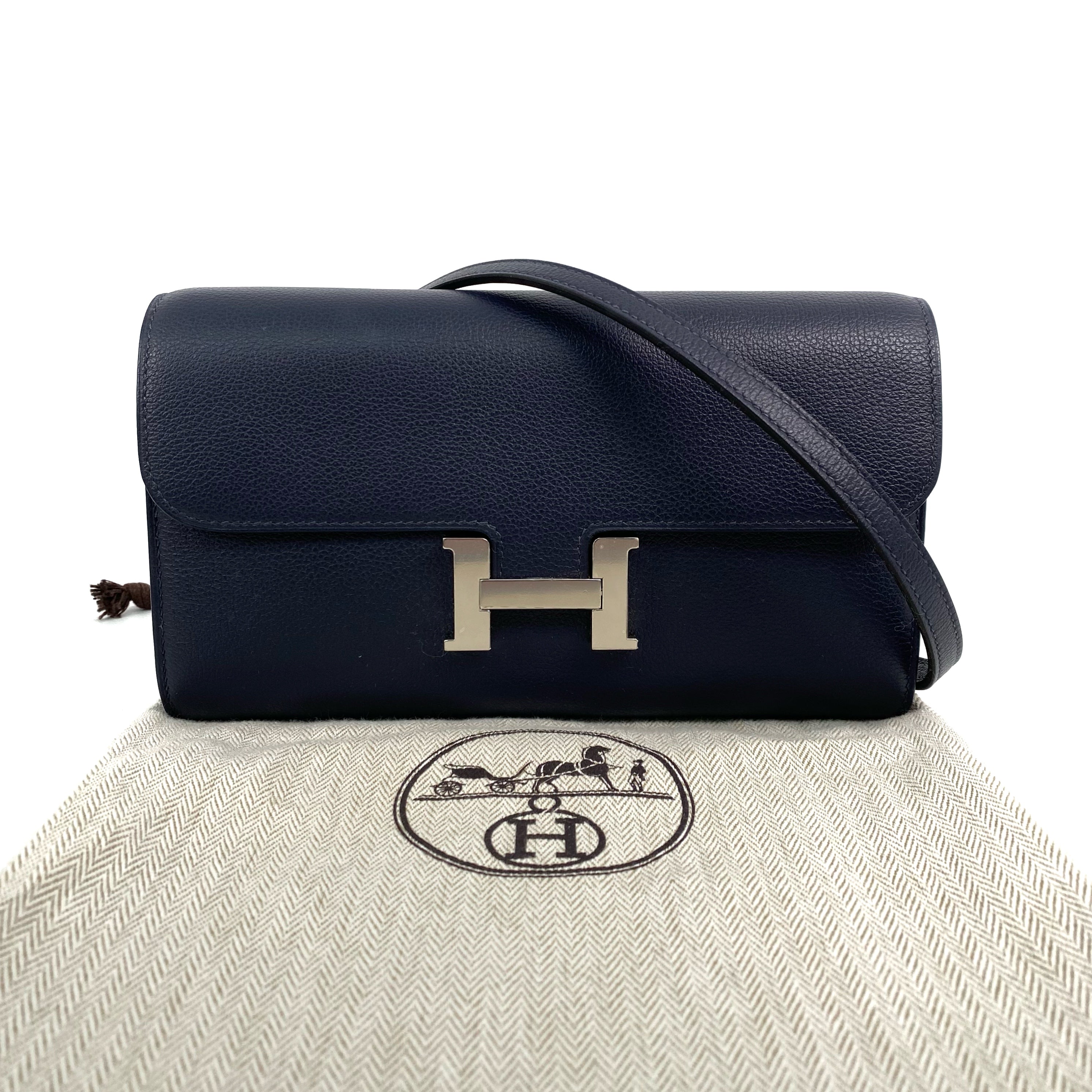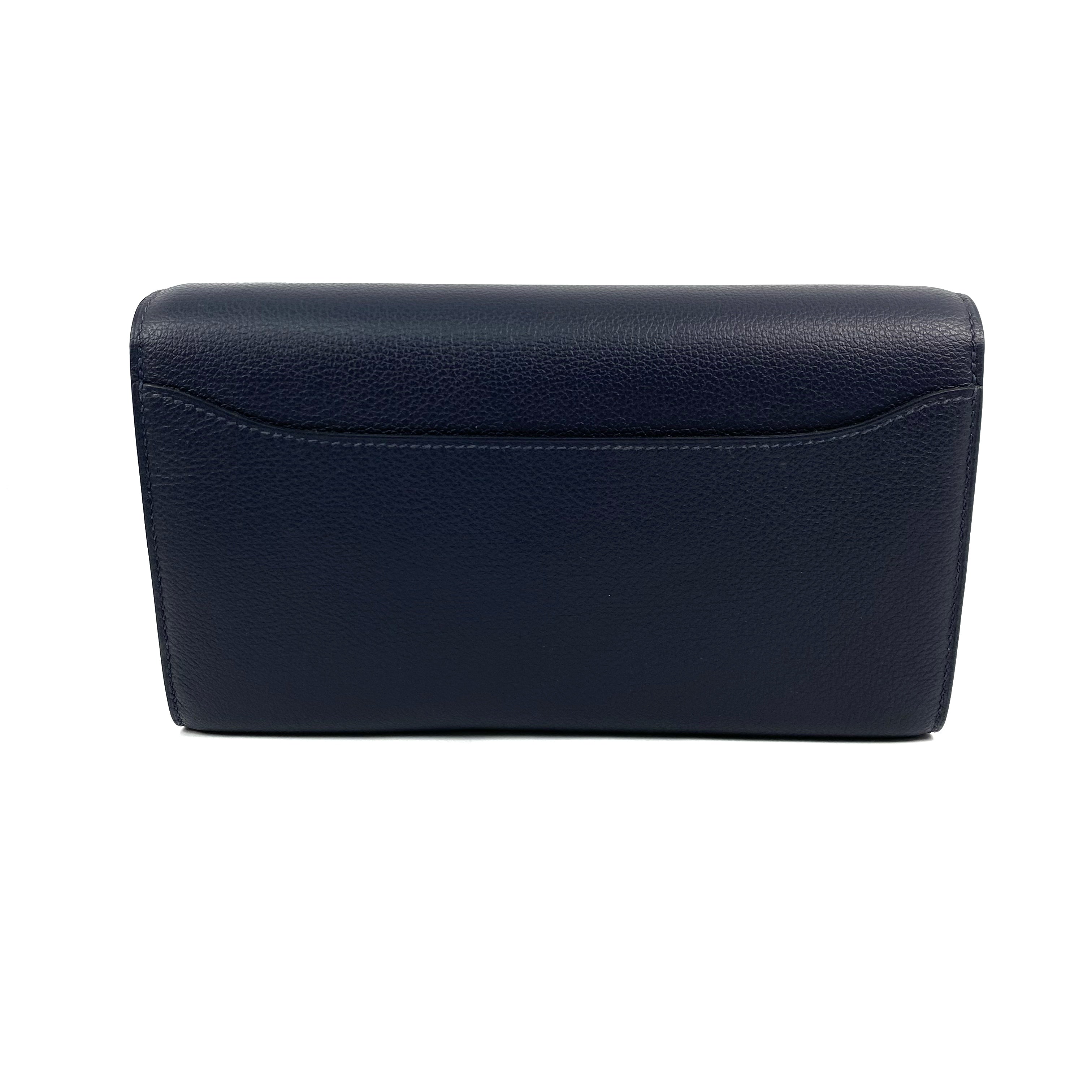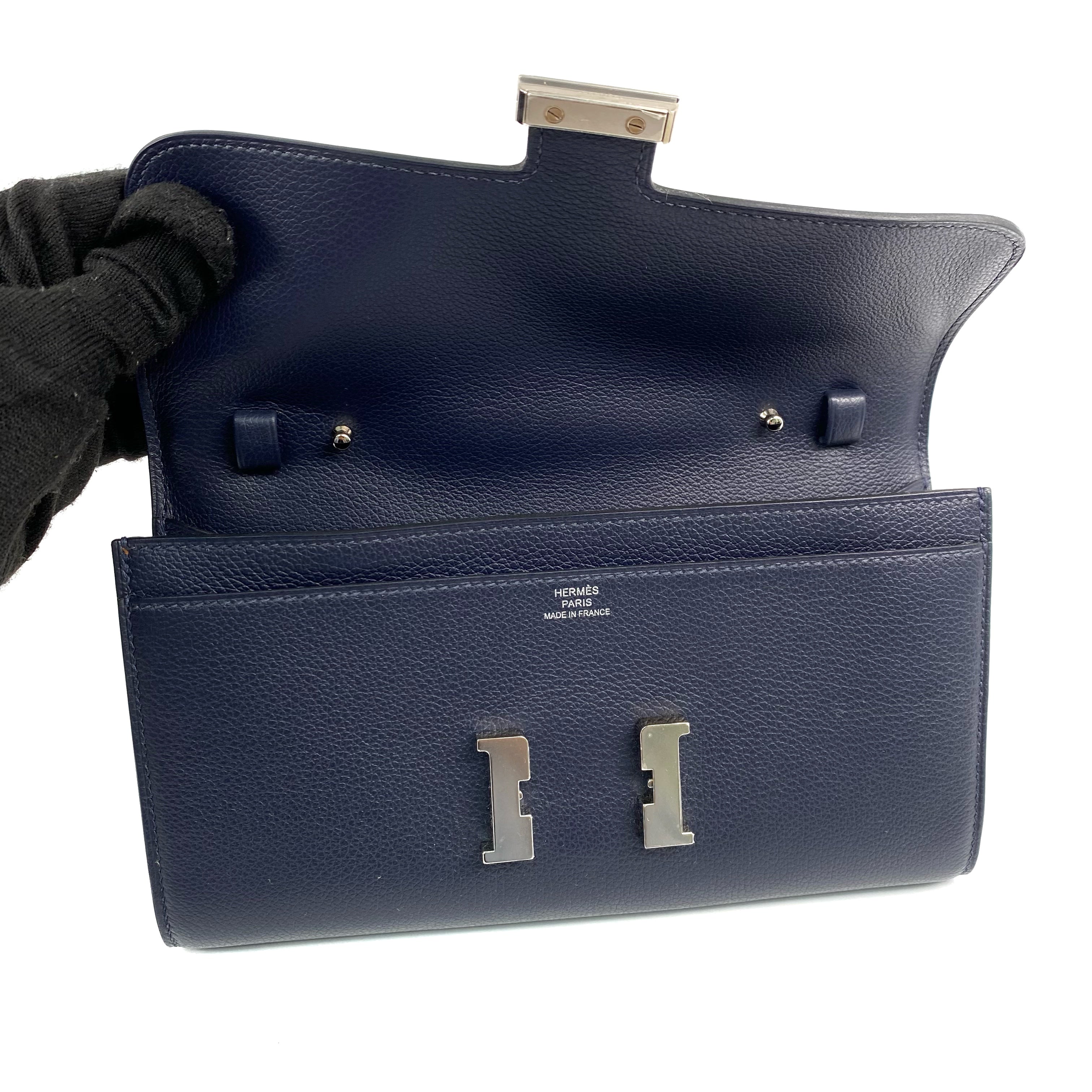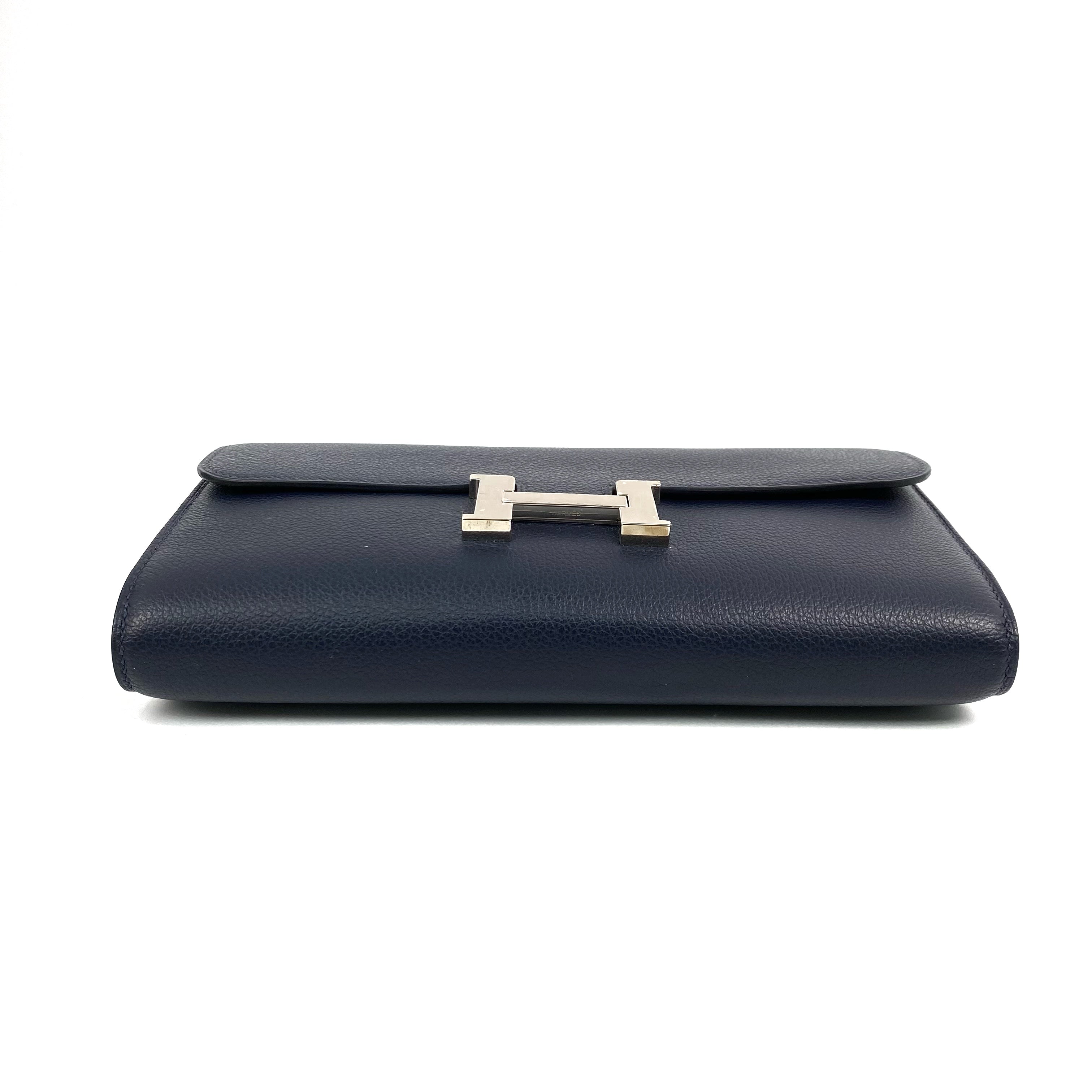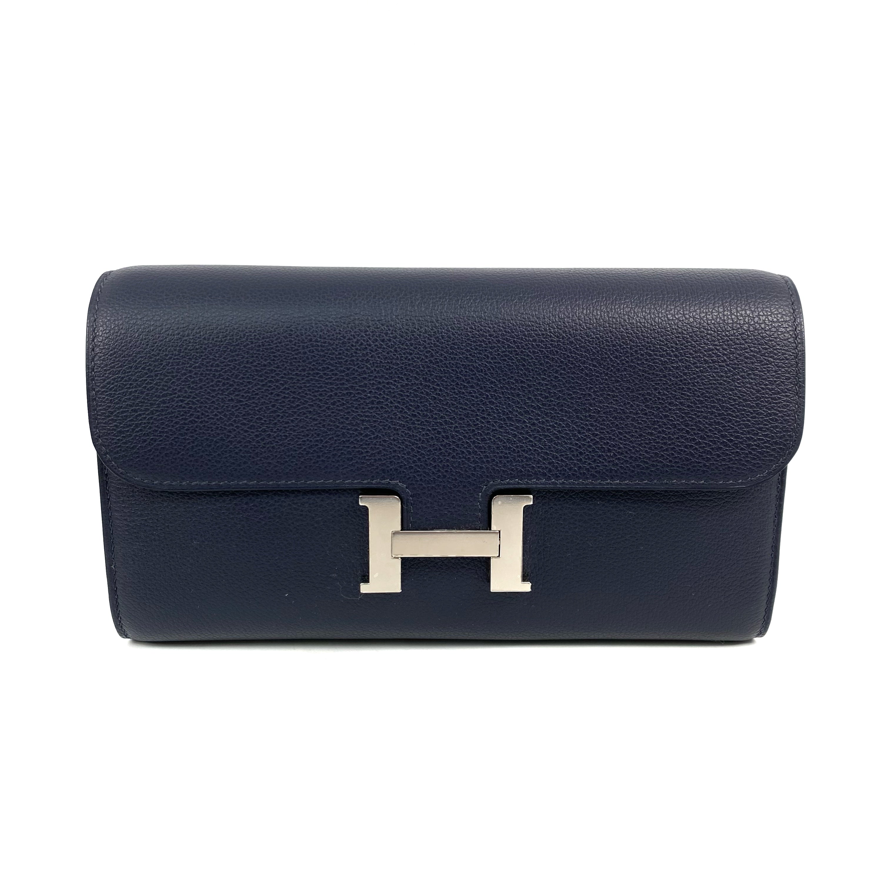 【FPS ONLY 只限轉數快】△ Hermes 愛馬仕 Navy Evercolor Calfskin Palladium Plated Metal Constance To Go Wallet On Chain Stamp Y 深藍色粒紋小牛皮鍍鈀金屬肩帶銀包Y刻 - 267007690