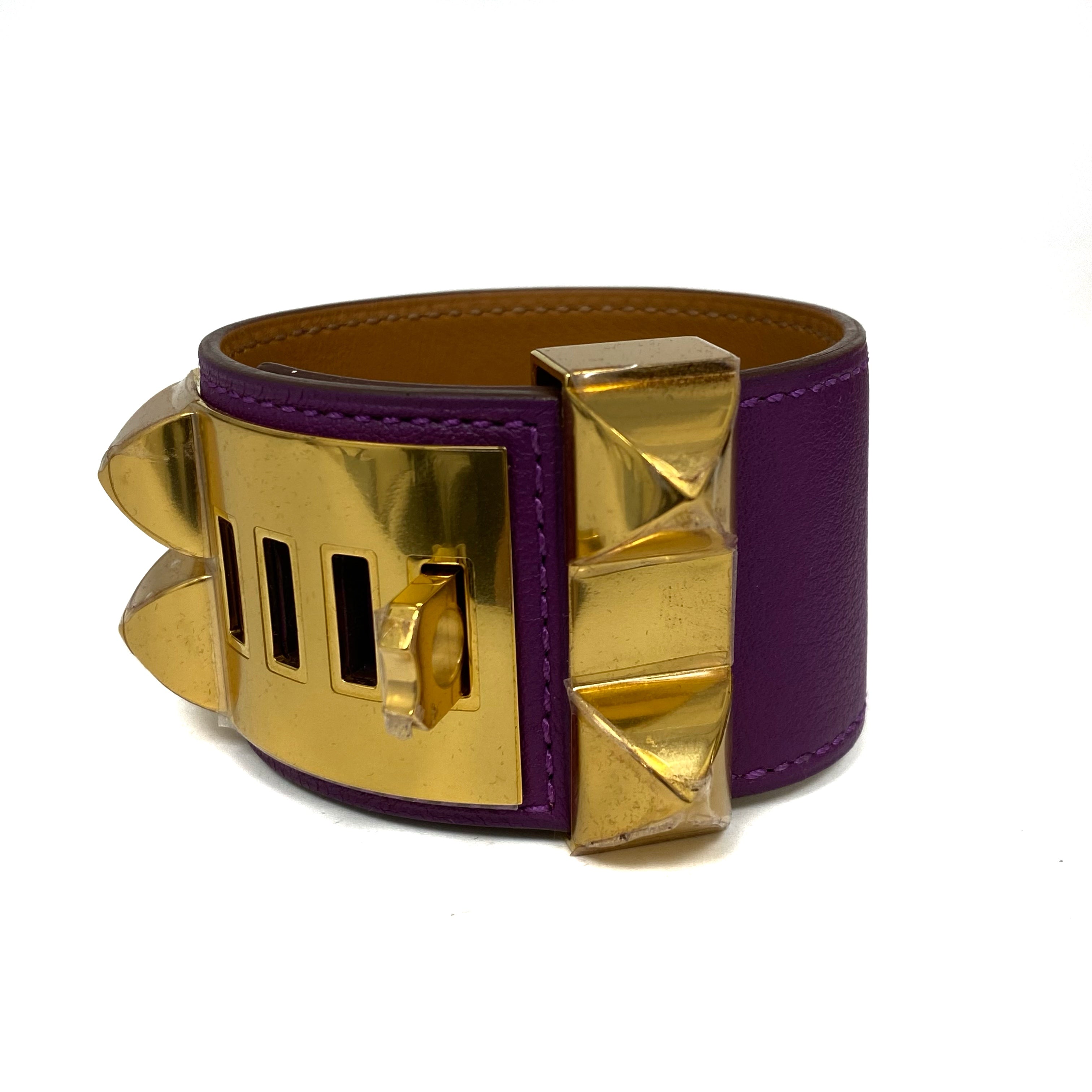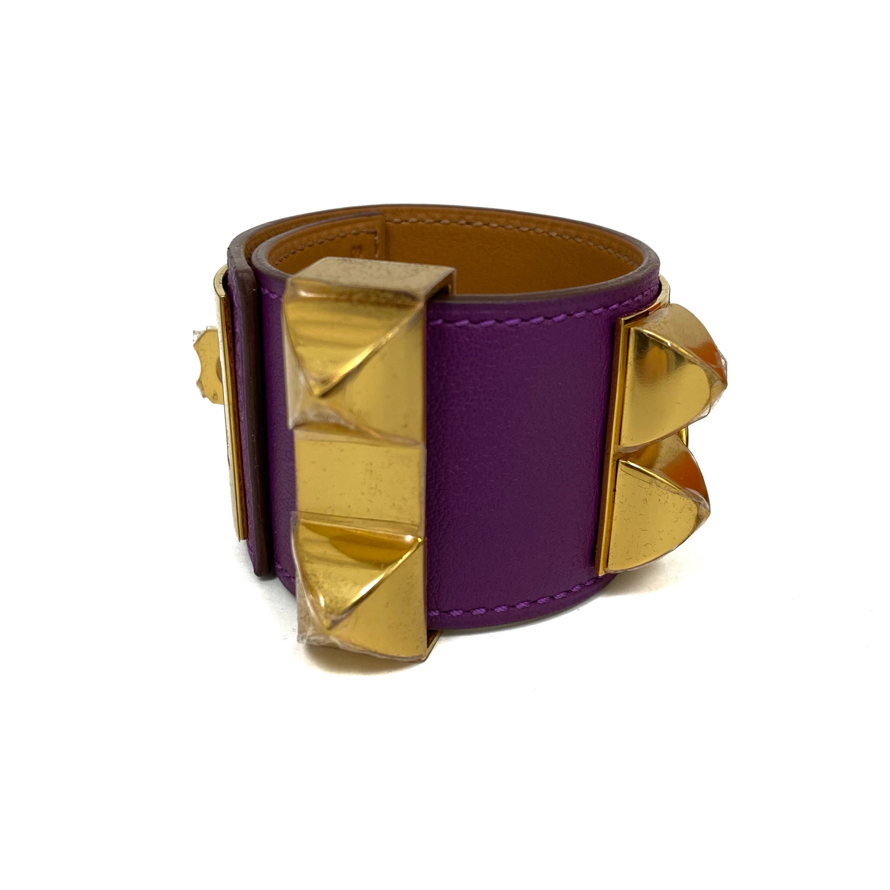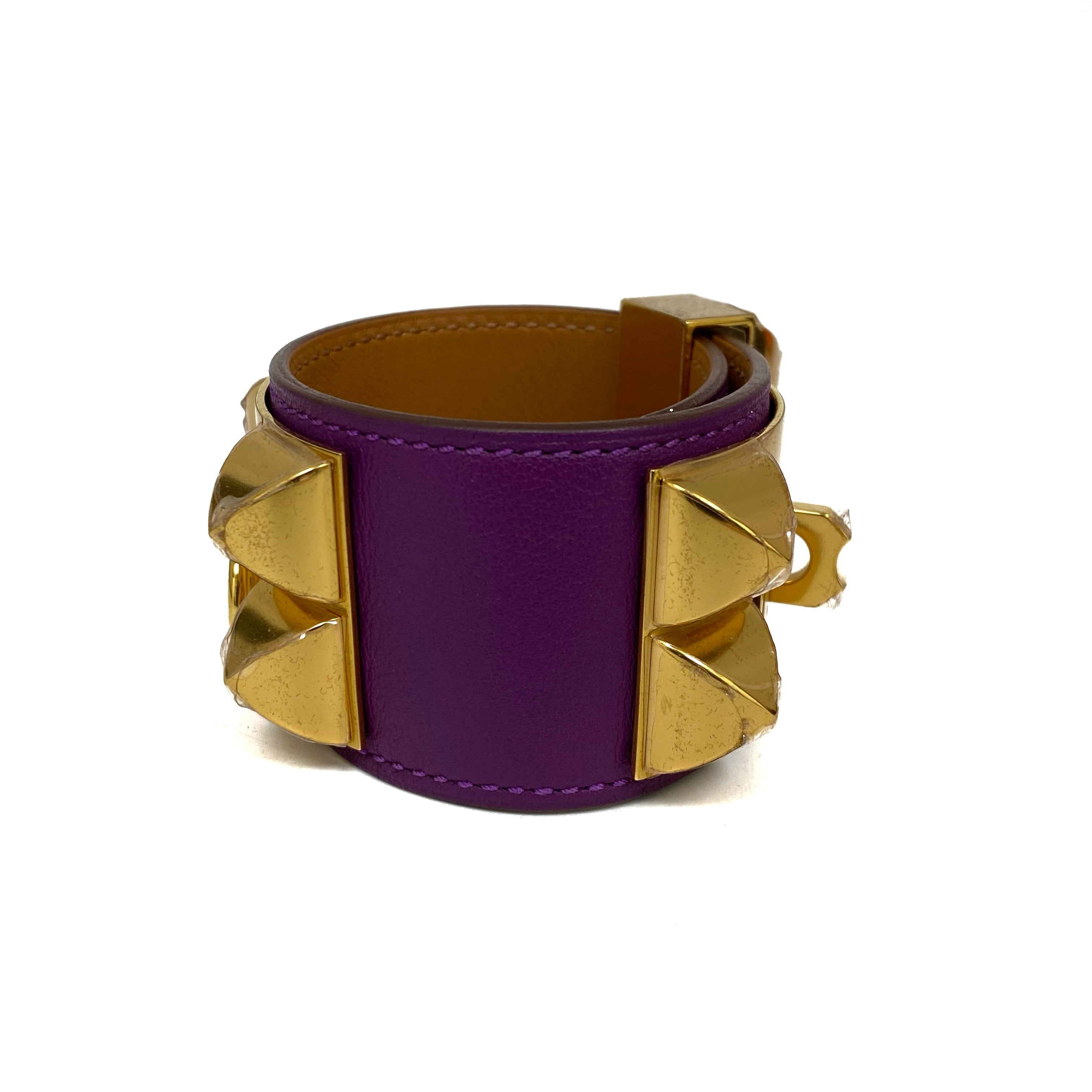 ☆ Hermes 愛馬仕 Purple Calfskin Gold Plated Metal Collier de Chien Bracelet Stamp [R] 紫色小牛皮鍍金金屬手帶[R] - 267006392