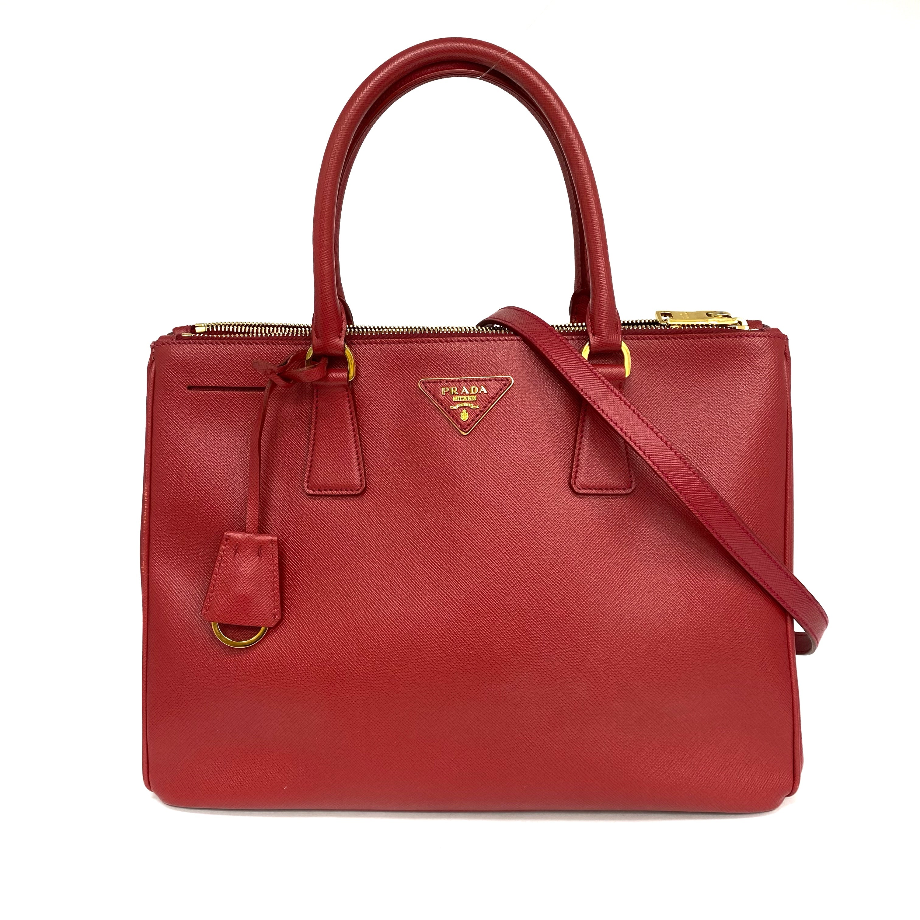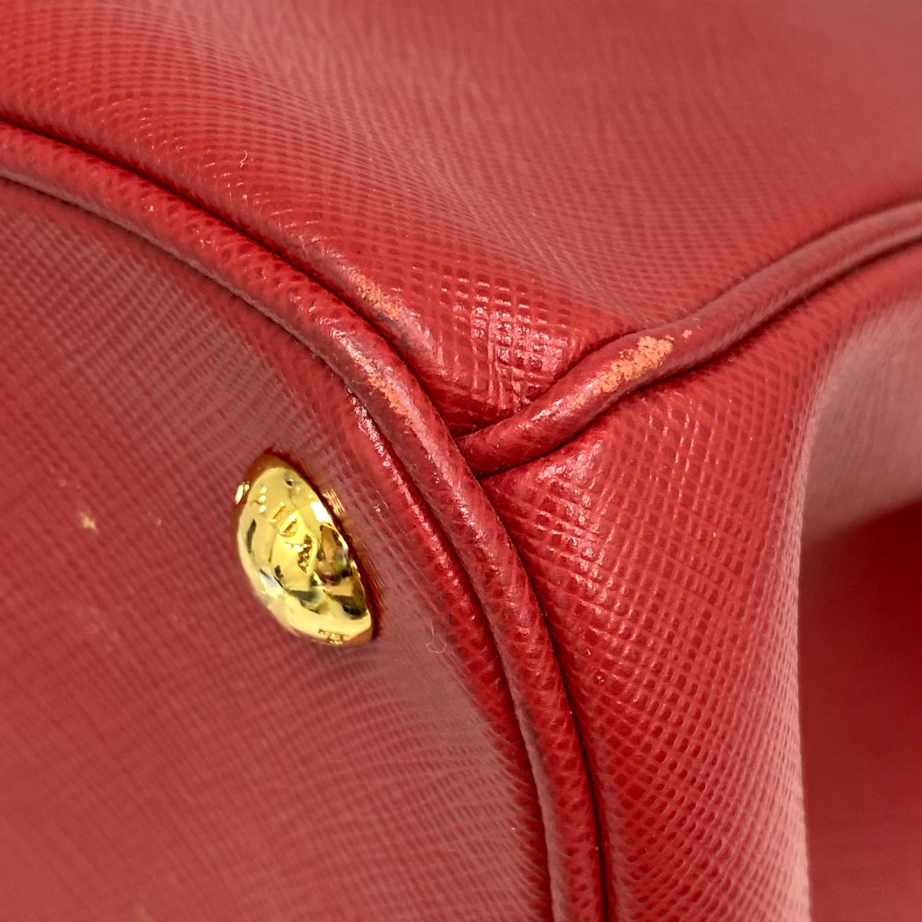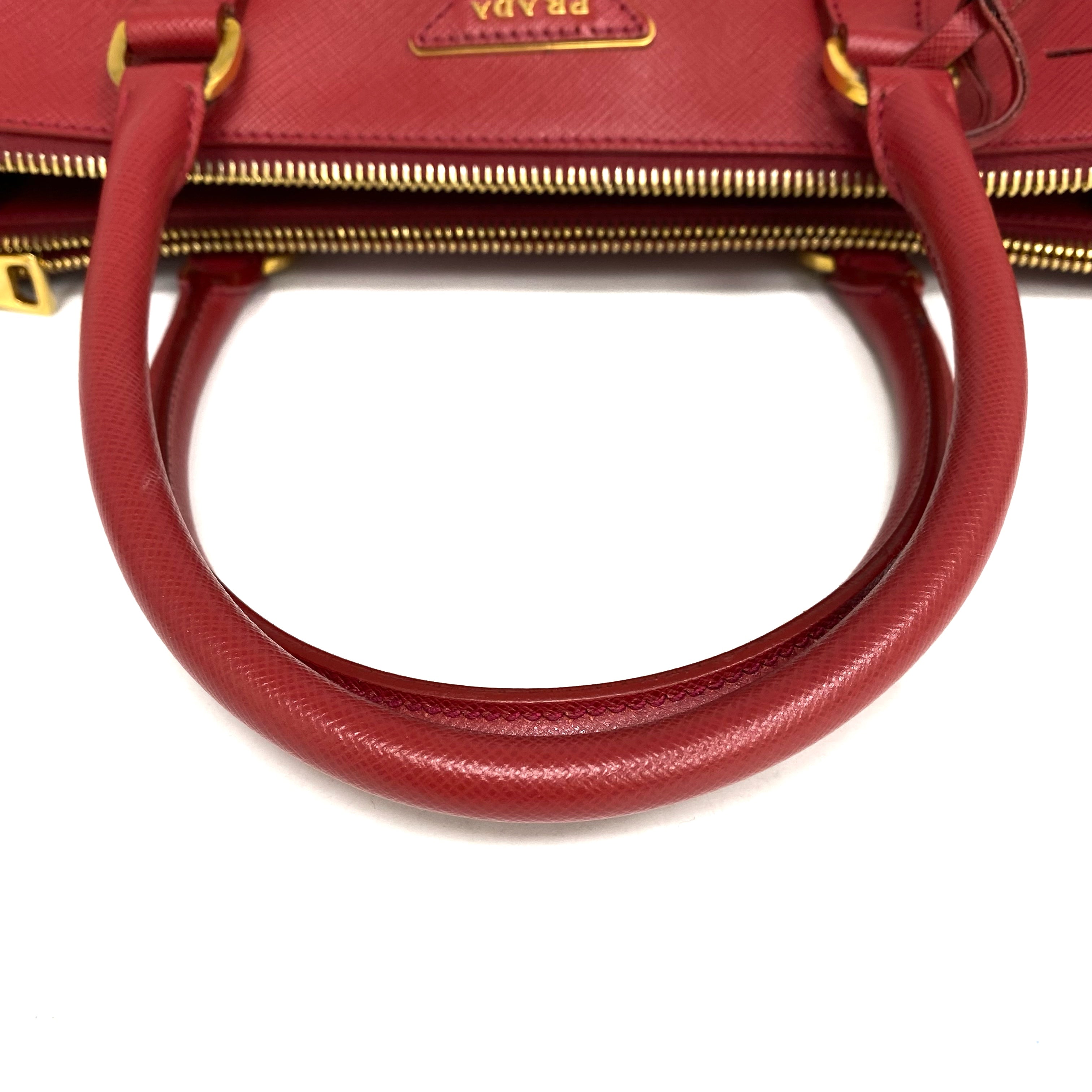 ☆ Prada 普拉達 Red Saffiano Leather Galleria 2 Way Bag 紅色十字紋皮革兩用袋 - 267007701