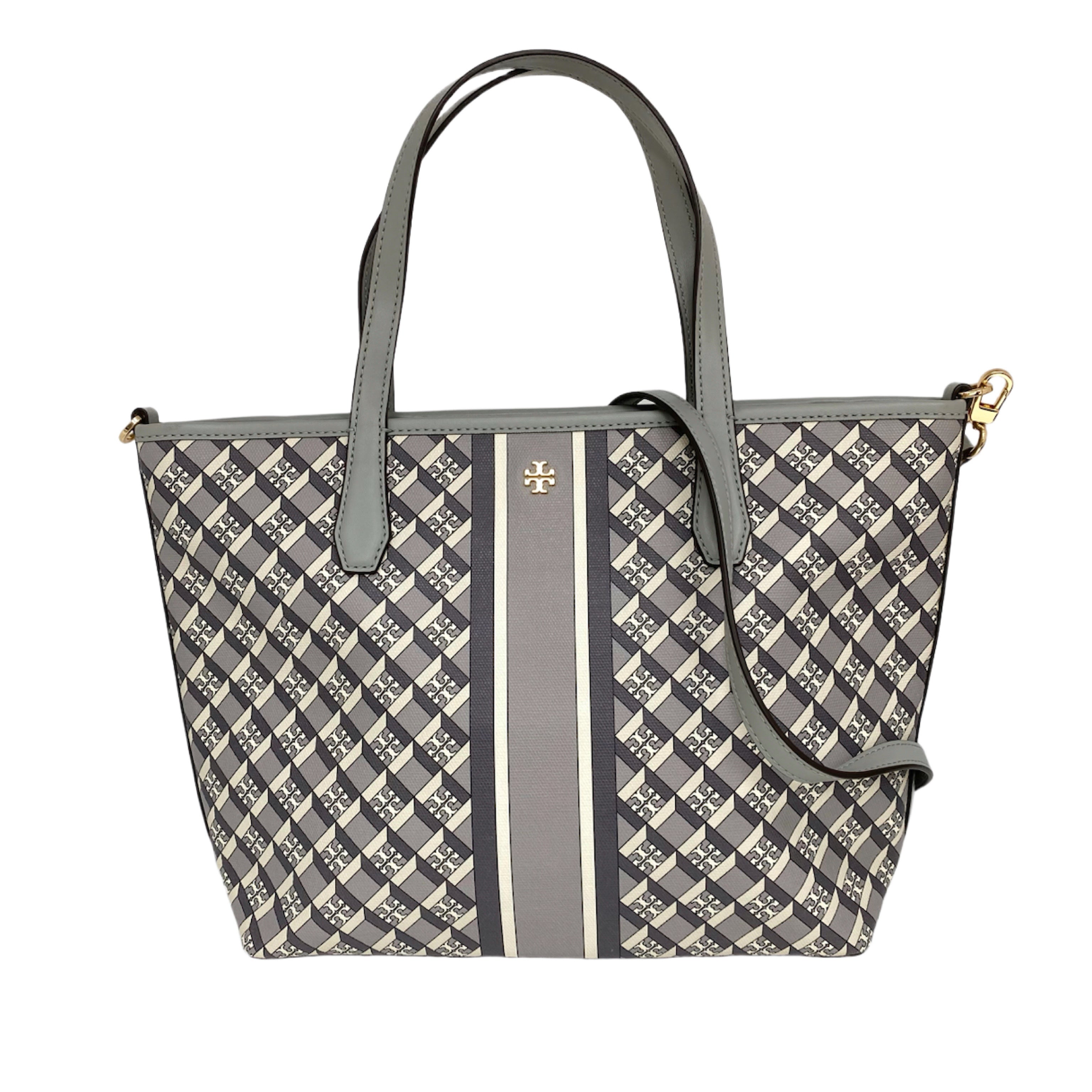 ☆ Tory Burch 托里伯奇 Grey Coated Canvas 2 Way Tote Bag 灰色塗層帆布兩用托特袋 - 267007757