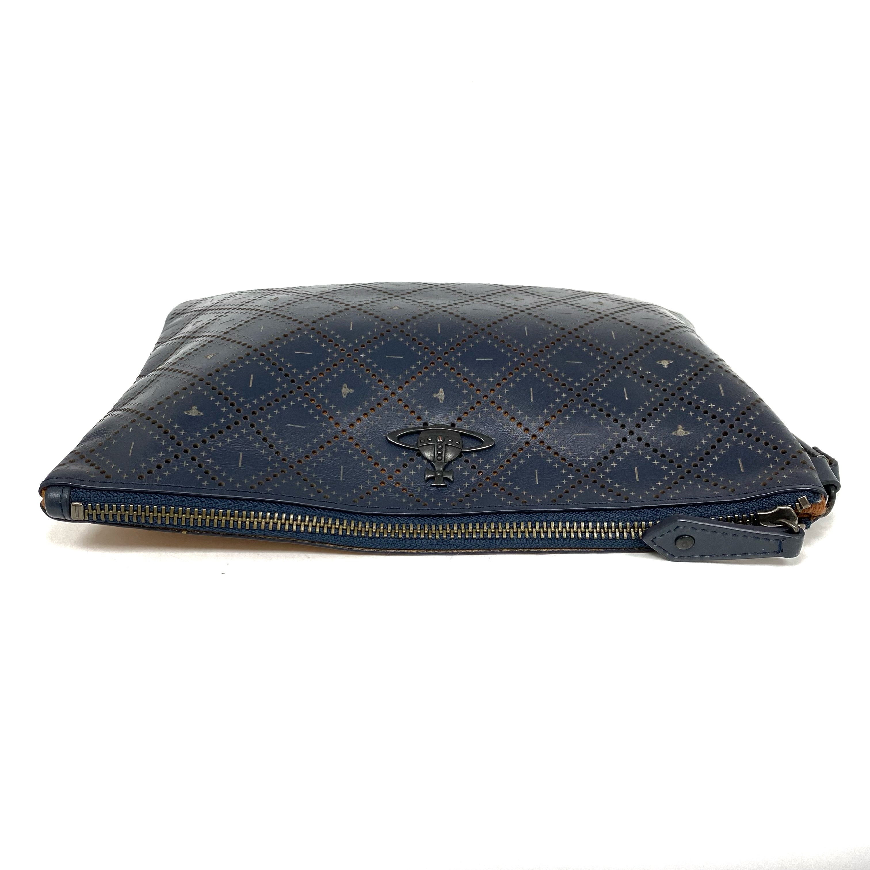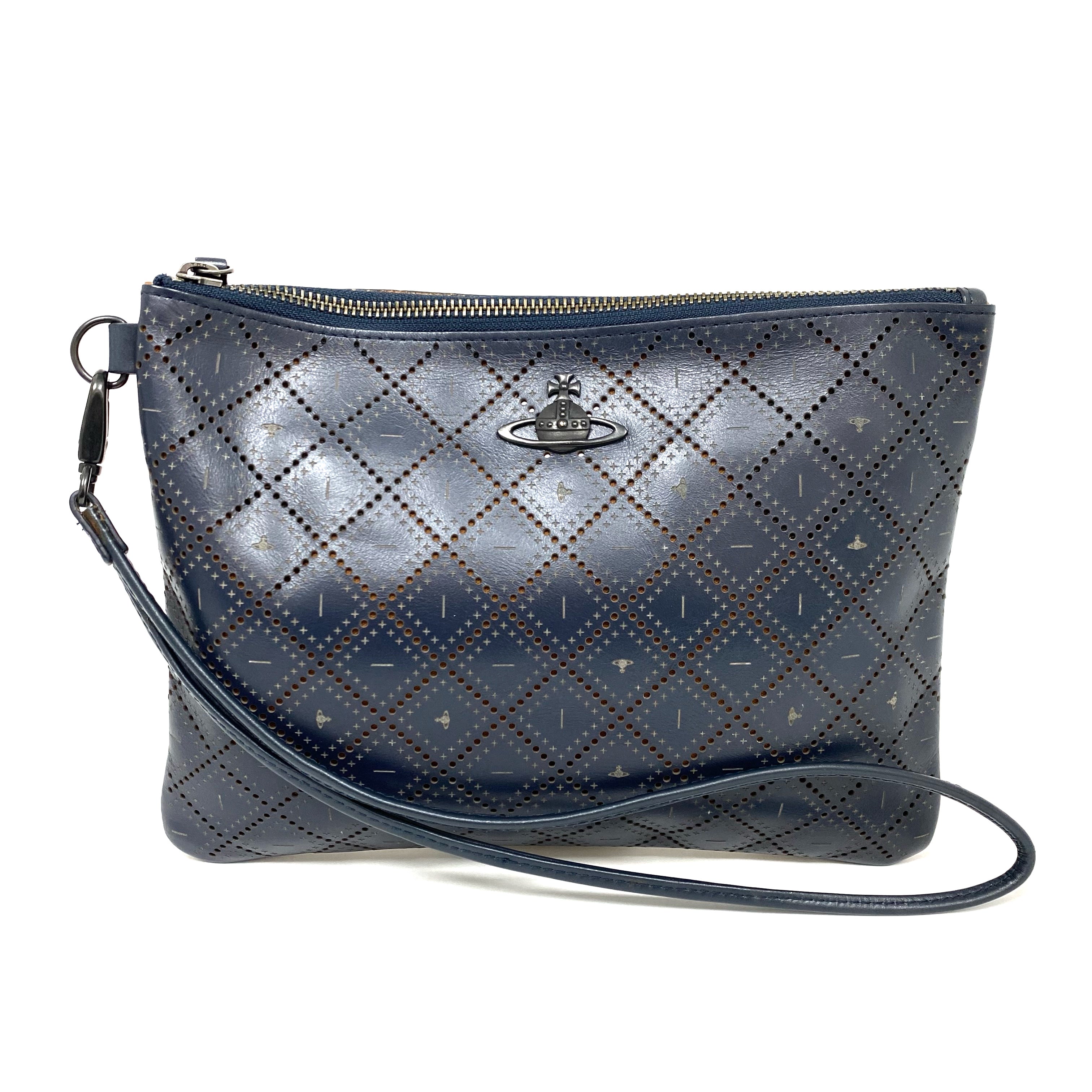 ☆ Vivienne Westwood 薇薇安 魏斯伍德 Navy Orange Calfskin Clutch 深藍色橙色小牛皮手拿袋 - 267002958